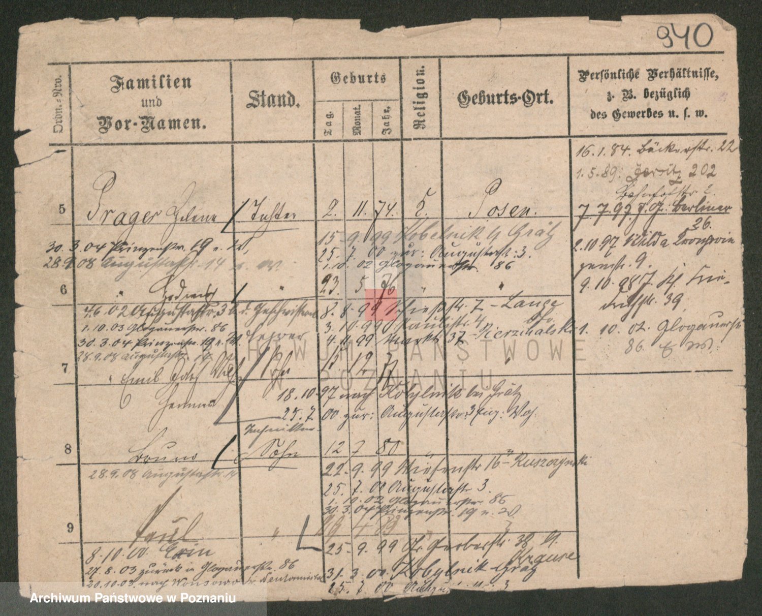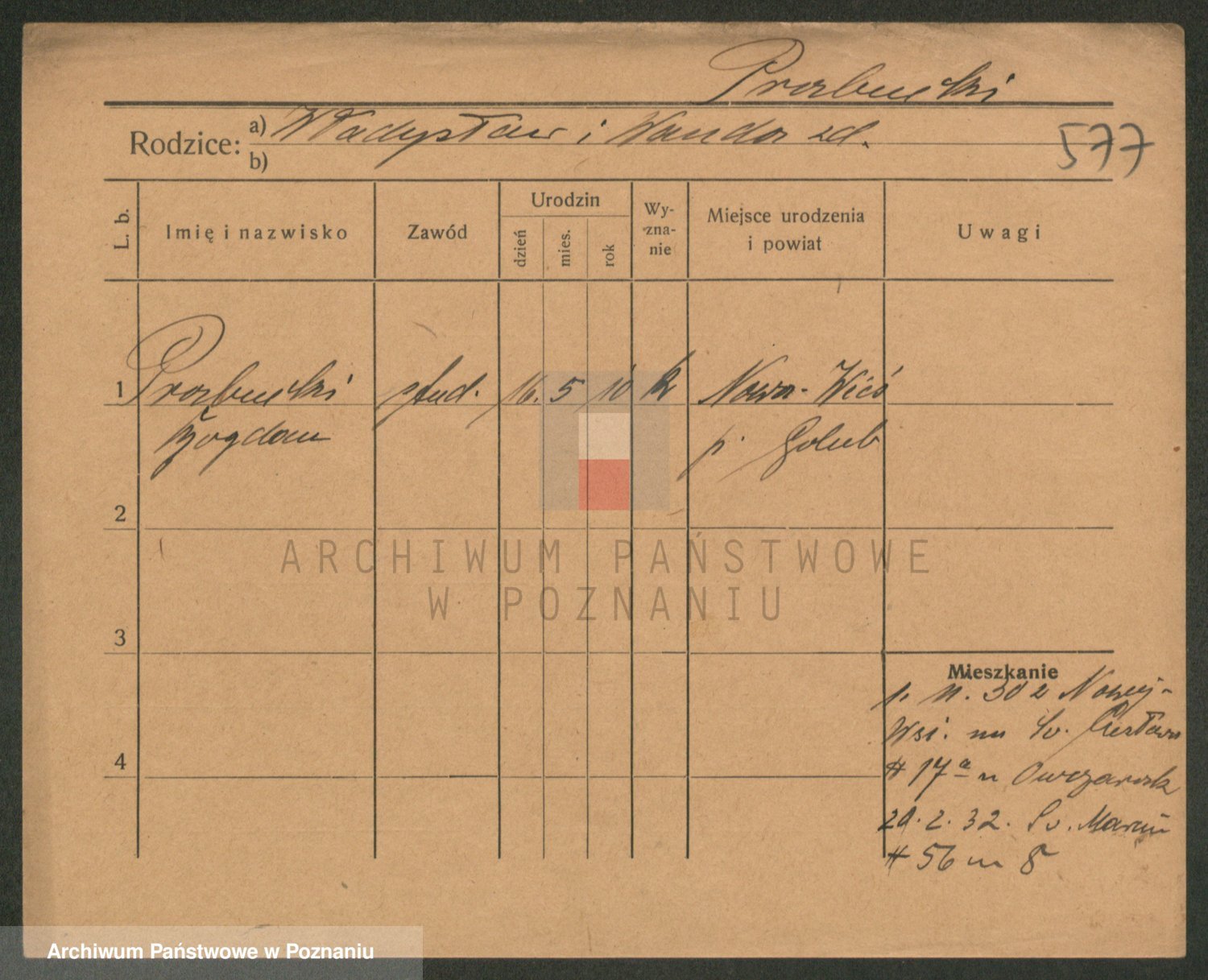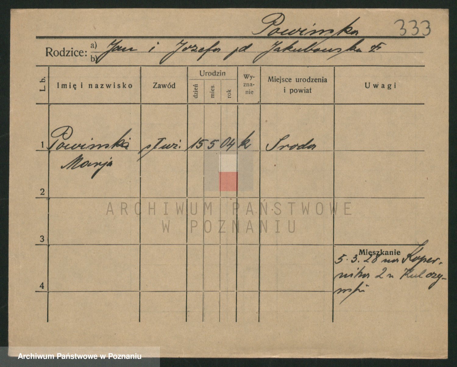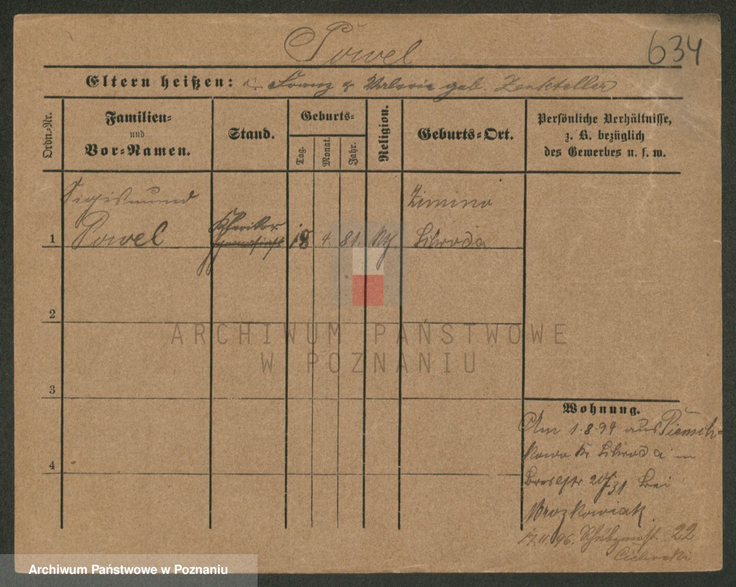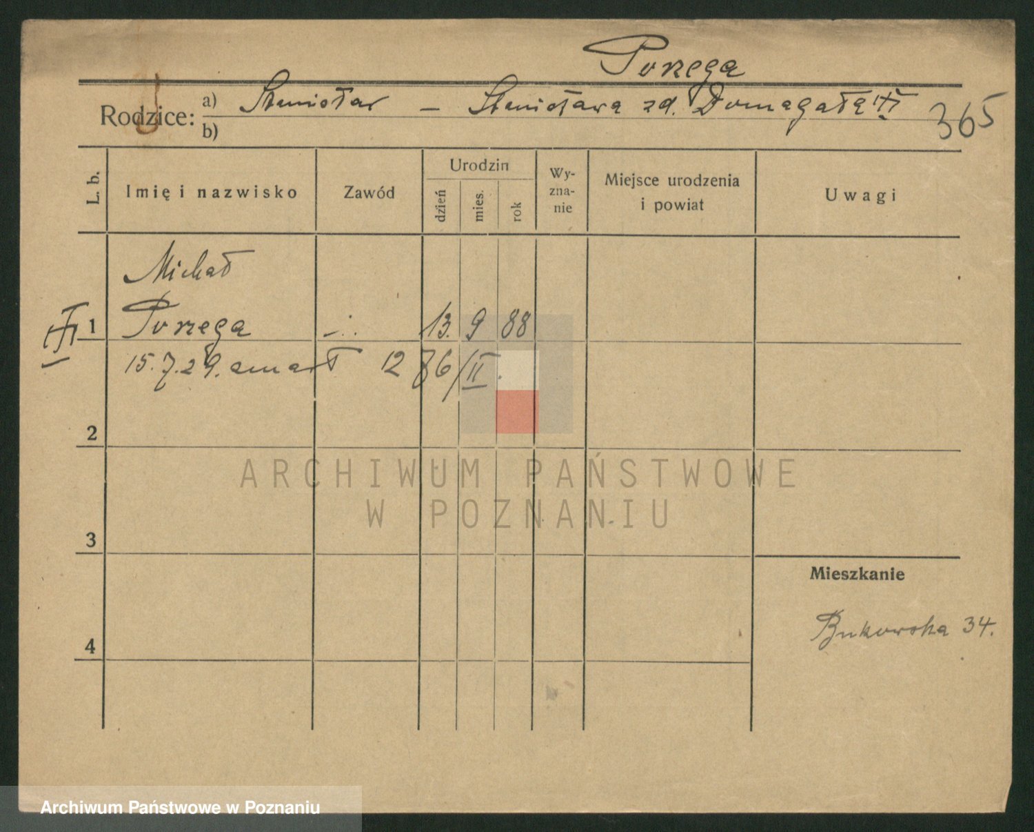 Podgląd karty osobowej dostępny jest po kliknięciu na nazwisko lub ikonkę karty. Można dokonywać powiększenia (ikony na górze) lub przechodzić między kolejnymi skanami (strzałki po bokach).