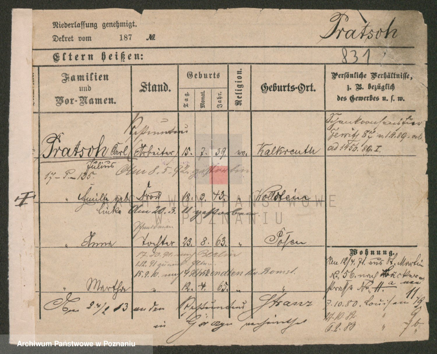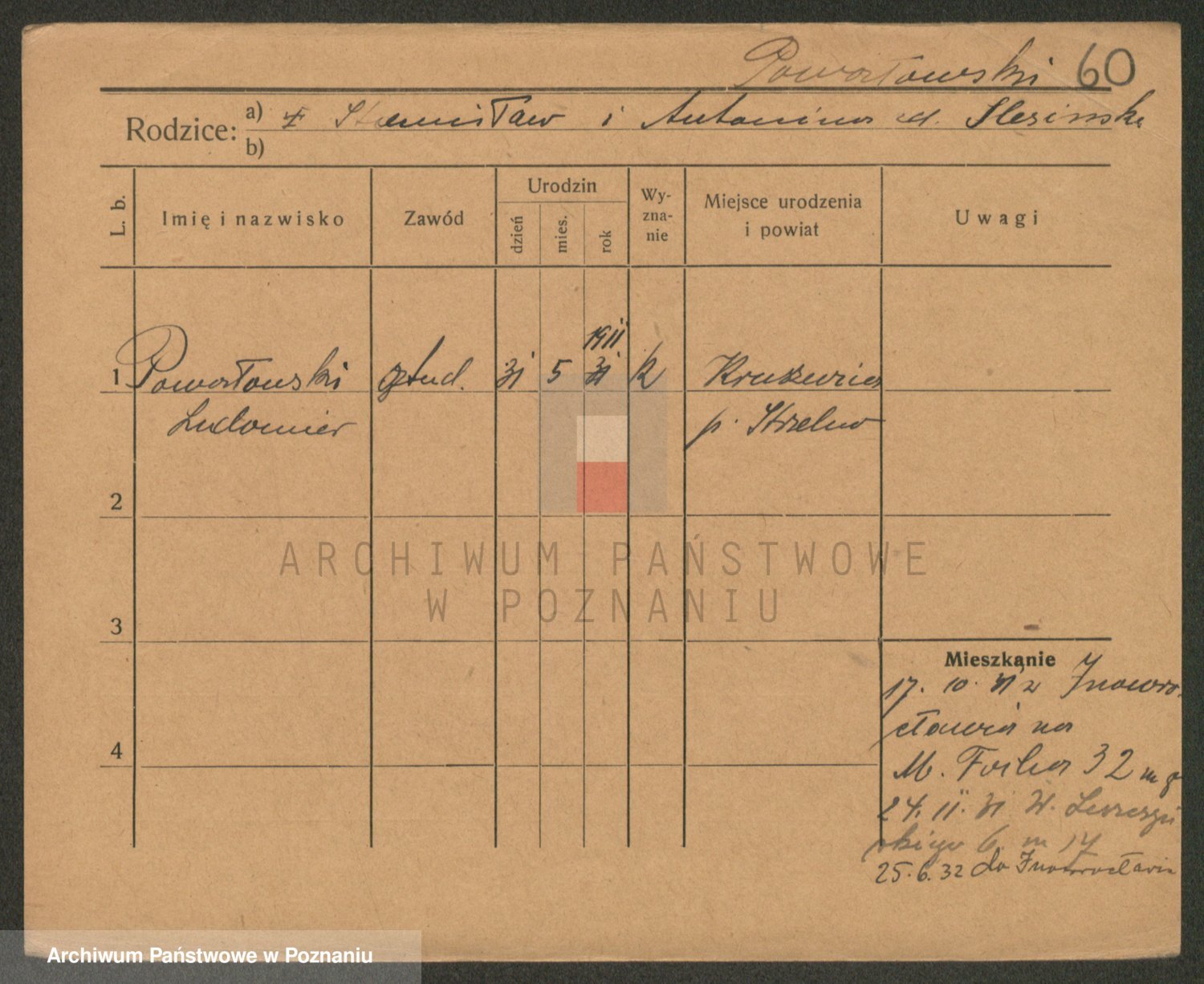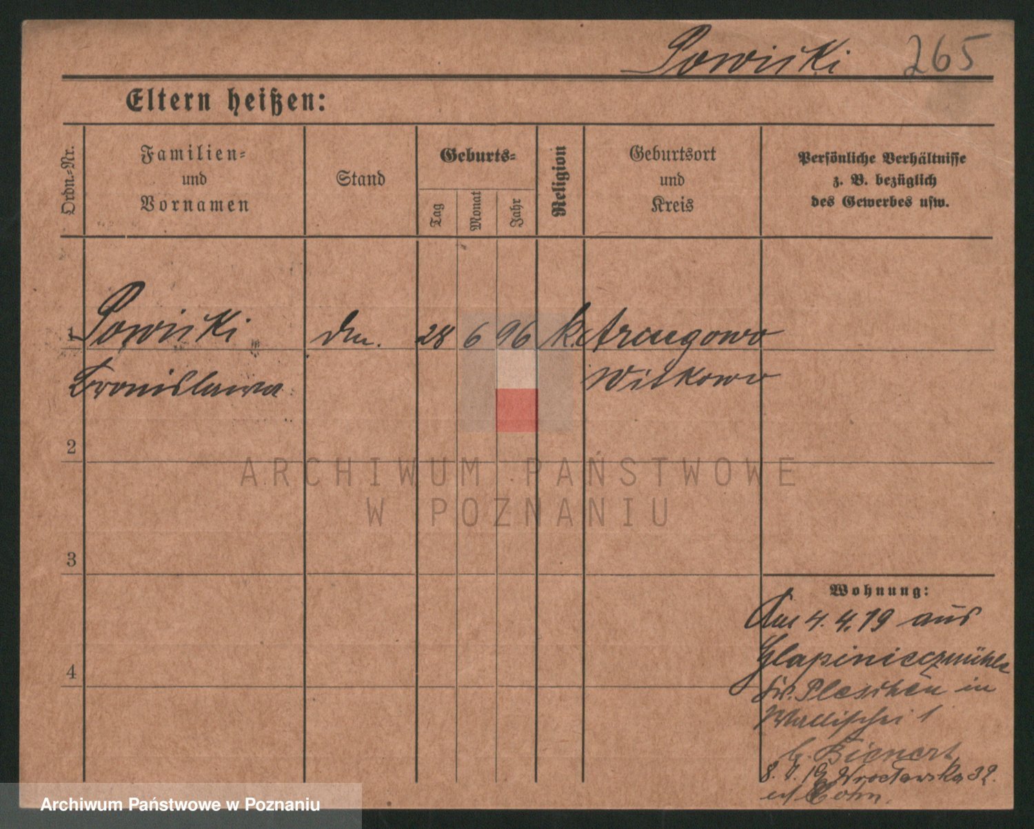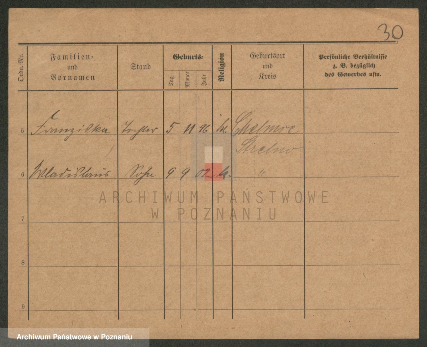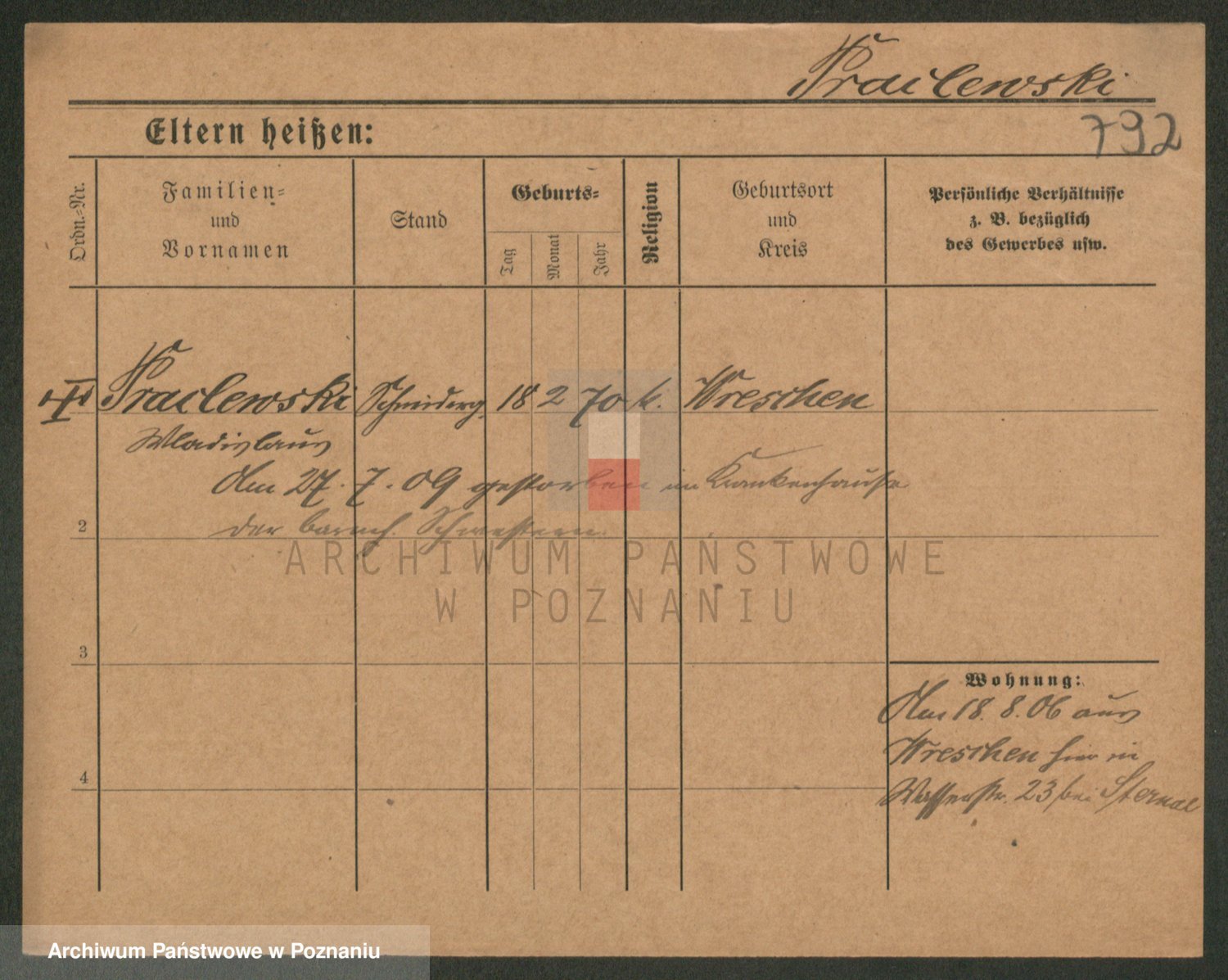 Podgląd karty osobowej dostępny jest po kliknięciu na nazwisko lub ikonkę karty. Można dokonywać powiększenia (ikony na górze) lub przechodzić między kolejnymi skanami (strzałki po bokach).