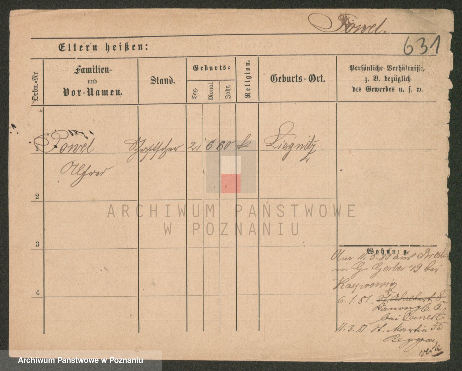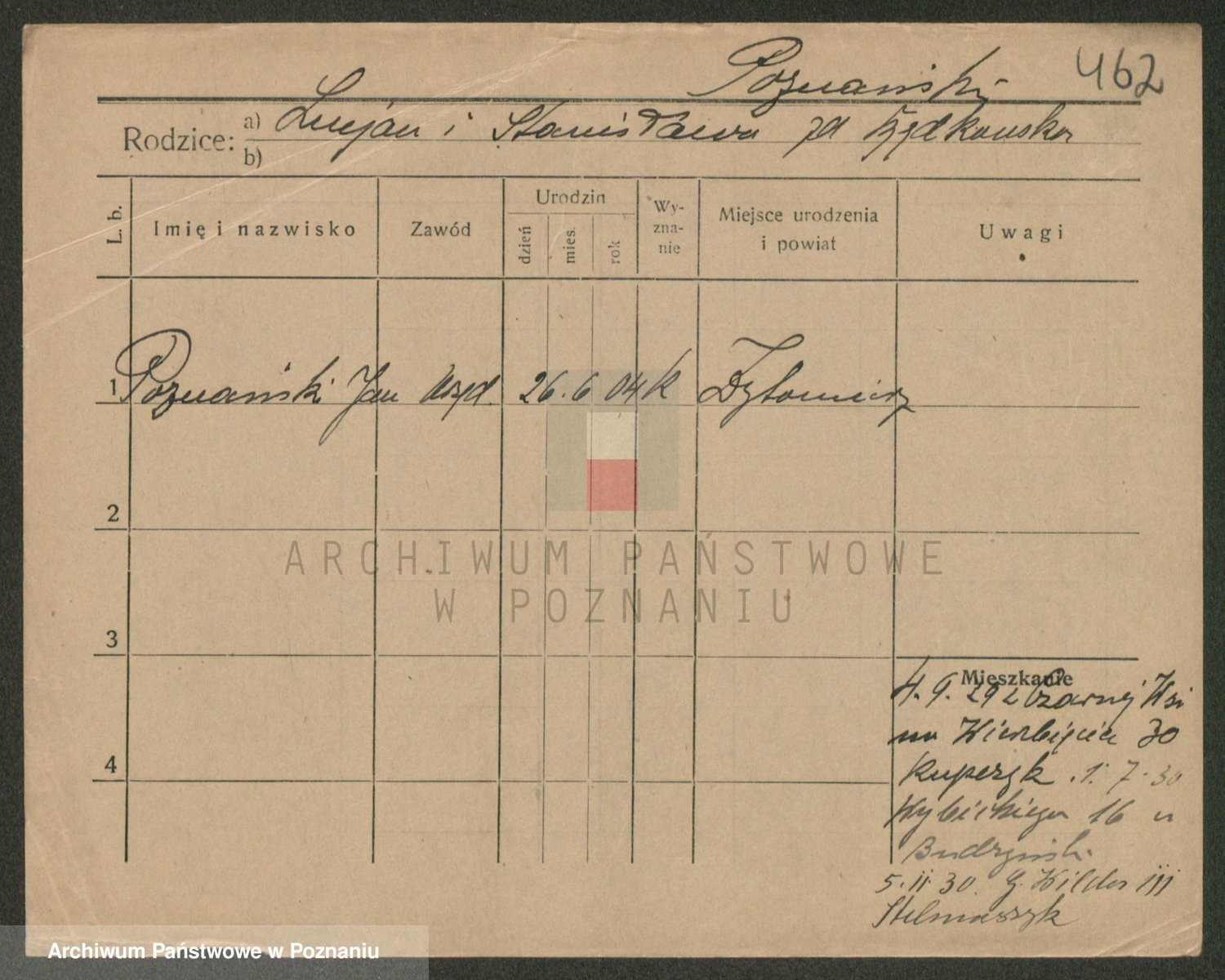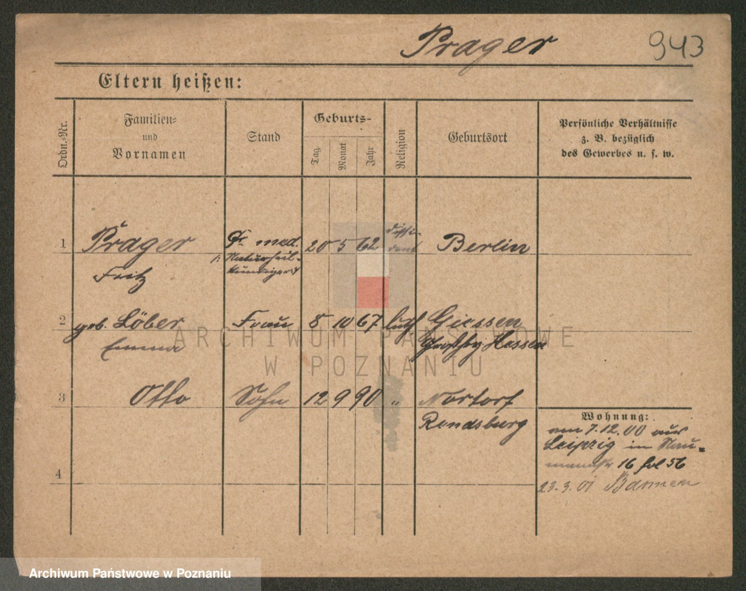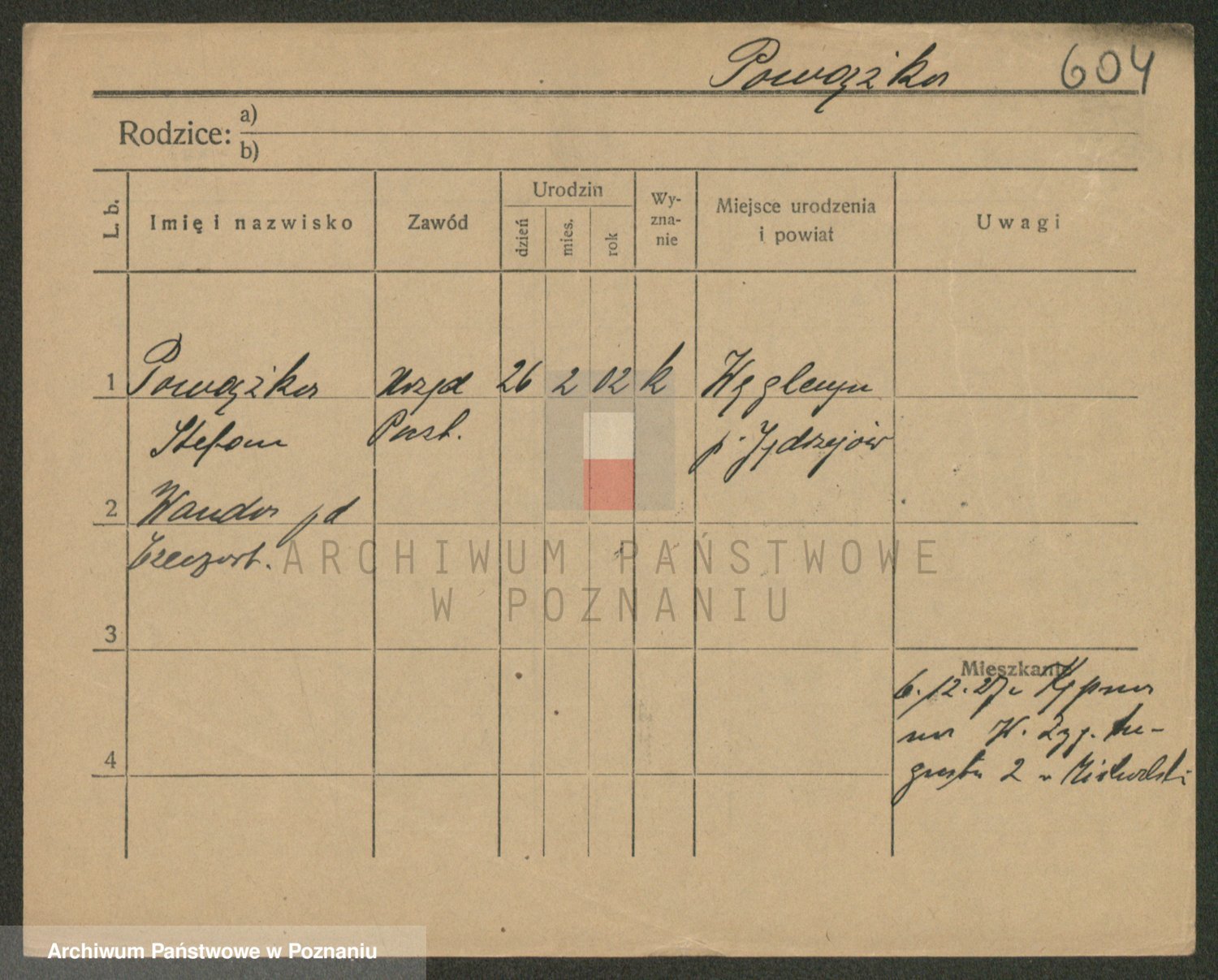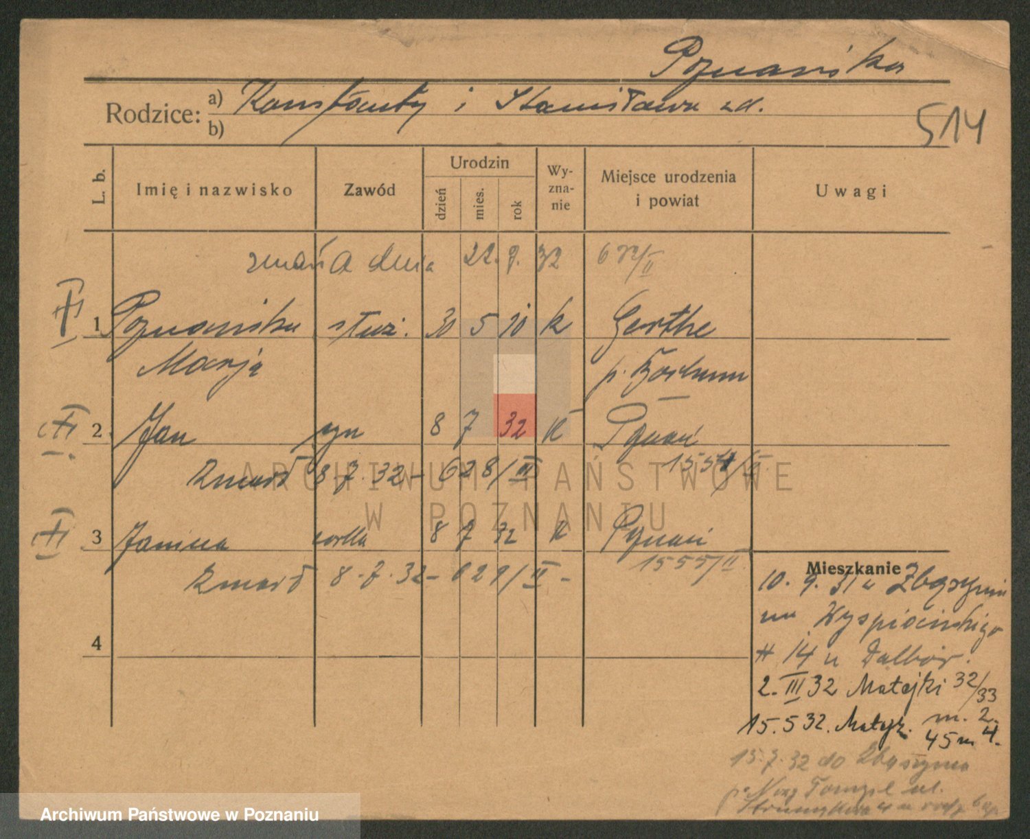 Podgląd karty osobowej dostępny jest po kliknięciu na nazwisko lub ikonkę karty. Można dokonywać powiększenia (ikony na górze) lub przechodzić między kolejnymi skanami (strzałki po bokach).