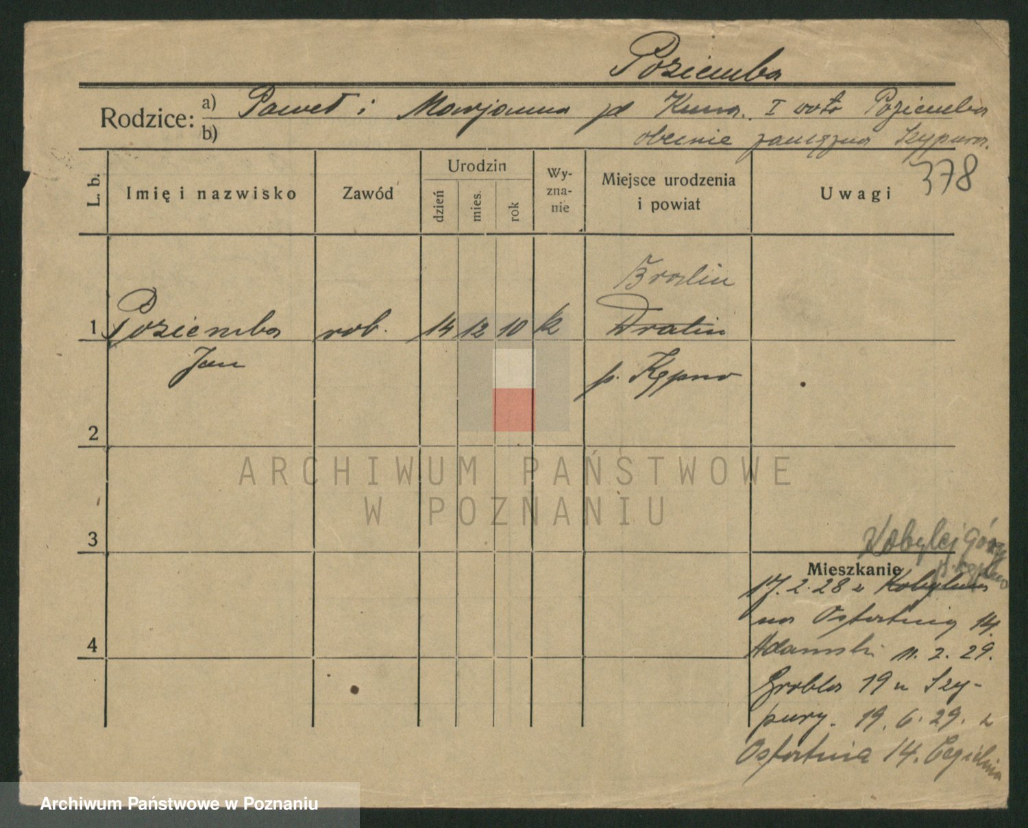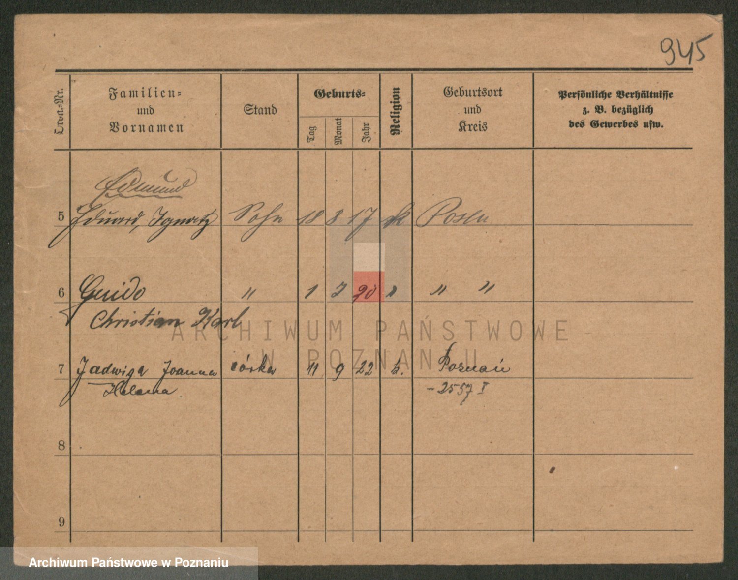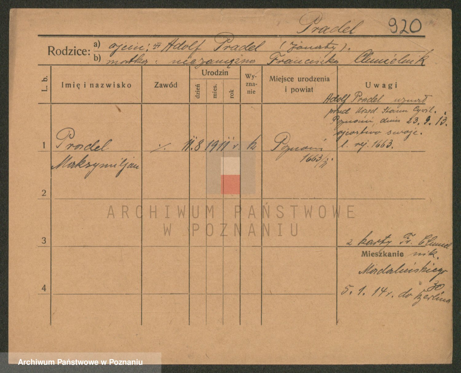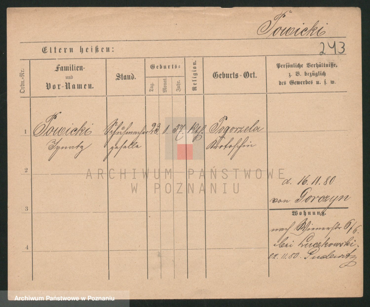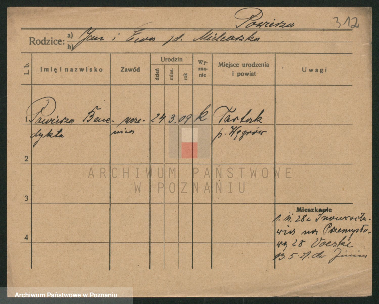 Podgląd karty osobowej dostępny jest po kliknięciu na nazwisko lub ikonkę karty. Można dokonywać powiększenia (ikony na górze) lub przechodzić między kolejnymi skanami (strzałki po bokach).