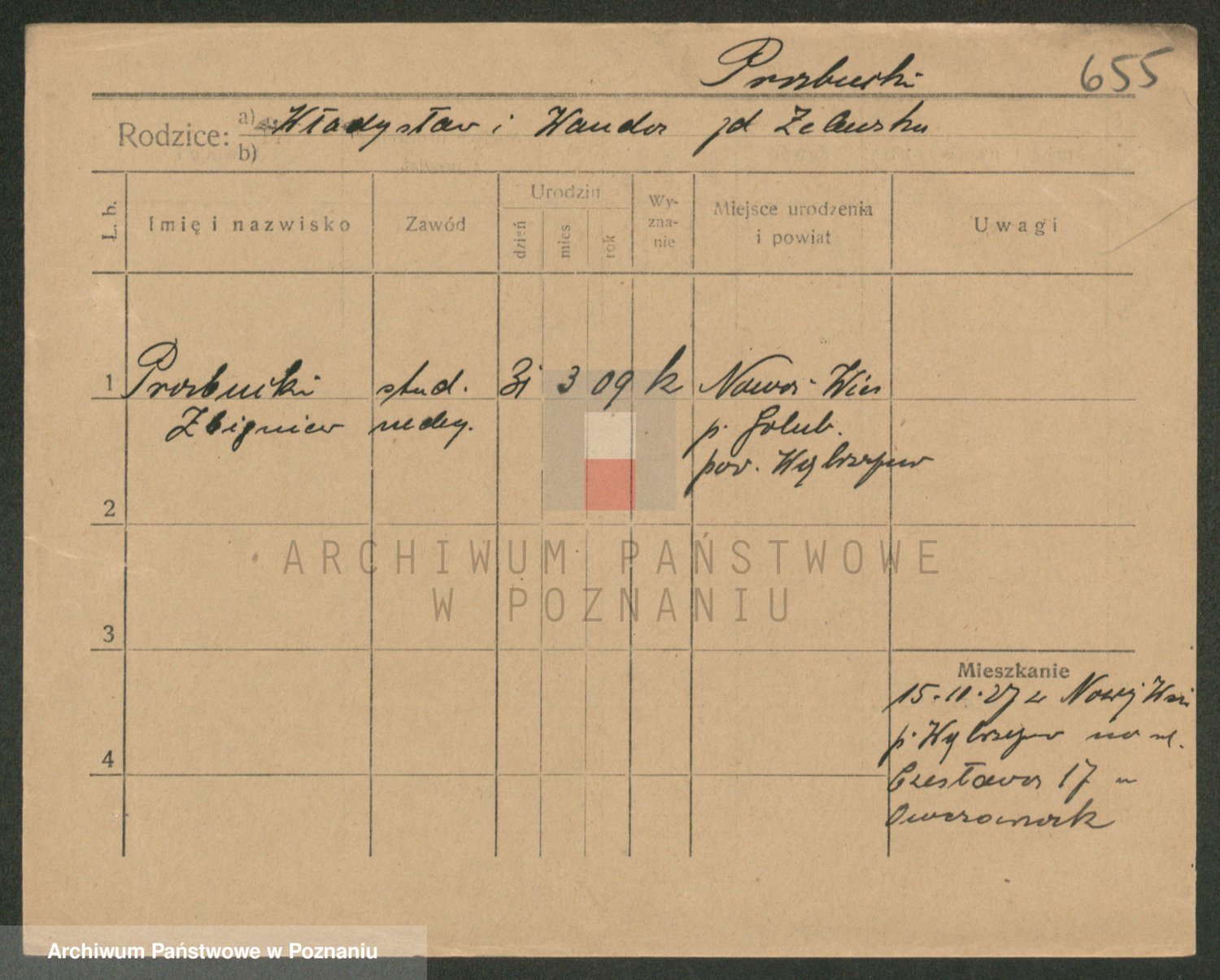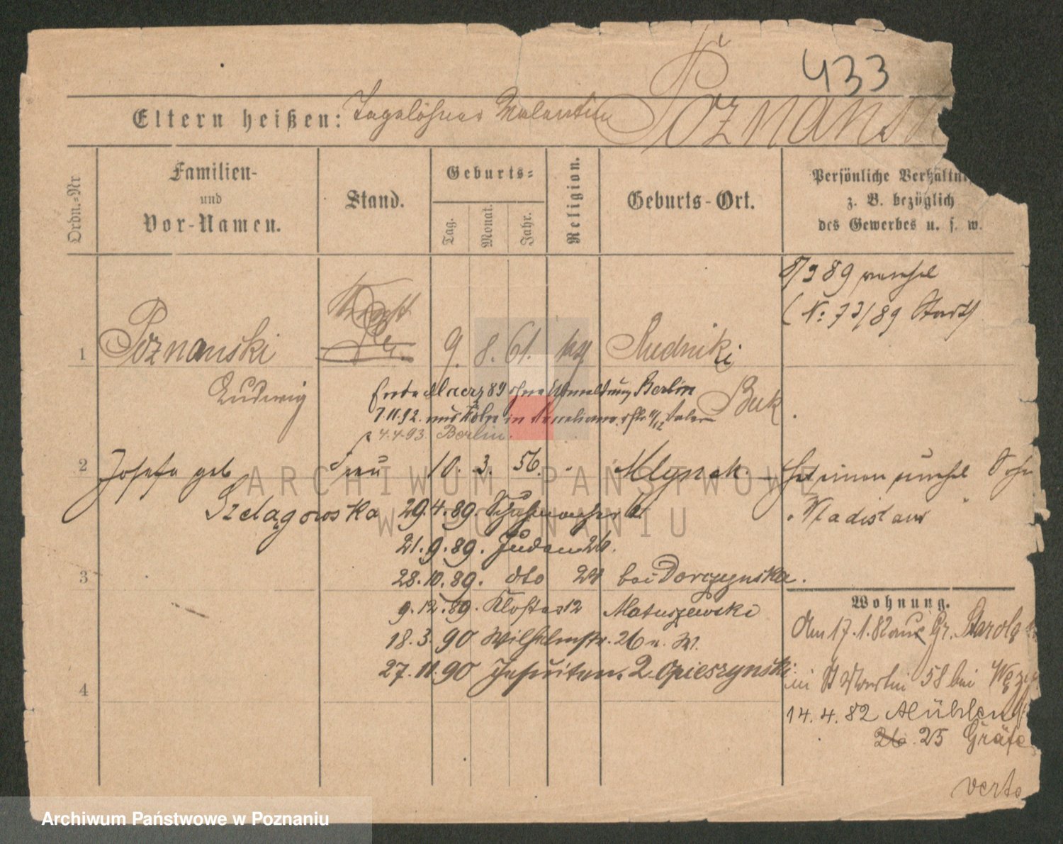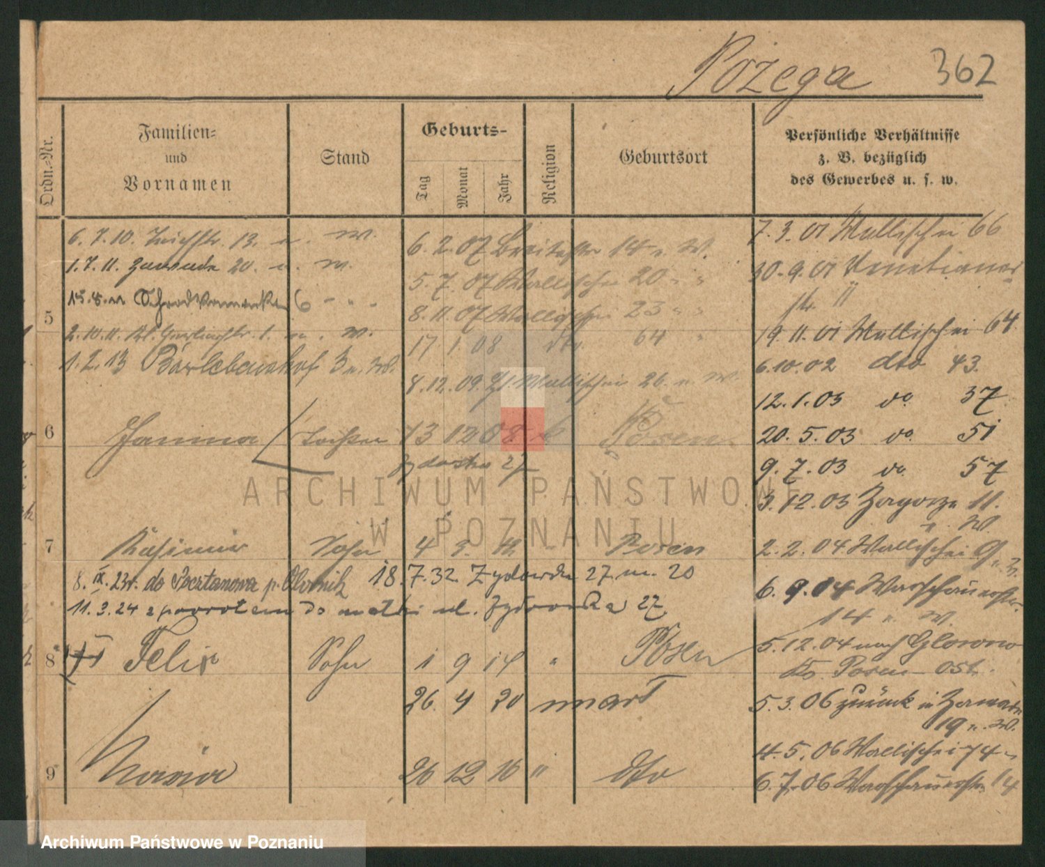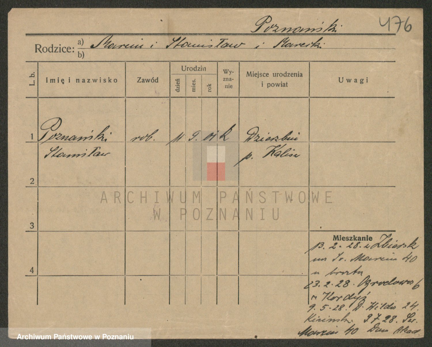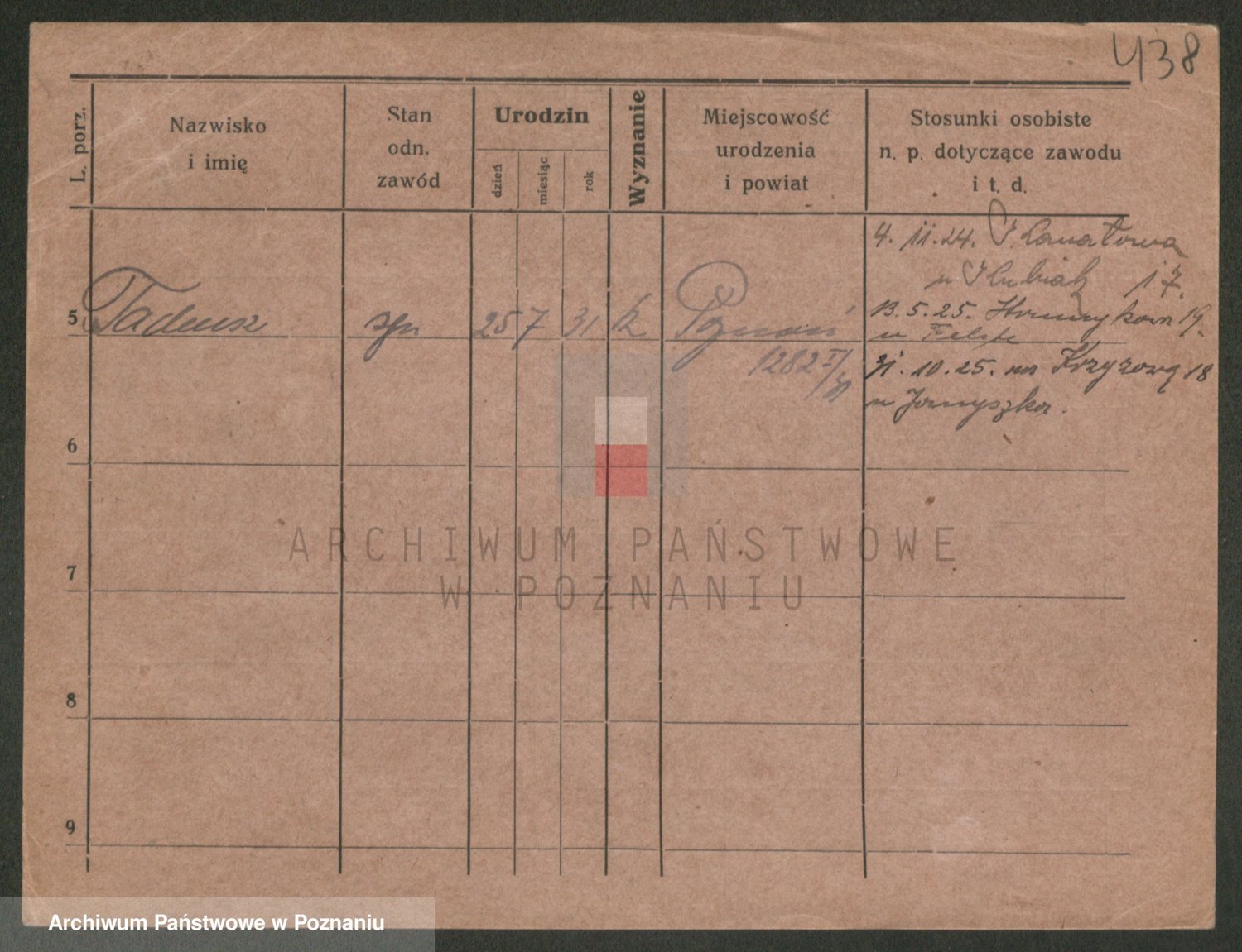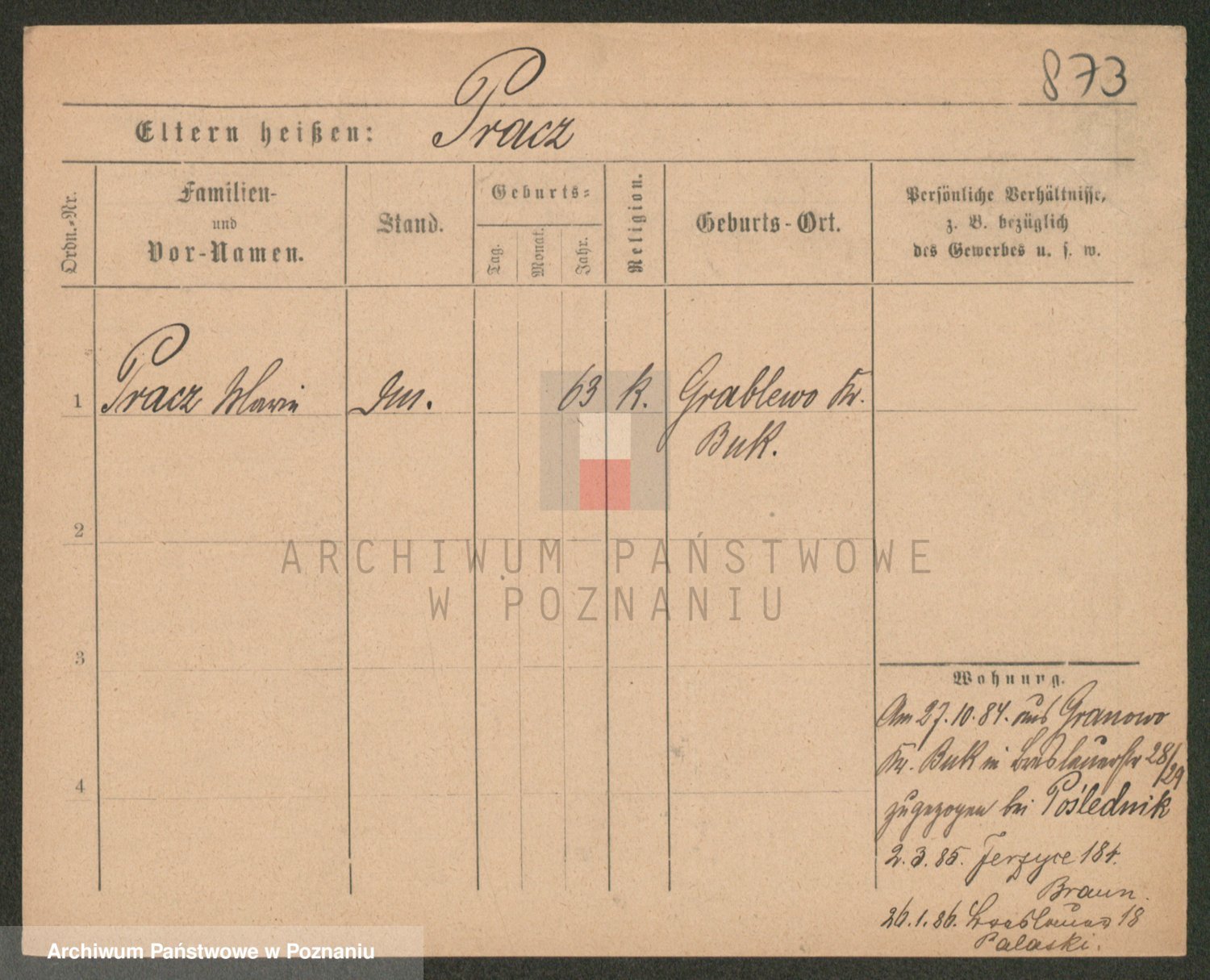 Podgląd karty osobowej dostępny jest po kliknięciu na nazwisko lub ikonkę karty. Można dokonywać powiększenia (ikony na górze) lub przechodzić między kolejnymi skanami (strzałki po bokach).
