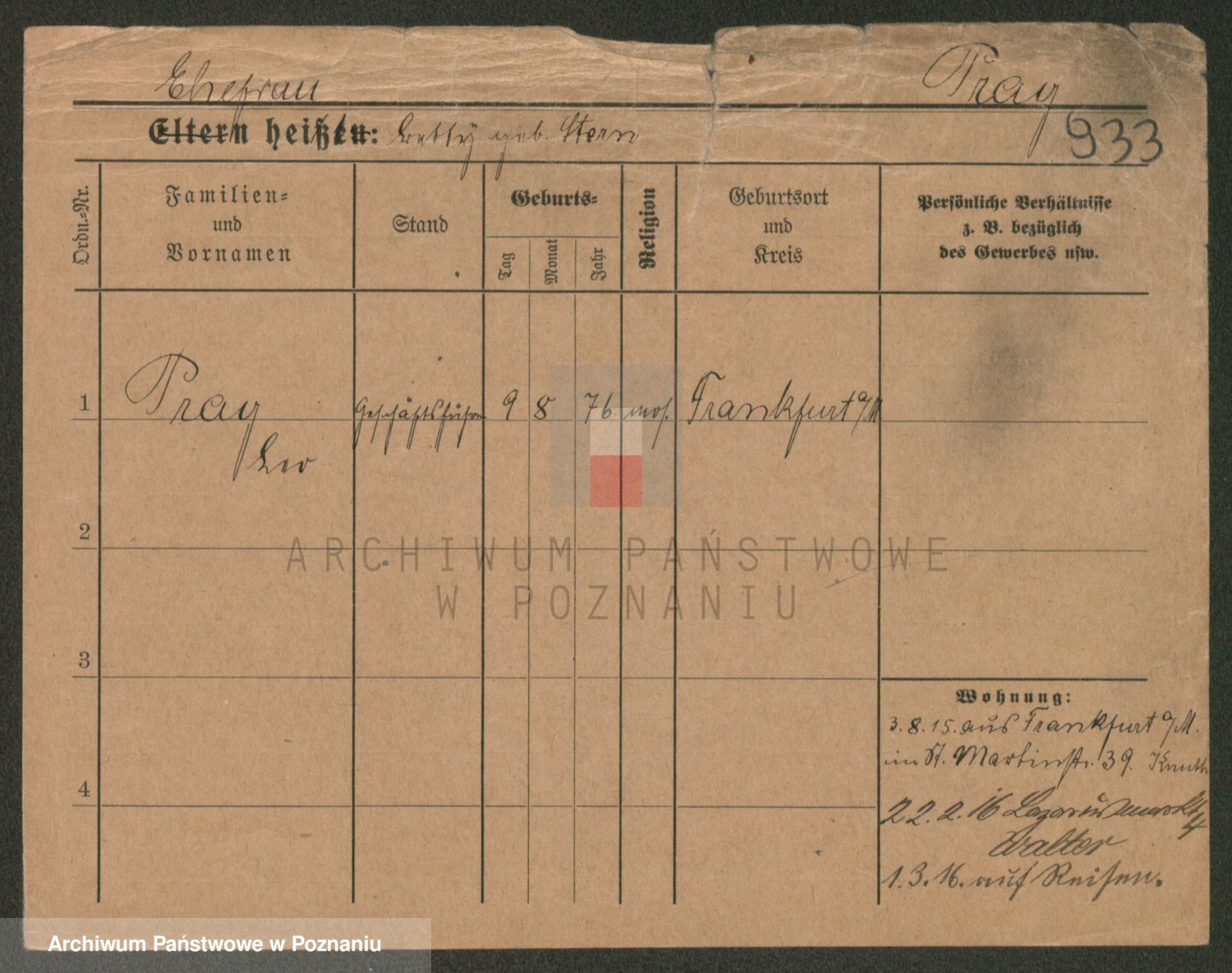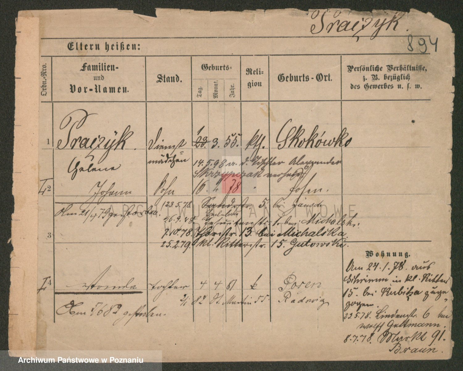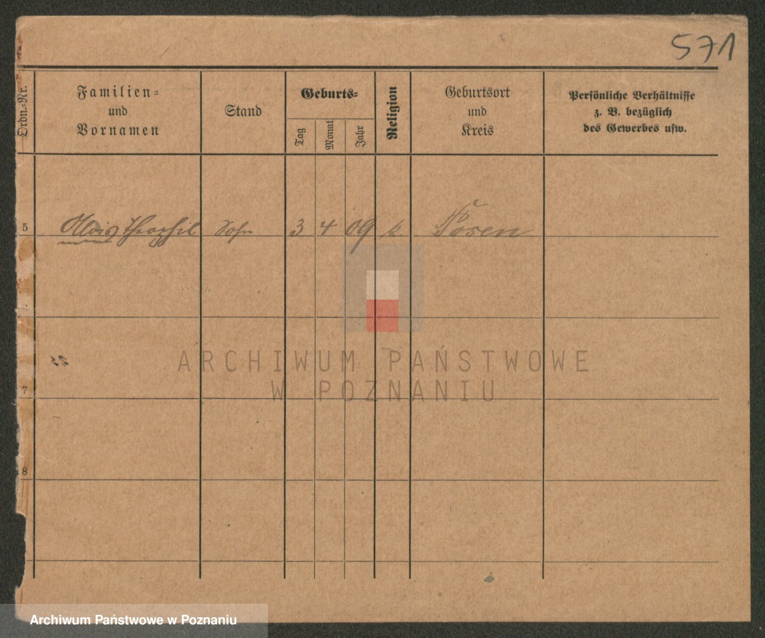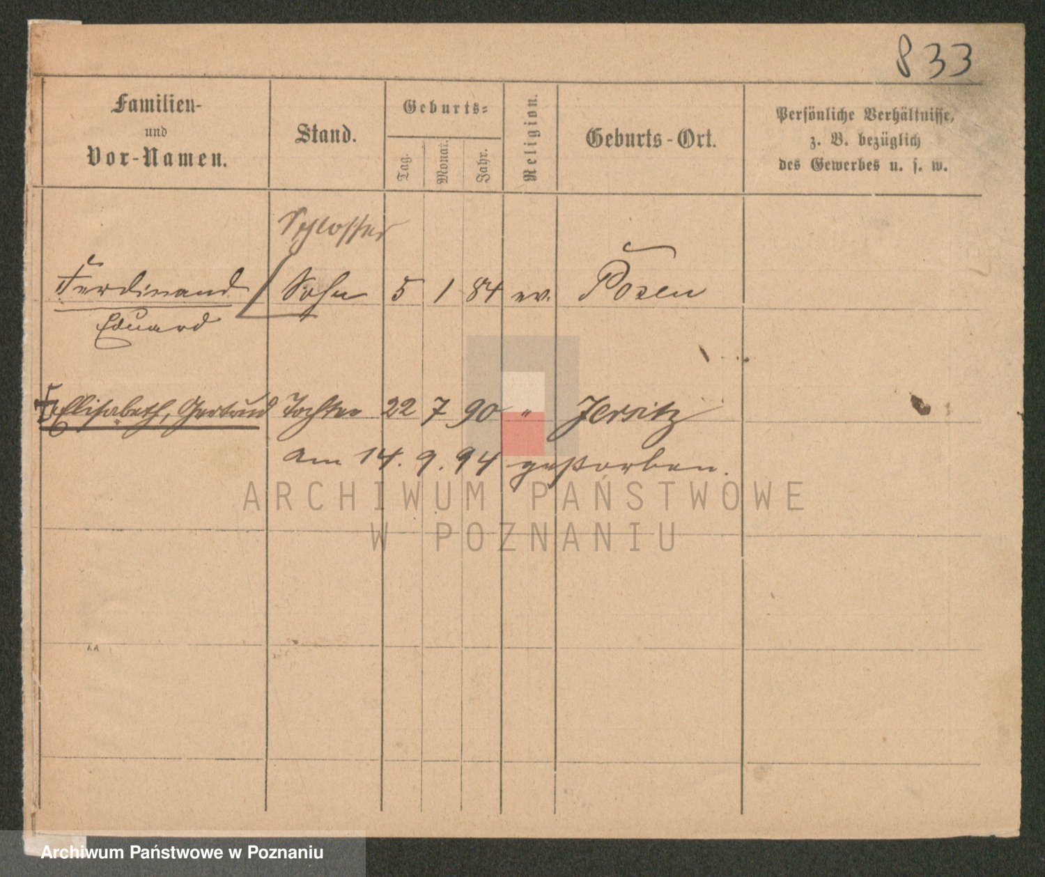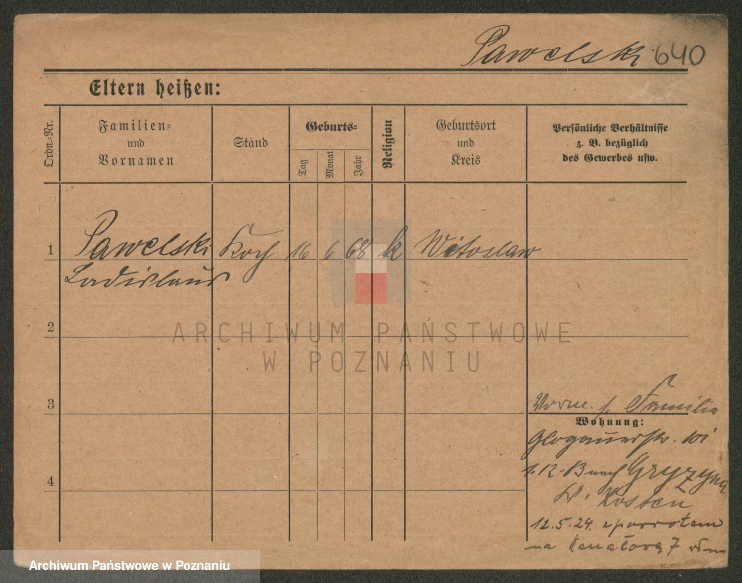 Podgląd karty osobowej dostępny jest po kliknięciu na nazwisko lub ikonkę karty. Można dokonywać powiększenia (ikony na górze) lub przechodzić między kolejnymi skanami (strzałki po bokach).