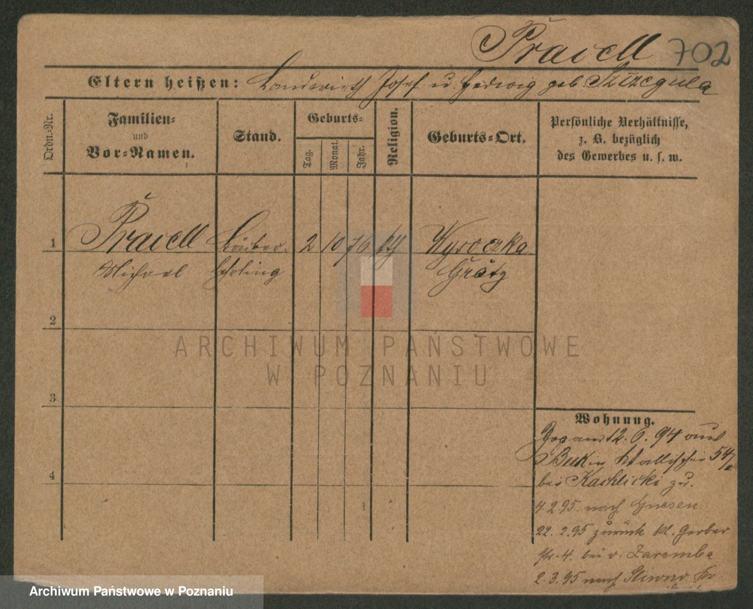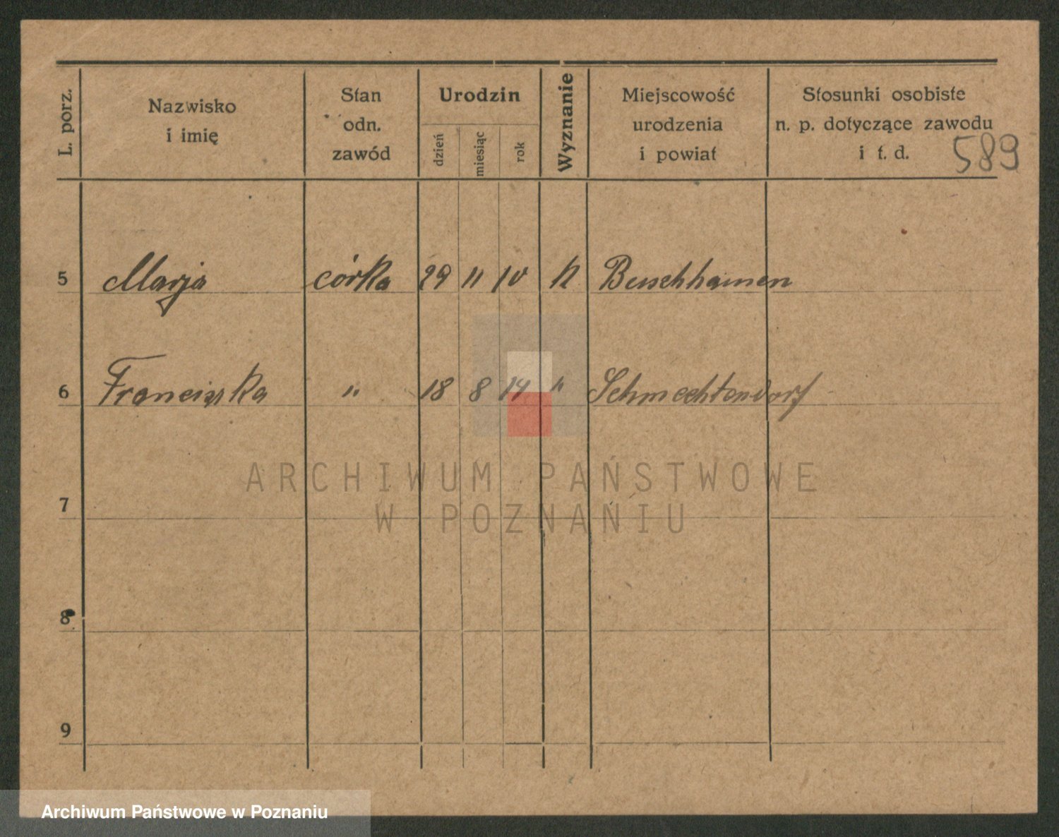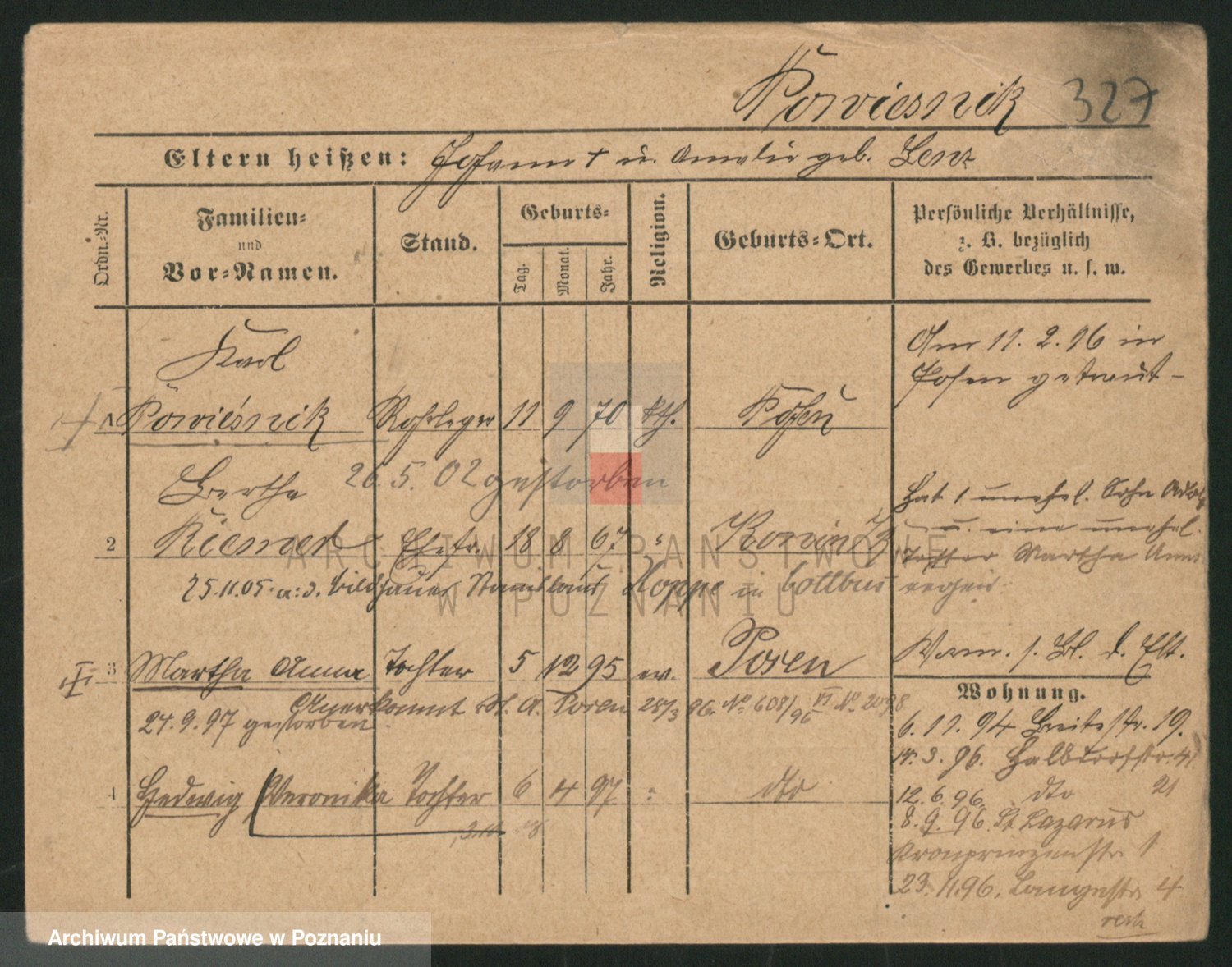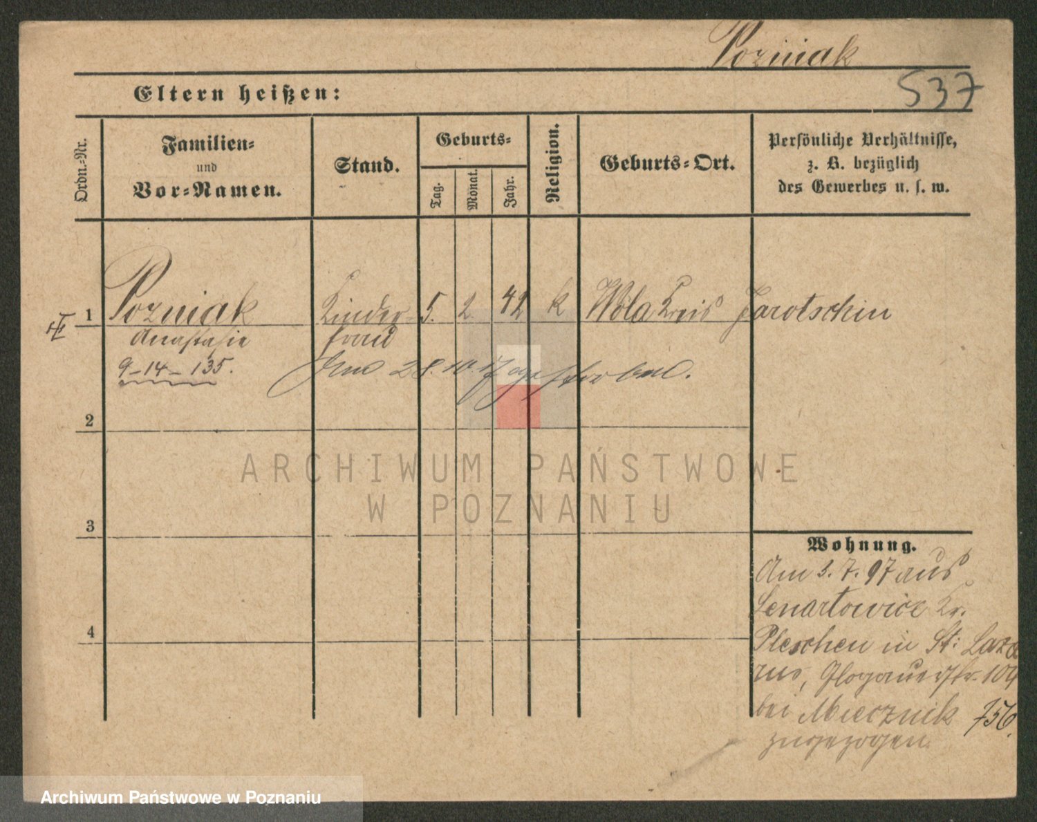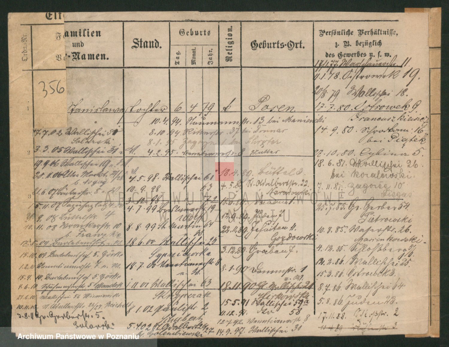 Podgląd karty osobowej dostępny jest po kliknięciu na nazwisko lub ikonkę karty. Można dokonywać powiększenia (ikony na górze) lub przechodzić między kolejnymi skanami (strzałki po bokach).
