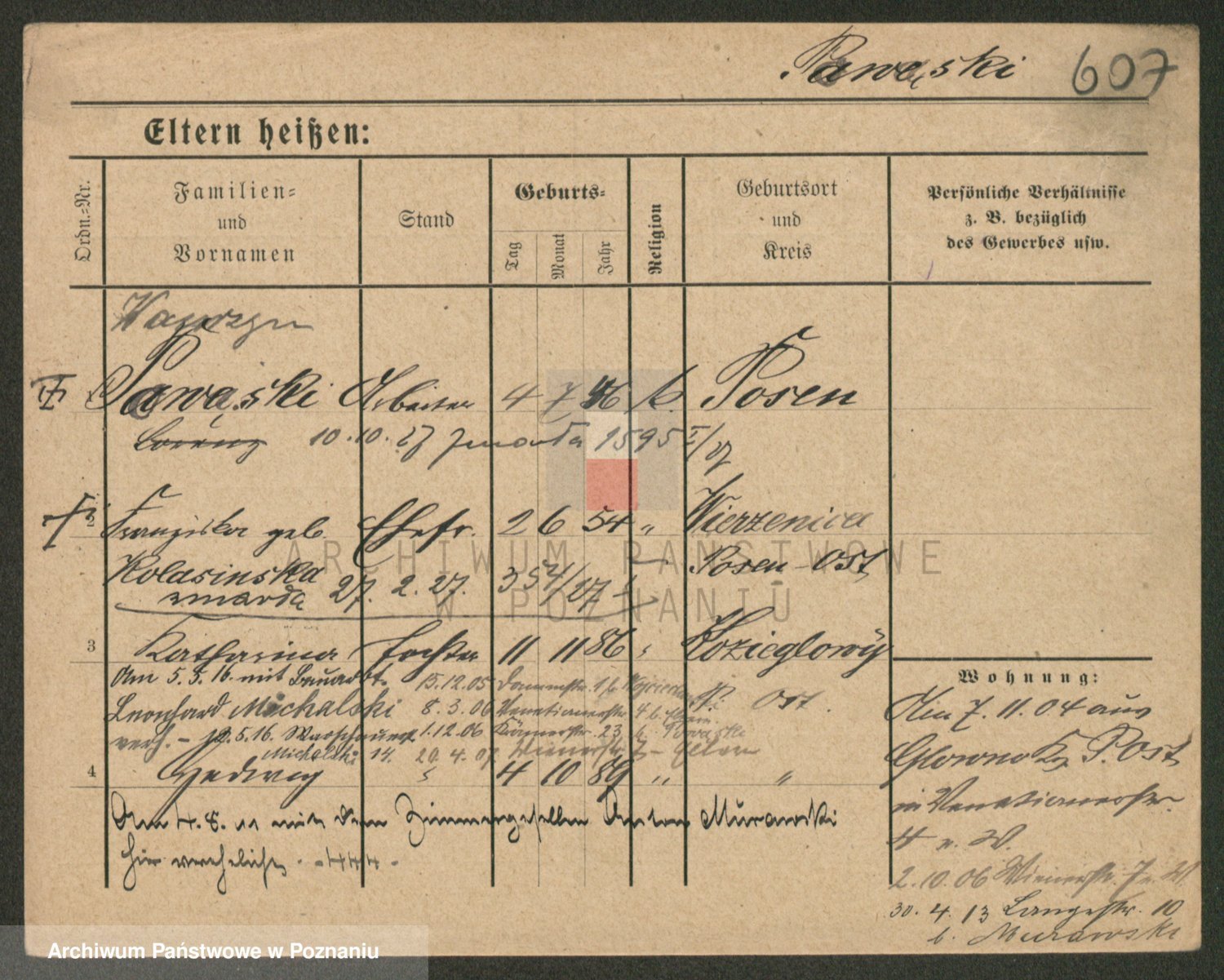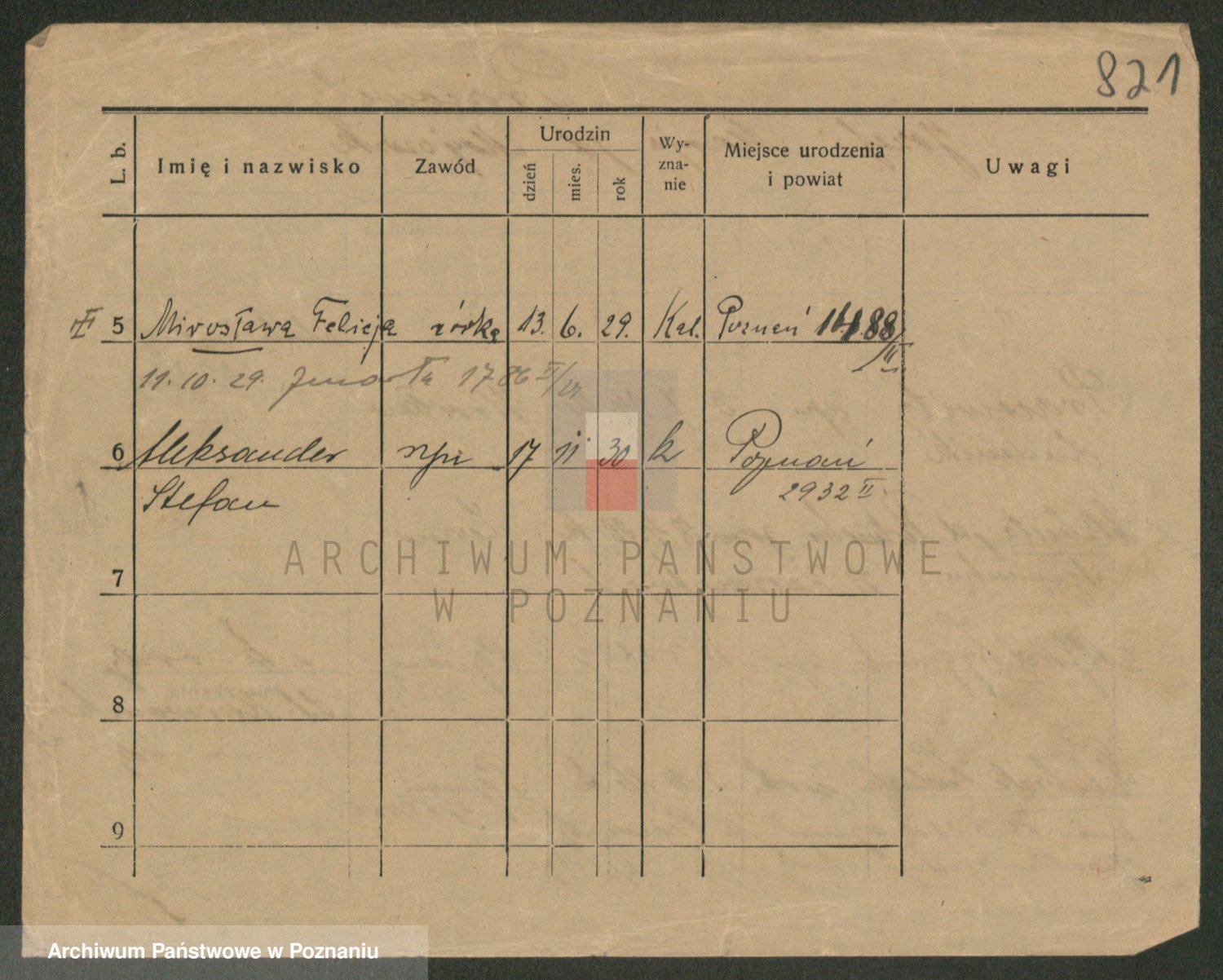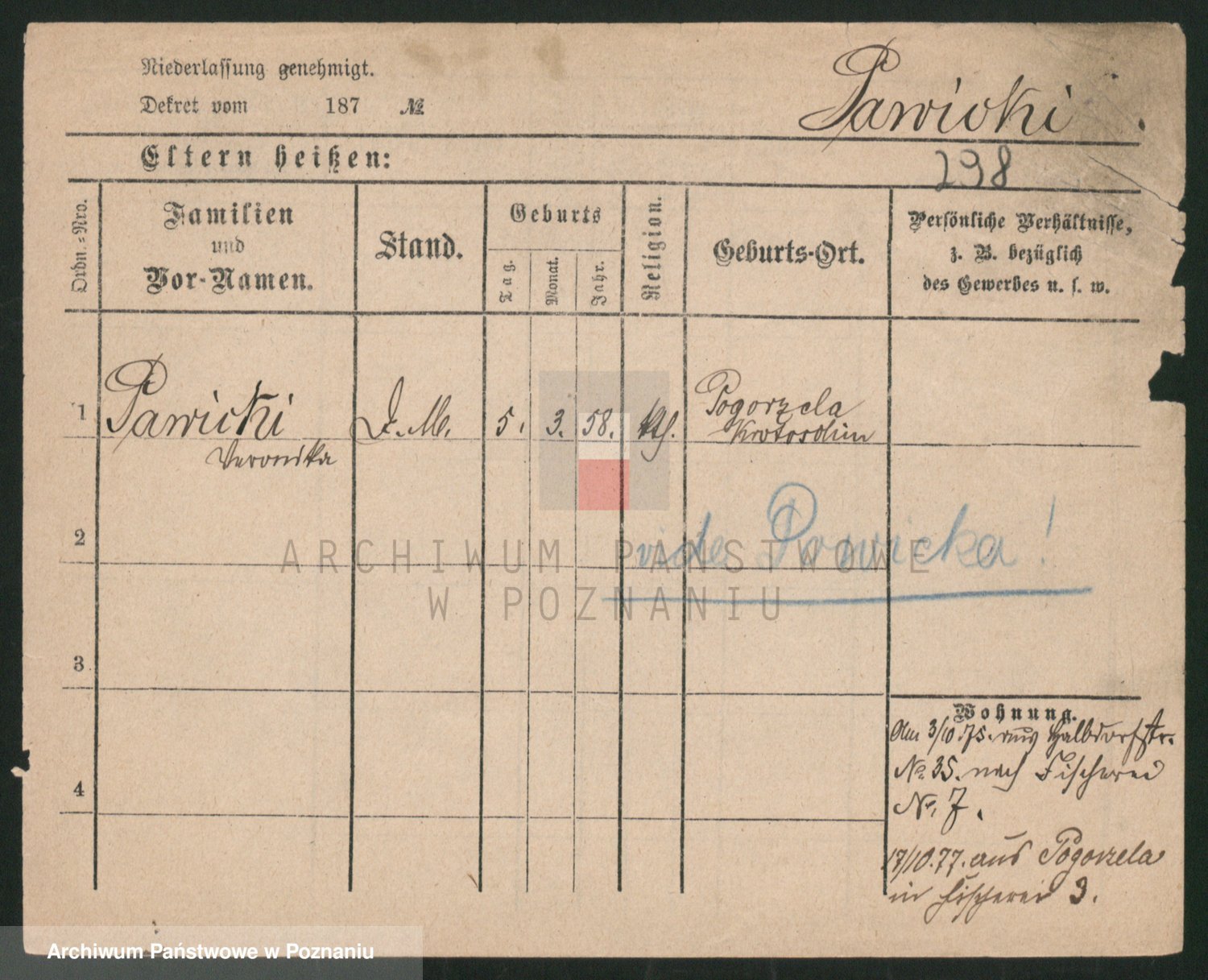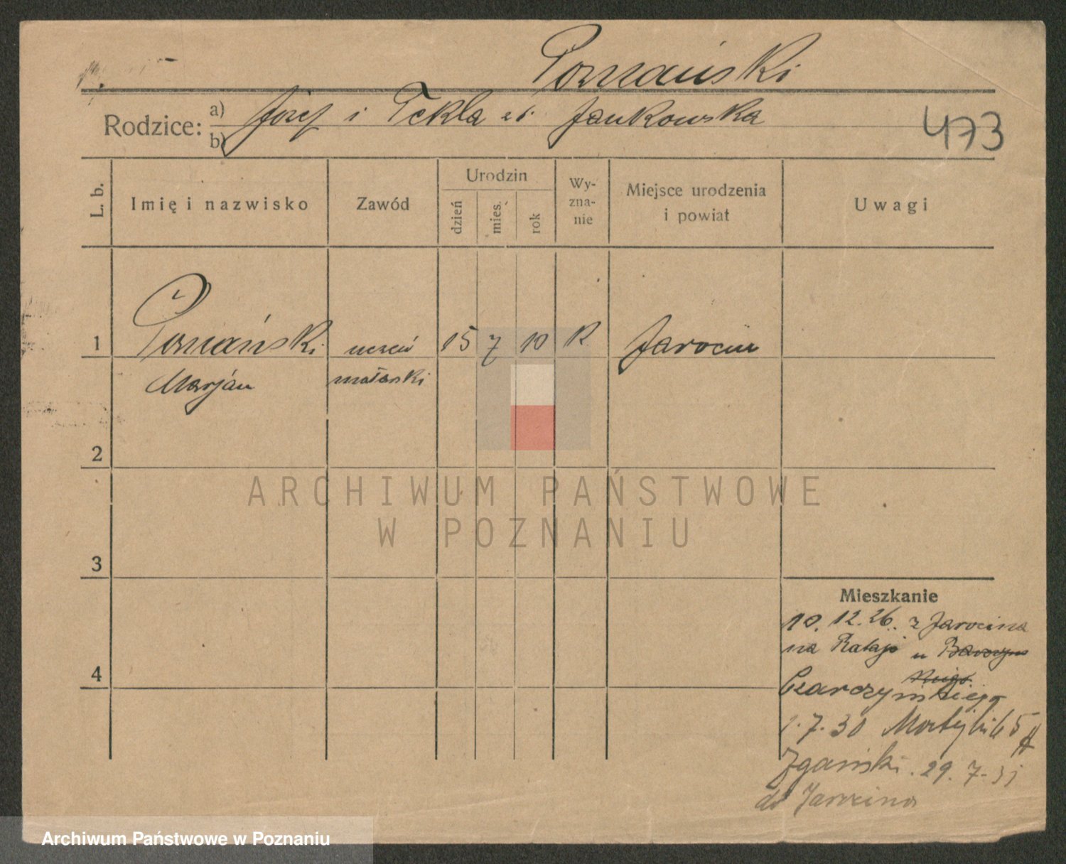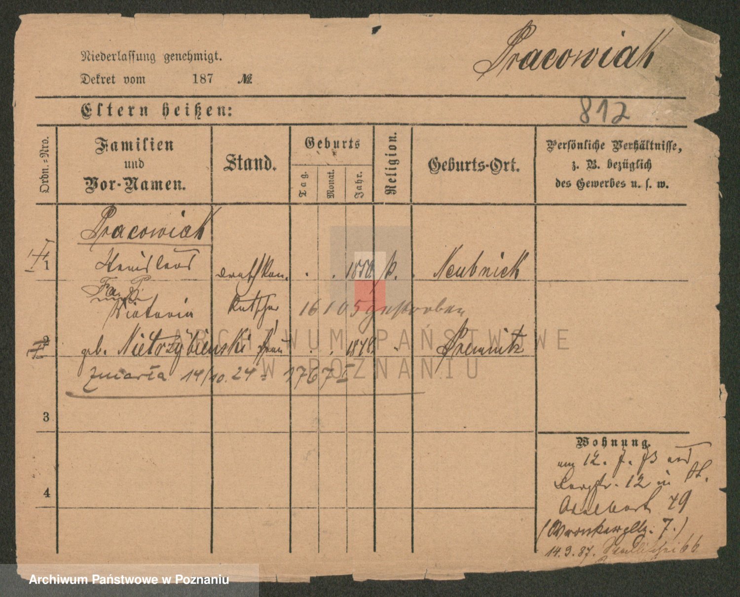 Podgląd karty osobowej dostępny jest po kliknięciu na nazwisko lub ikonkę karty. Można dokonywać powiększenia (ikony na górze) lub przechodzić między kolejnymi skanami (strzałki po bokach).