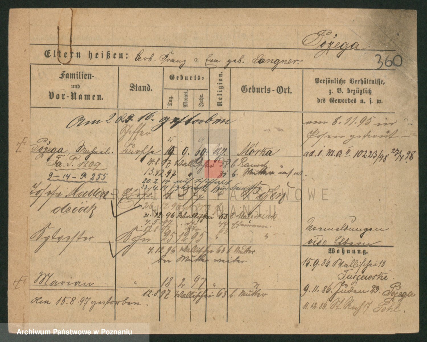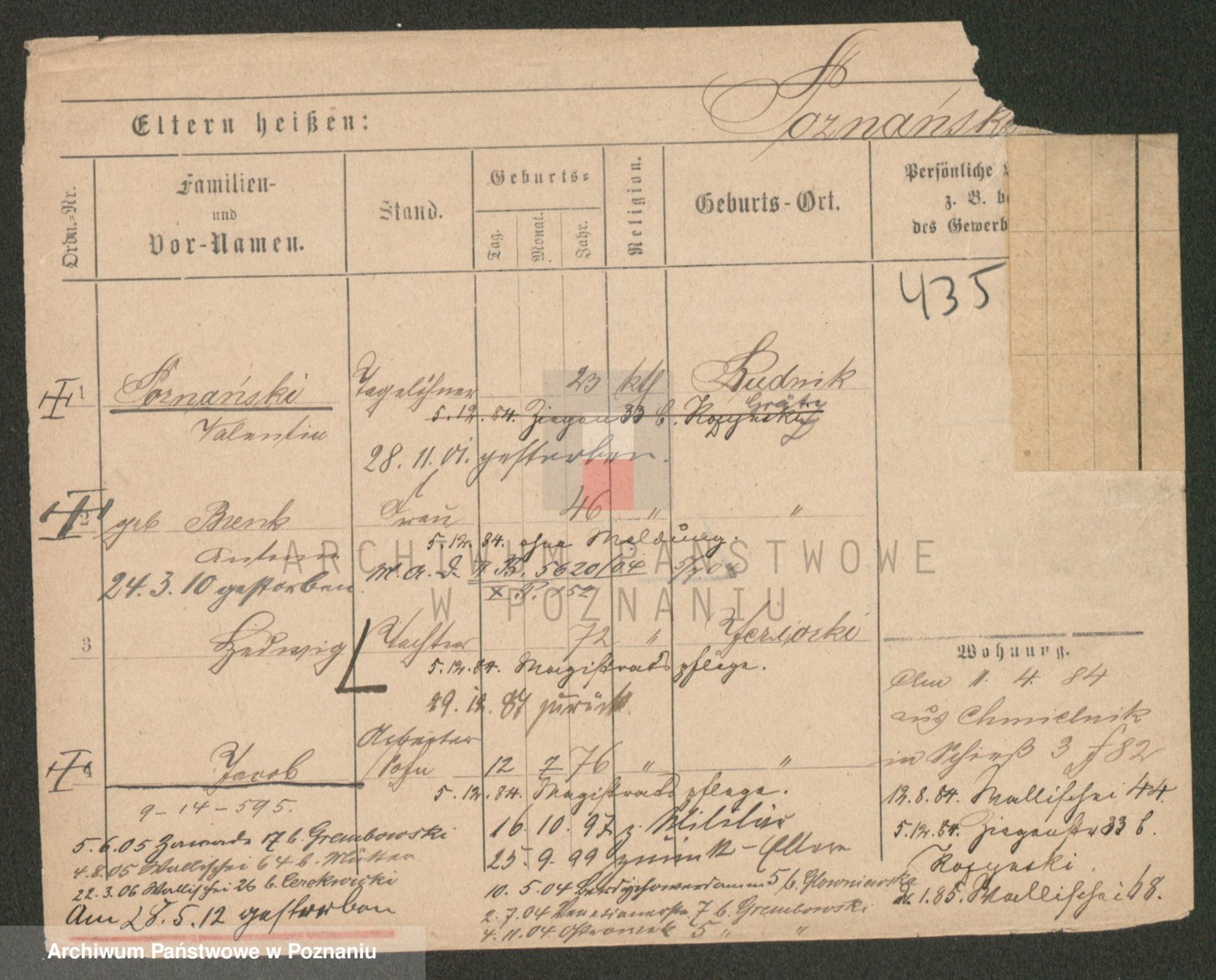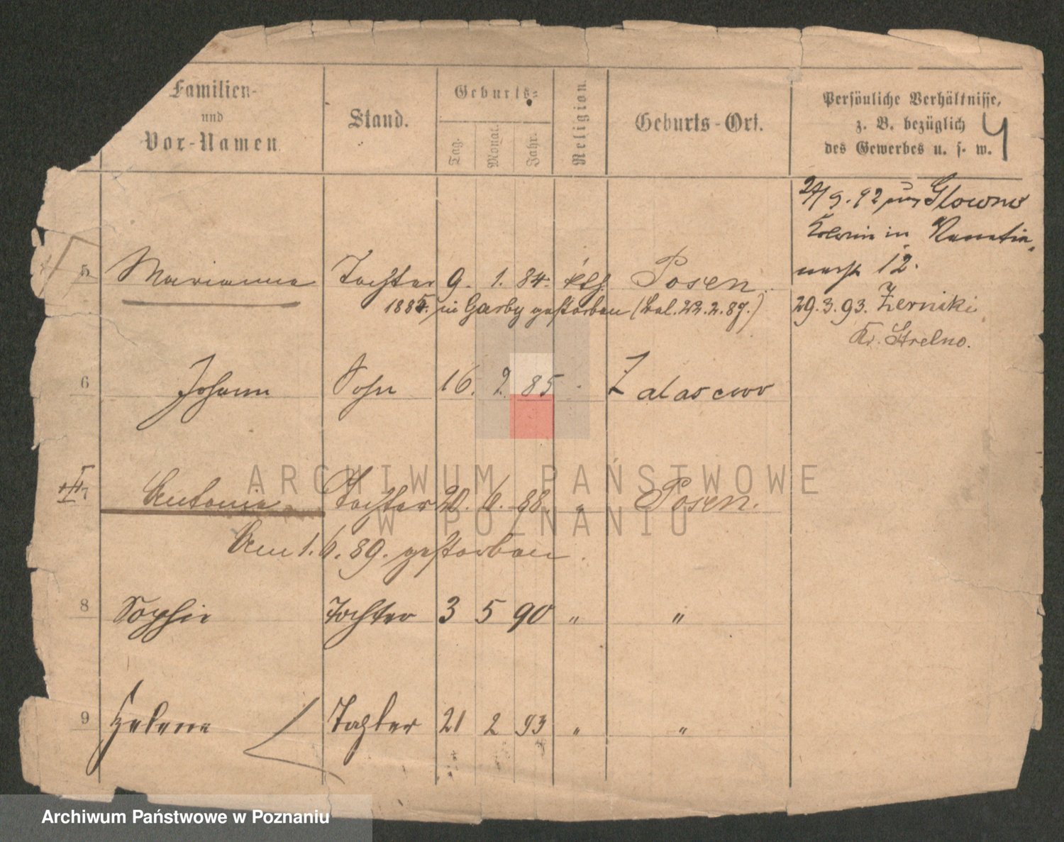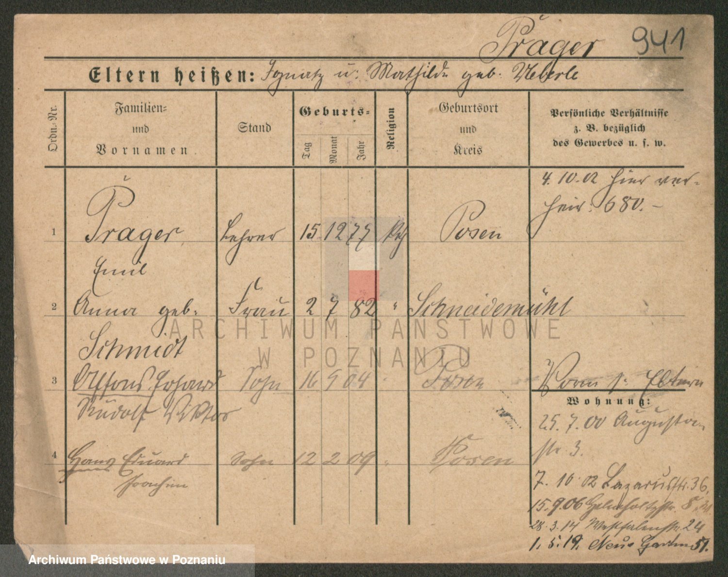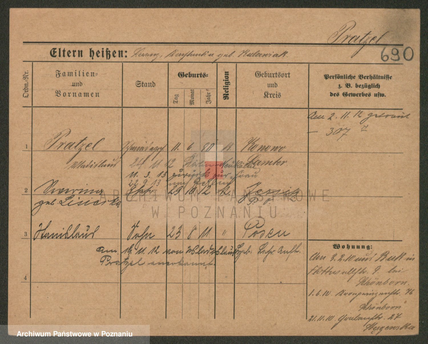 Podgląd karty osobowej dostępny jest po kliknięciu na nazwisko lub ikonkę karty. Można dokonywać powiększenia (ikony na górze) lub przechodzić między kolejnymi skanami (strzałki po bokach).