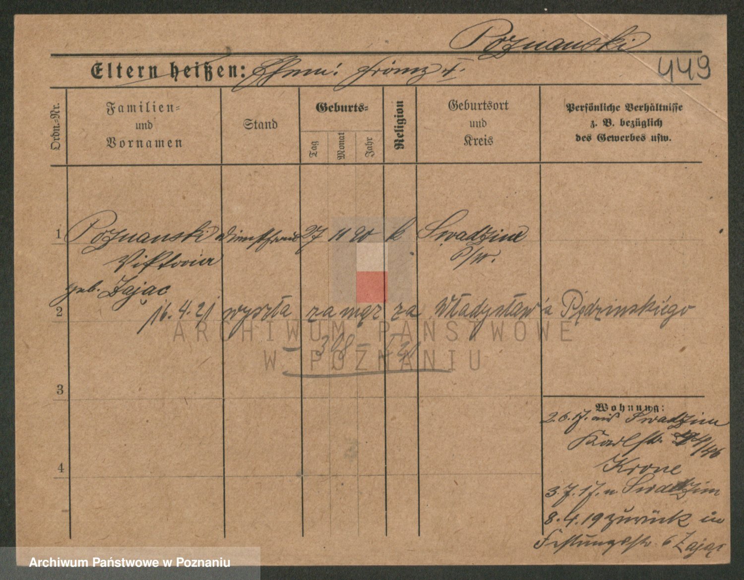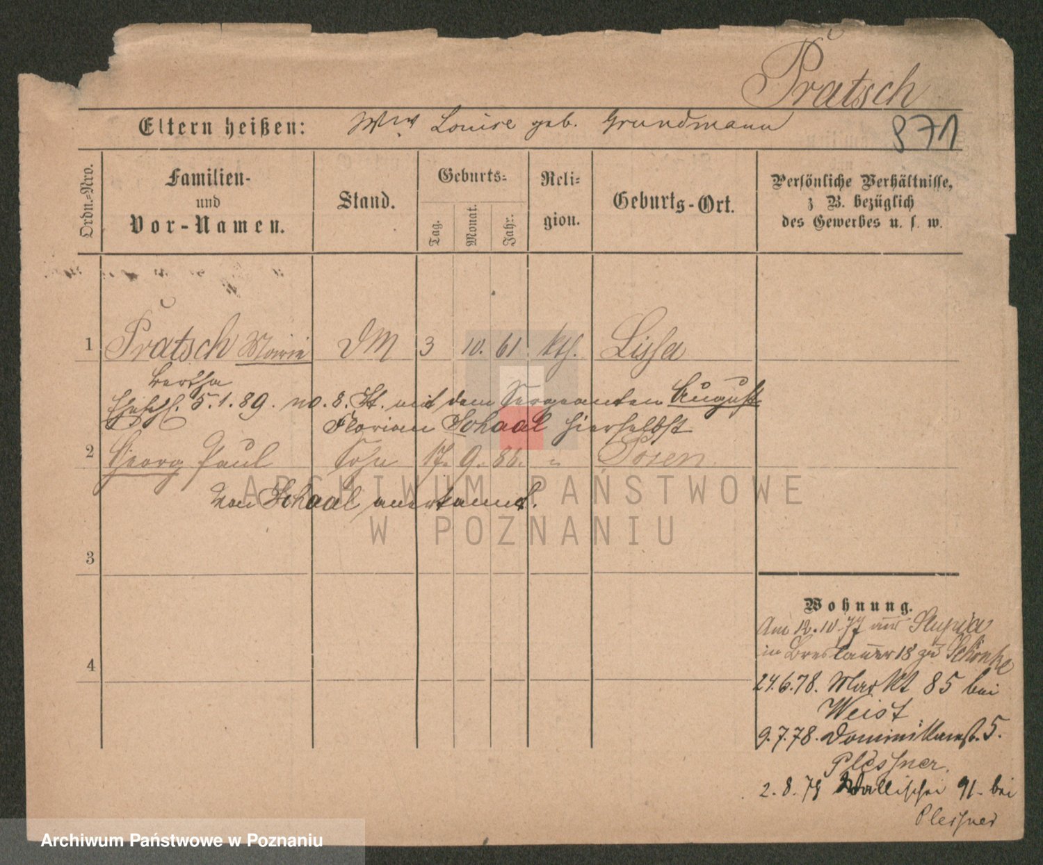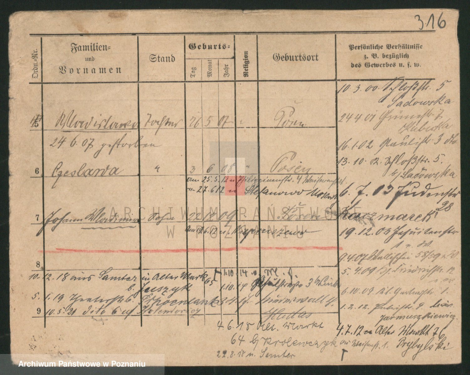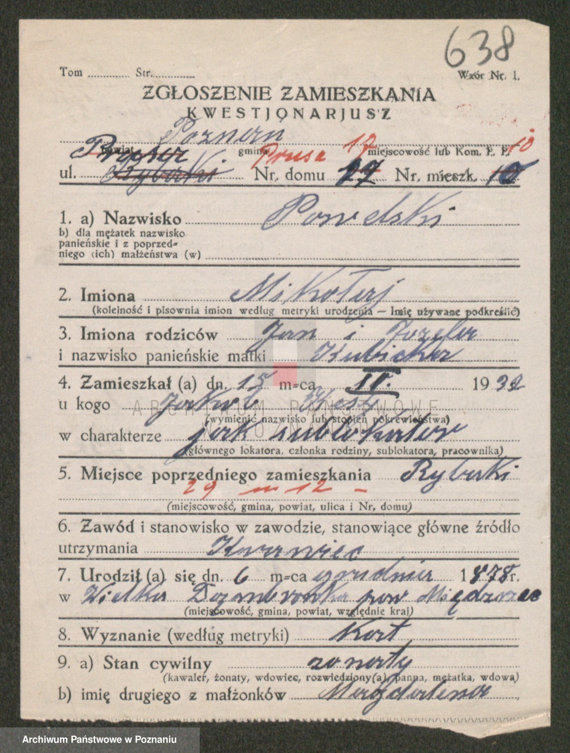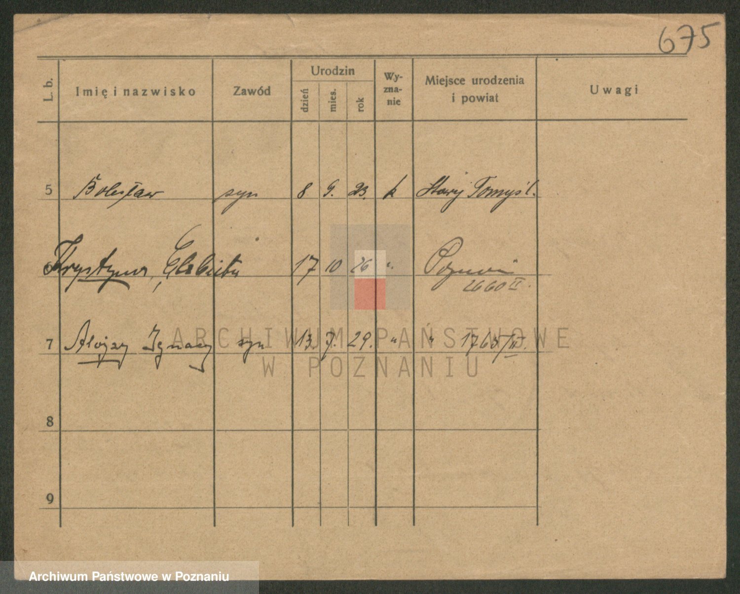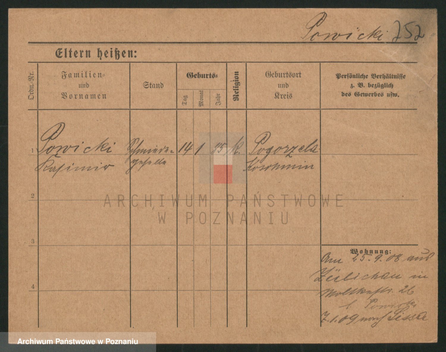 Podgląd karty osobowej dostępny jest po kliknięciu na nazwisko lub ikonkę karty. Można dokonywać powiększenia (ikony na górze) lub przechodzić między kolejnymi skanami (strzałki po bokach).