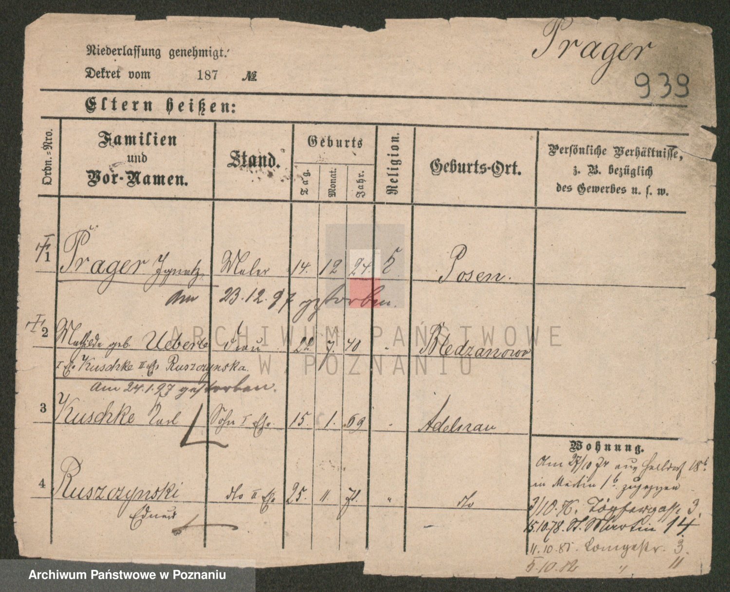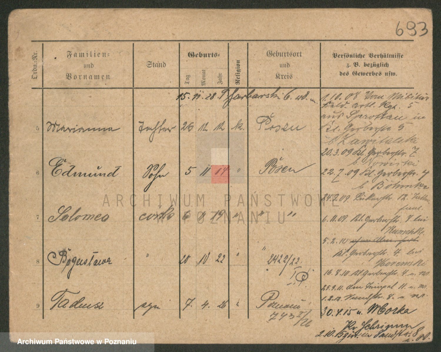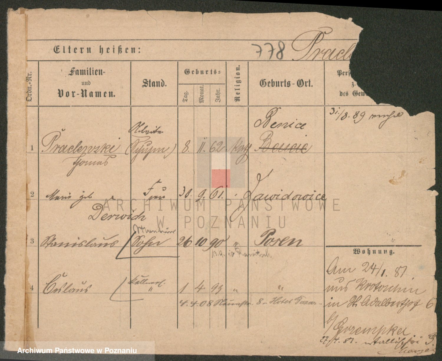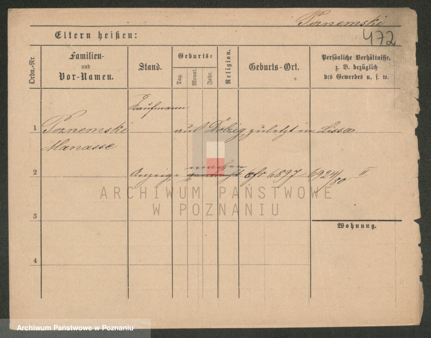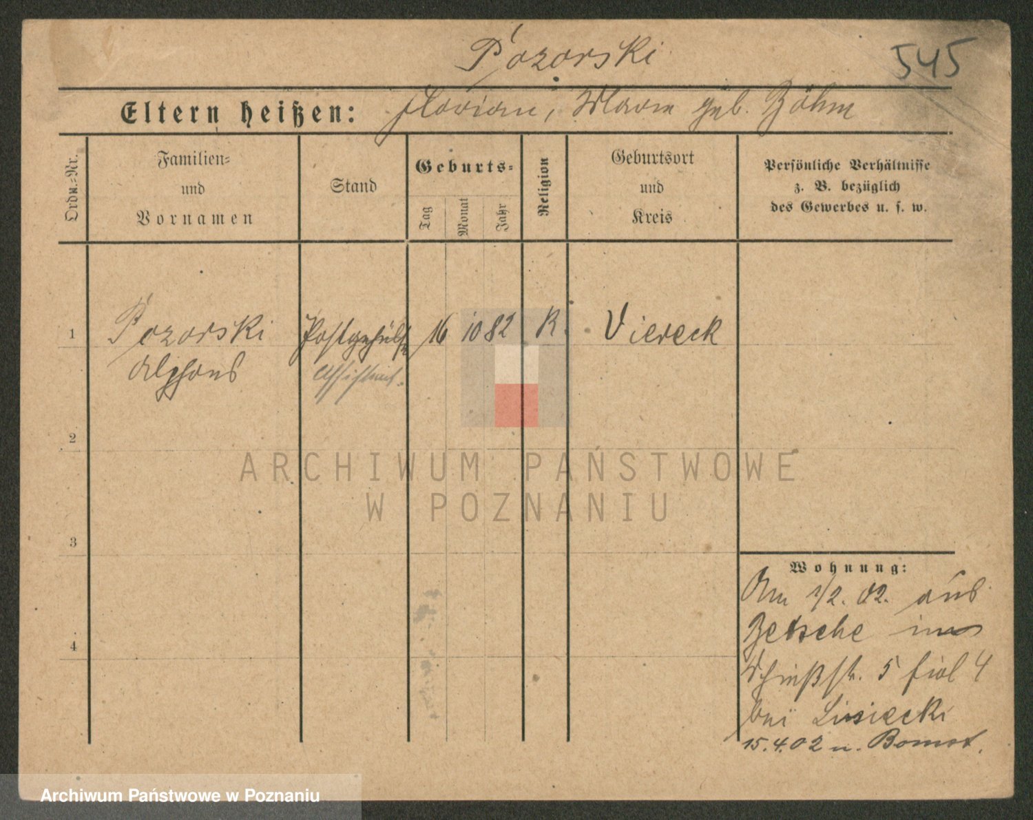 Podgląd karty osobowej dostępny jest po kliknięciu na nazwisko lub ikonkę karty. Można dokonywać powiększenia (ikony na górze) lub przechodzić między kolejnymi skanami (strzałki po bokach).