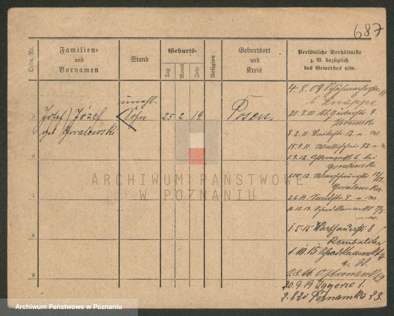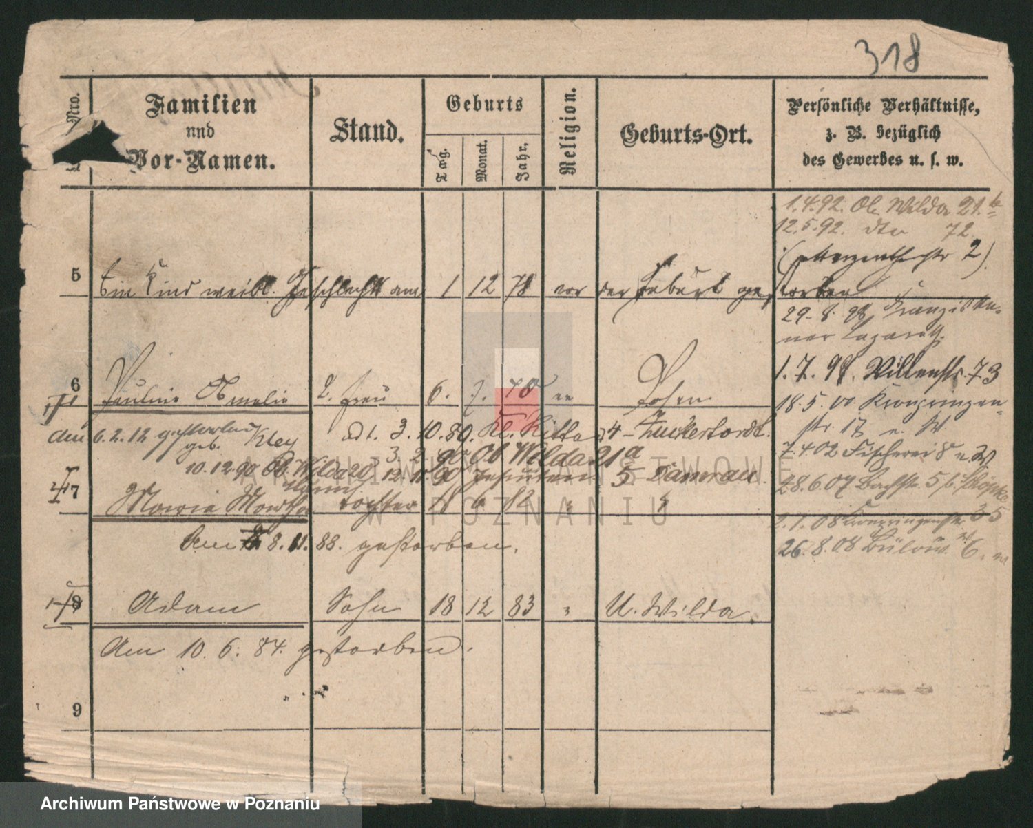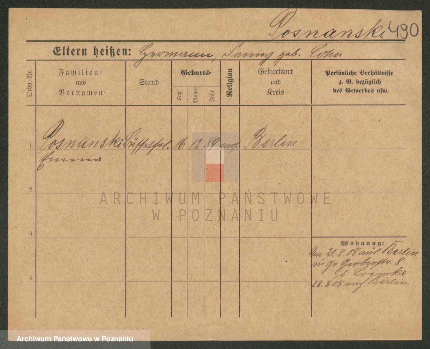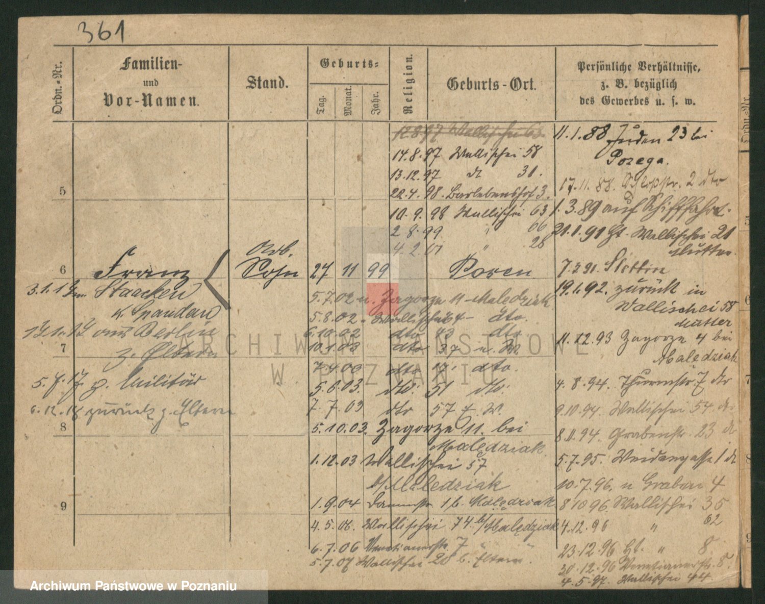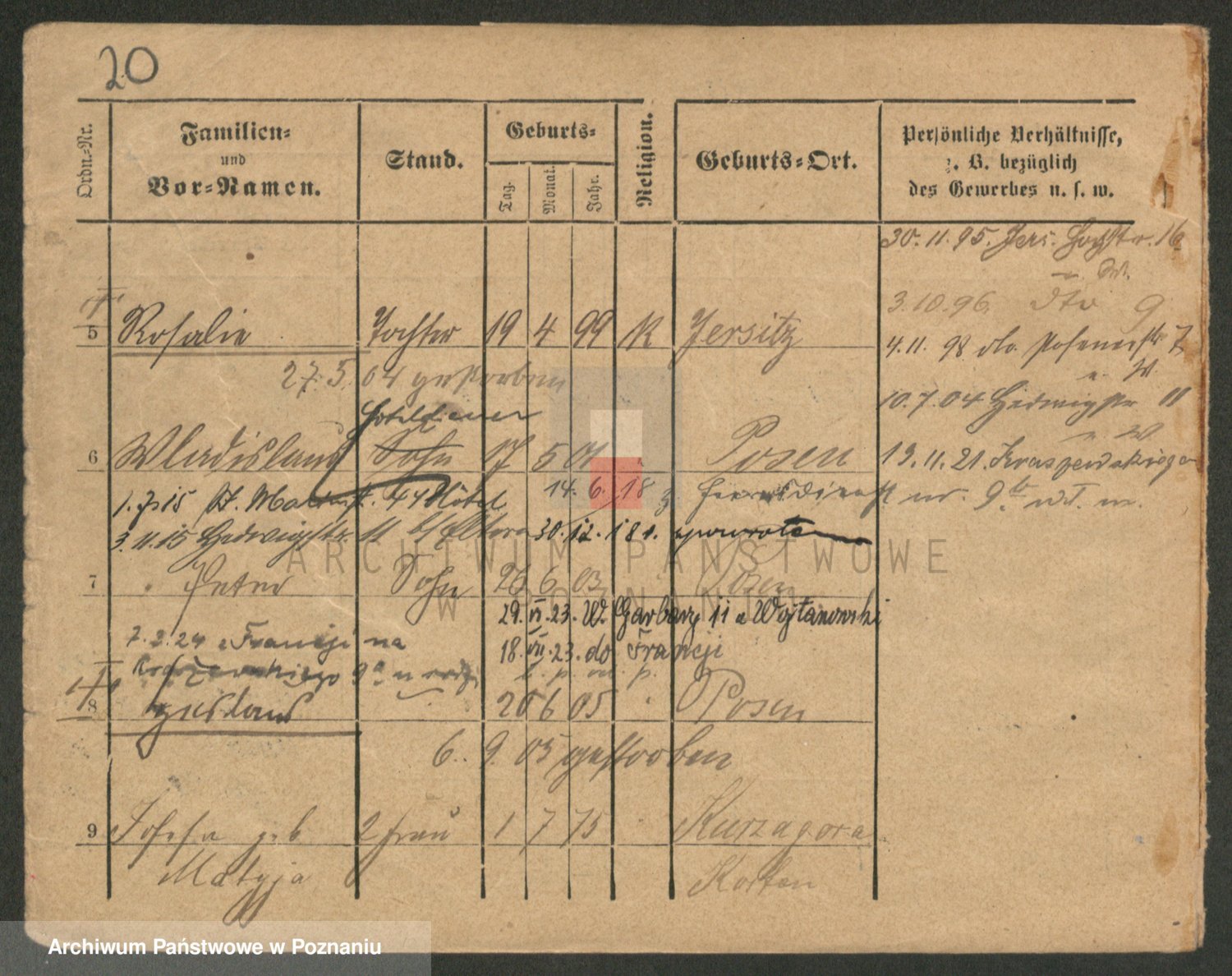 Podgląd karty osobowej dostępny jest po kliknięciu na nazwisko lub ikonkę karty. Można dokonywać powiększenia (ikony na górze) lub przechodzić między kolejnymi skanami (strzałki po bokach).