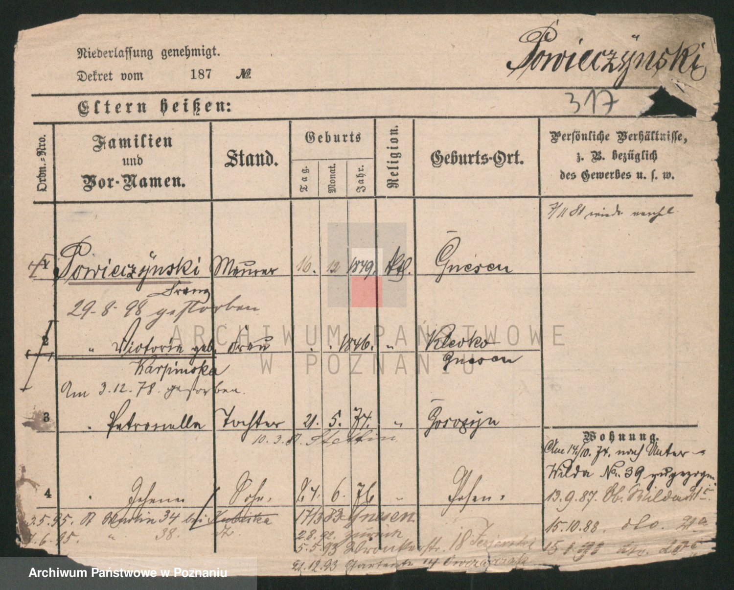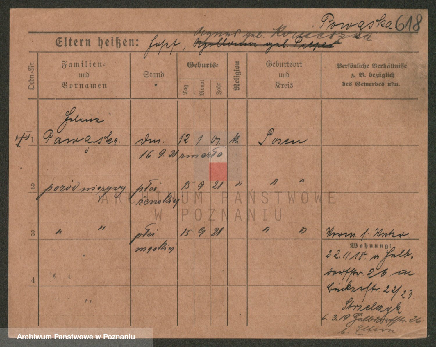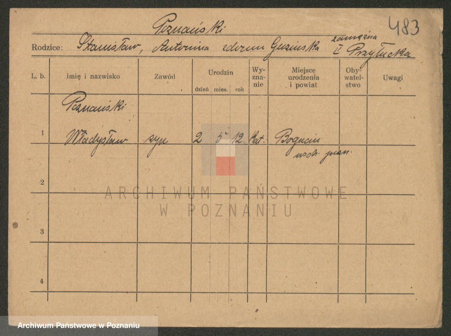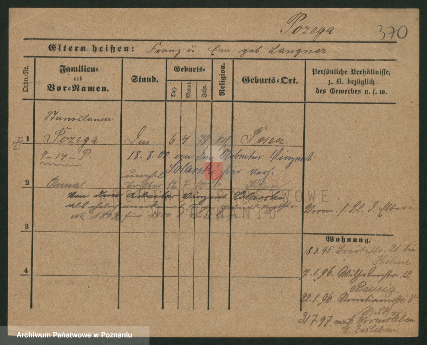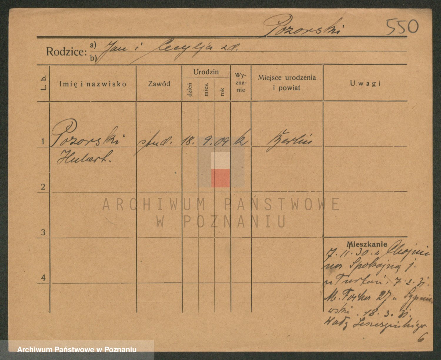 Podgląd karty osobowej dostępny jest po kliknięciu na nazwisko lub ikonkę karty. Można dokonywać powiększenia (ikony na górze) lub przechodzić między kolejnymi skanami (strzałki po bokach).