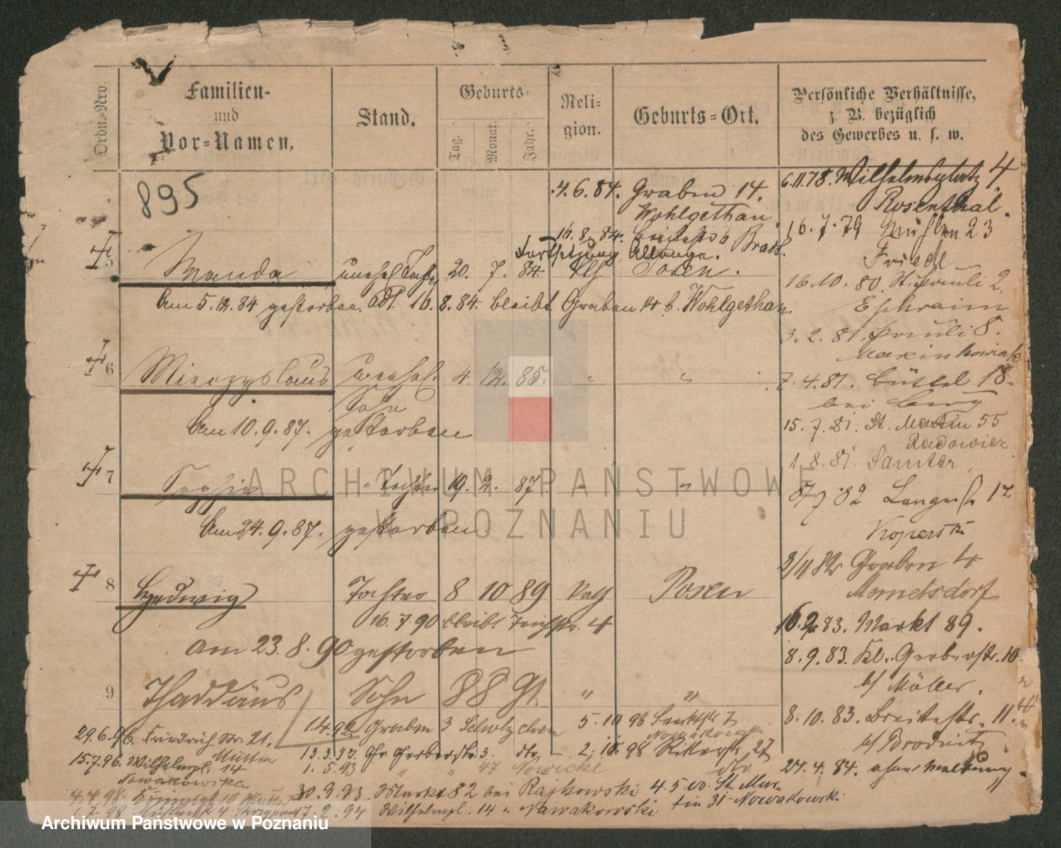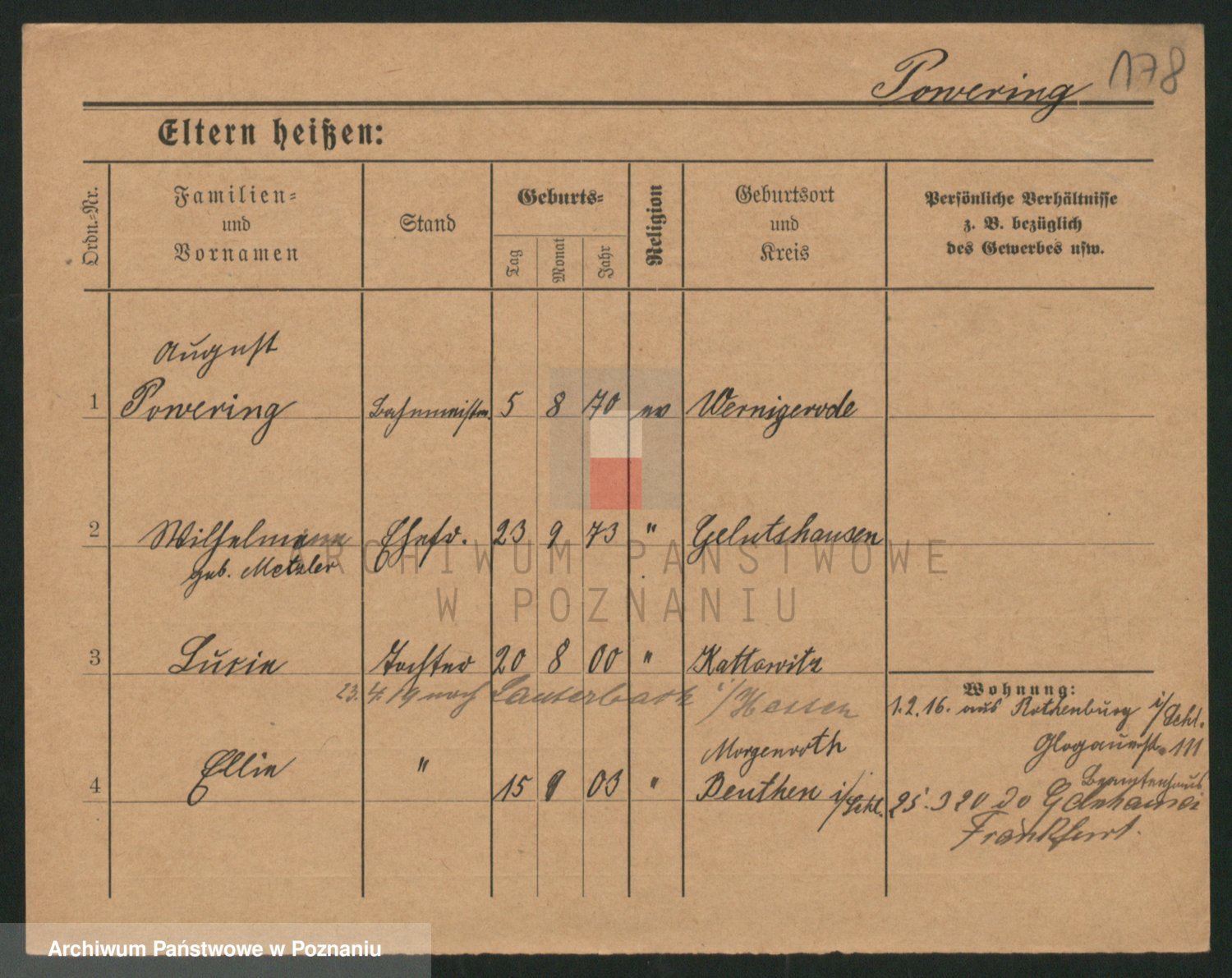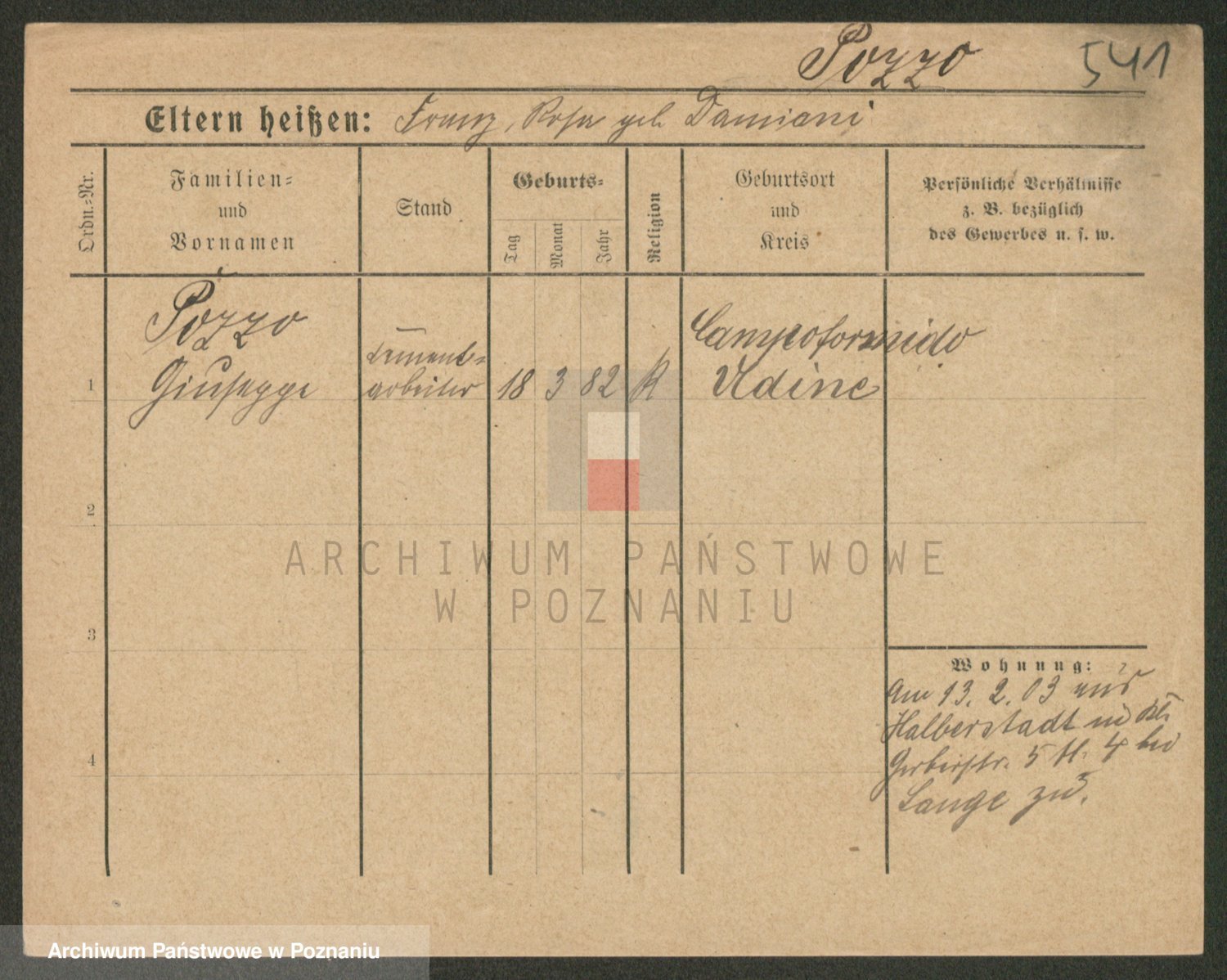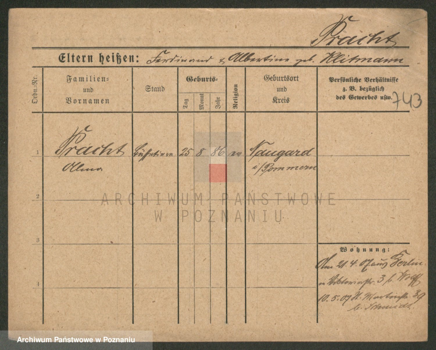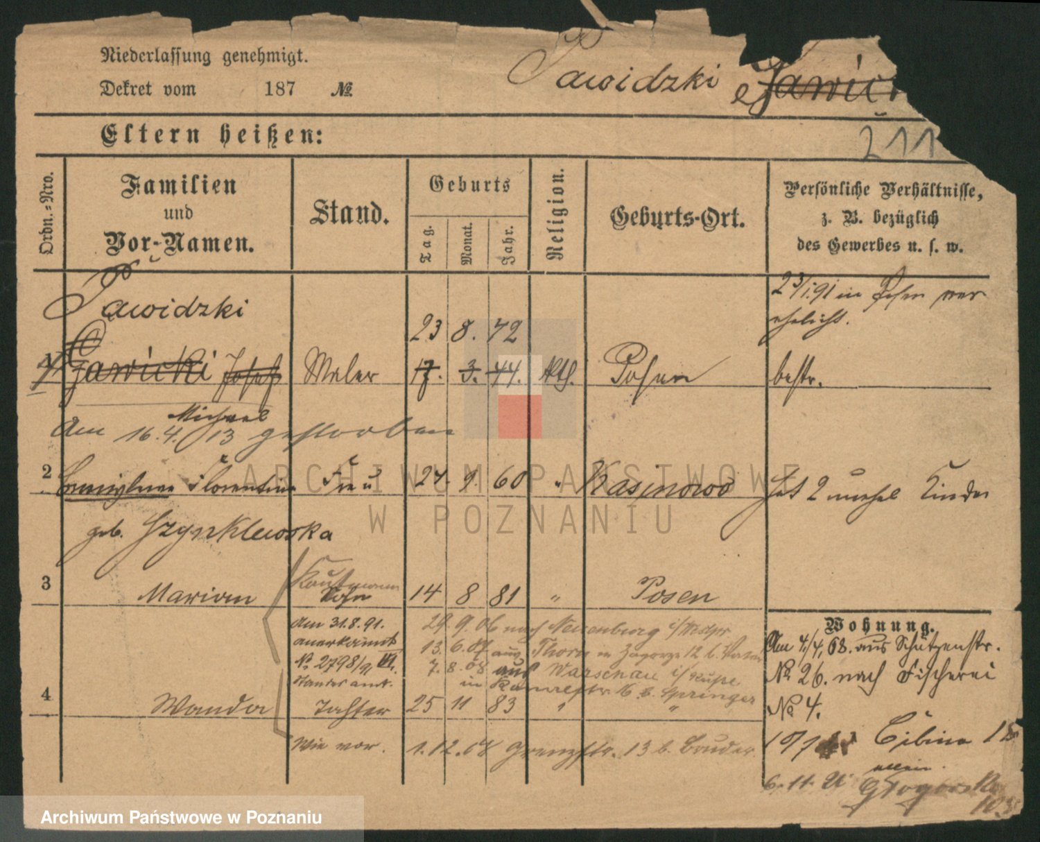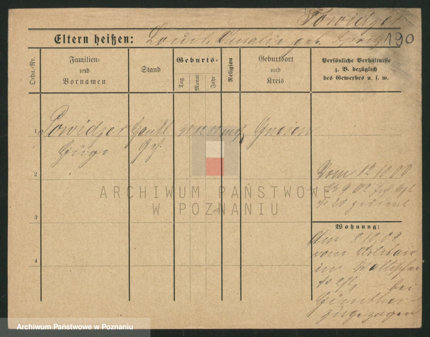 Podgląd karty osobowej dostępny jest po kliknięciu na nazwisko lub ikonkę karty. Można dokonywać powiększenia (ikony na górze) lub przechodzić między kolejnymi skanami (strzałki po bokach).
