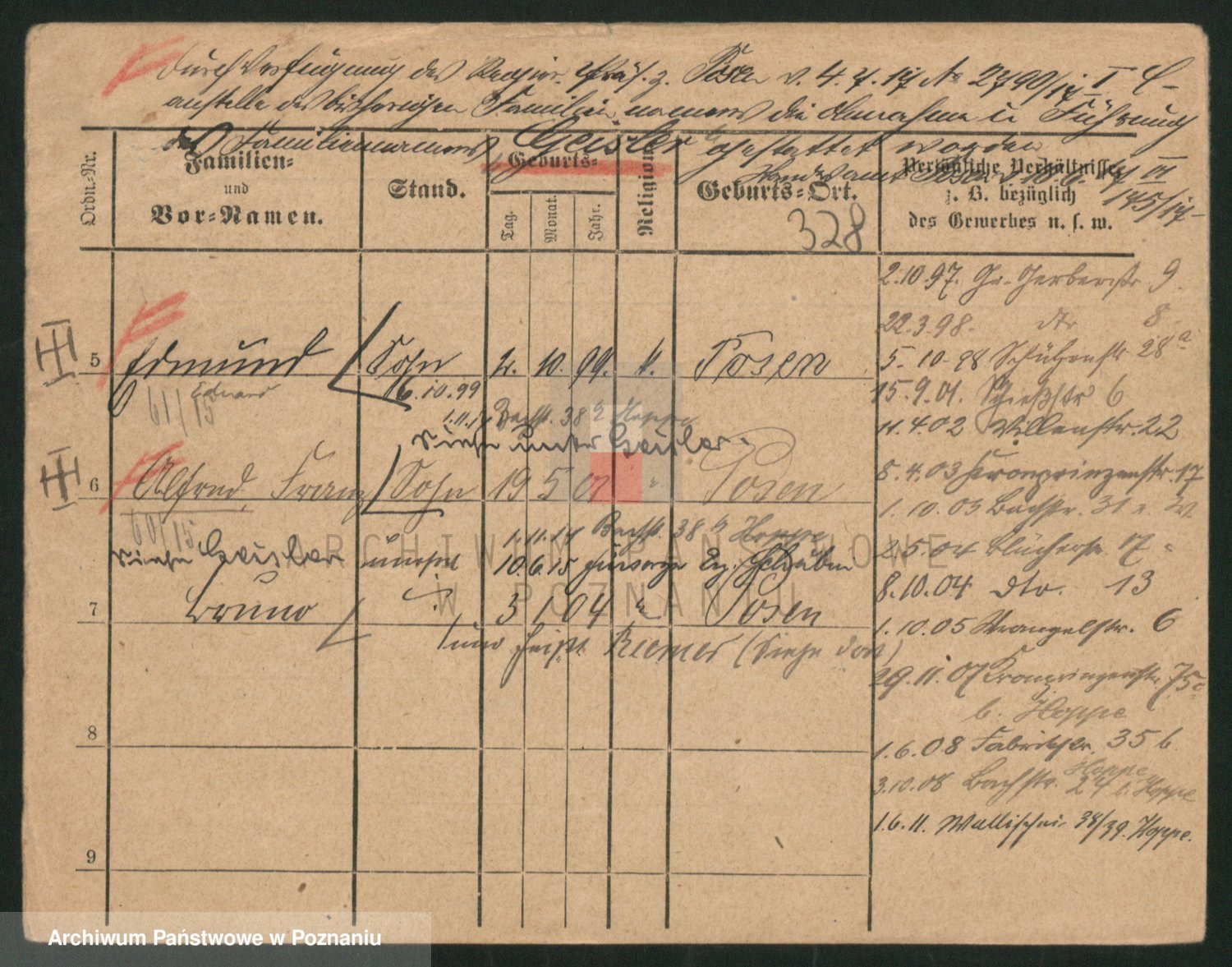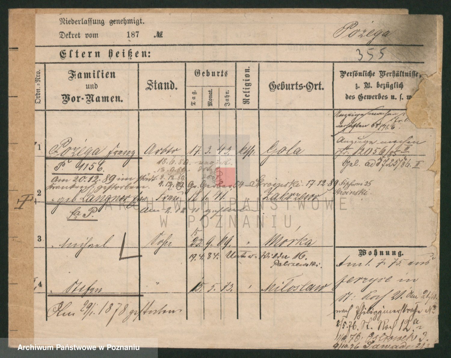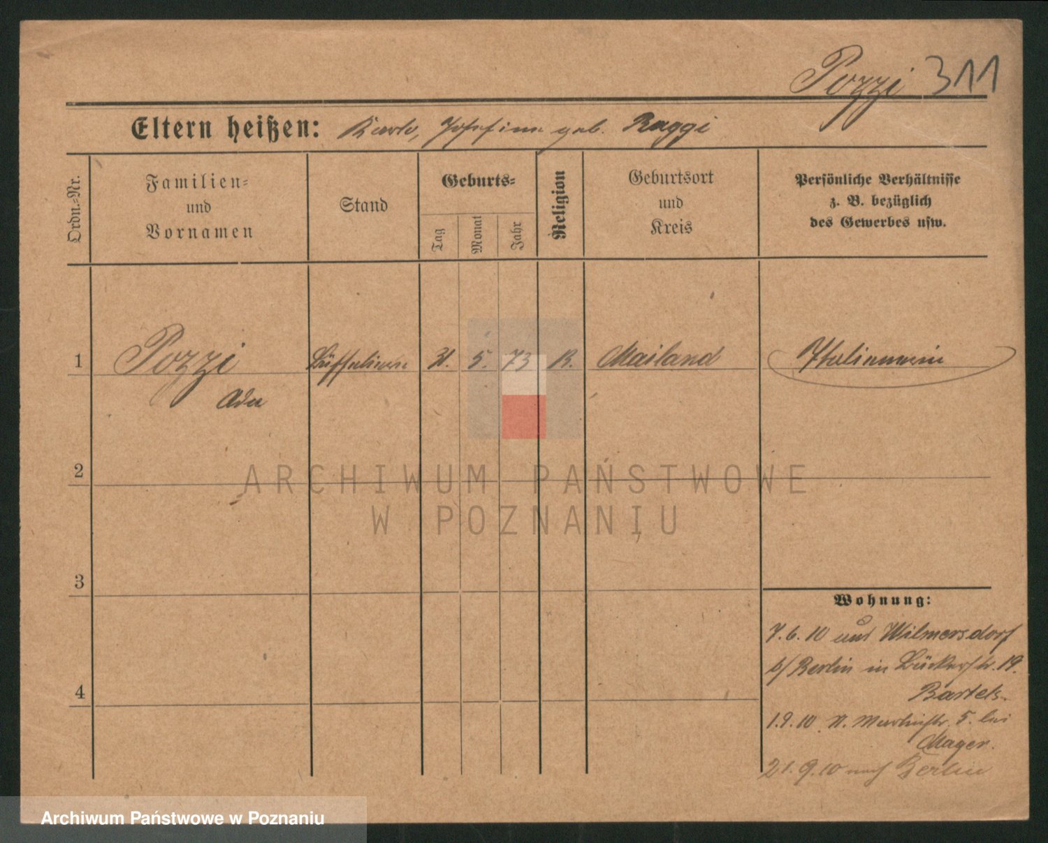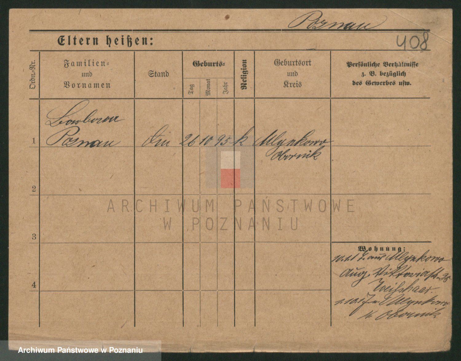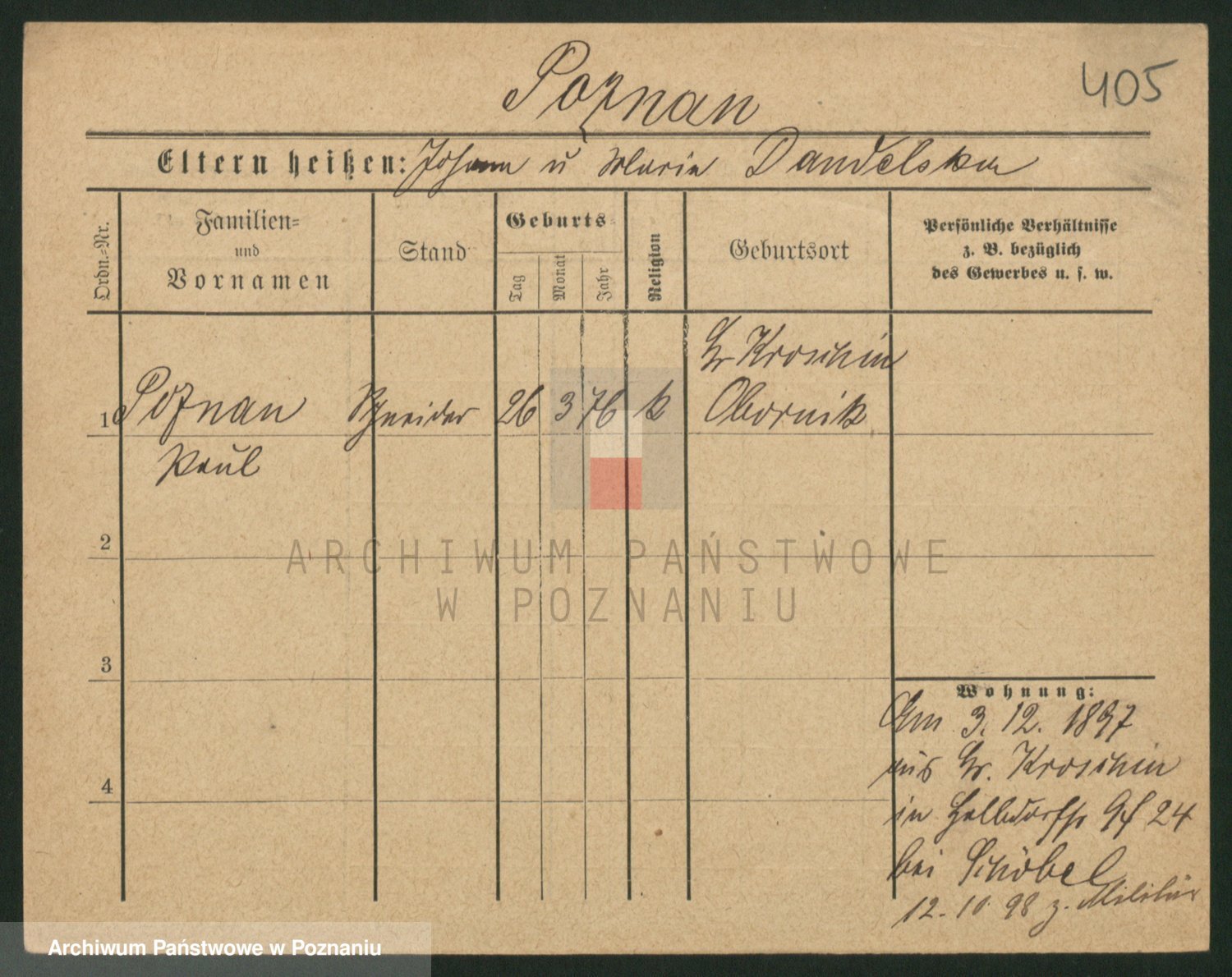 Podgląd karty osobowej dostępny jest po kliknięciu na nazwisko lub ikonkę karty. Można dokonywać powiększenia (ikony na górze) lub przechodzić między kolejnymi skanami (strzałki po bokach).