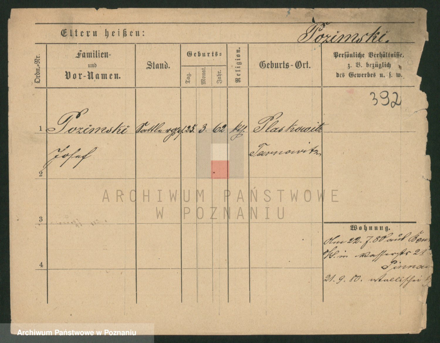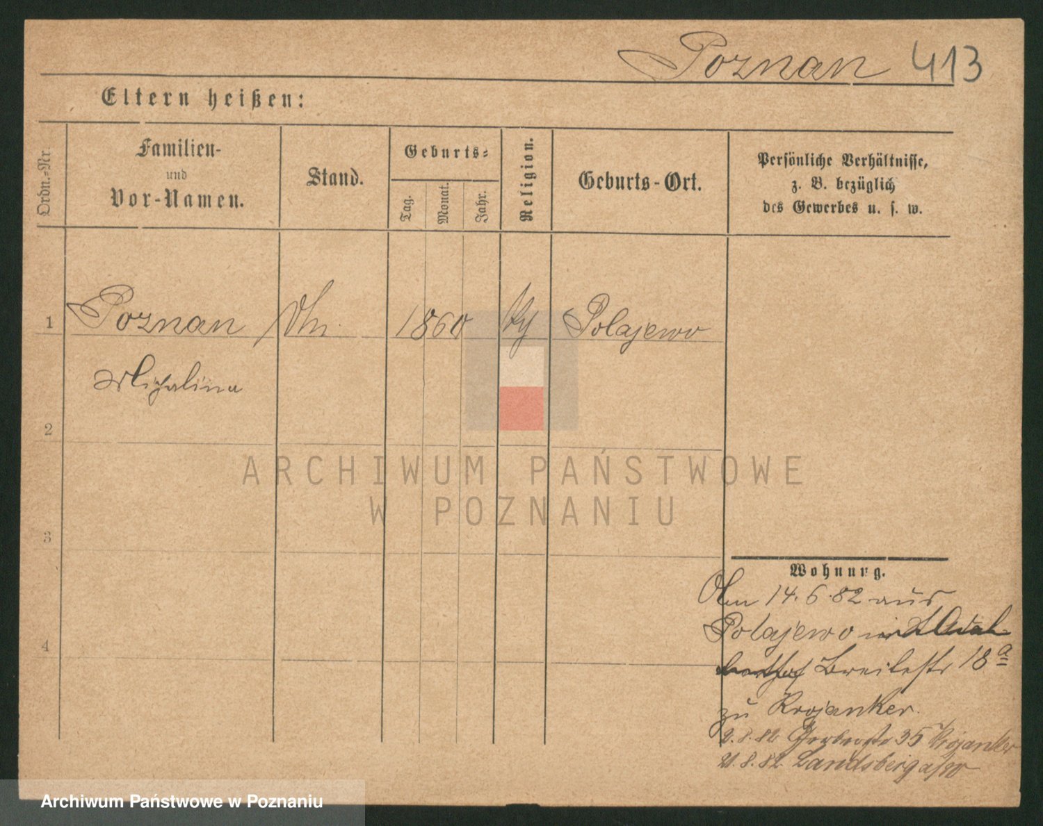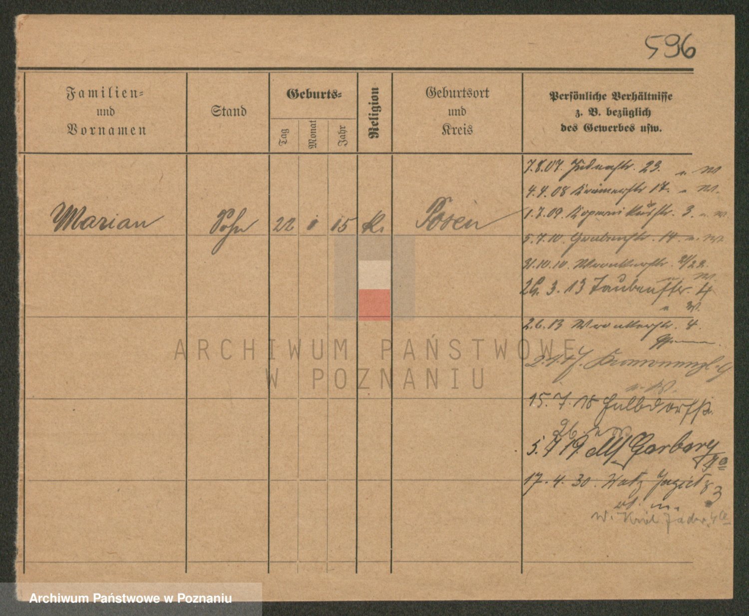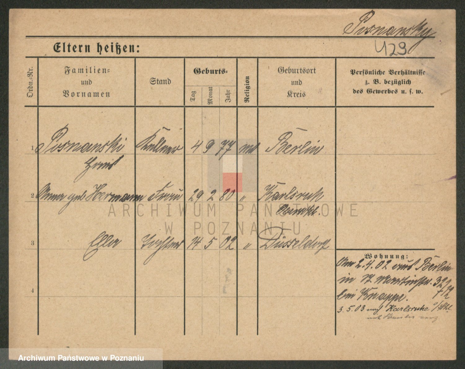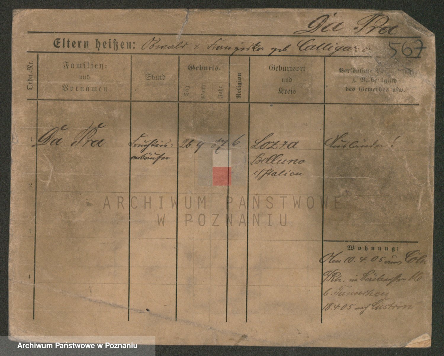 Podgląd karty osobowej dostępny jest po kliknięciu na nazwisko lub ikonkę karty. Można dokonywać powiększenia (ikony na górze) lub przechodzić między kolejnymi skanami (strzałki po bokach).