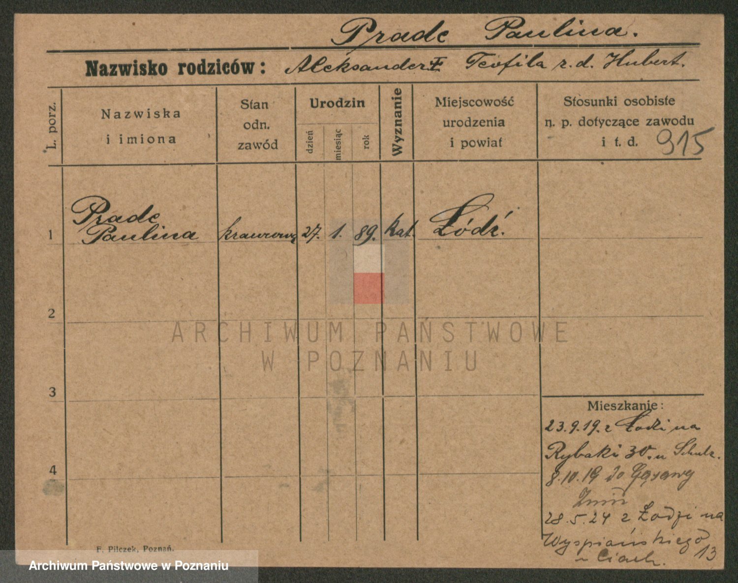 Prejbisz z d. Pawlinska, Anna