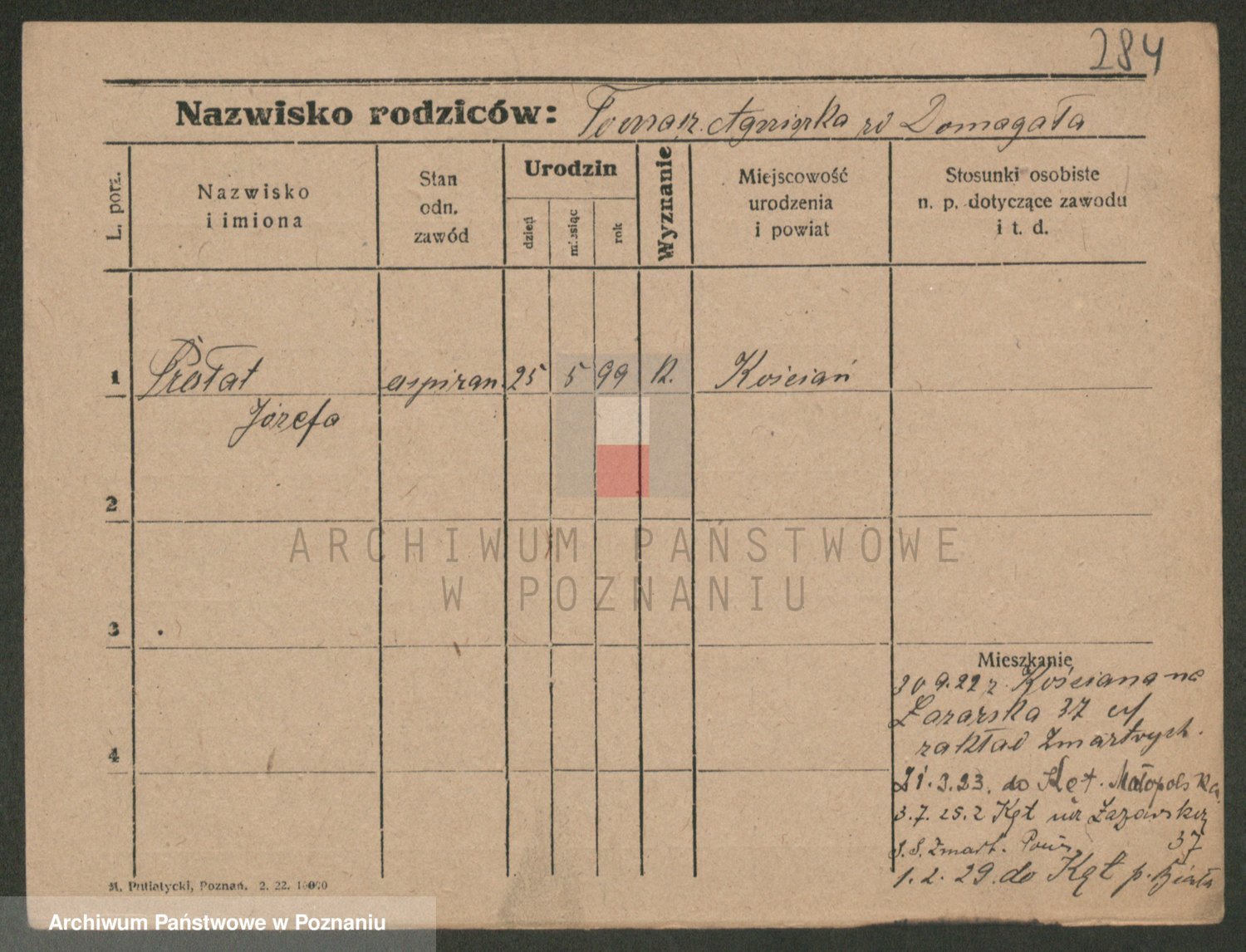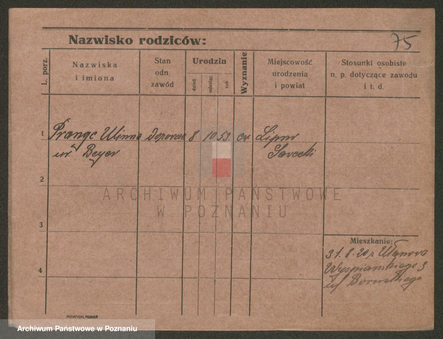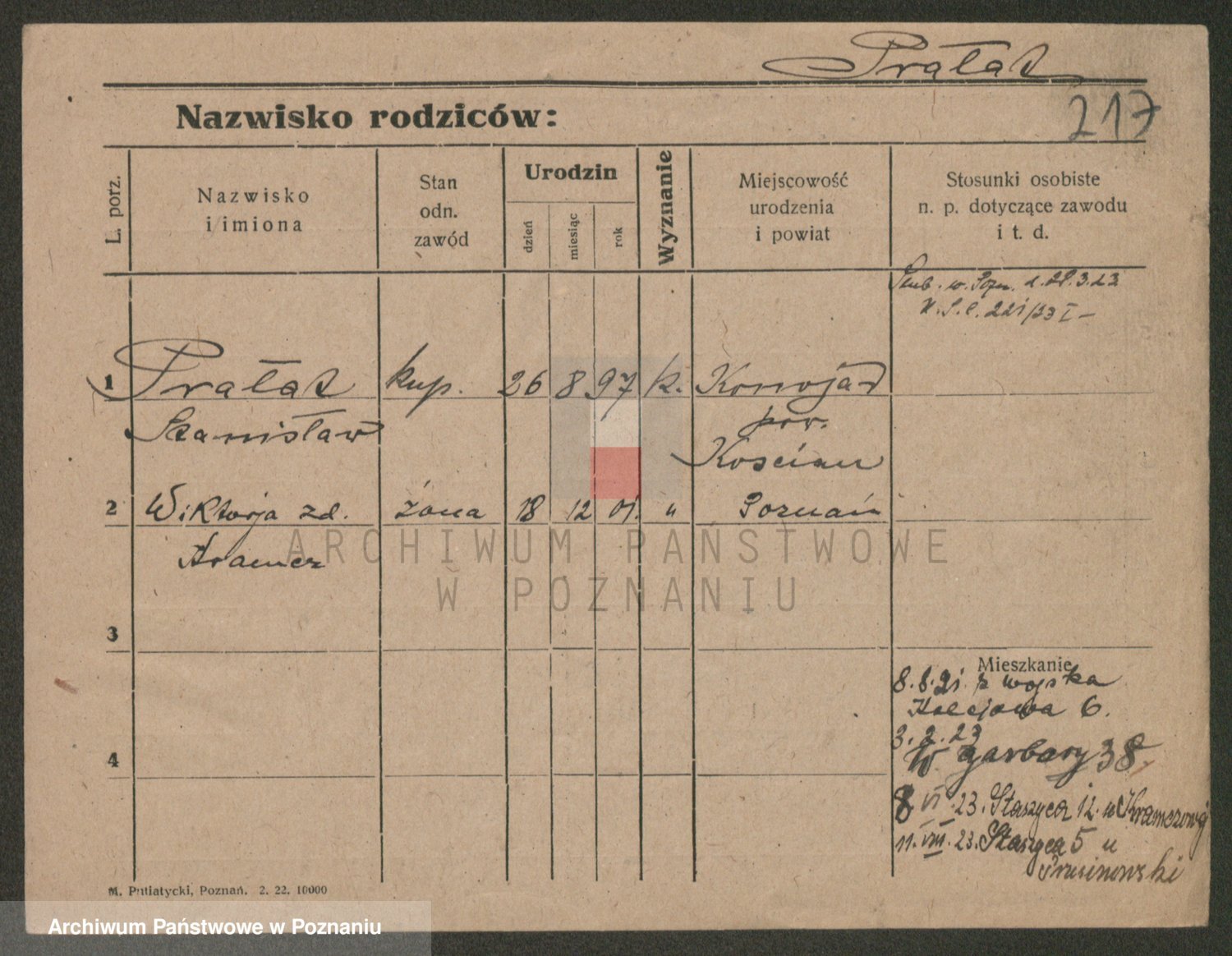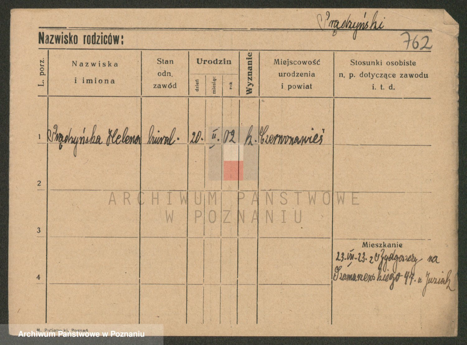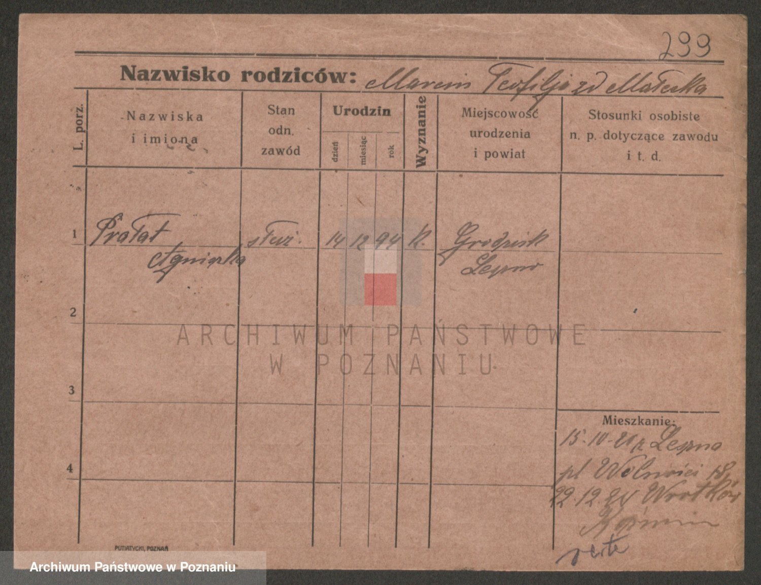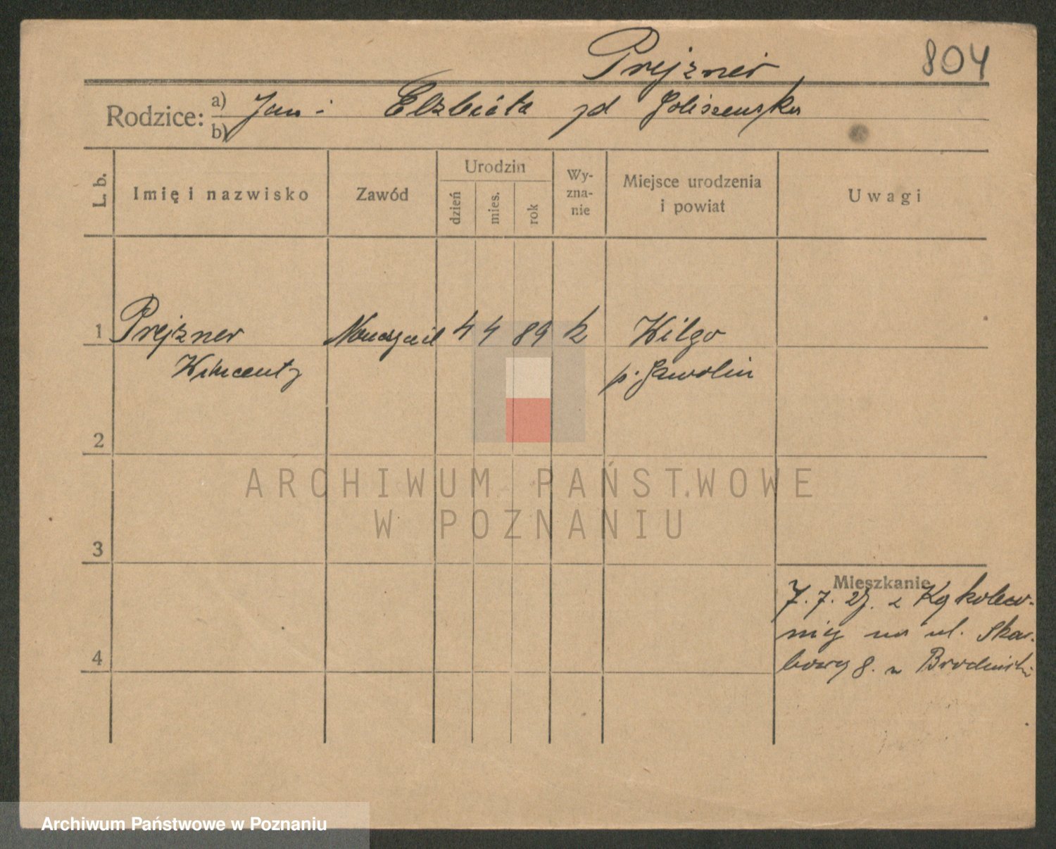 Podgląd karty osobowej dostępny jest po kliknięciu na nazwisko lub ikonkę karty. Można dokonywać powiększenia (ikony na górze) lub przechodzić między kolejnymi skanami (strzałki po bokach).