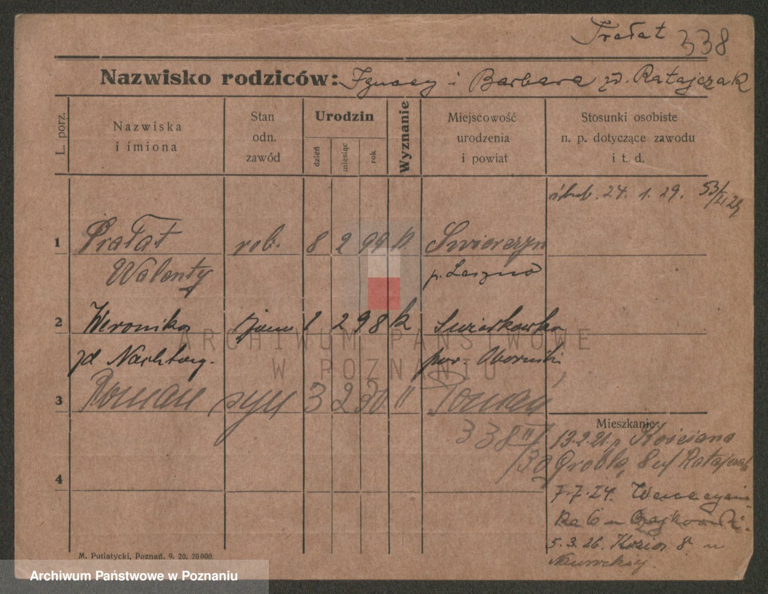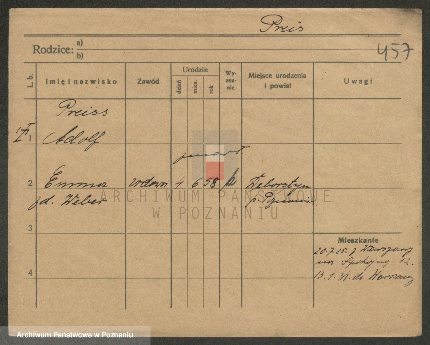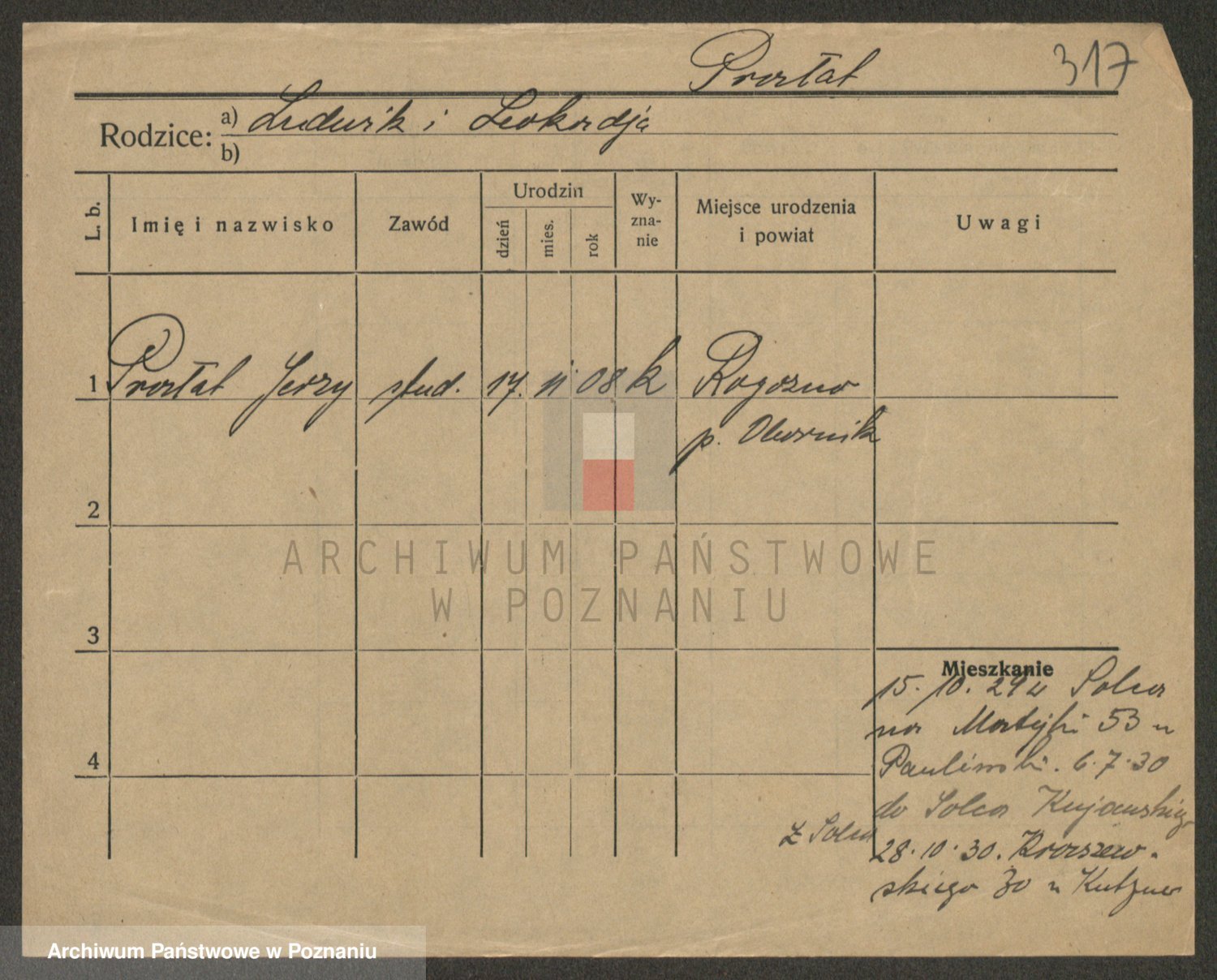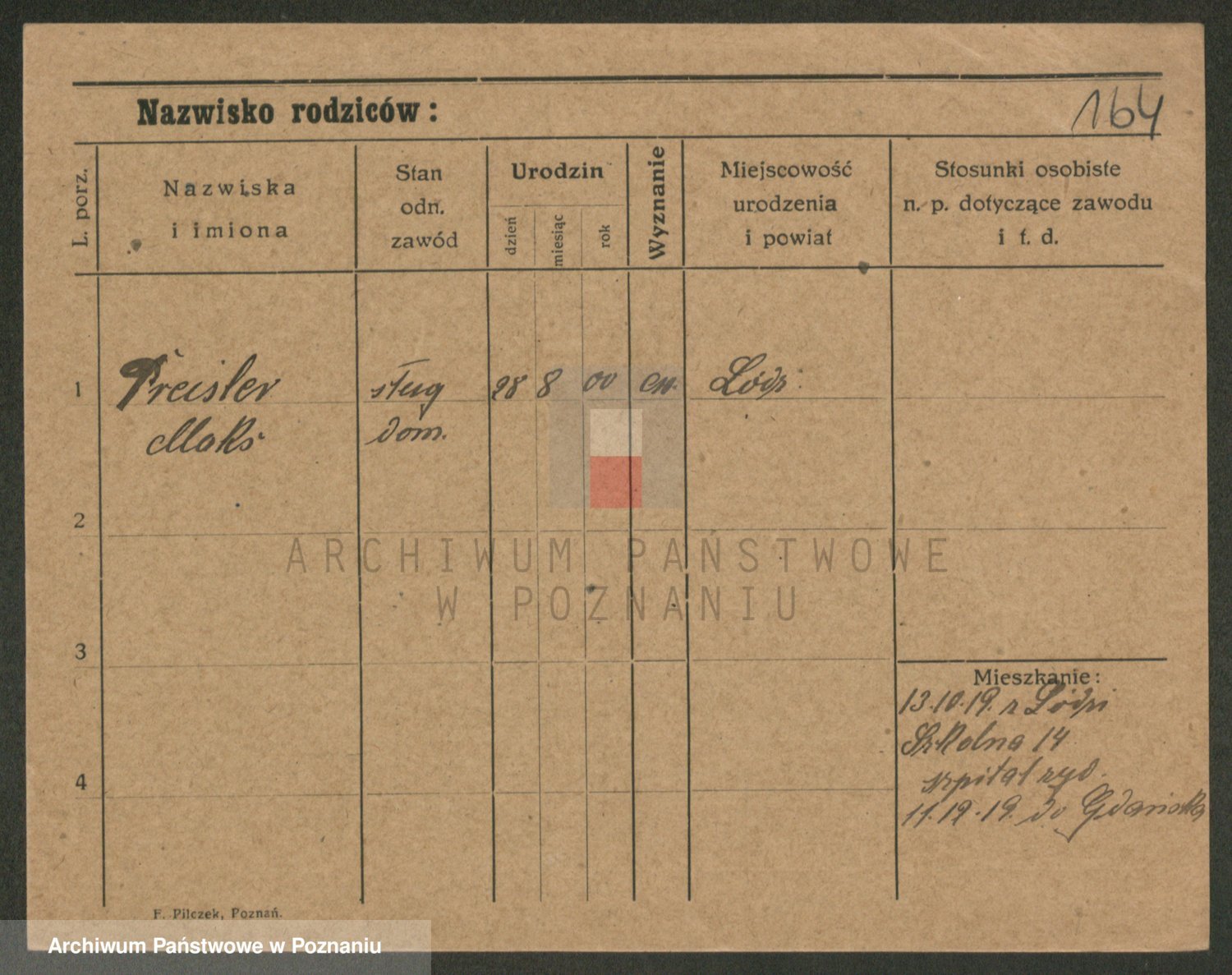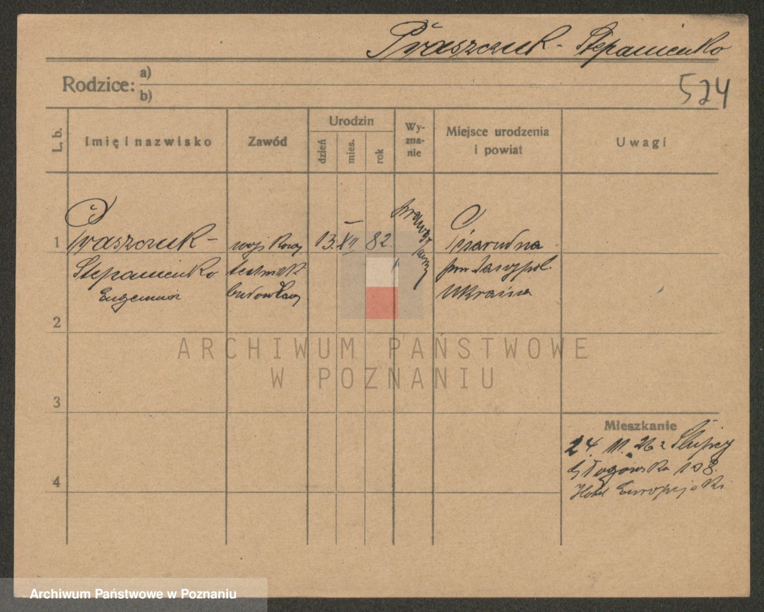 Podgląd karty osobowej dostępny jest po kliknięciu na nazwisko lub ikonkę karty. Można dokonywać powiększenia (ikony na górze) lub przechodzić między kolejnymi skanami (strzałki po bokach).