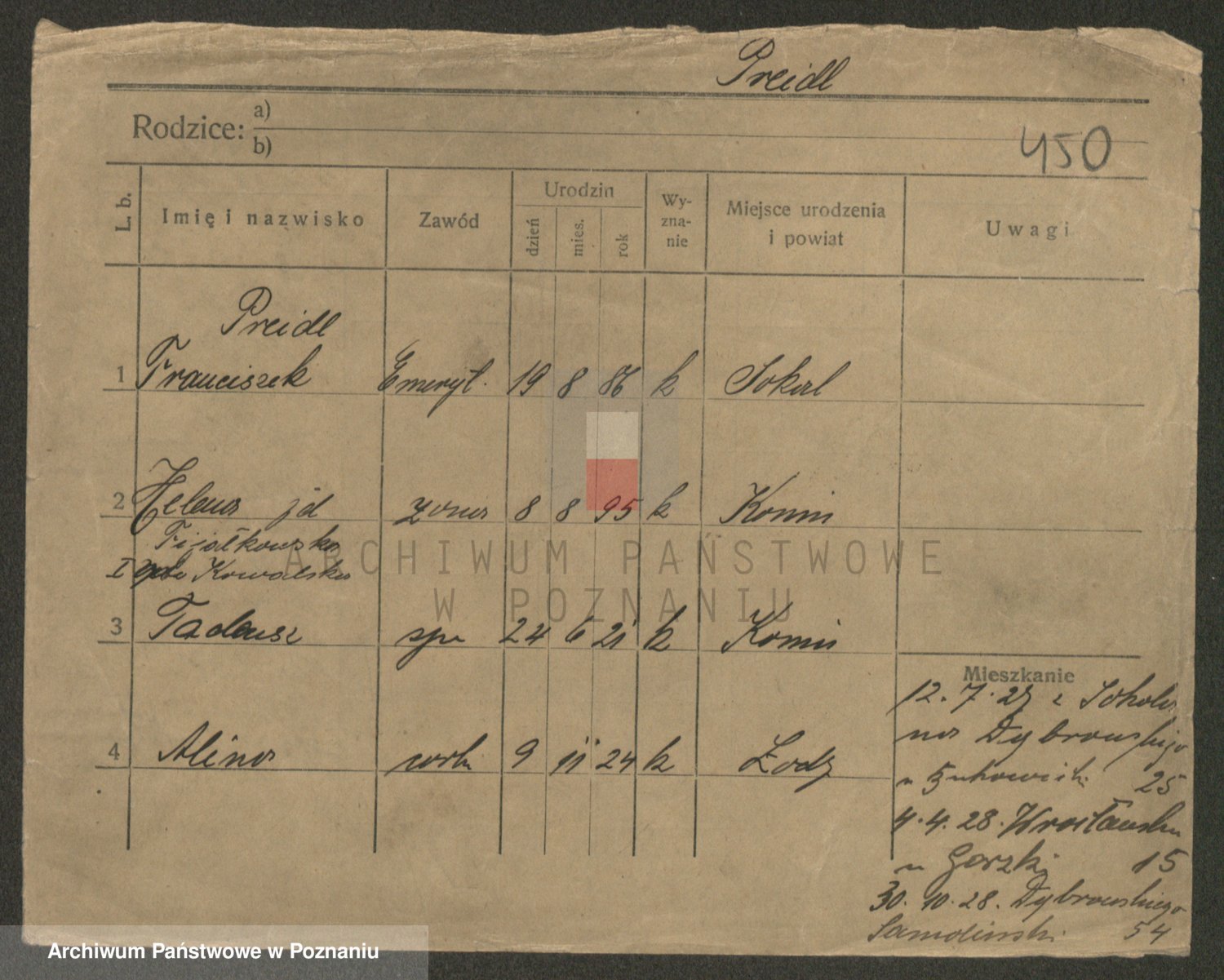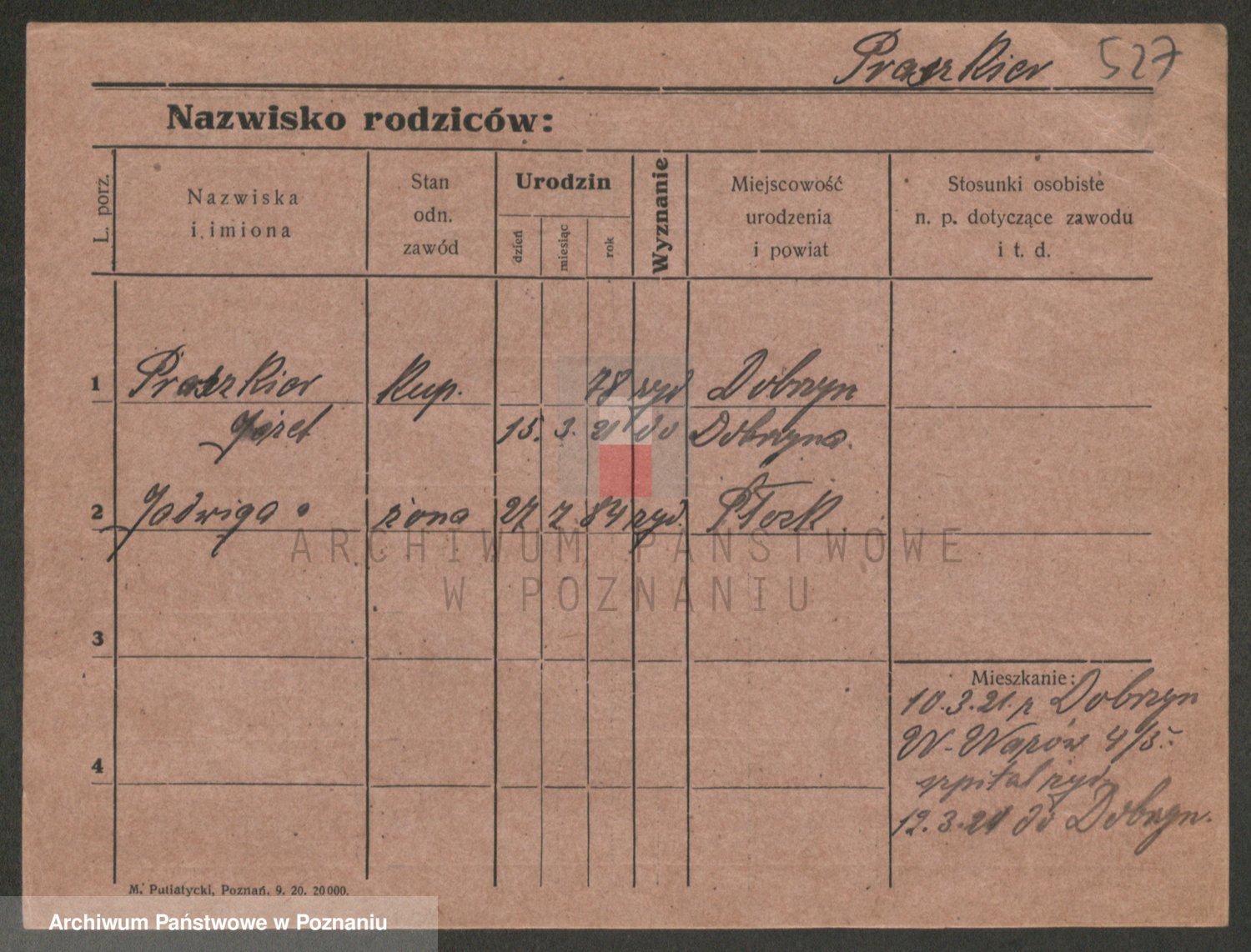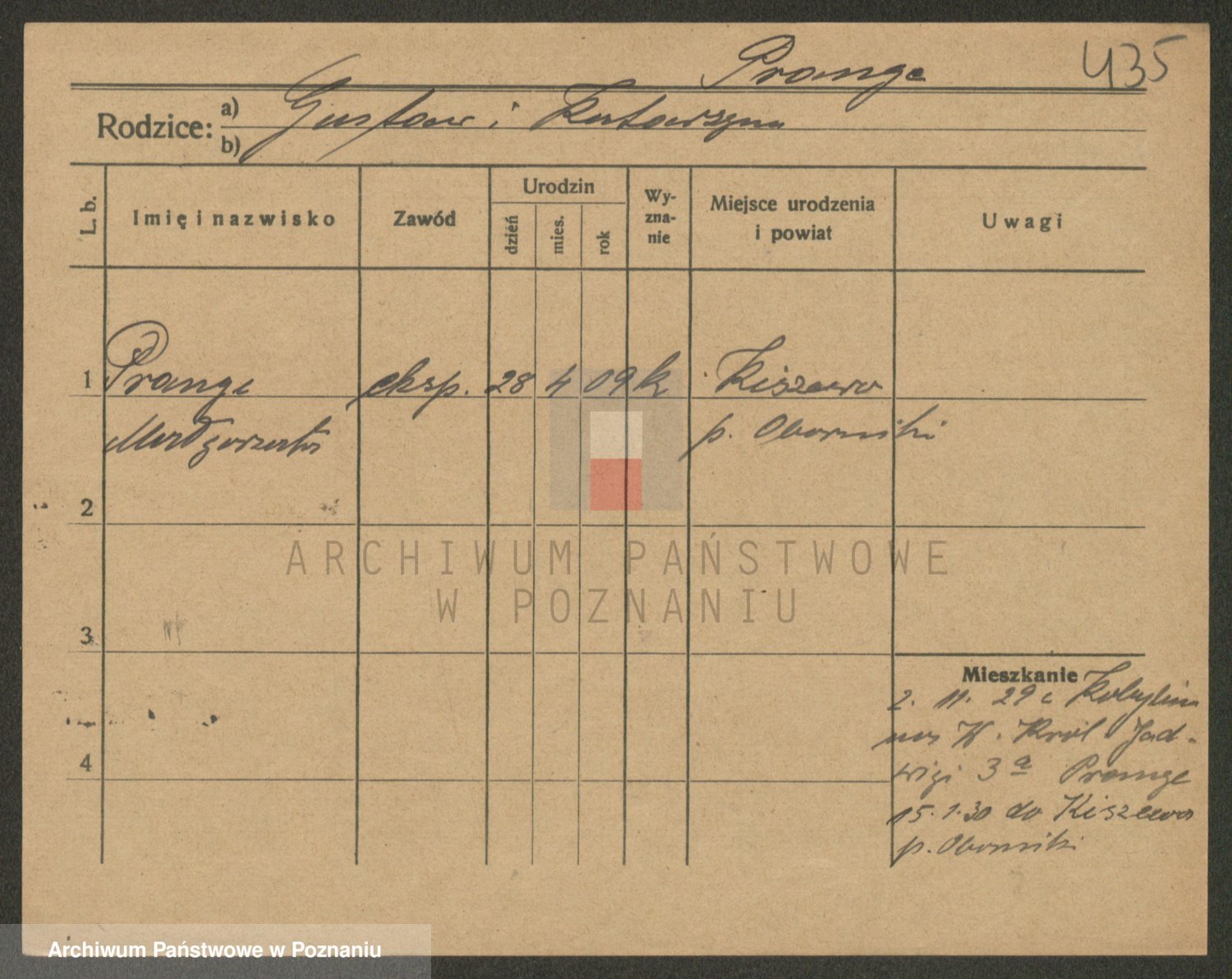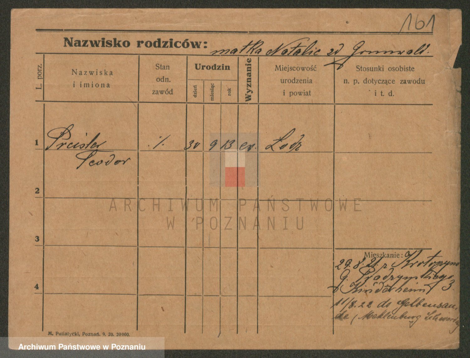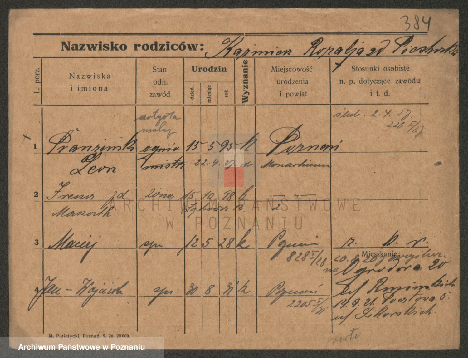 Podgląd karty osobowej dostępny jest po kliknięciu na nazwisko lub ikonkę karty. Można dokonywać powiększenia (ikony na górze) lub przechodzić między kolejnymi skanami (strzałki po bokach).