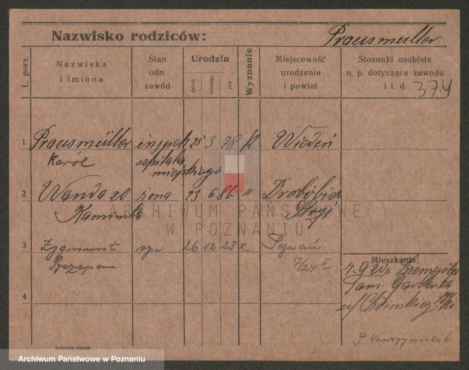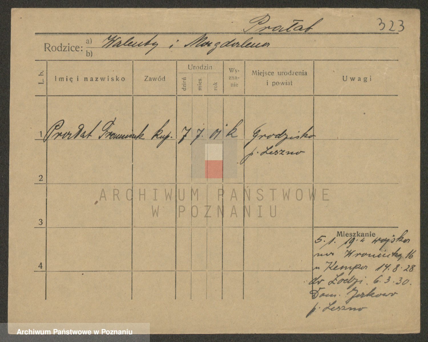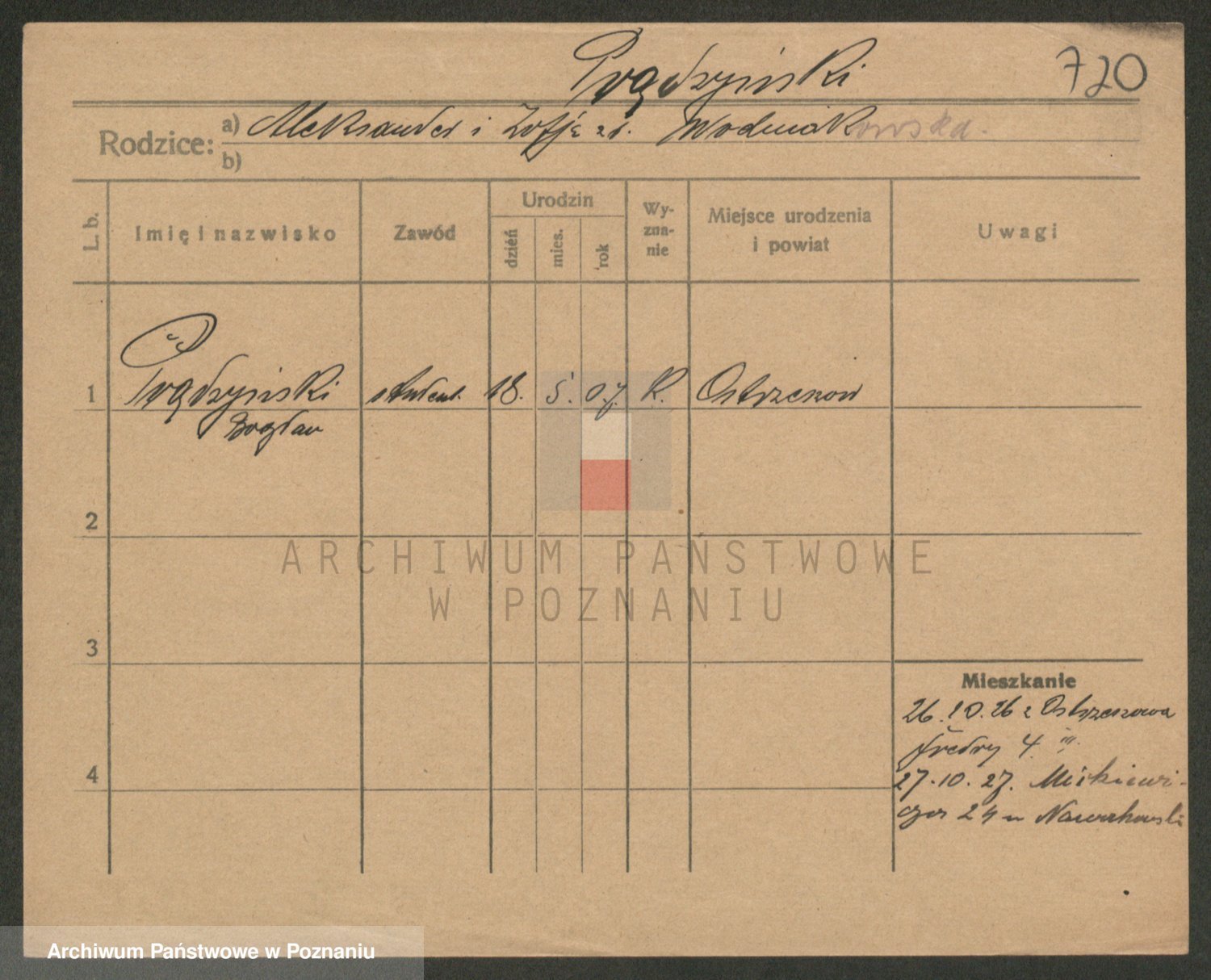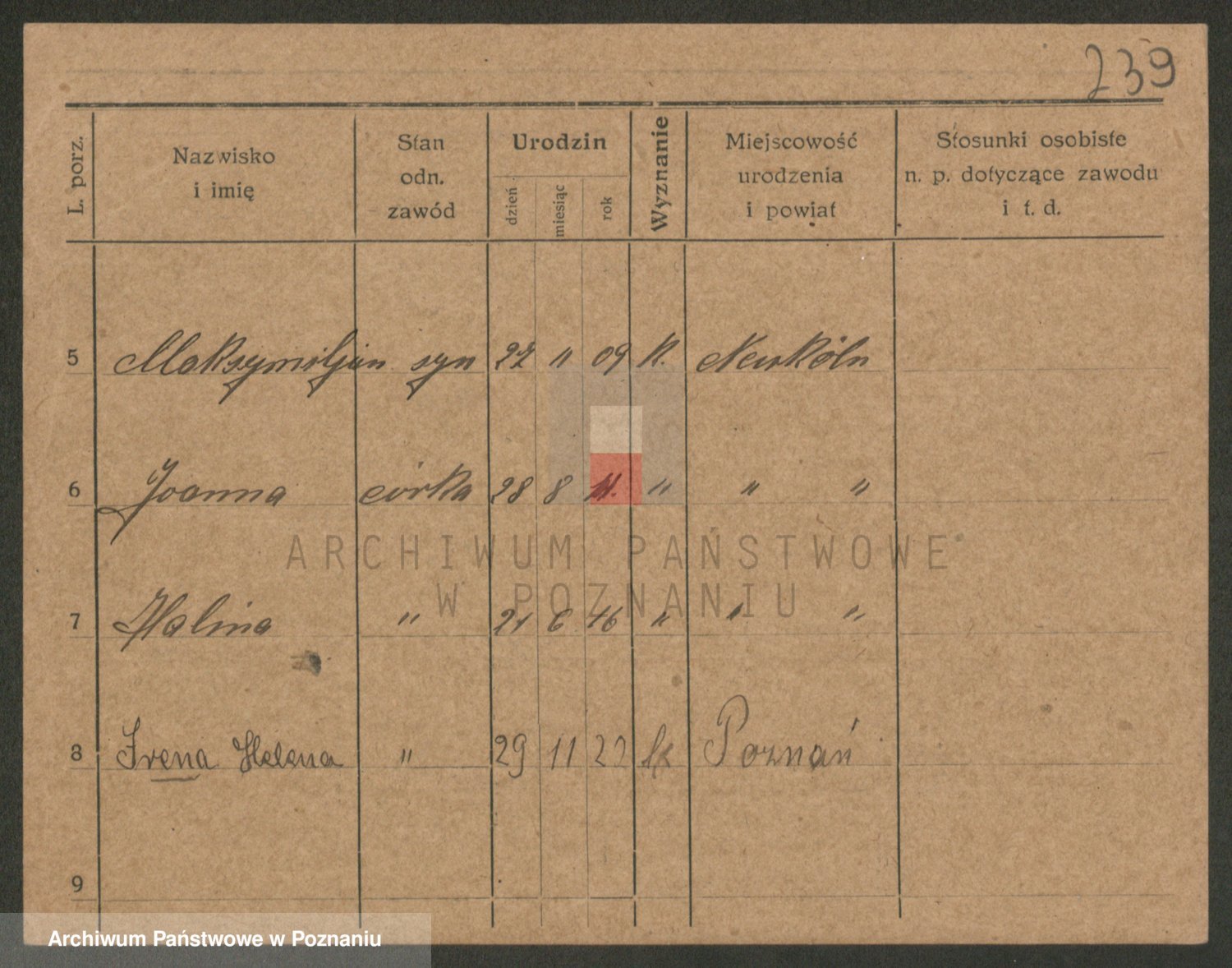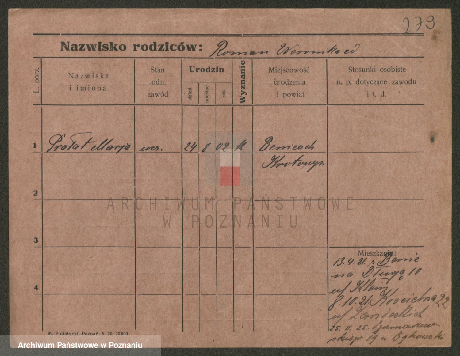 Podgląd karty osobowej dostępny jest po kliknięciu na nazwisko lub ikonkę karty. Można dokonywać powiększenia (ikony na górze) lub przechodzić między kolejnymi skanami (strzałki po bokach).
