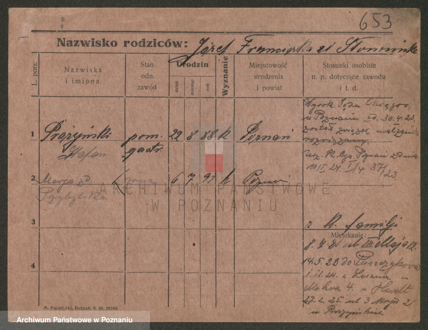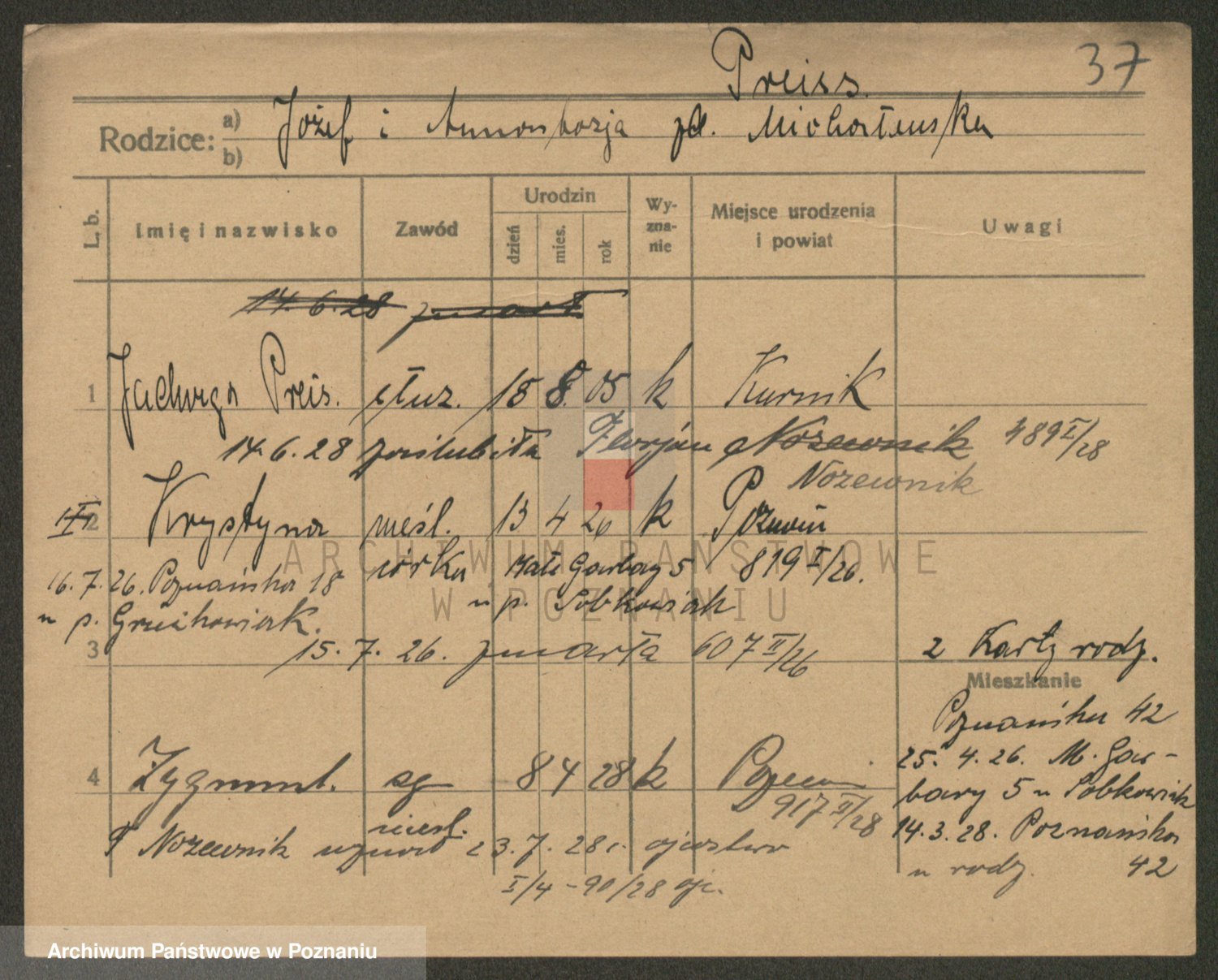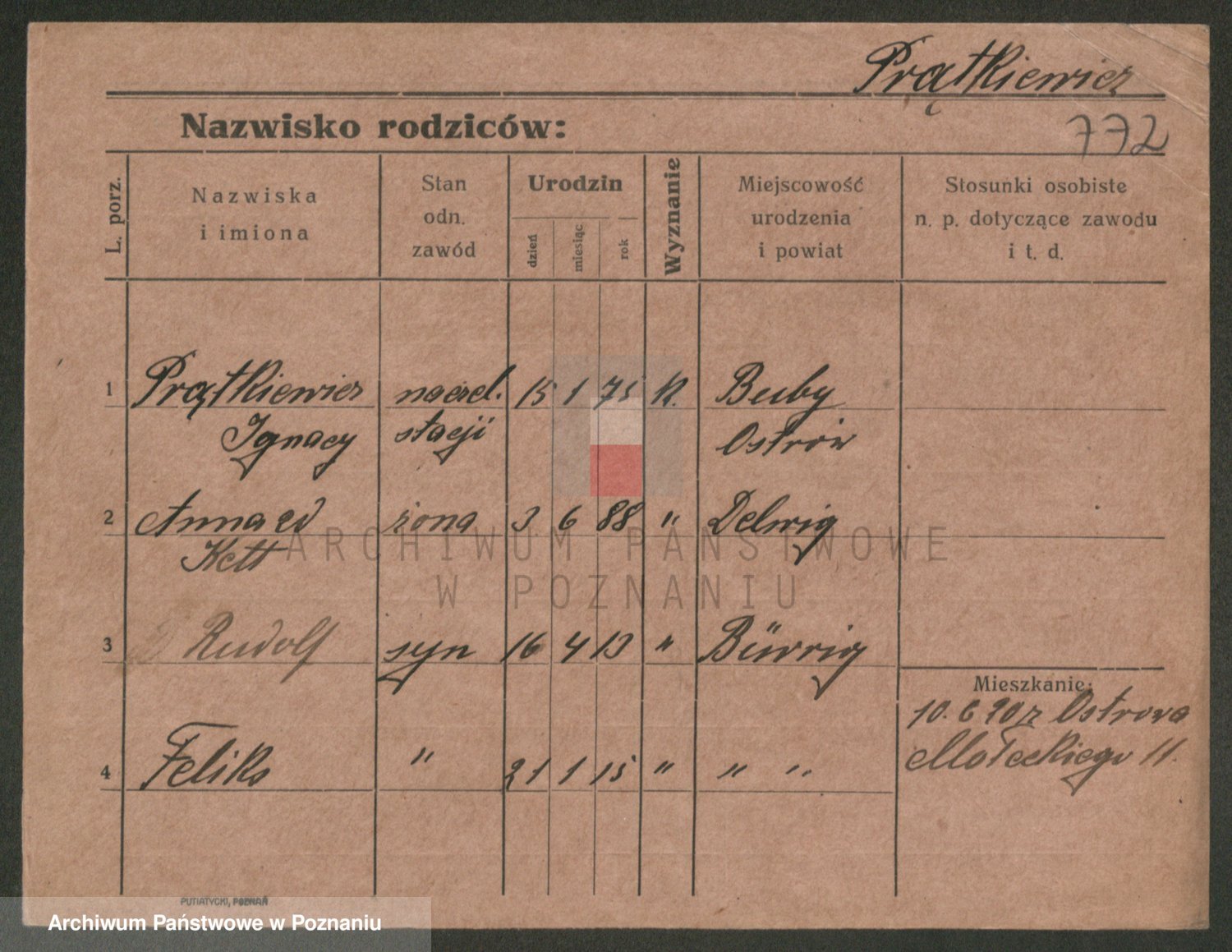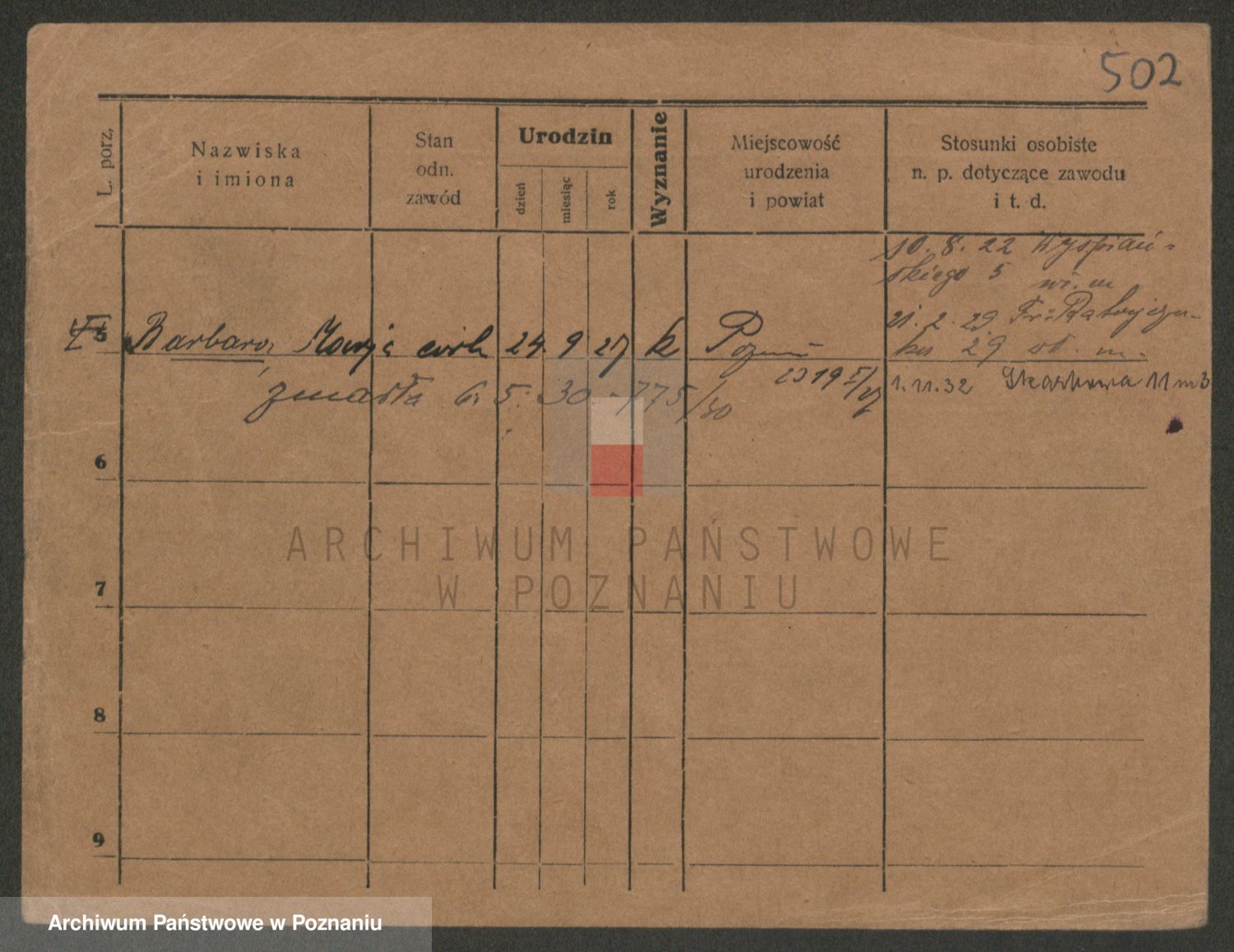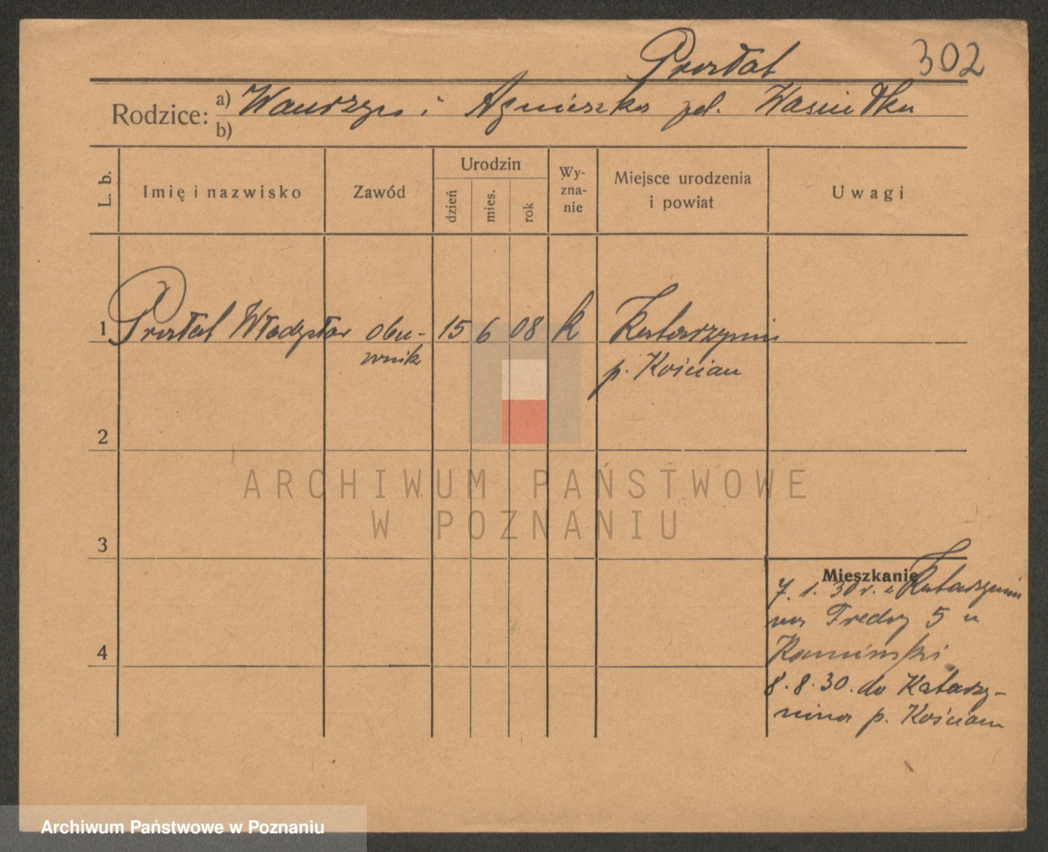 Podgląd karty osobowej dostępny jest po kliknięciu na nazwisko lub ikonkę karty. Można dokonywać powiększenia (ikony na górze) lub przechodzić między kolejnymi skanami (strzałki po bokach).