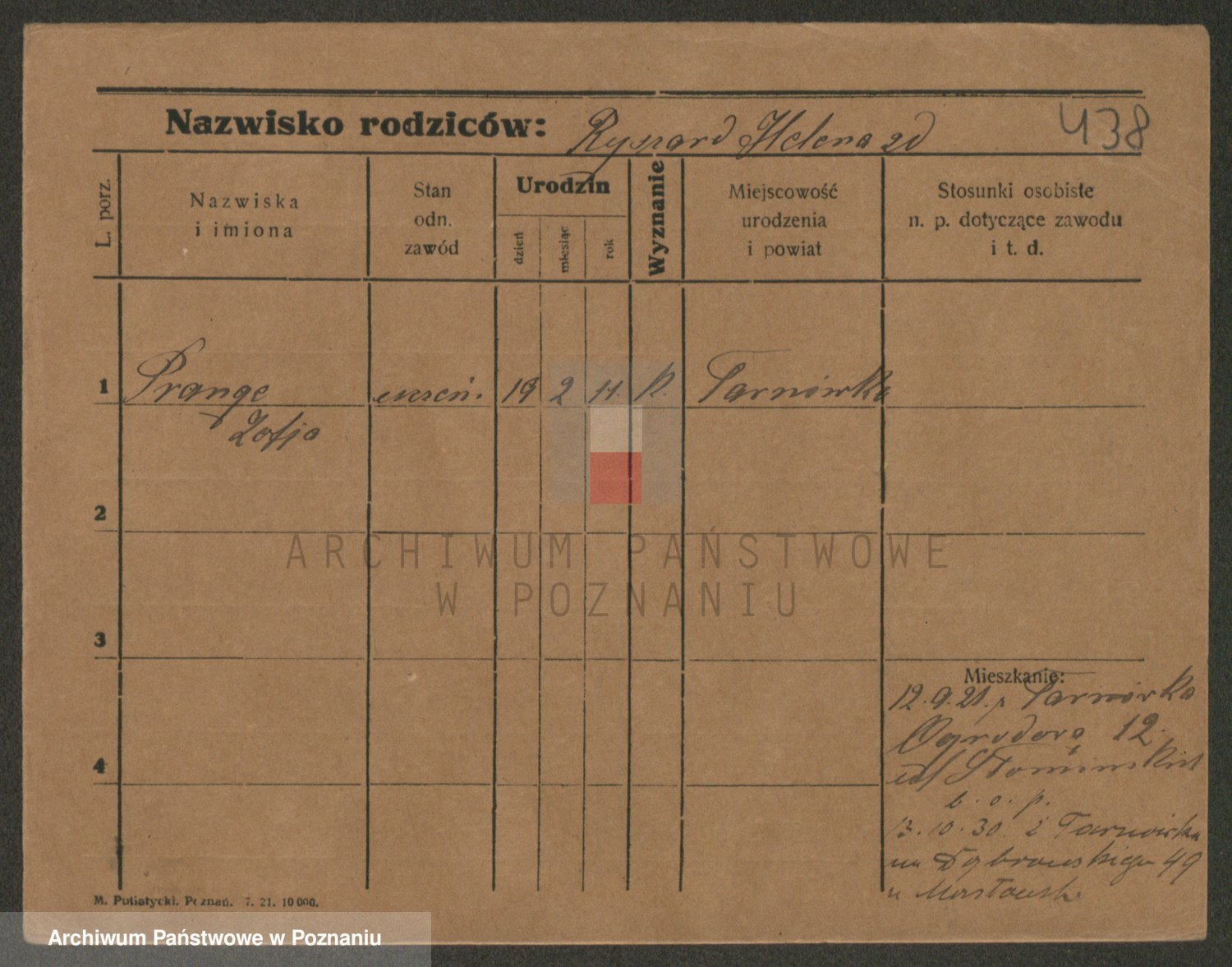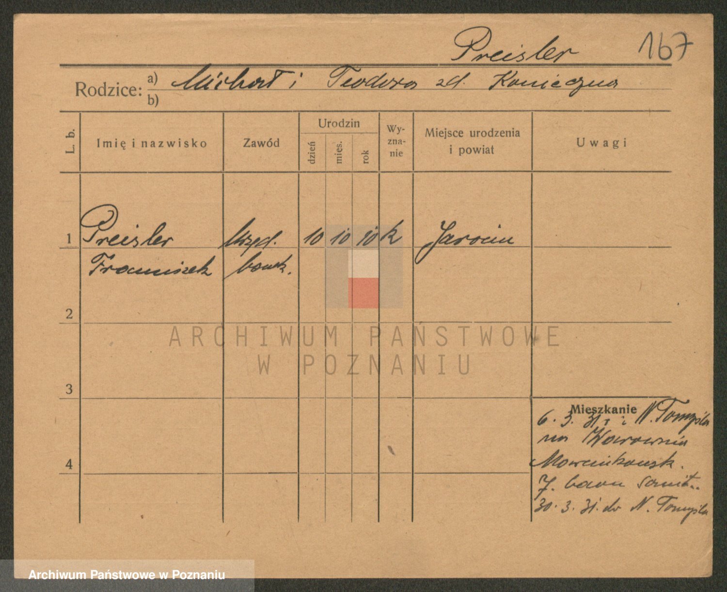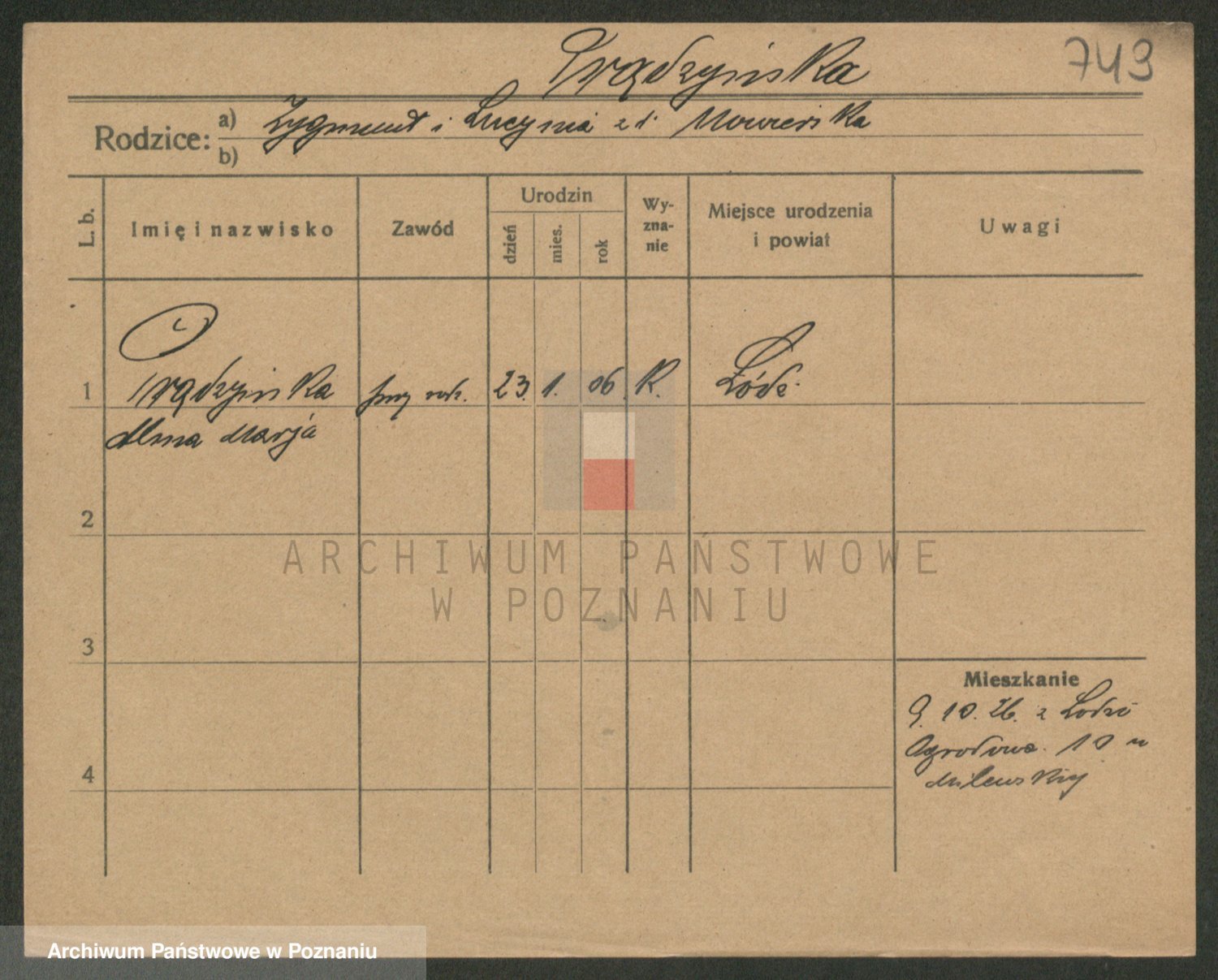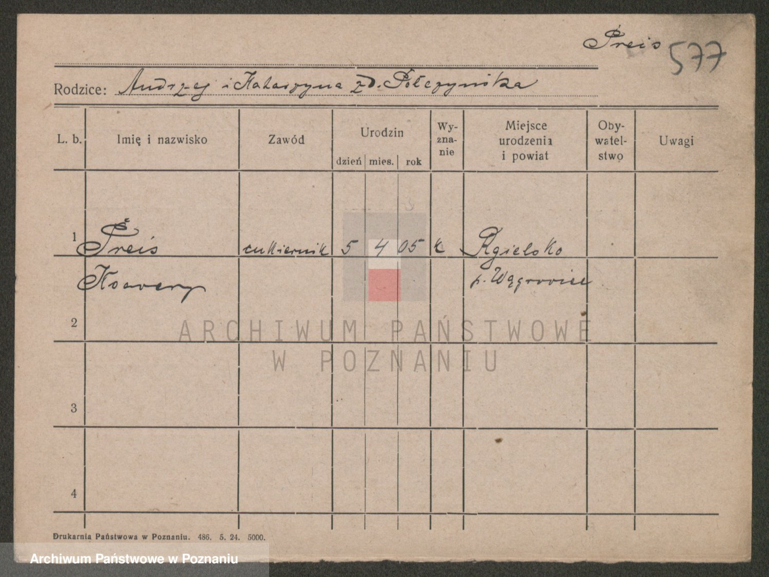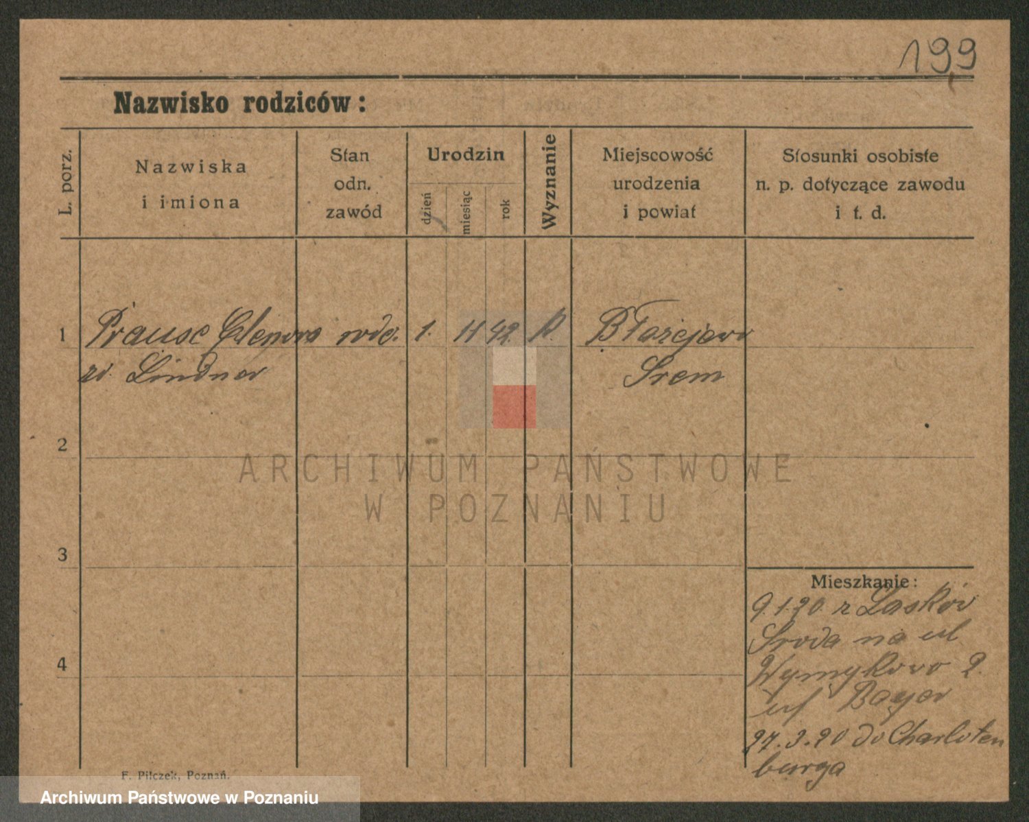 Podgląd karty osobowej dostępny jest po kliknięciu na nazwisko lub ikonkę karty. Można dokonywać powiększenia (ikony na górze) lub przechodzić między kolejnymi skanami (strzałki po bokach).