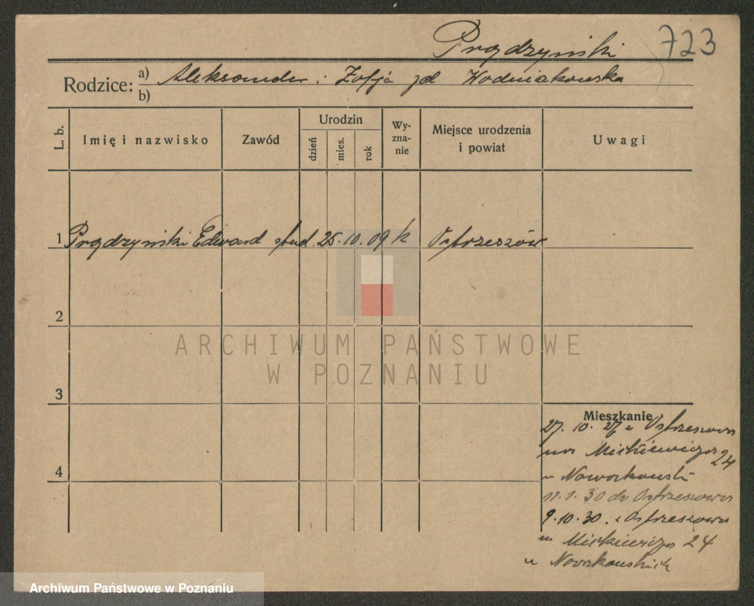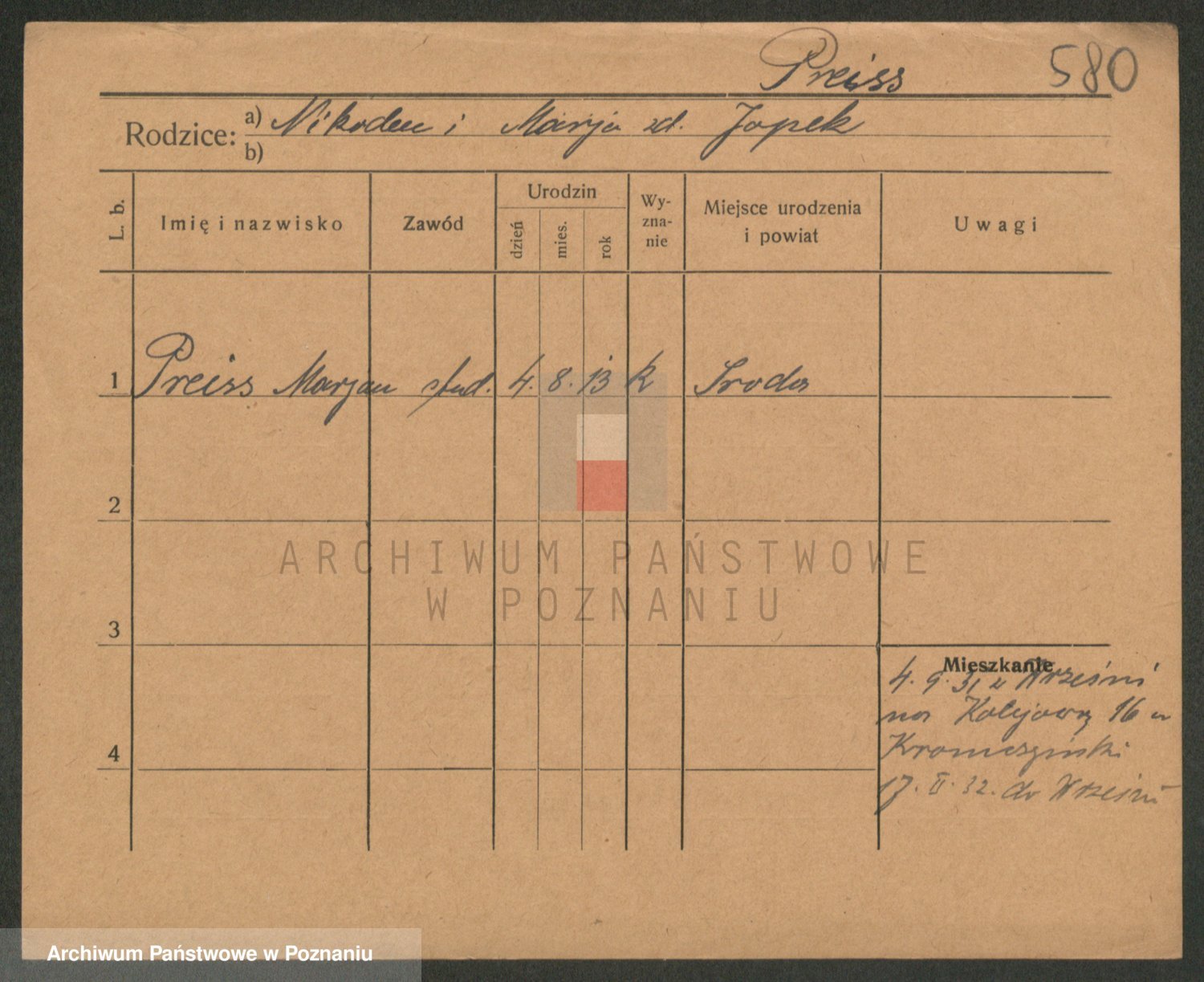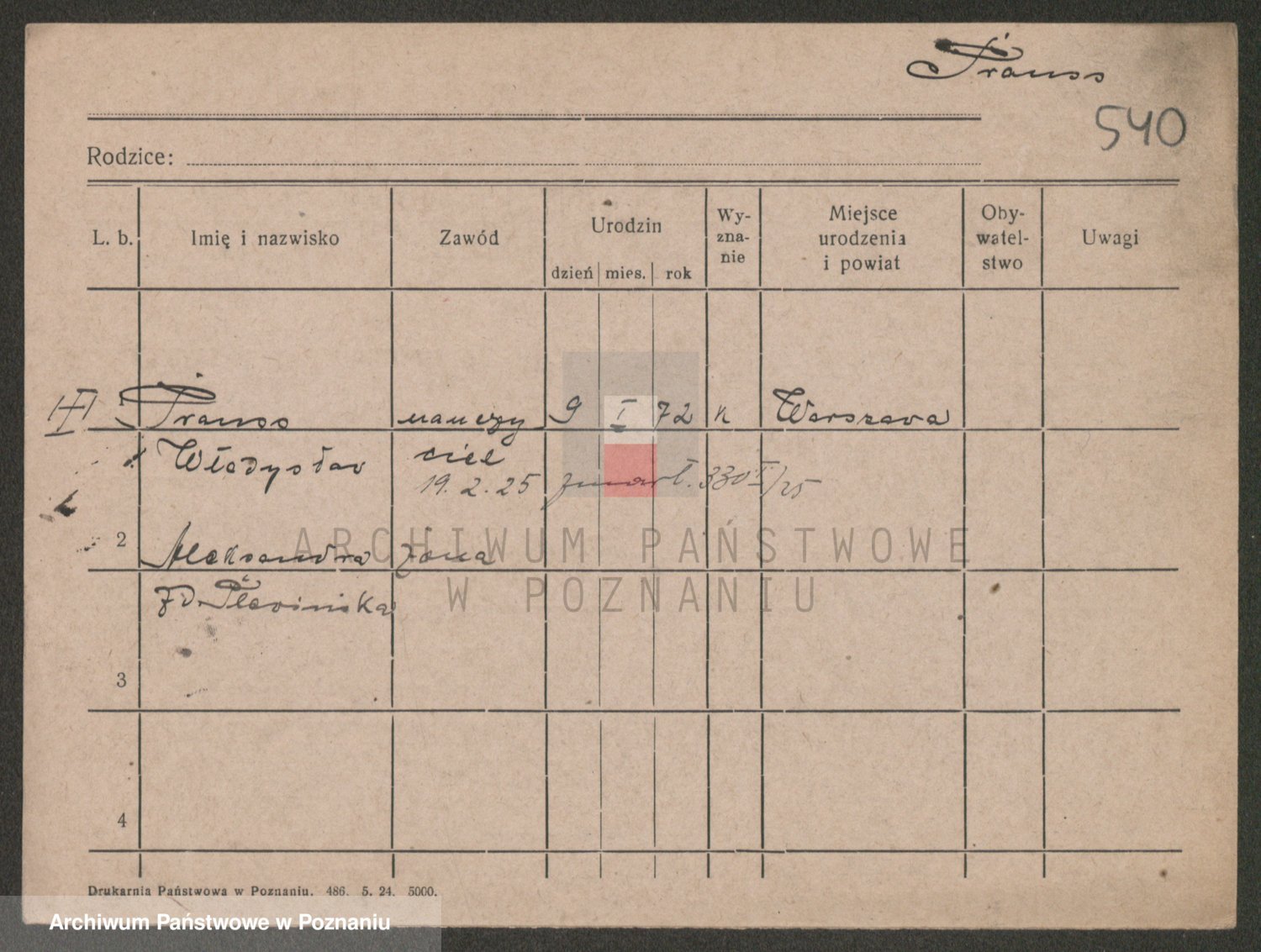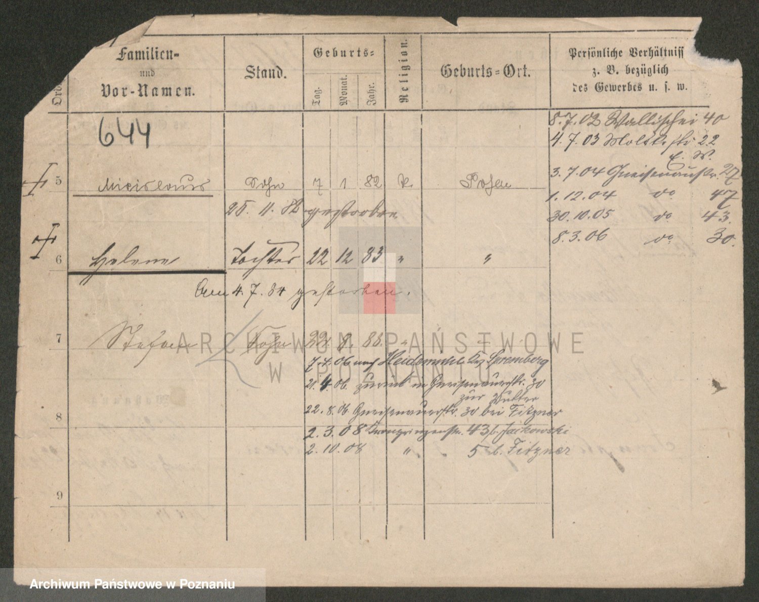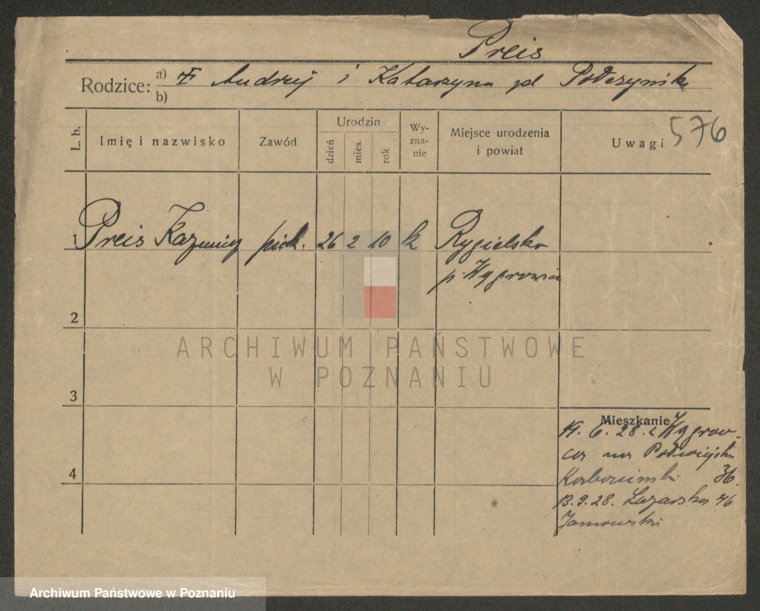 Podgląd karty osobowej dostępny jest po kliknięciu na nazwisko lub ikonkę karty. Można dokonywać powiększenia (ikony na górze) lub przechodzić między kolejnymi skanami (strzałki po bokach).