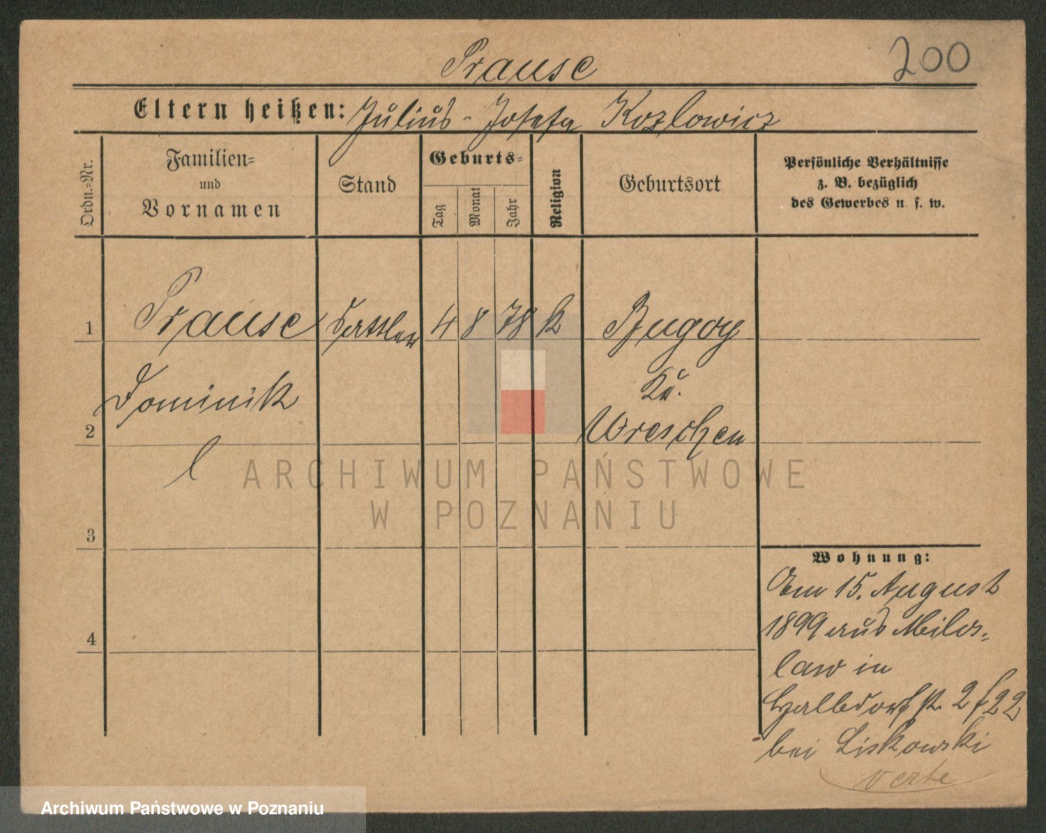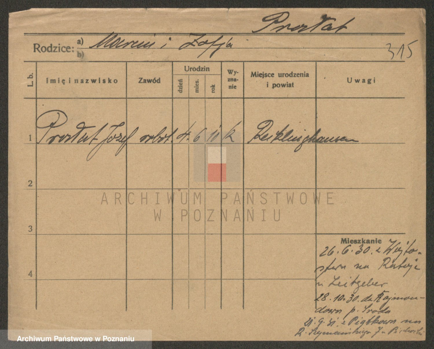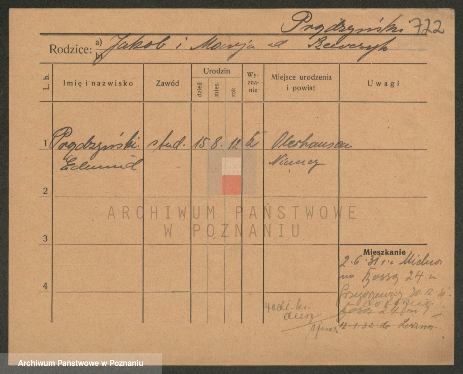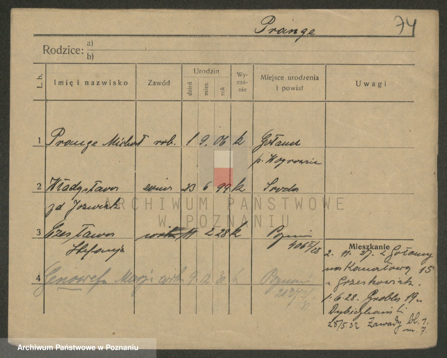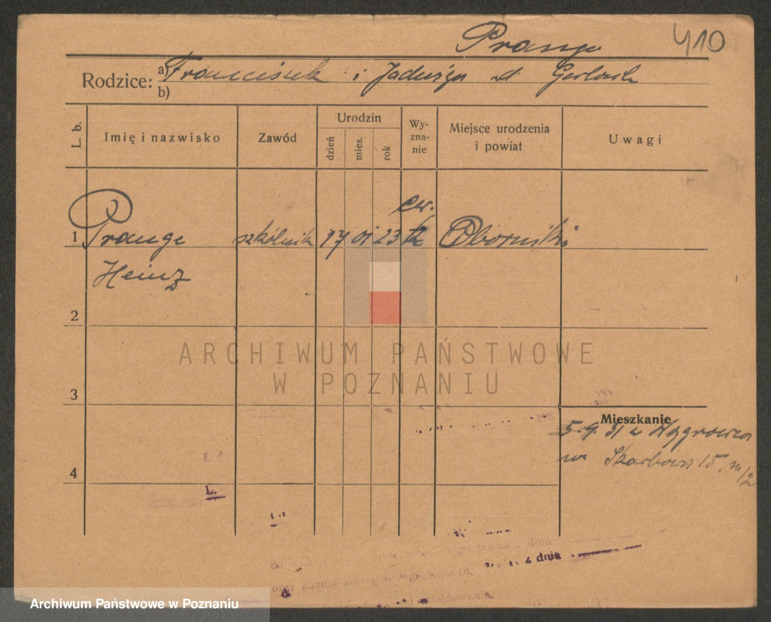 Podgląd karty osobowej dostępny jest po kliknięciu na nazwisko lub ikonkę karty. Można dokonywać powiększenia (ikony na górze) lub przechodzić między kolejnymi skanami (strzałki po bokach).