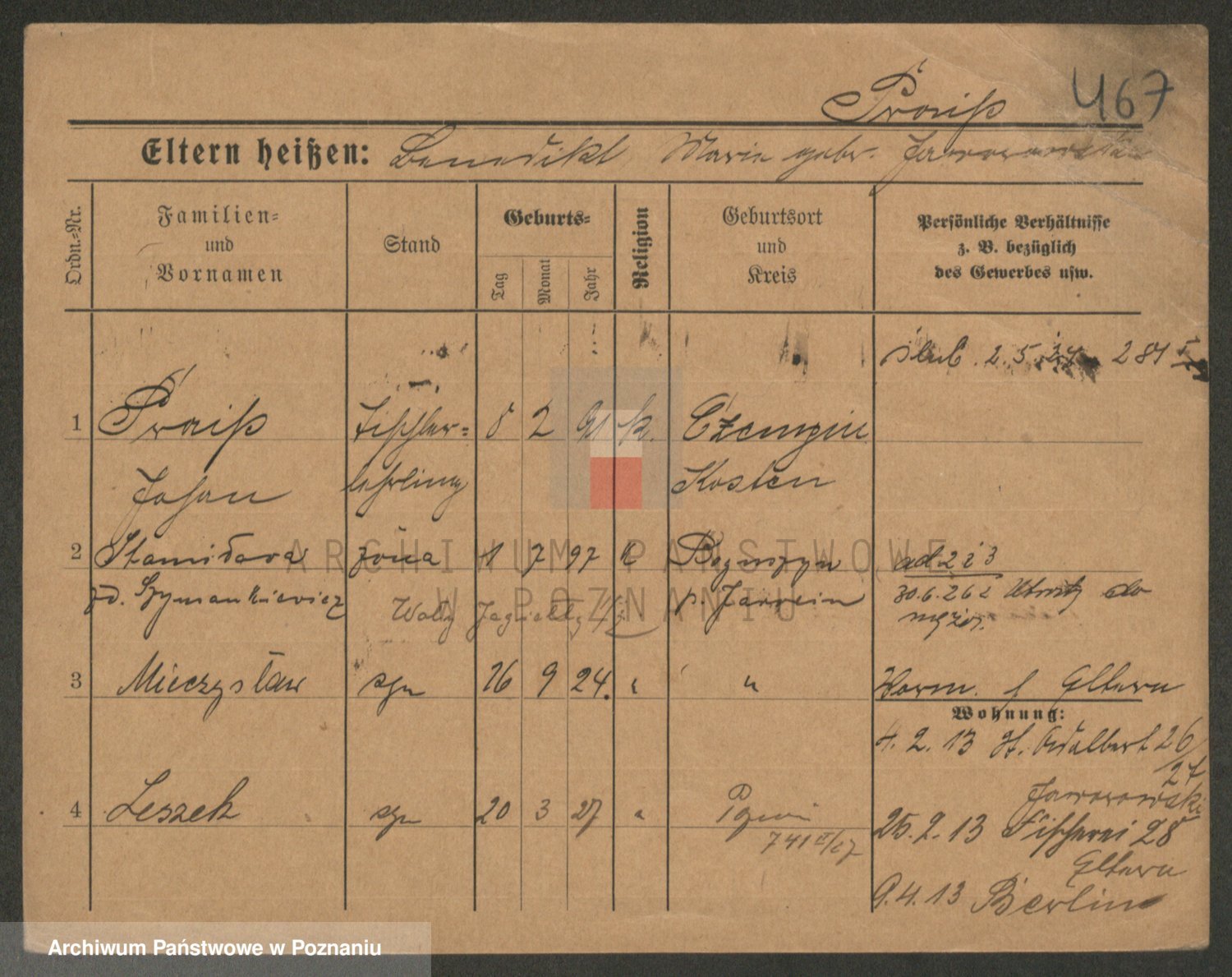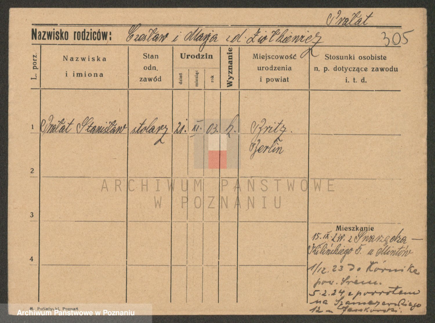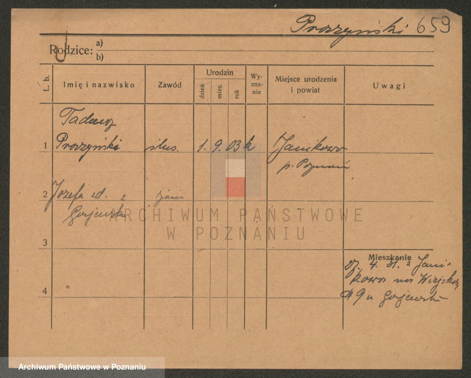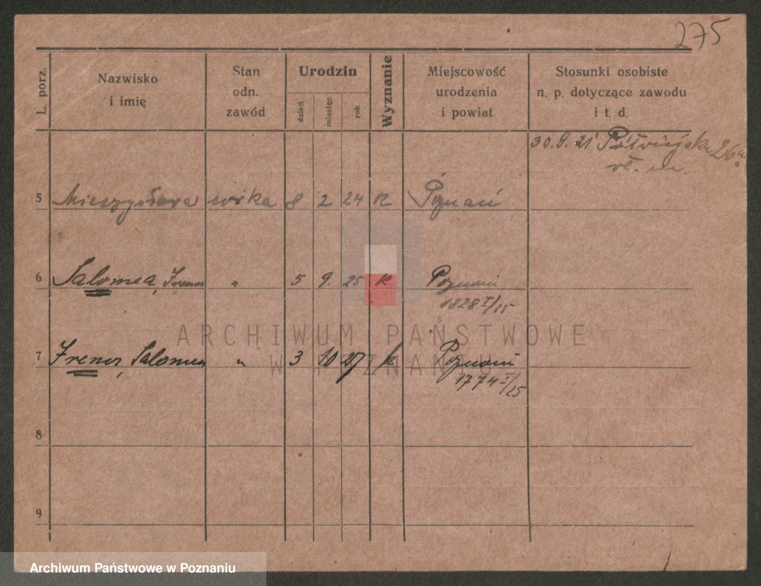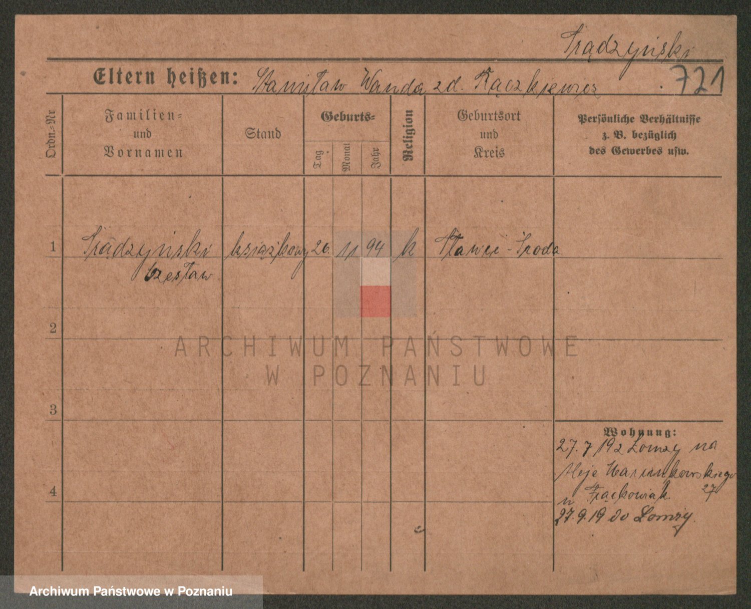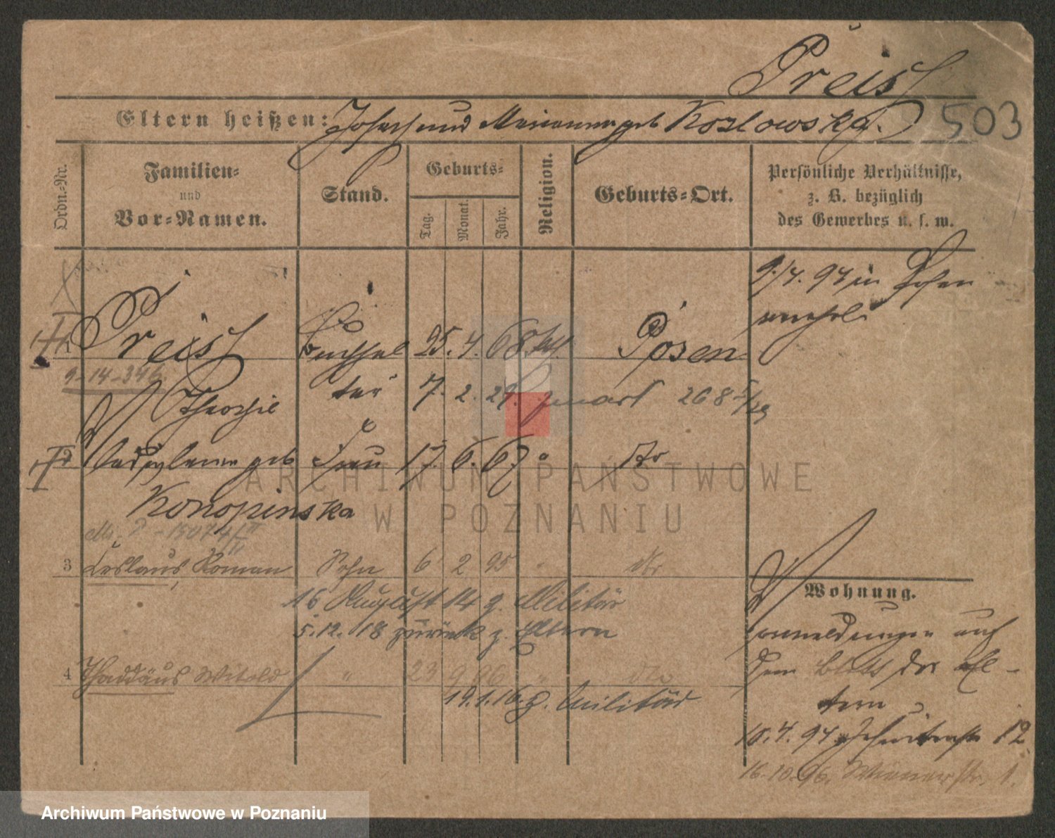 Podgląd karty osobowej dostępny jest po kliknięciu na nazwisko lub ikonkę karty. Można dokonywać powiększenia (ikony na górze) lub przechodzić między kolejnymi skanami (strzałki po bokach).