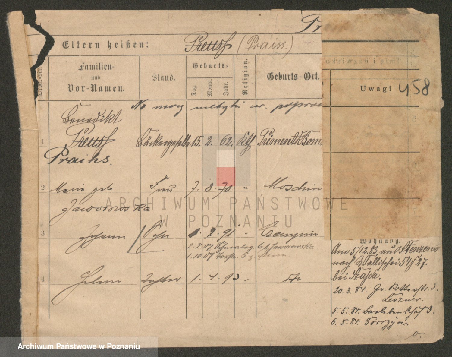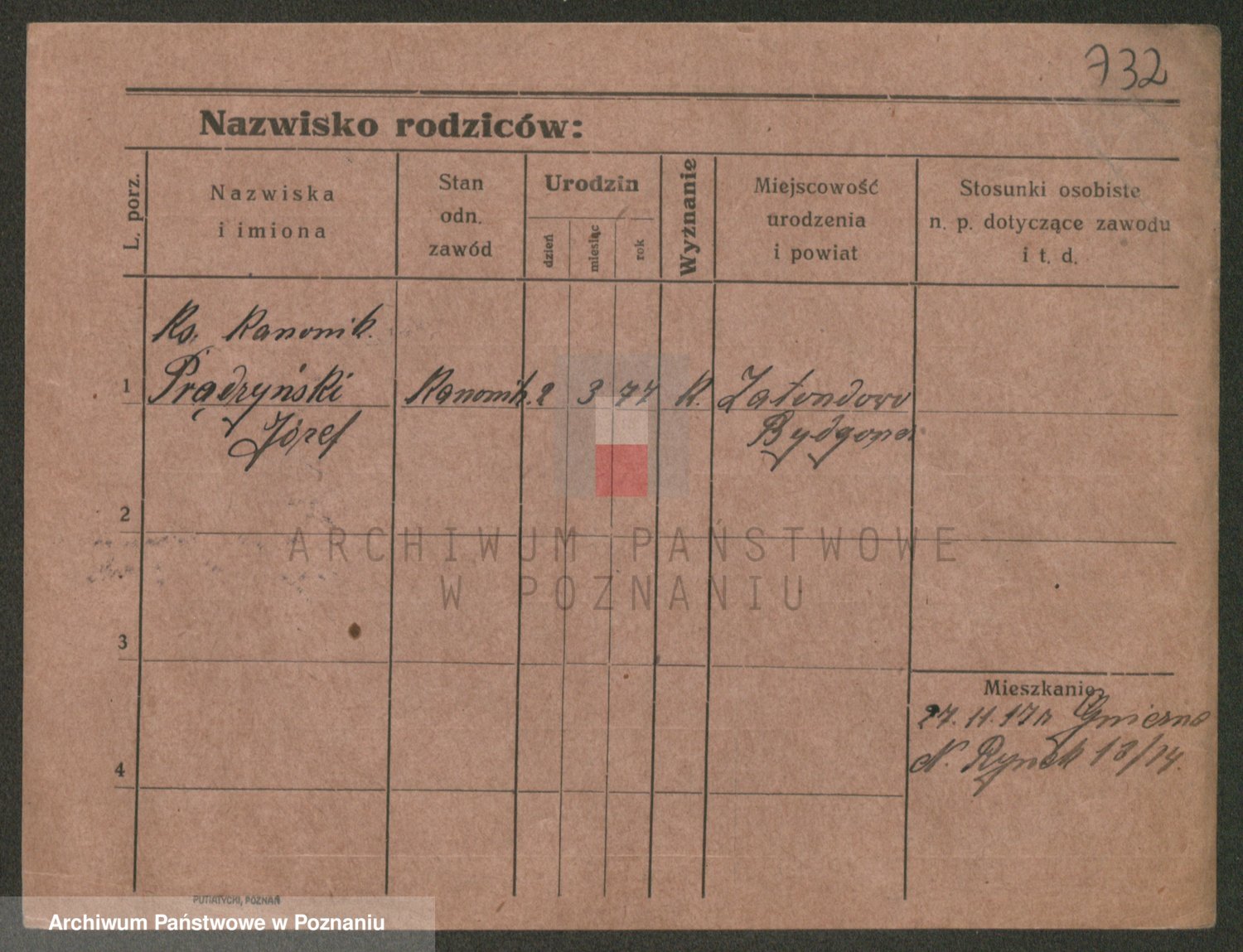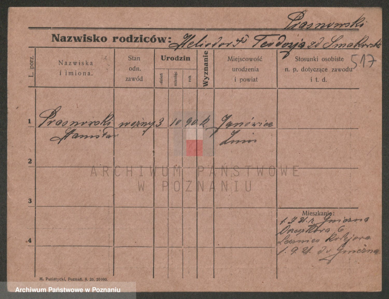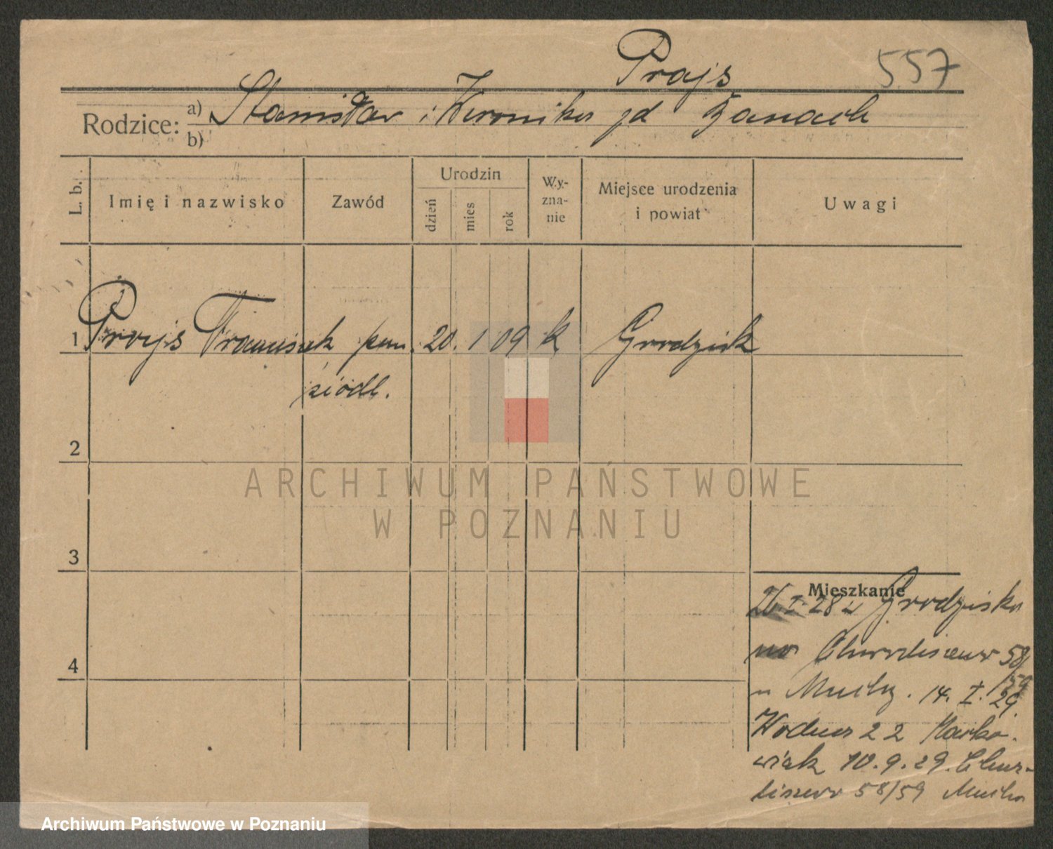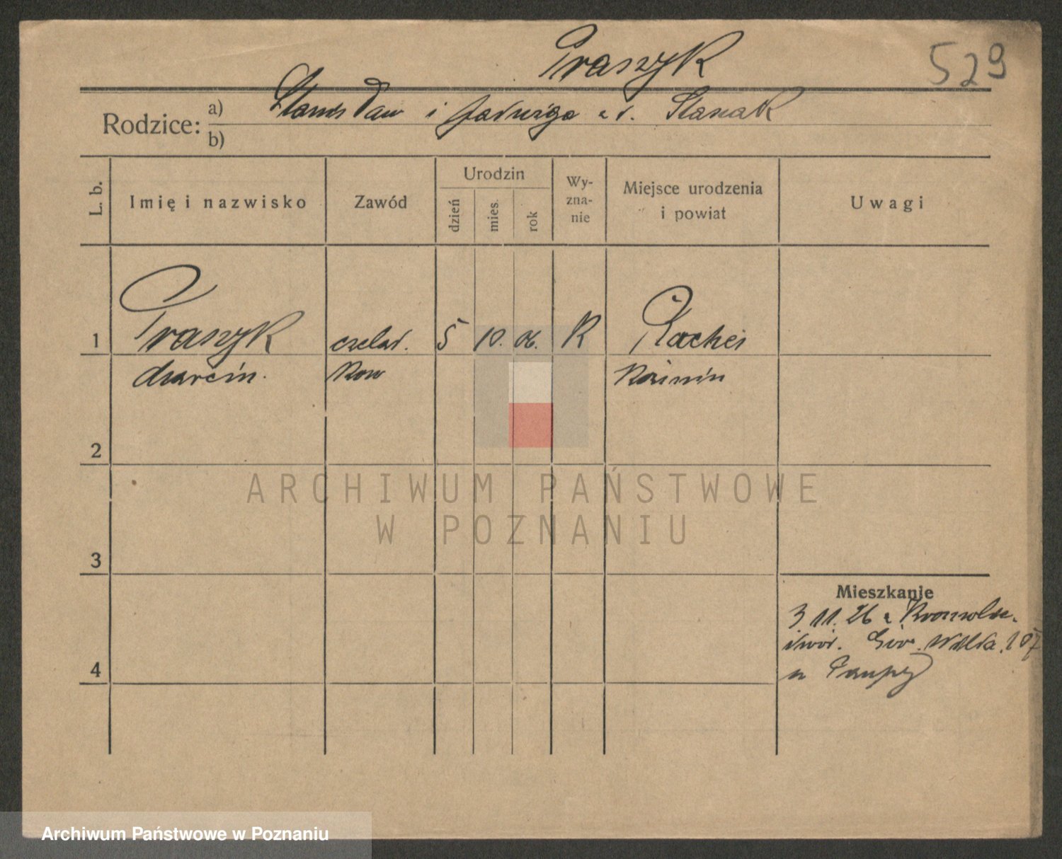Podgląd karty osobowej dostępny jest po kliknięciu na nazwisko lub ikonkę karty. Można dokonywać powiększenia (ikony na górze) lub przechodzić między kolejnymi skanami (strzałki po bokach).