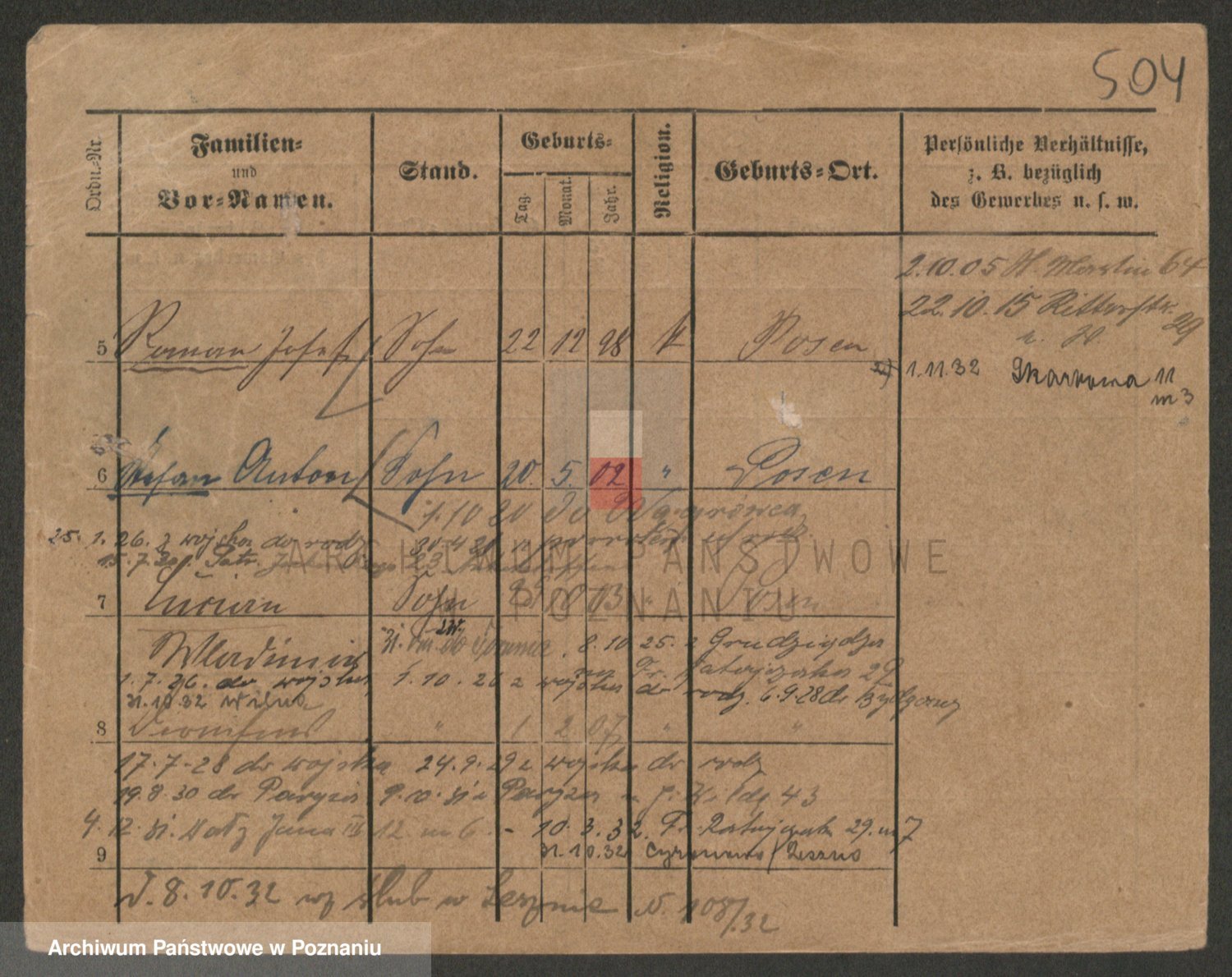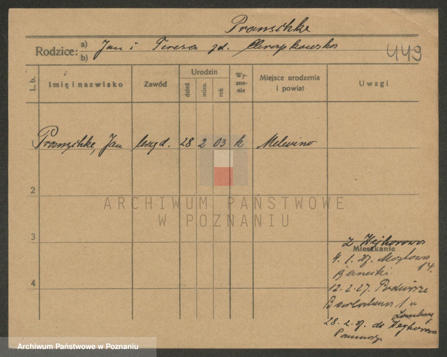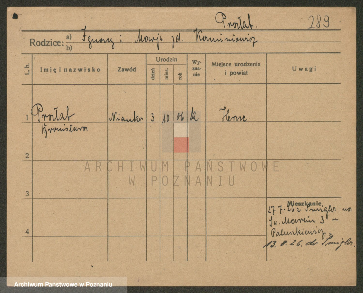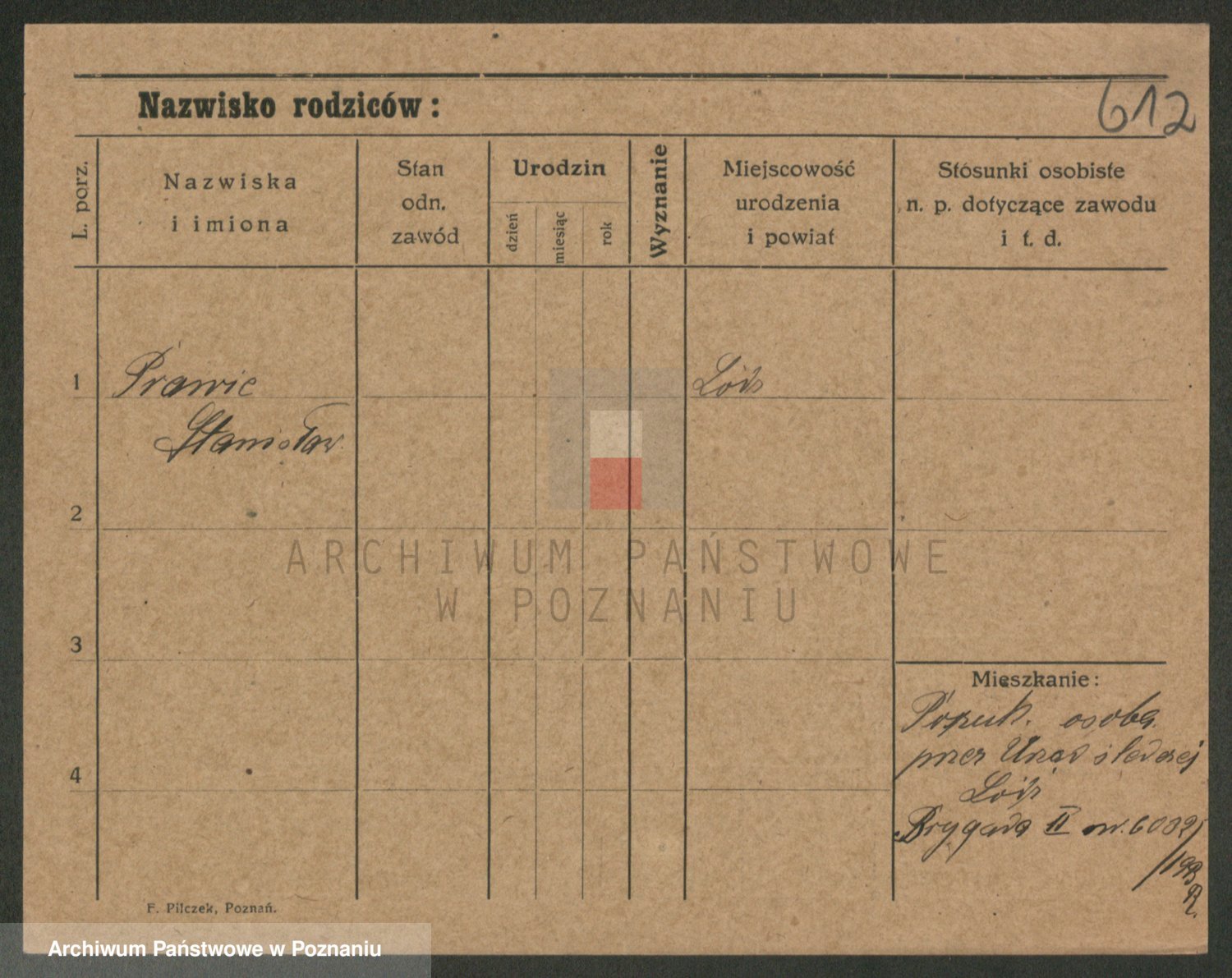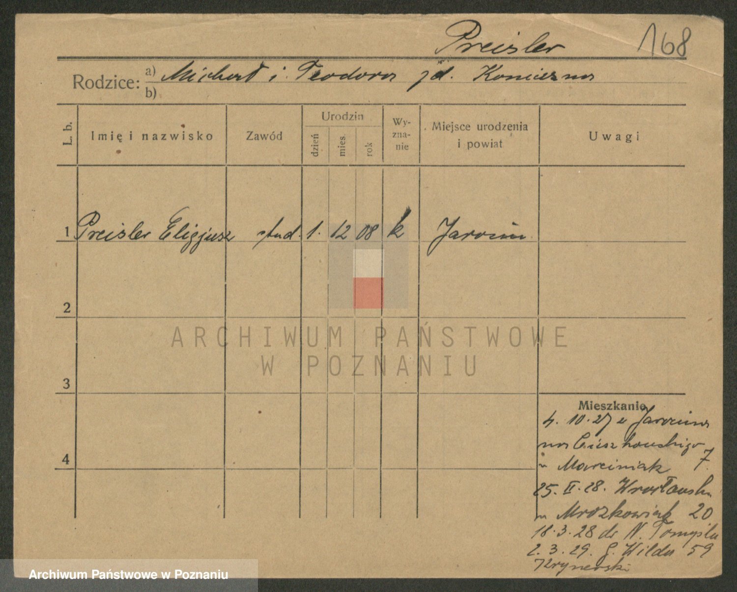 Podgląd karty osobowej dostępny jest po kliknięciu na nazwisko lub ikonkę karty. Można dokonywać powiększenia (ikony na górze) lub przechodzić między kolejnymi skanami (strzałki po bokach).