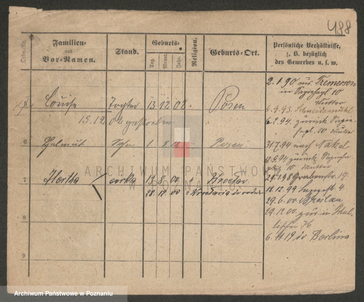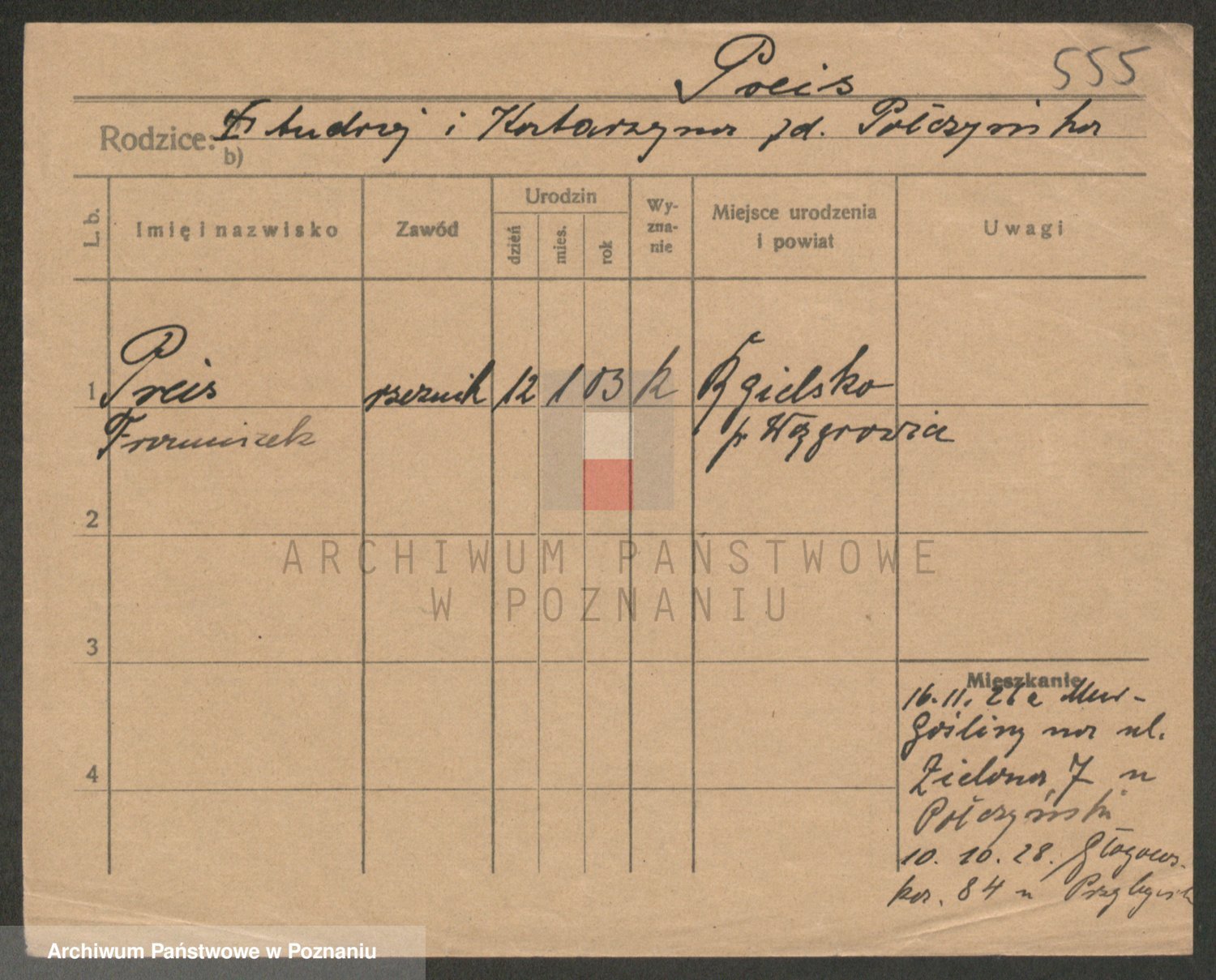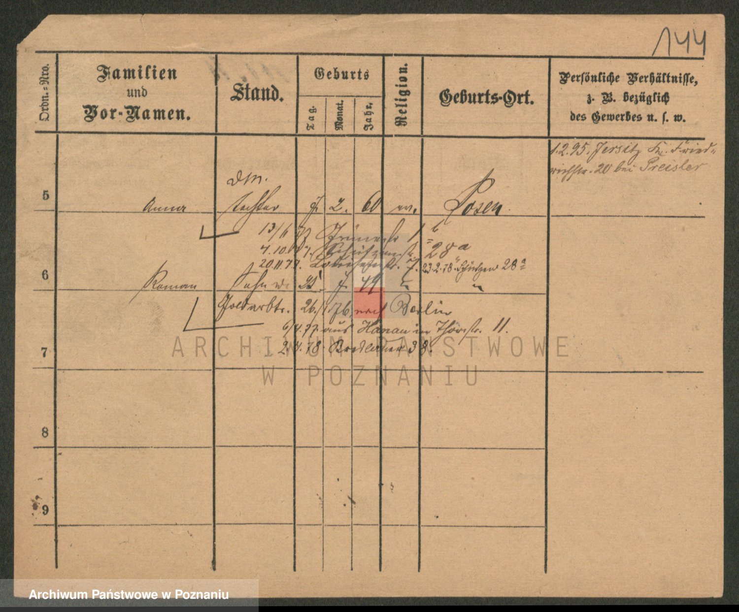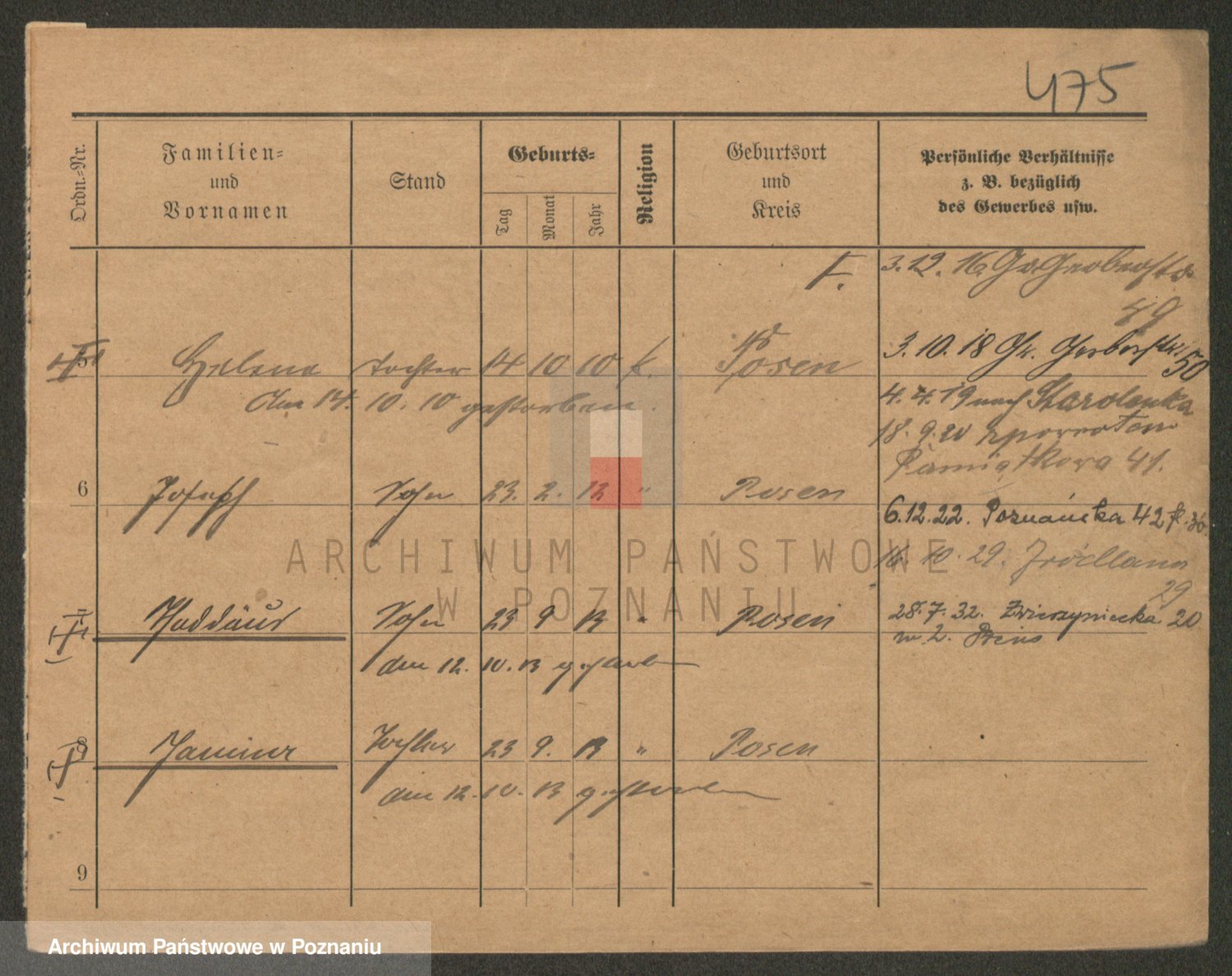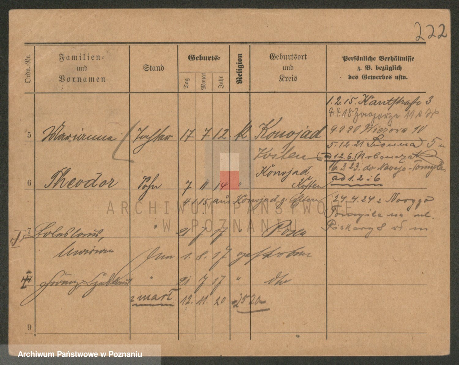 Podgląd karty osobowej dostępny jest po kliknięciu na nazwisko lub ikonkę karty. Można dokonywać powiększenia (ikony na górze) lub przechodzić między kolejnymi skanami (strzałki po bokach).