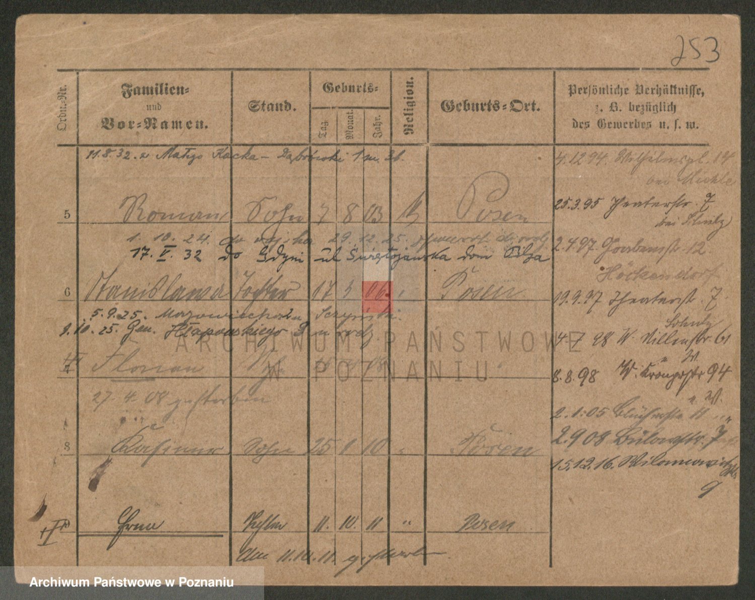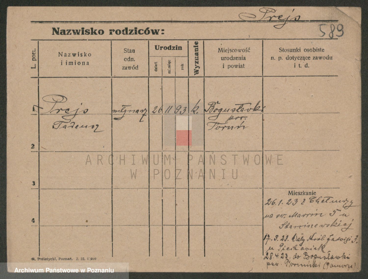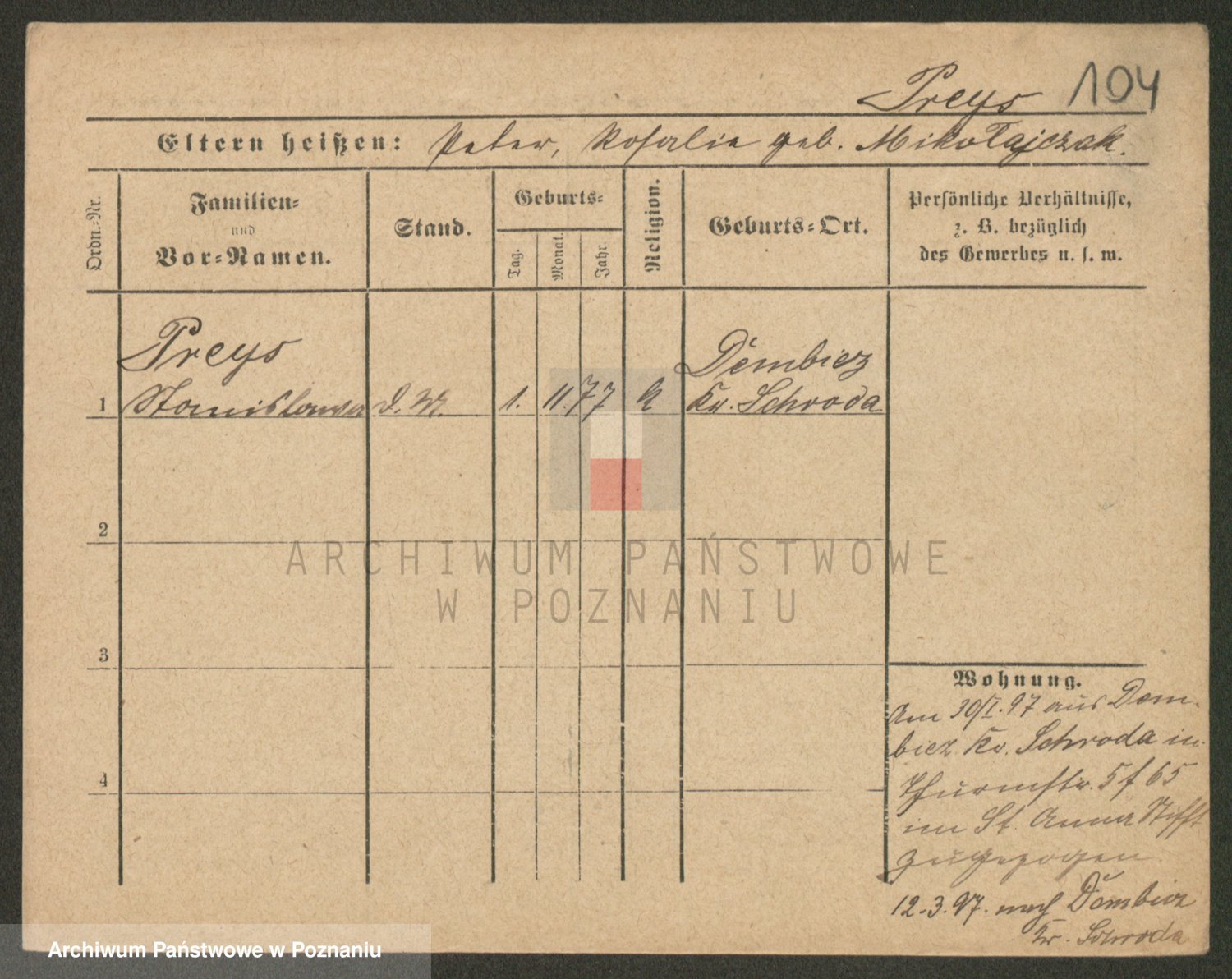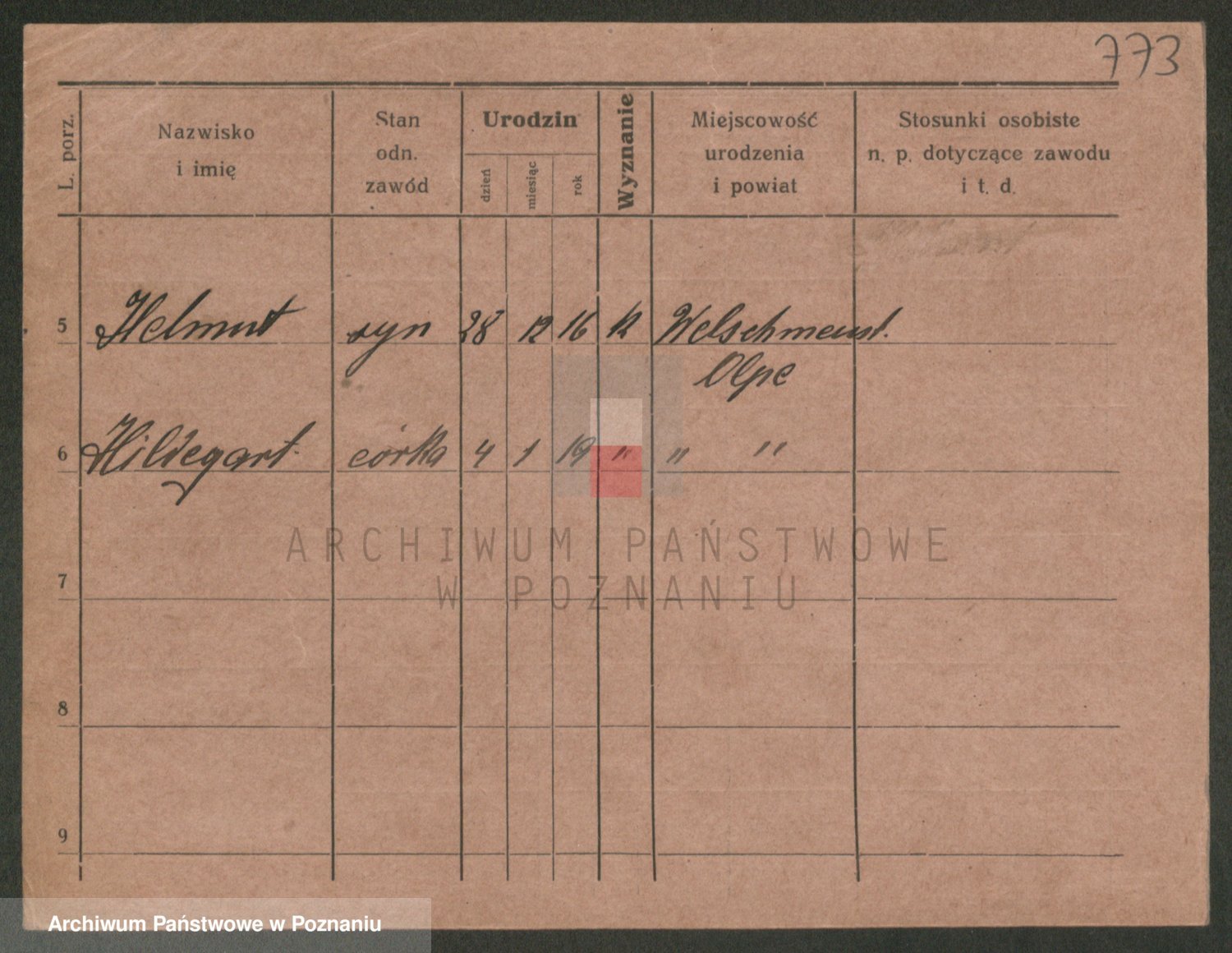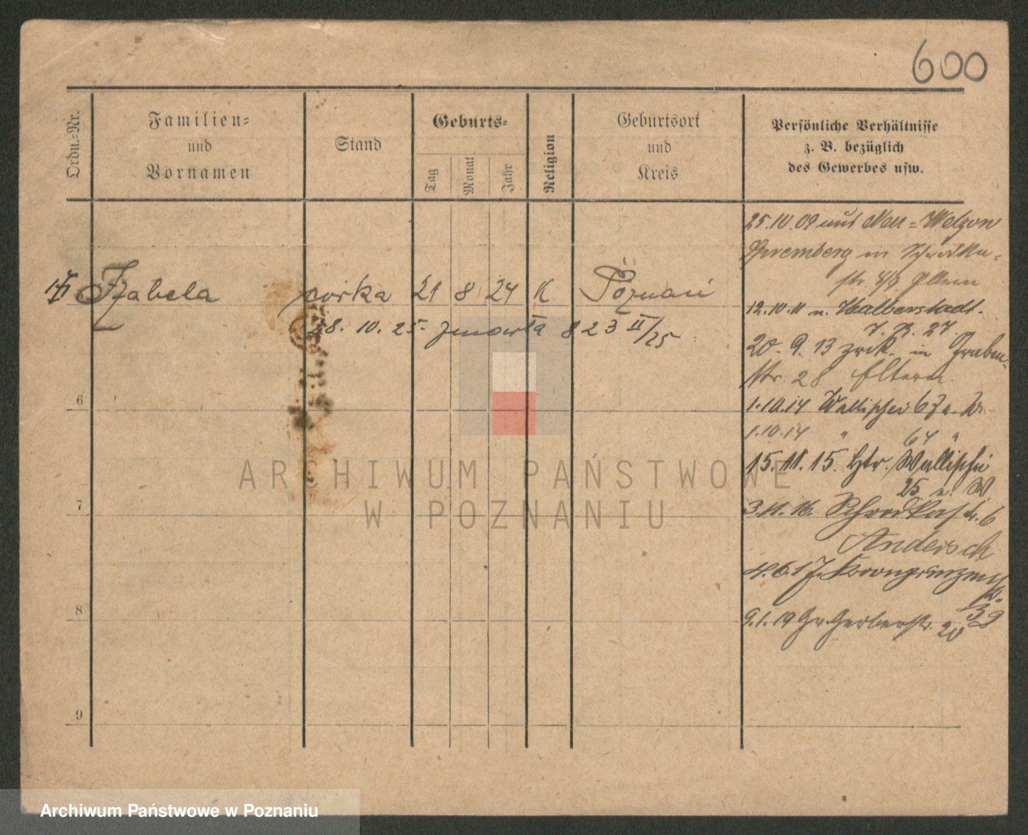 Podgląd karty osobowej dostępny jest po kliknięciu na nazwisko lub ikonkę karty. Można dokonywać powiększenia (ikony na górze) lub przechodzić między kolejnymi skanami (strzałki po bokach).