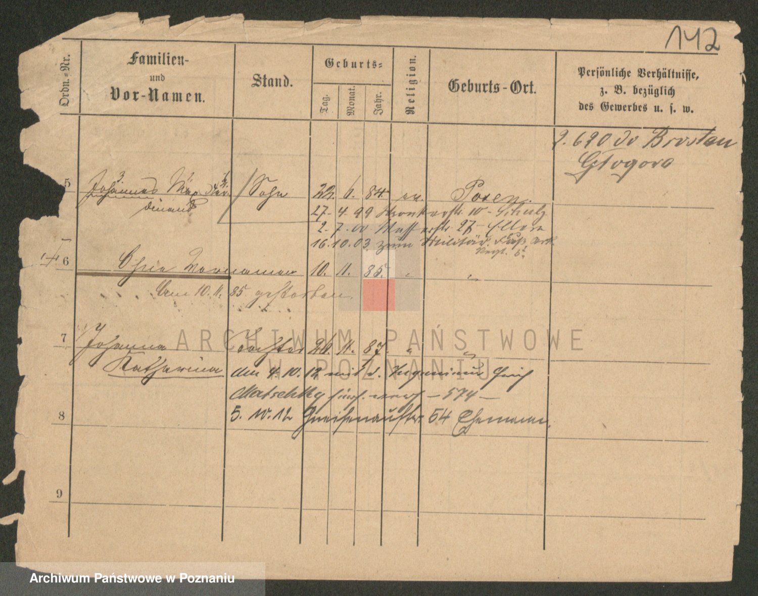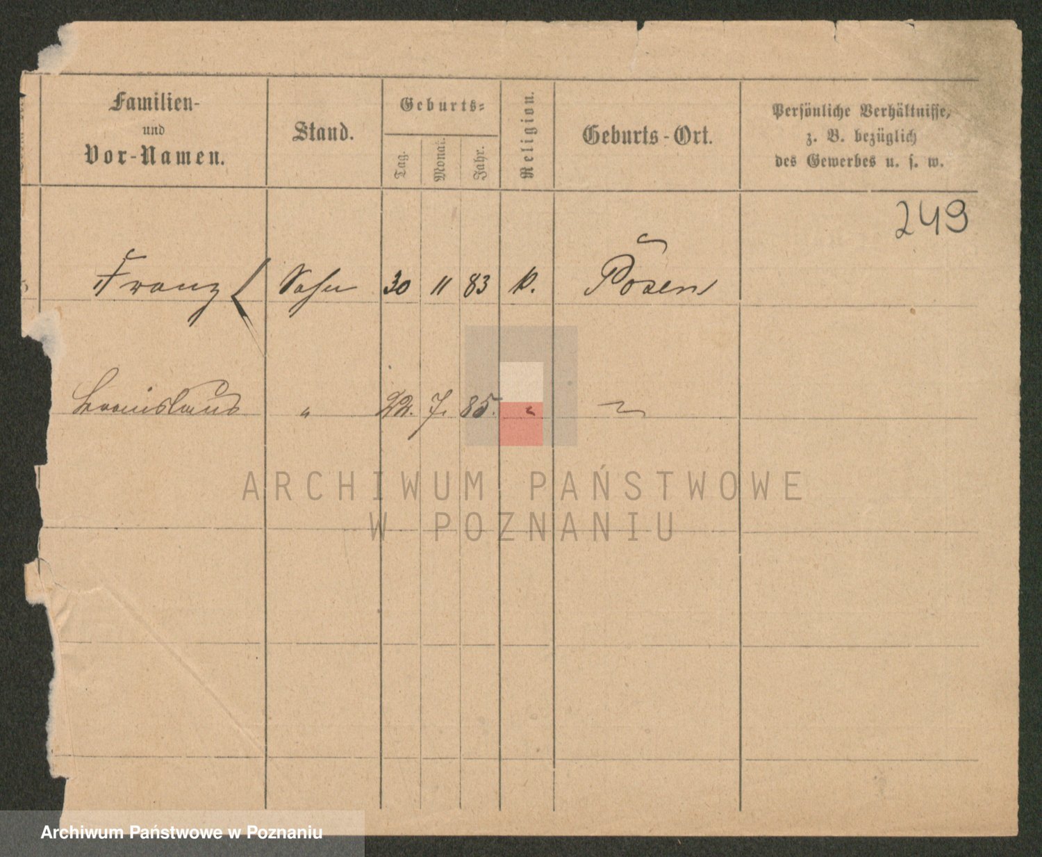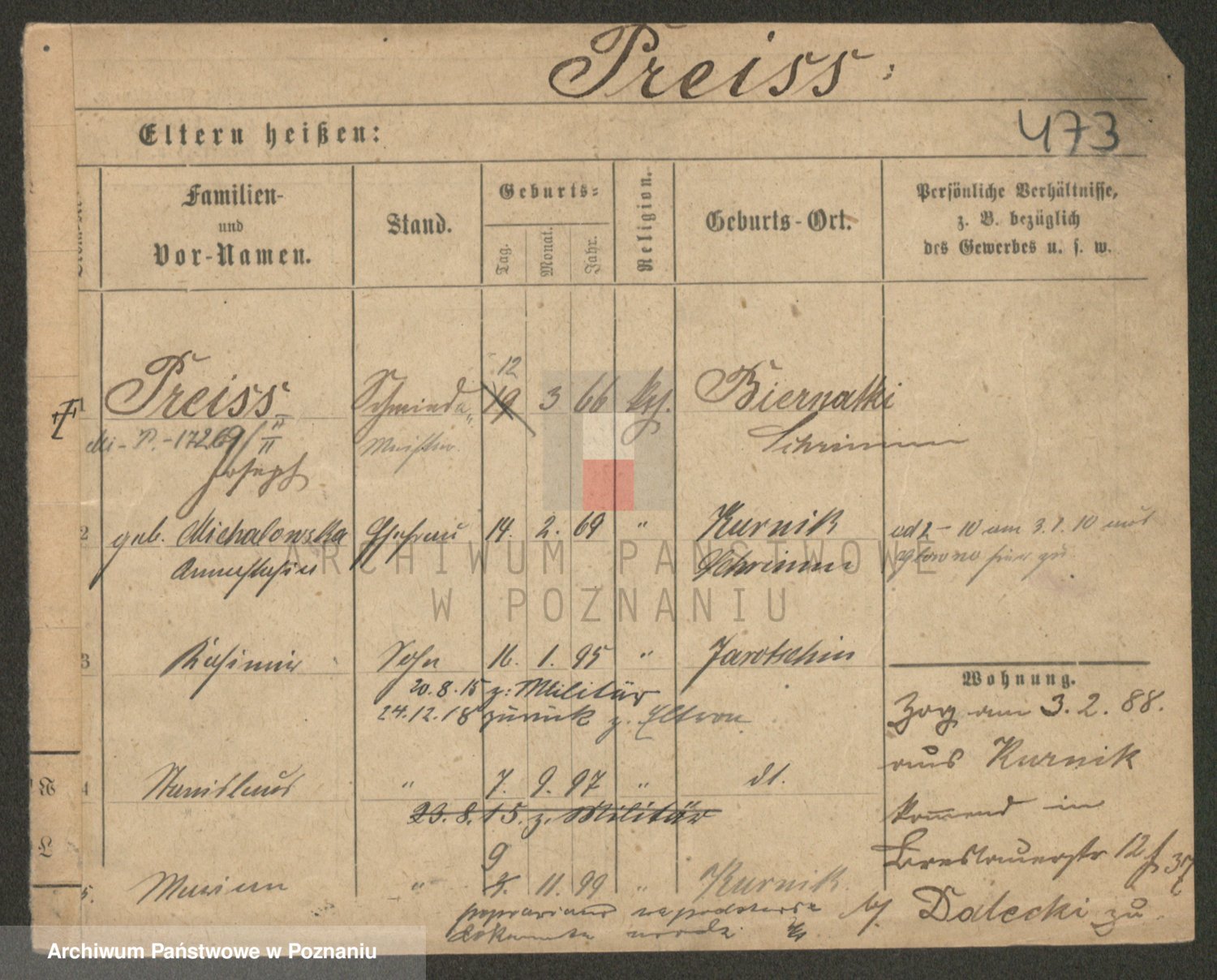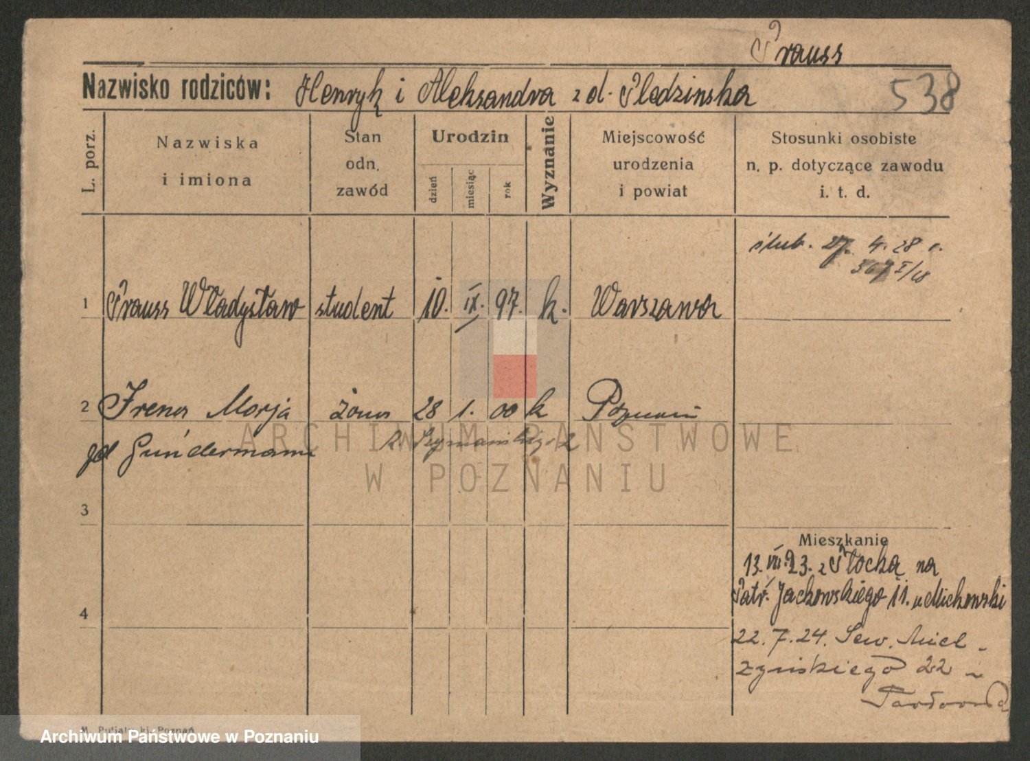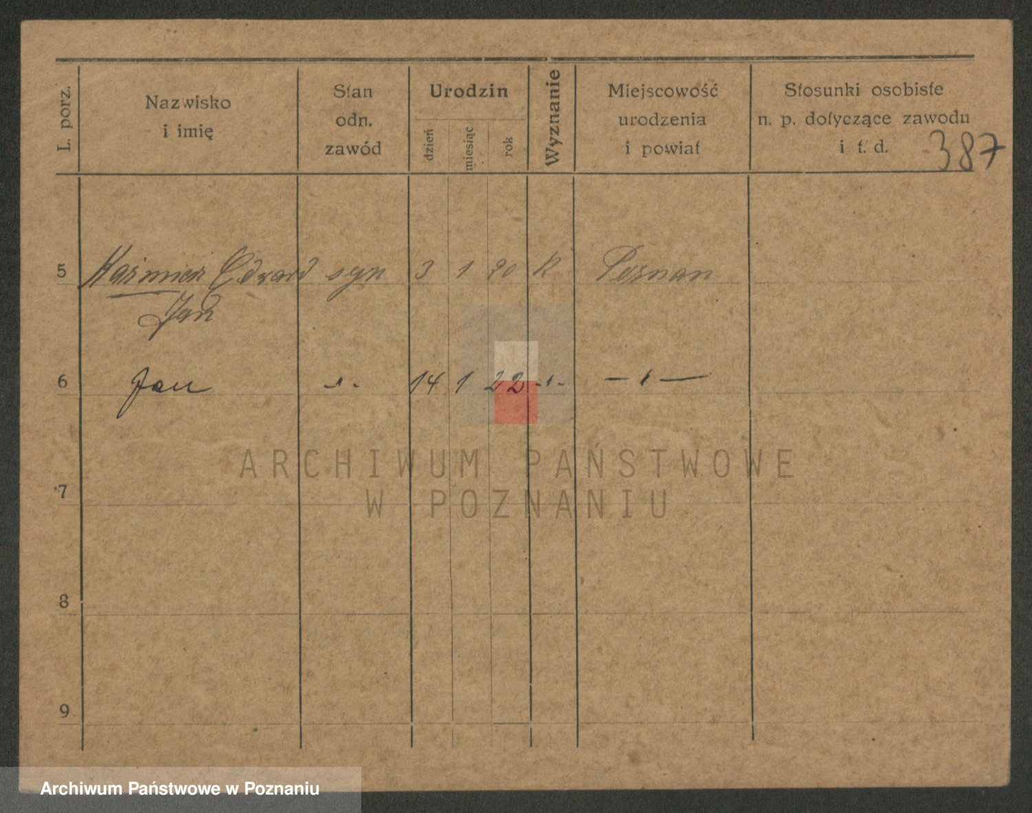 Podgląd karty osobowej dostępny jest po kliknięciu na nazwisko lub ikonkę karty. Można dokonywać powiększenia (ikony na górze) lub przechodzić między kolejnymi skanami (strzałki po bokach).