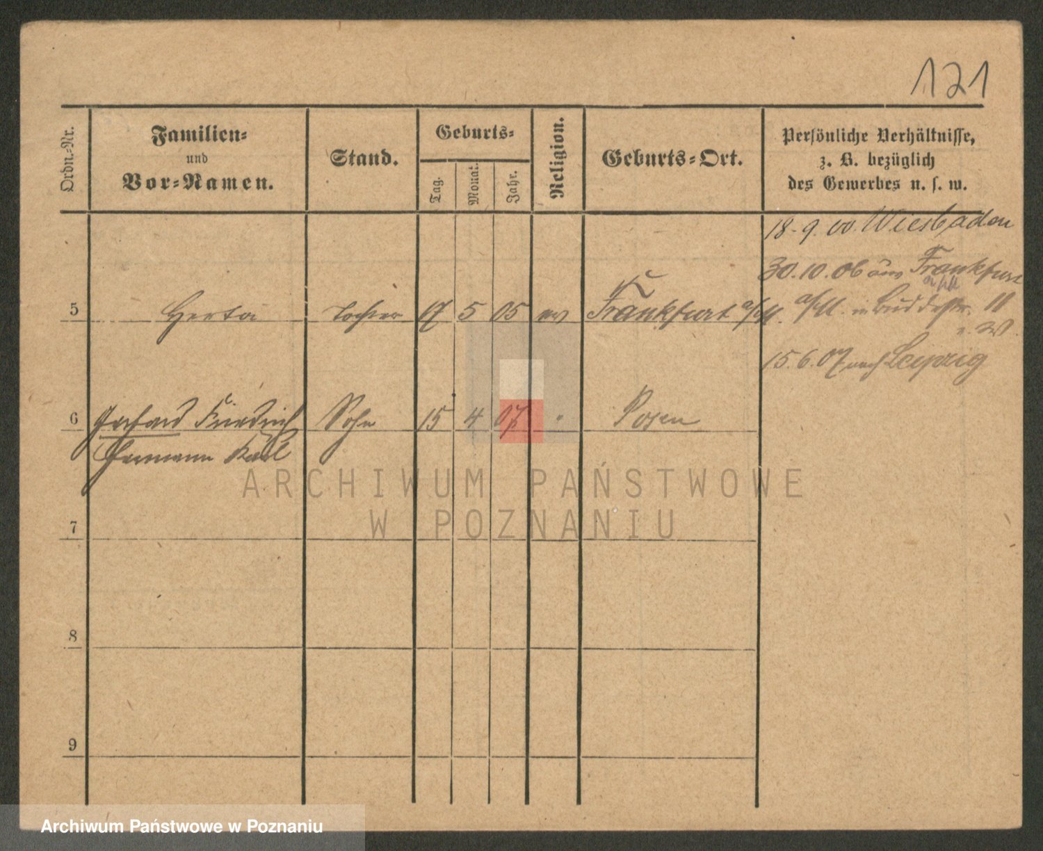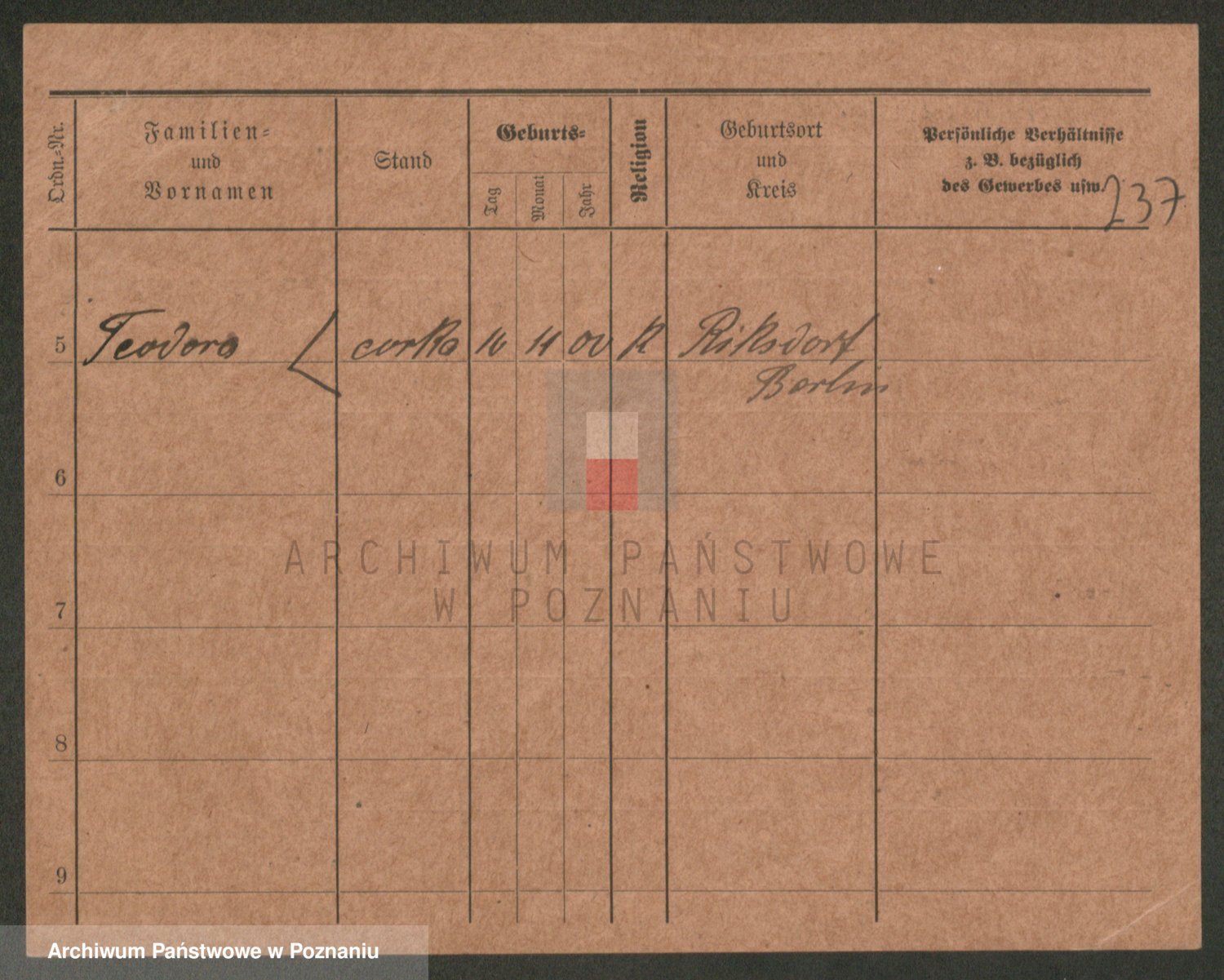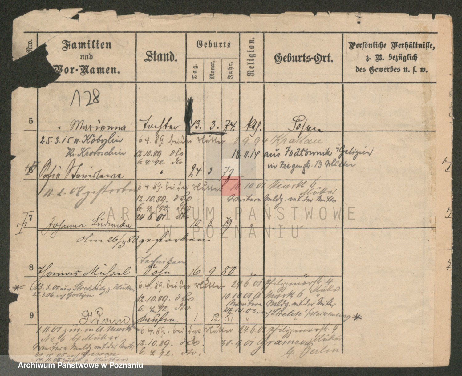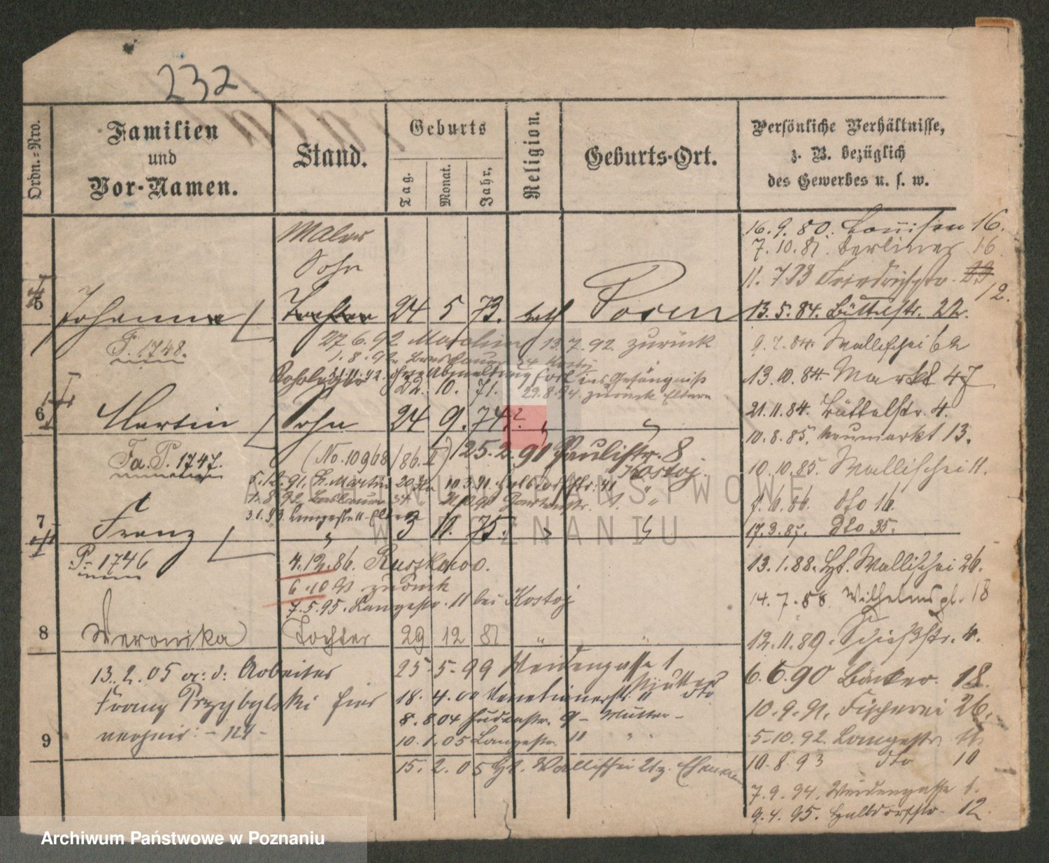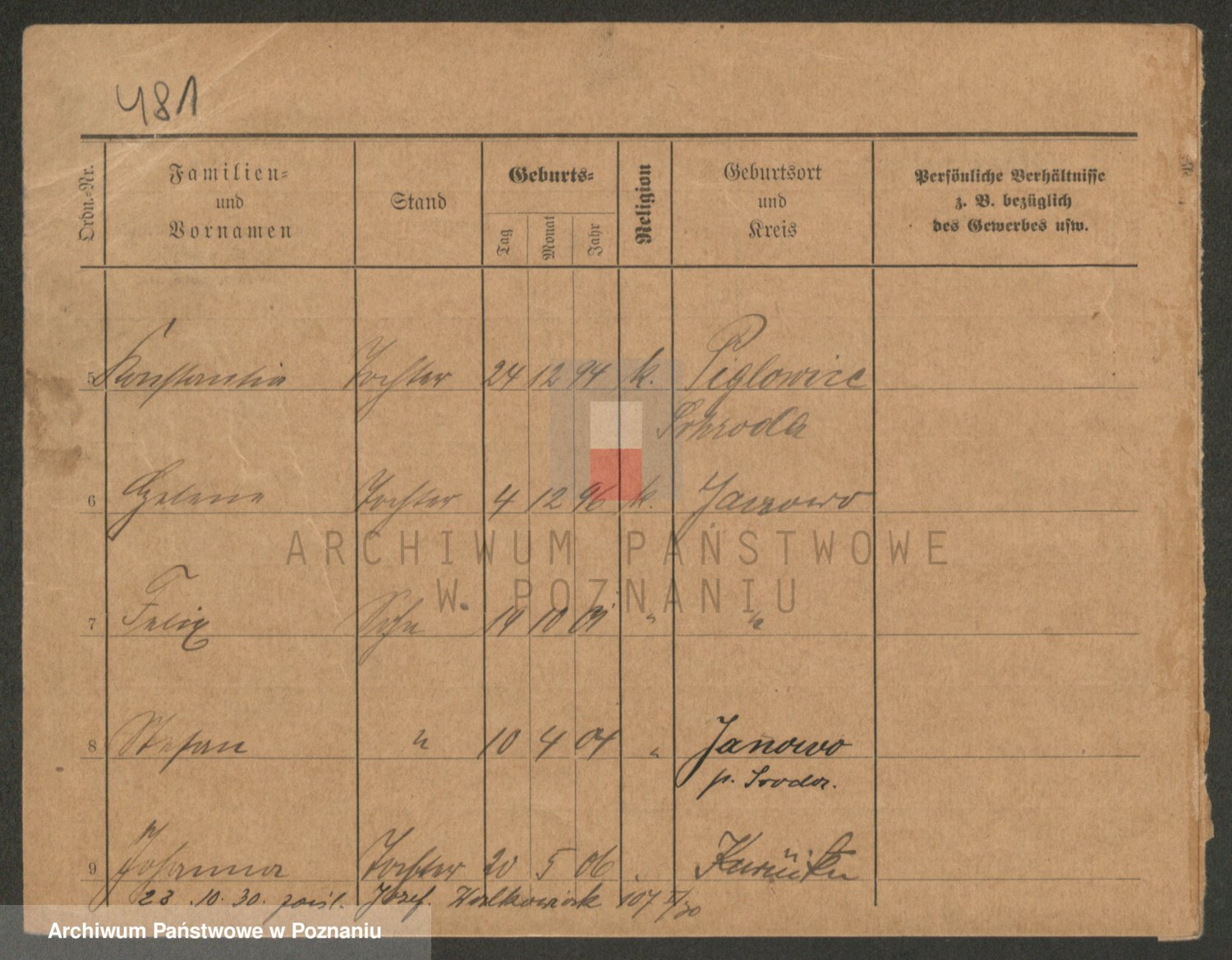 Podgląd karty osobowej dostępny jest po kliknięciu na nazwisko lub ikonkę karty. Można dokonywać powiększenia (ikony na górze) lub przechodzić między kolejnymi skanami (strzałki po bokach).