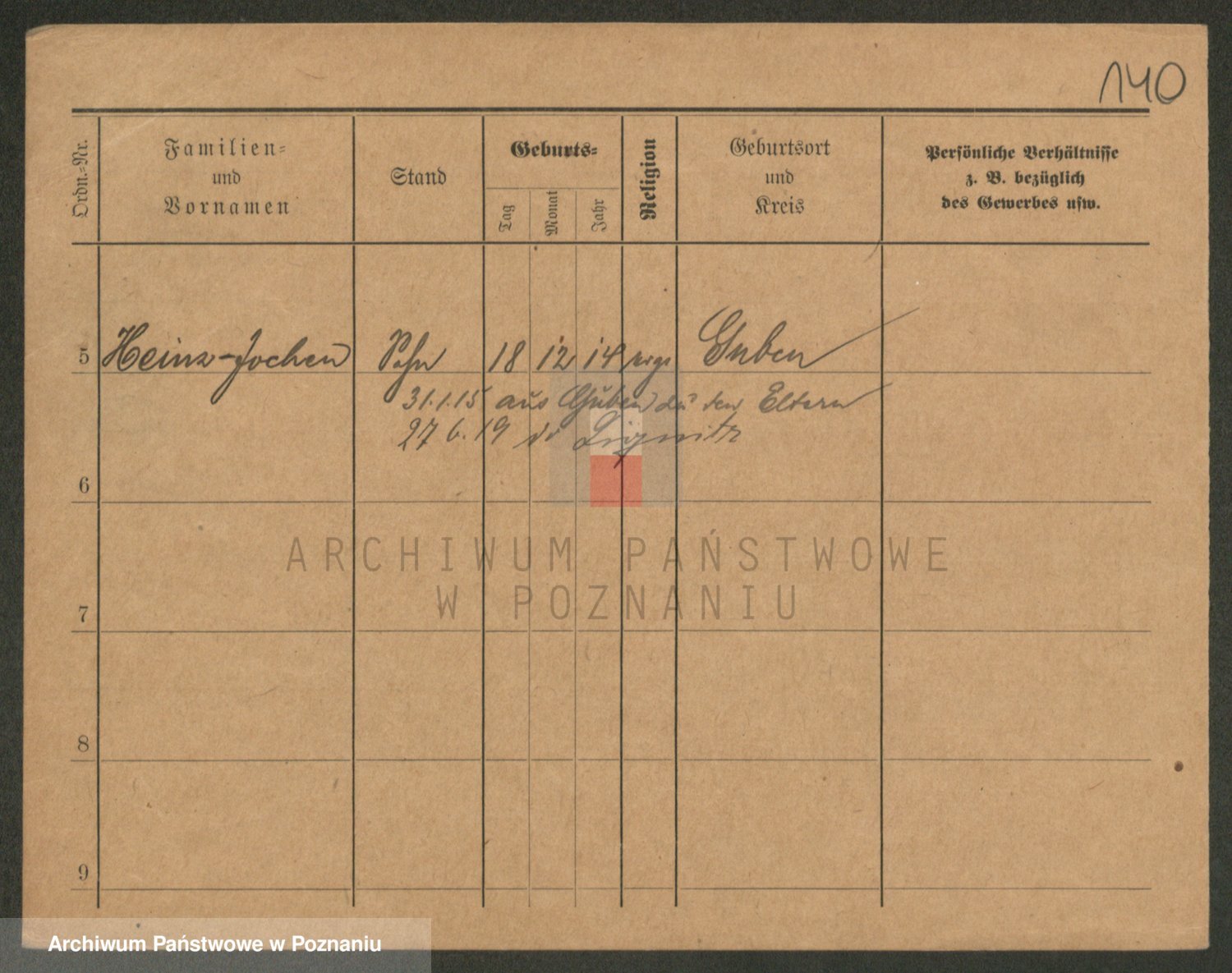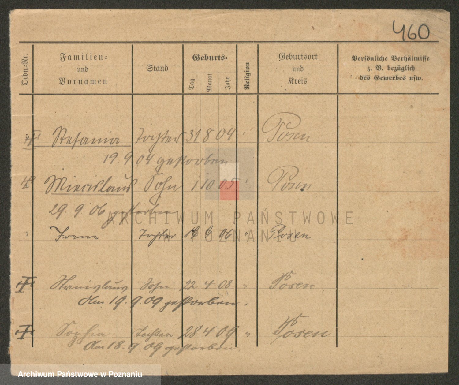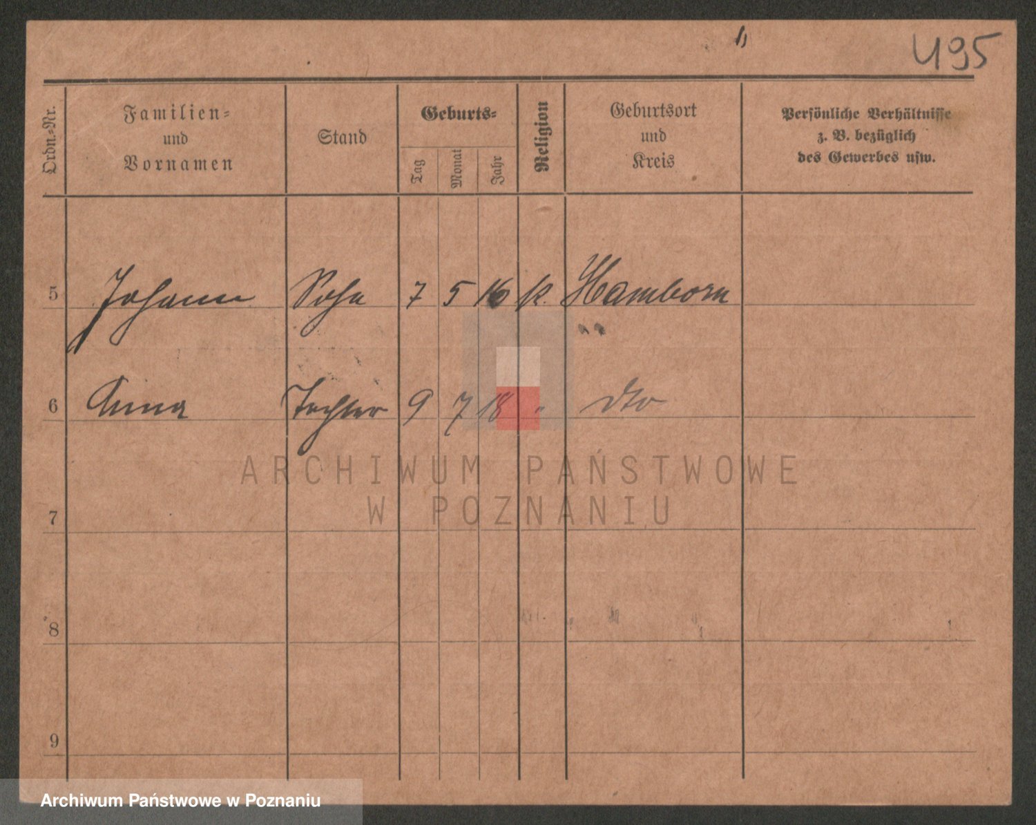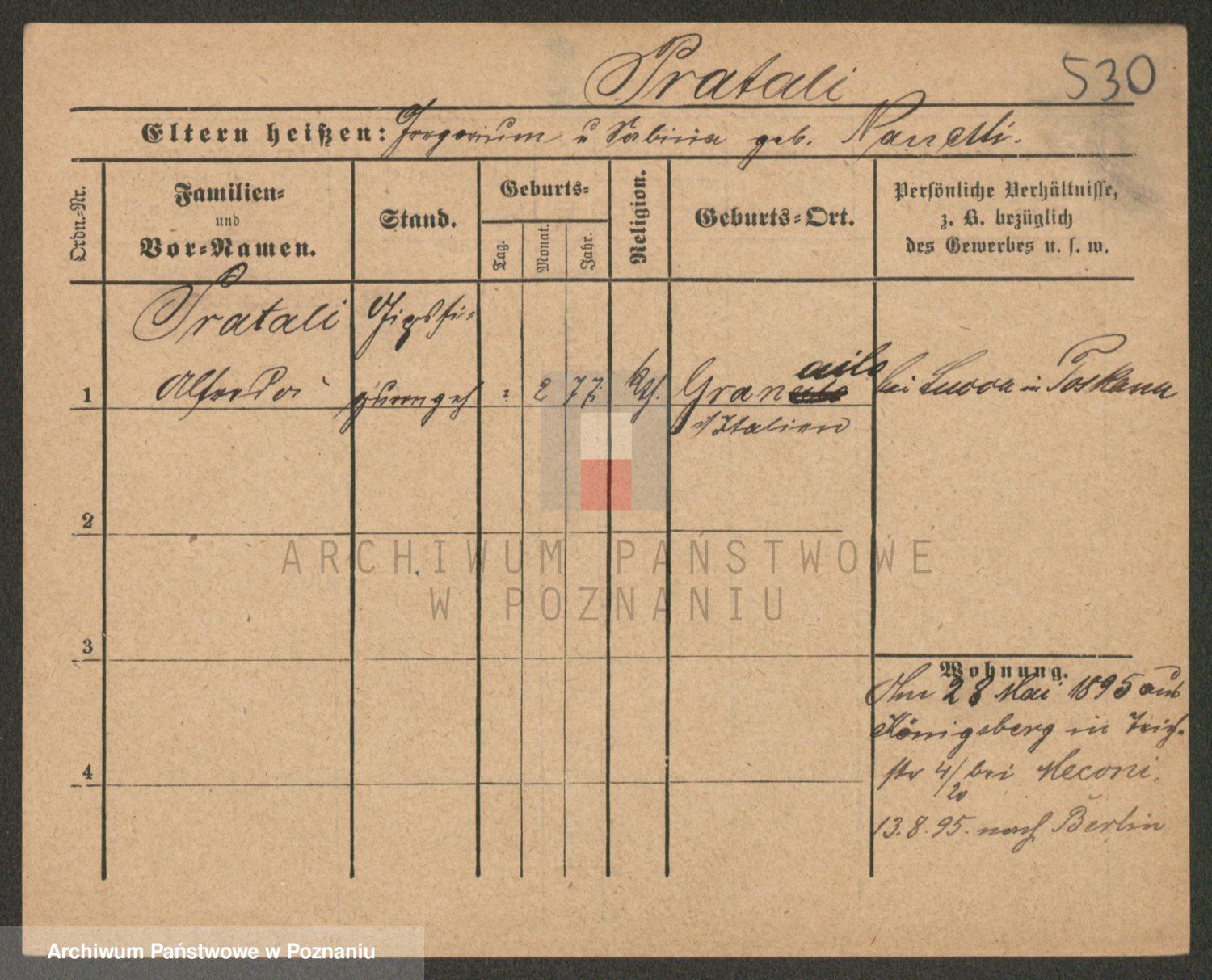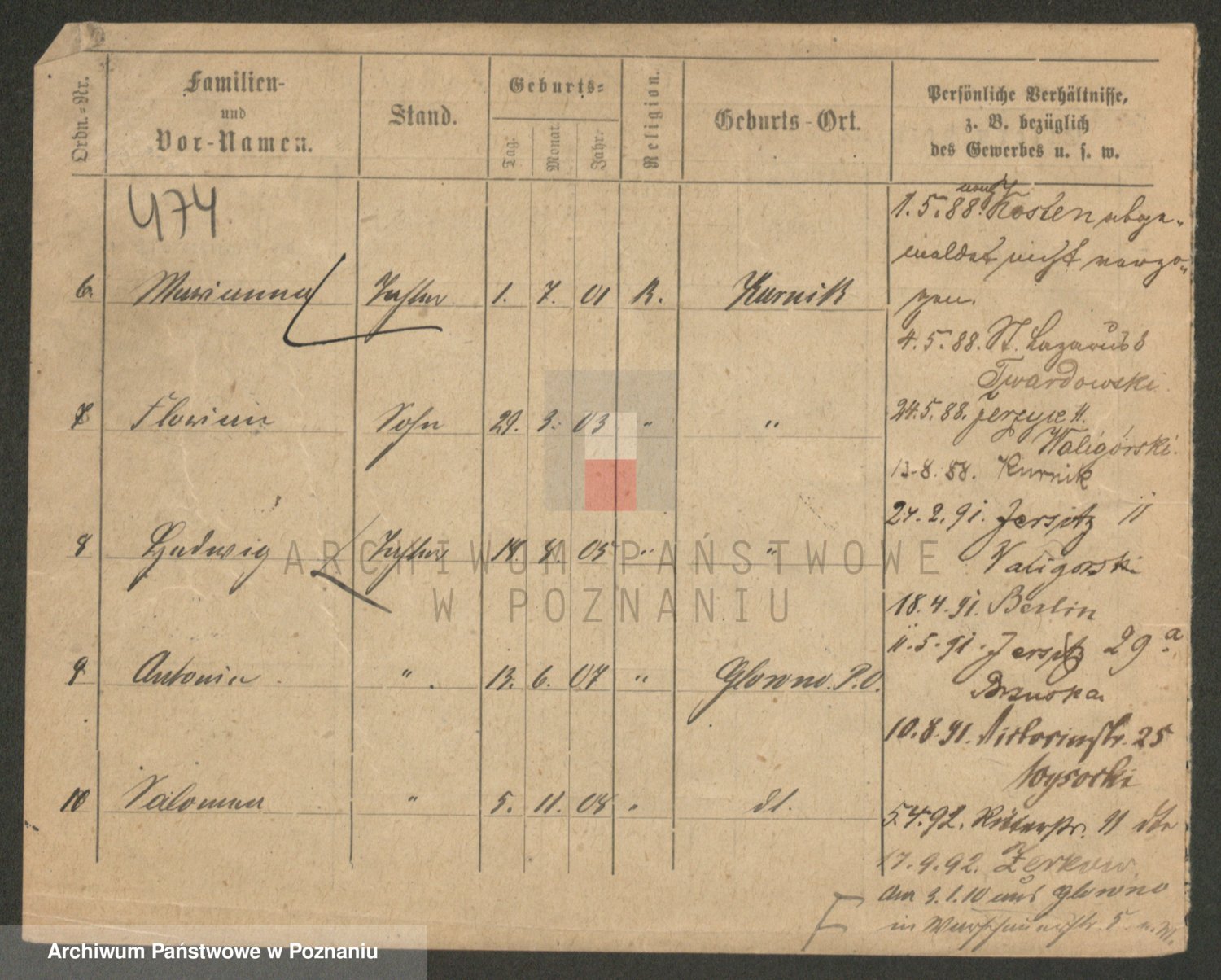 Podgląd karty osobowej dostępny jest po kliknięciu na nazwisko lub ikonkę karty. Można dokonywać powiększenia (ikony na górze) lub przechodzić między kolejnymi skanami (strzałki po bokach).
