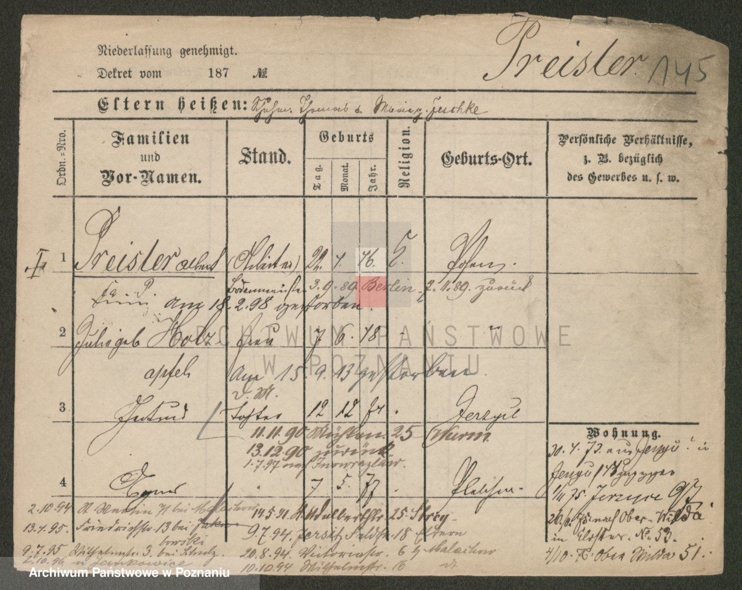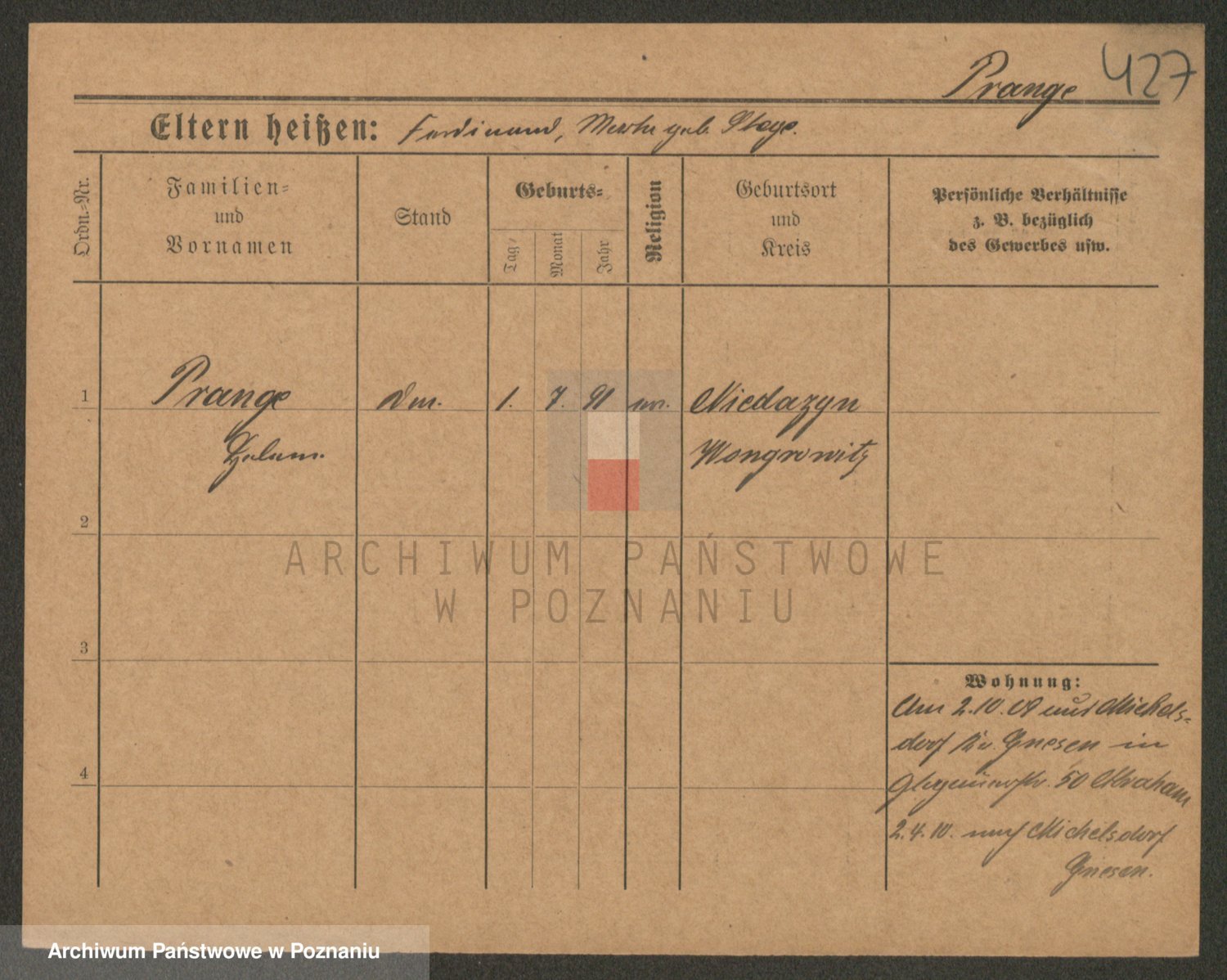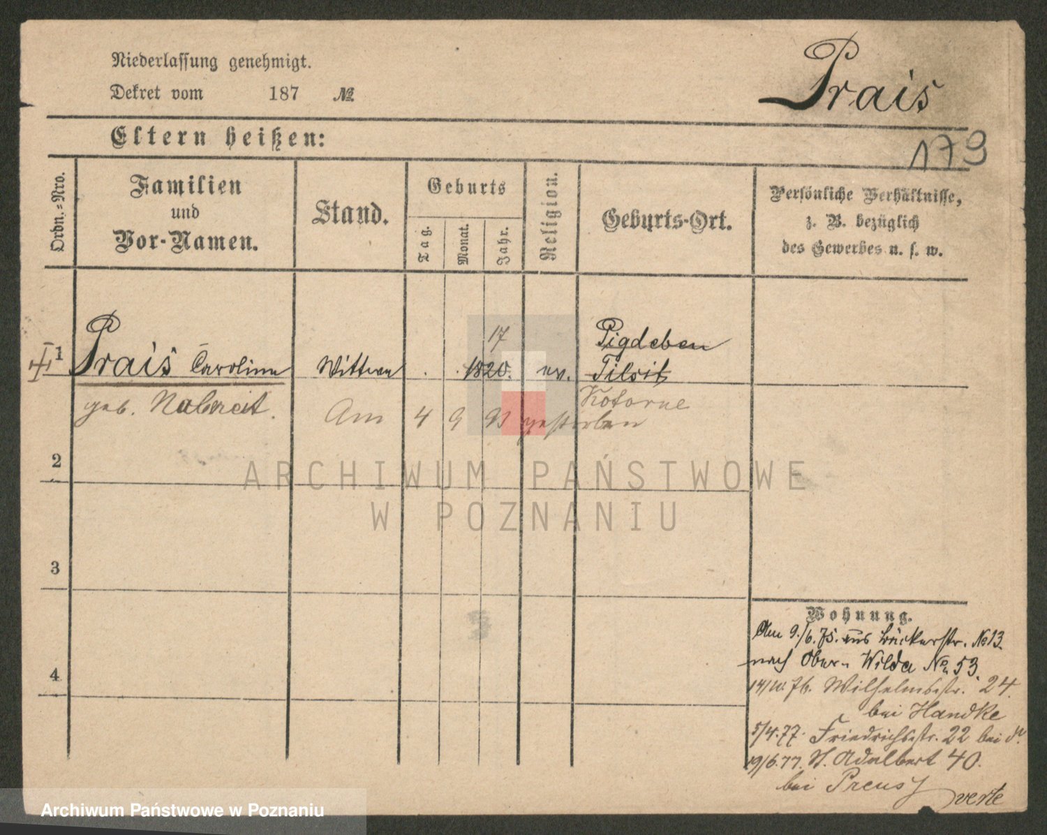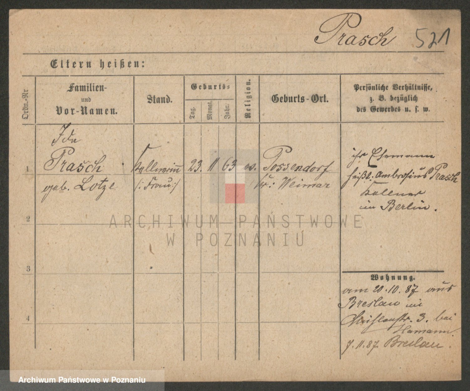 Prass z d. Zitz I v. Zillmann, Frieda