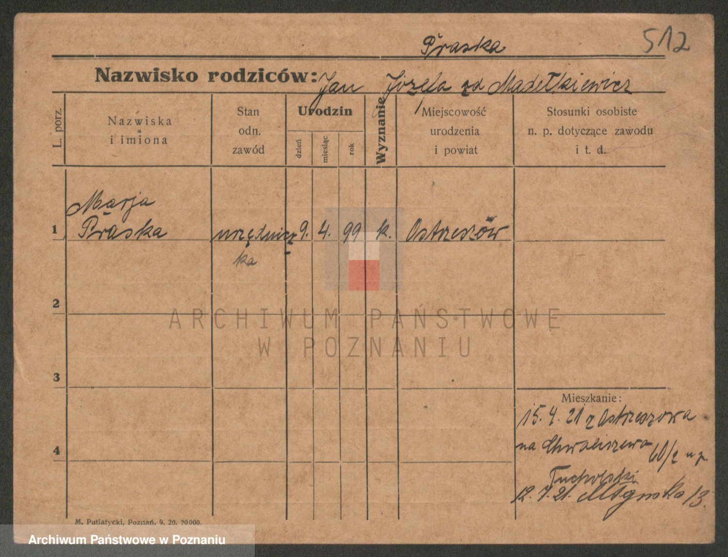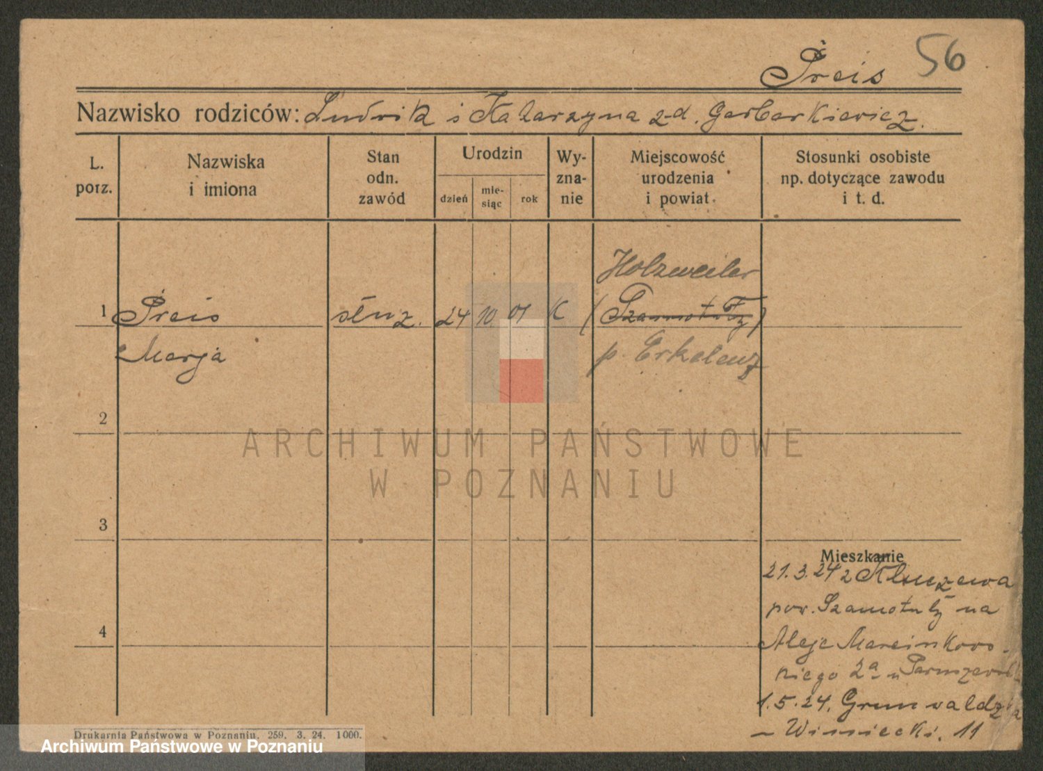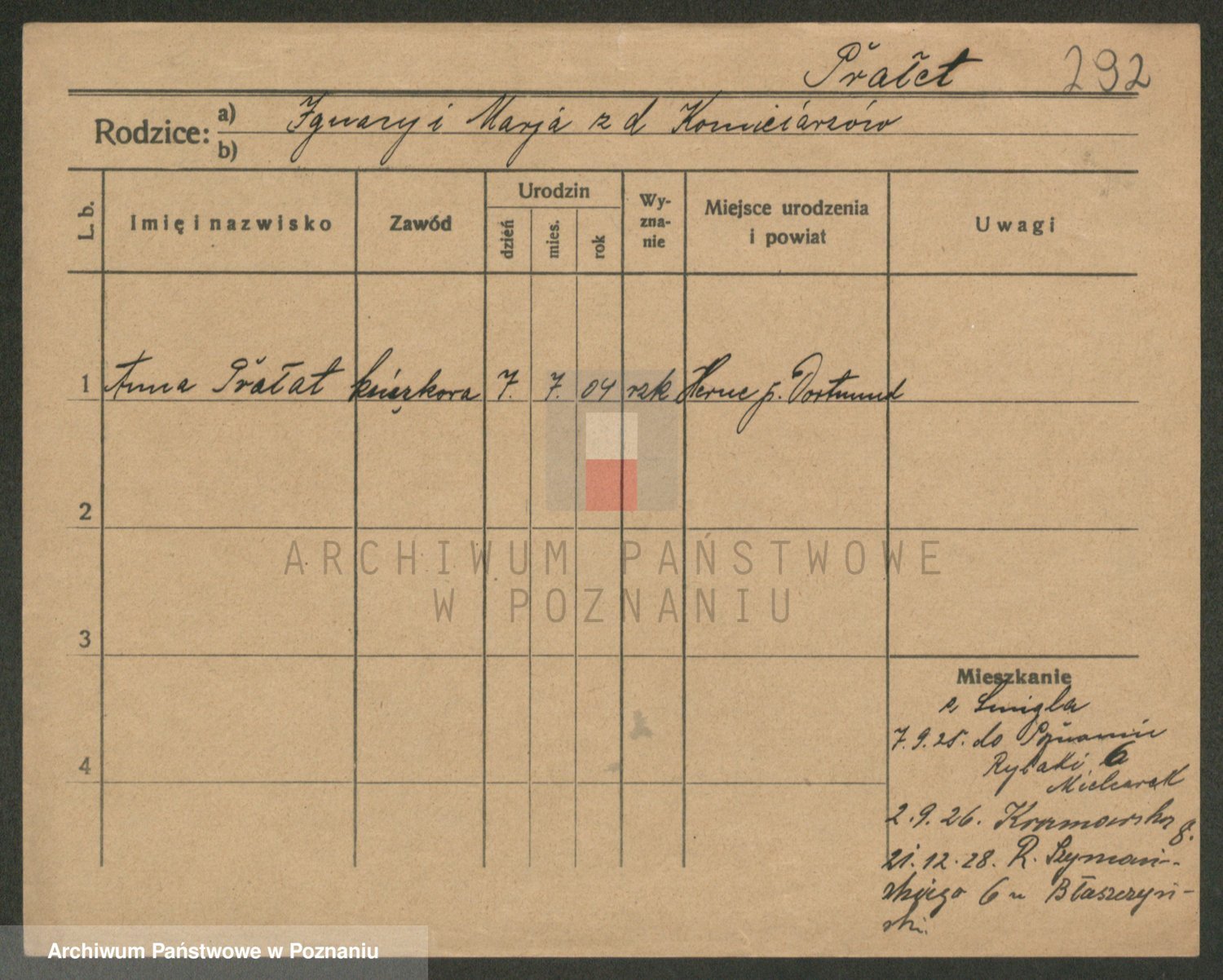 Prante Pranty z d. Mańczak, Marja