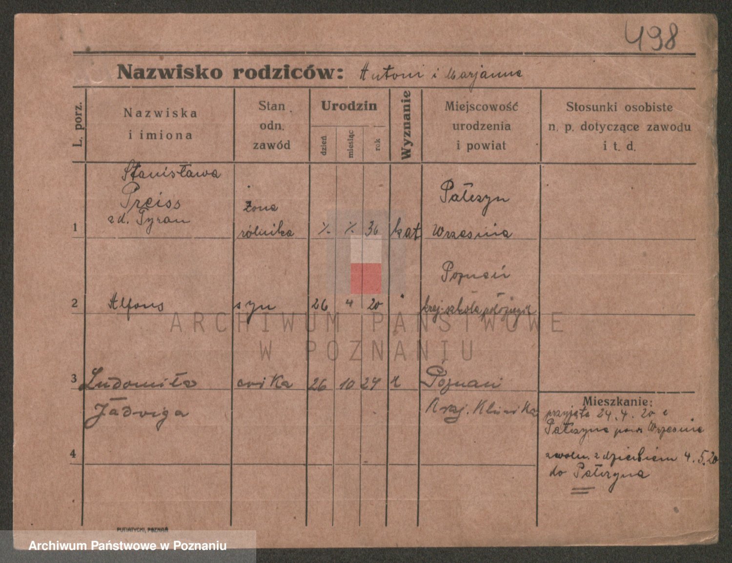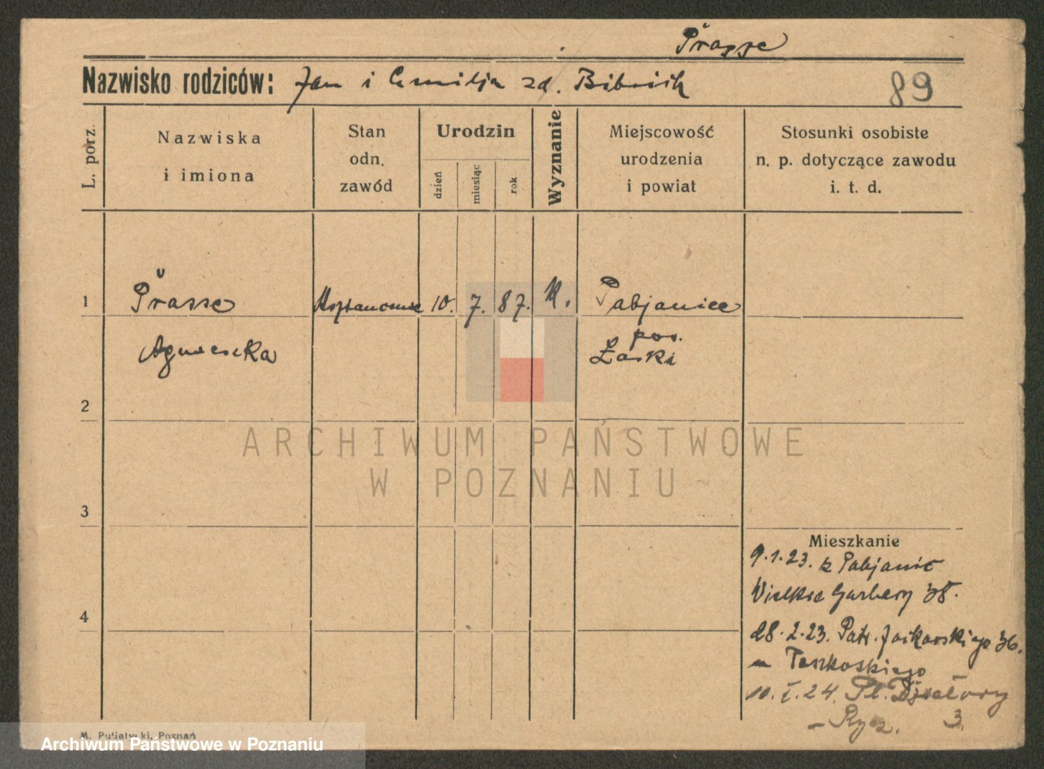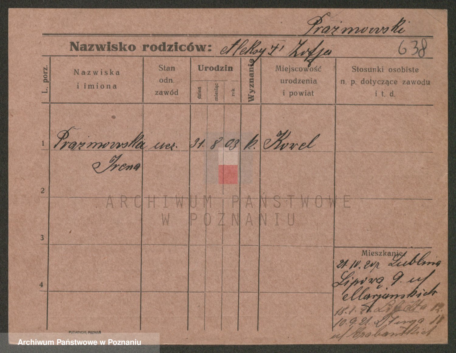 Prante Pranty z d. Mańczak, Marja