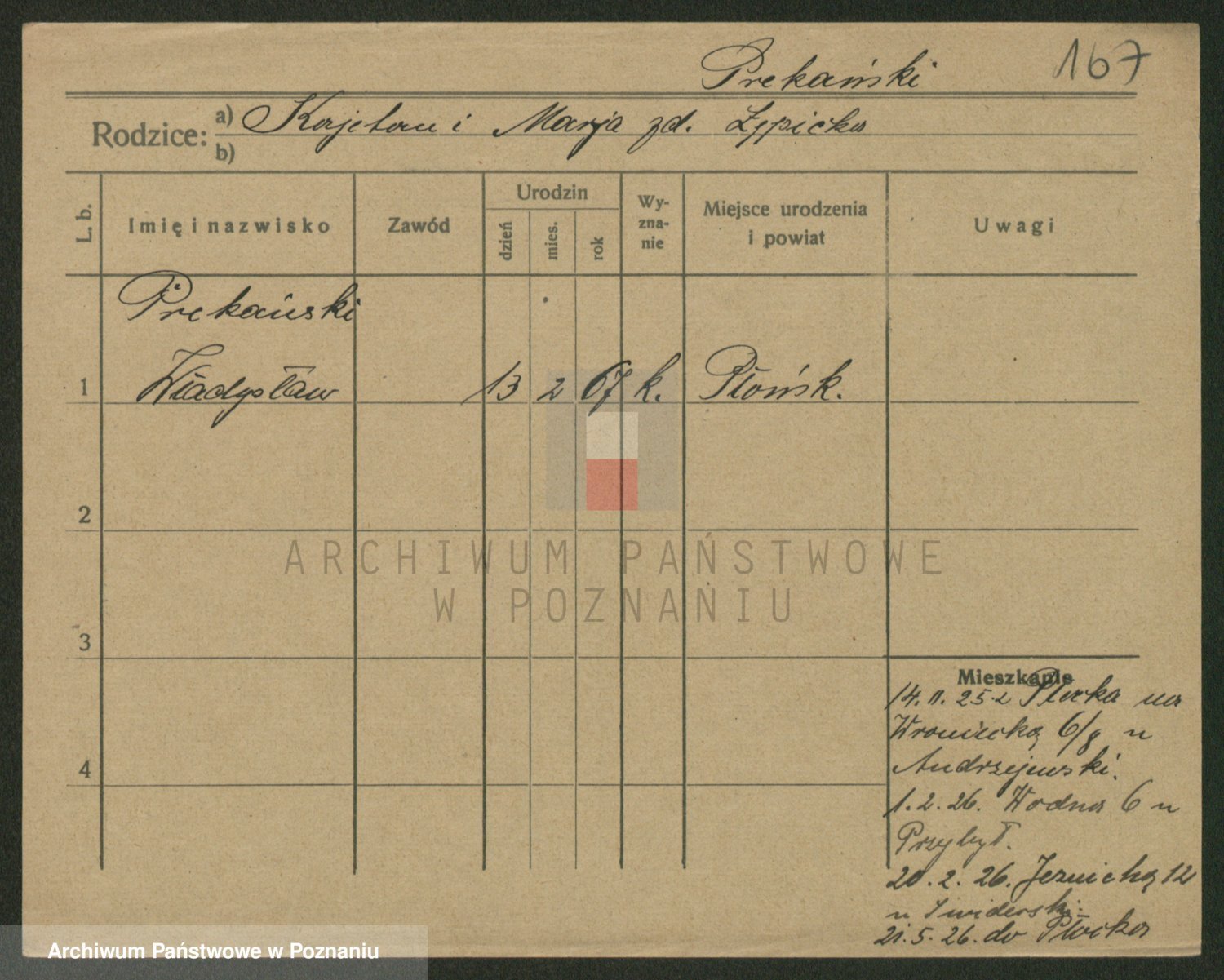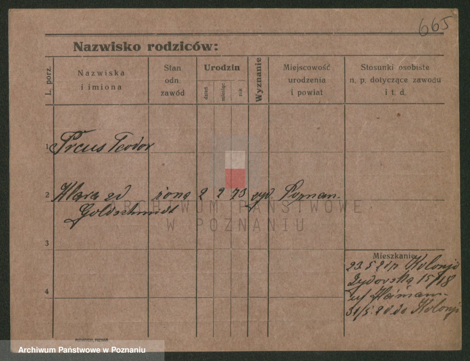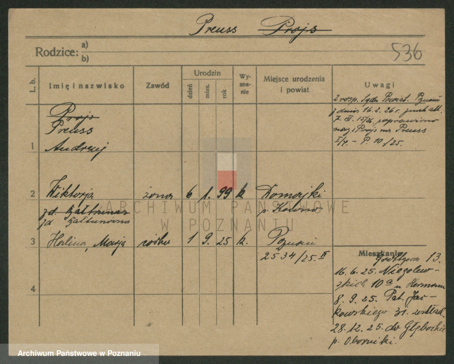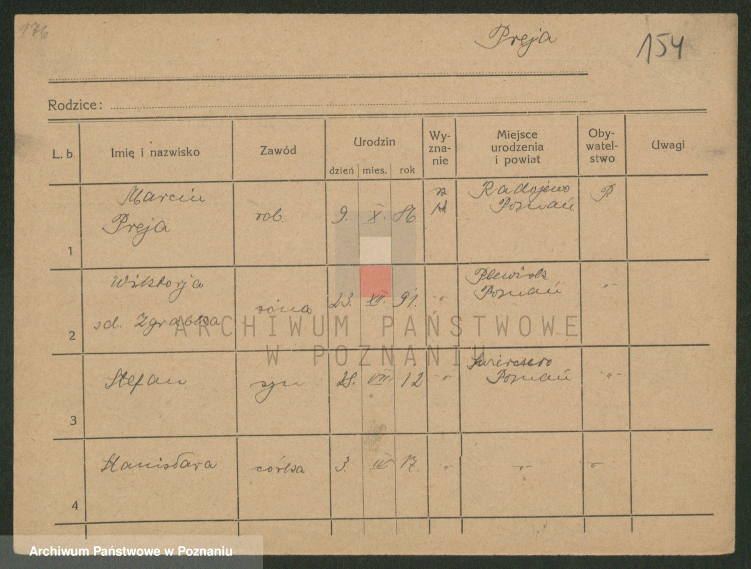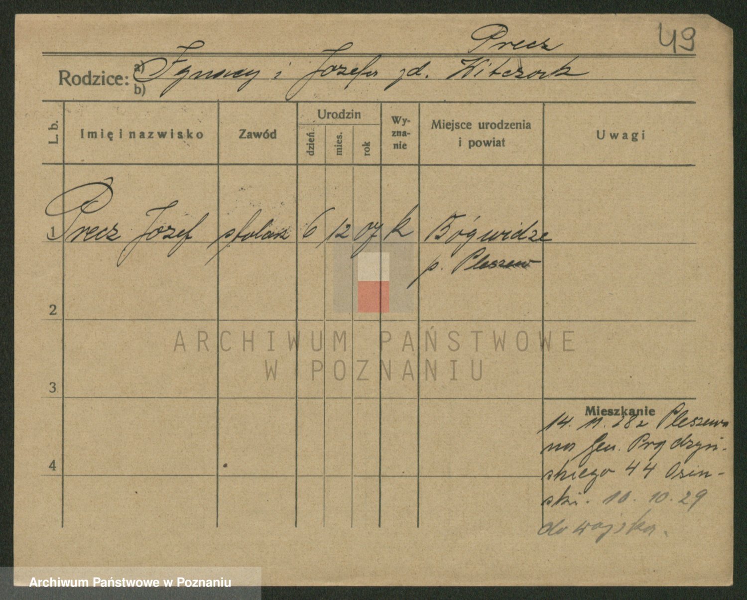 Podgląd karty osobowej dostępny jest po kliknięciu na nazwisko lub ikonkę karty. Można dokonywać powiększenia (ikony na górze) lub przechodzić między kolejnymi skanami (strzałki po bokach).