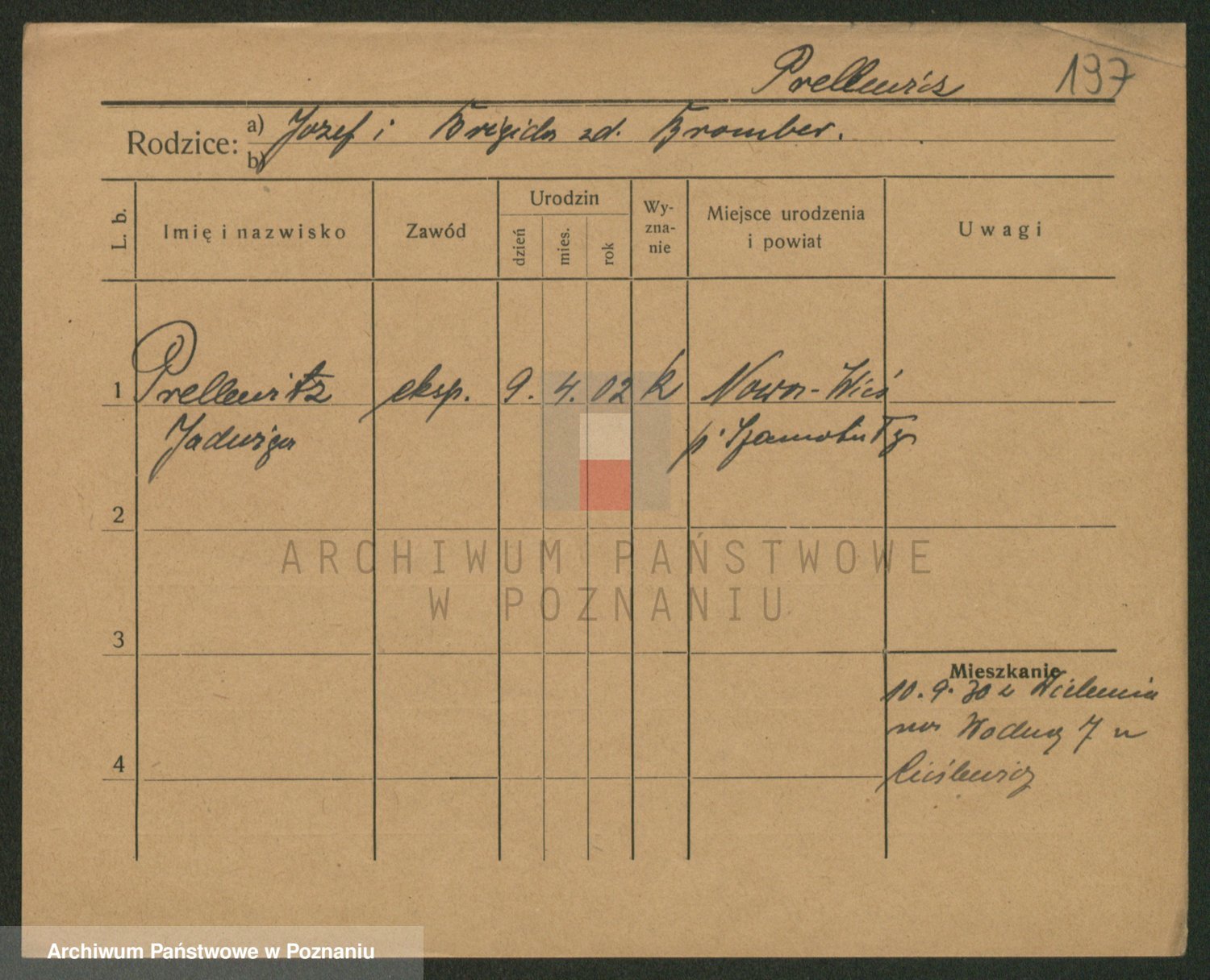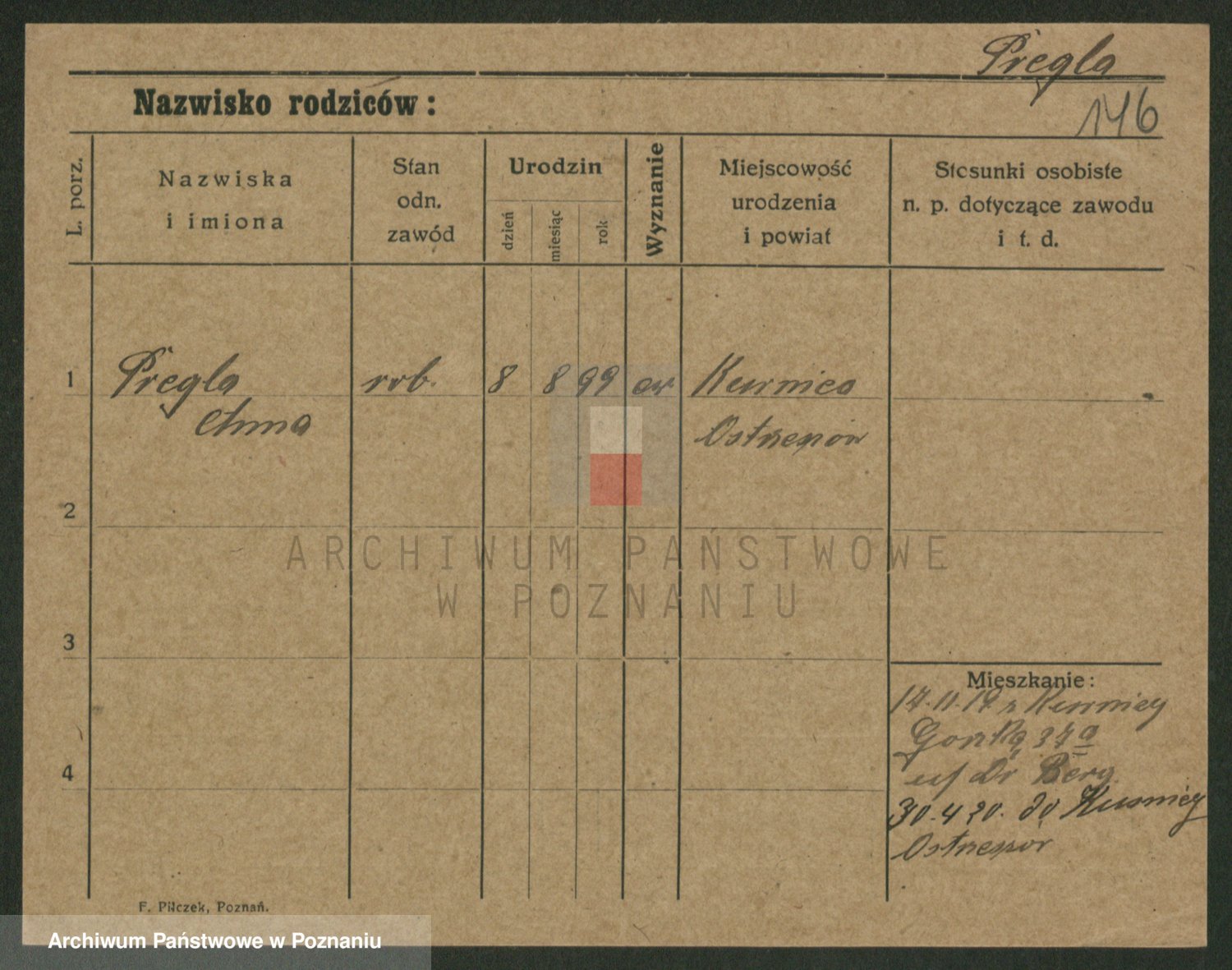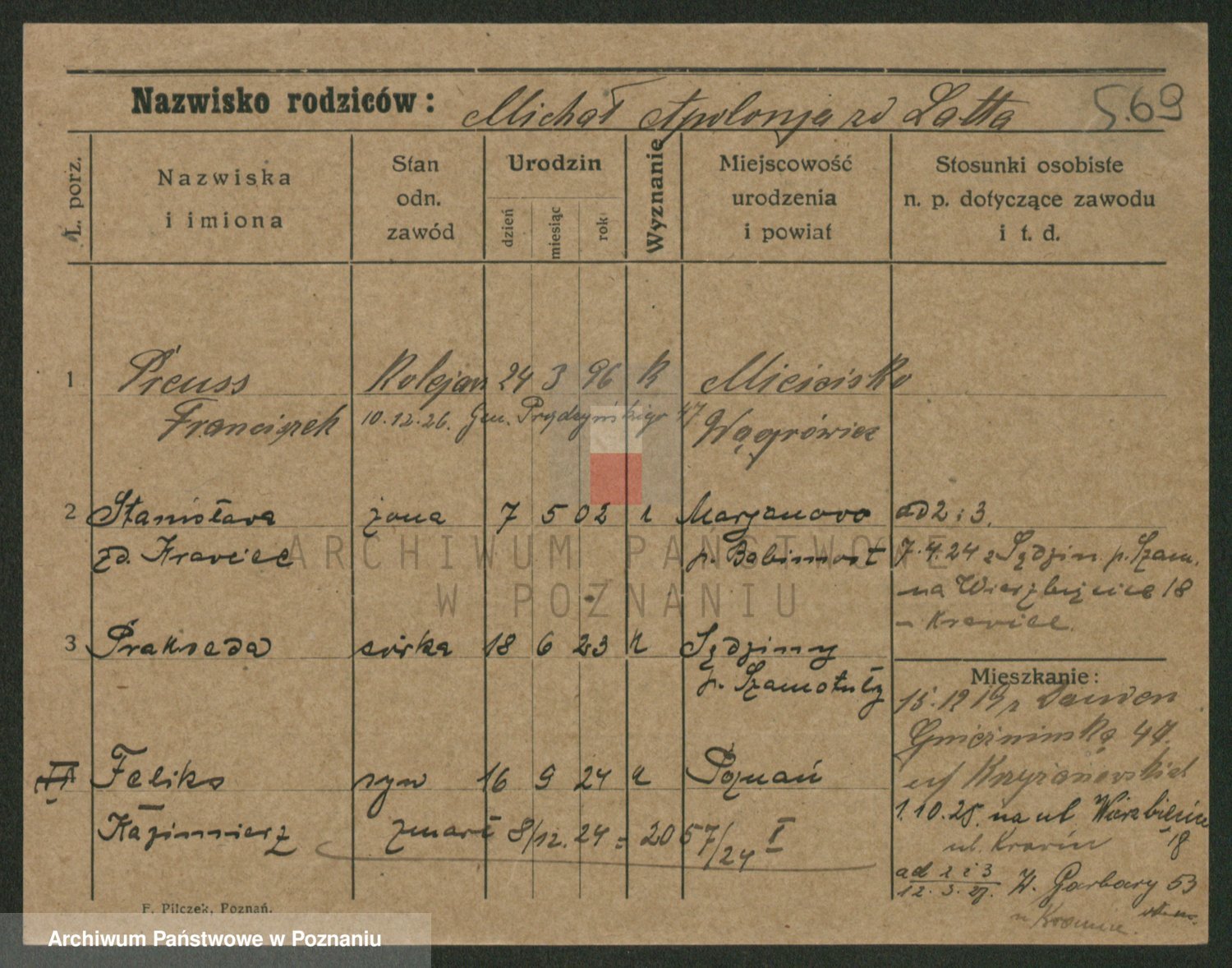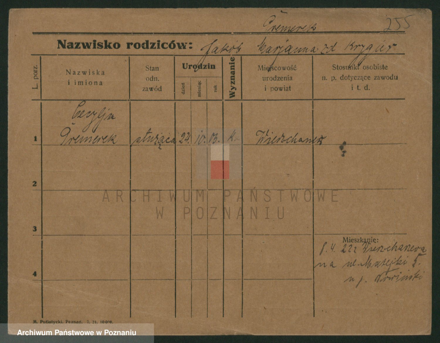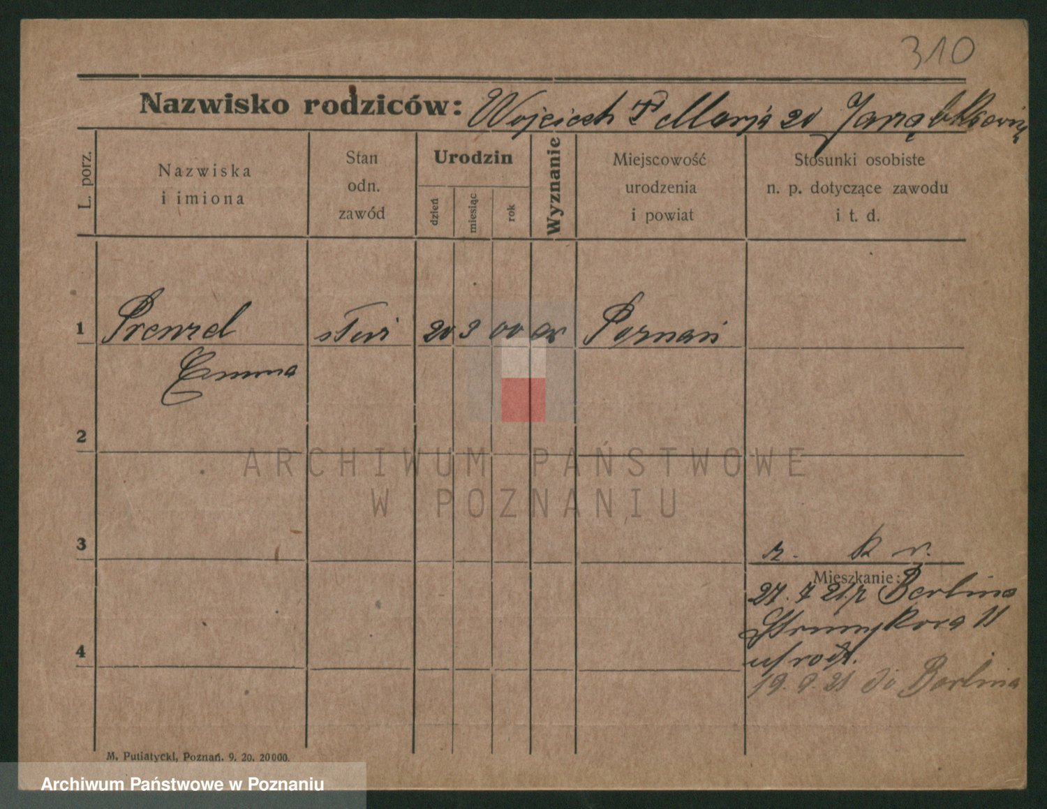Podgląd karty osobowej dostępny jest po kliknięciu na nazwisko lub ikonkę karty. Można dokonywać powiększenia (ikony na górze) lub przechodzić między kolejnymi skanami (strzałki po bokach).