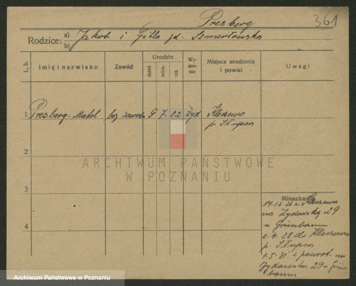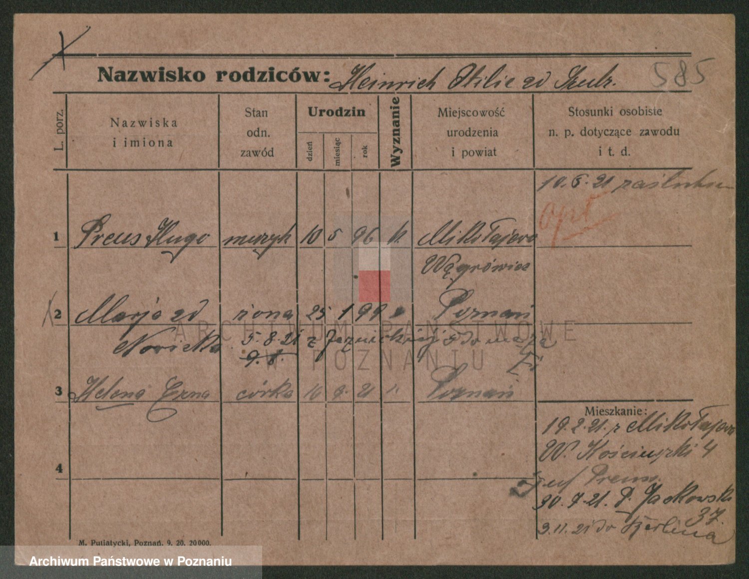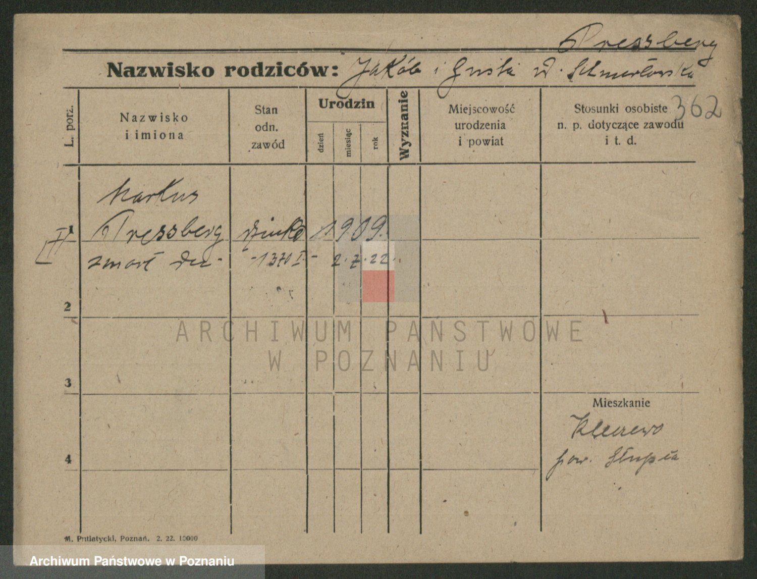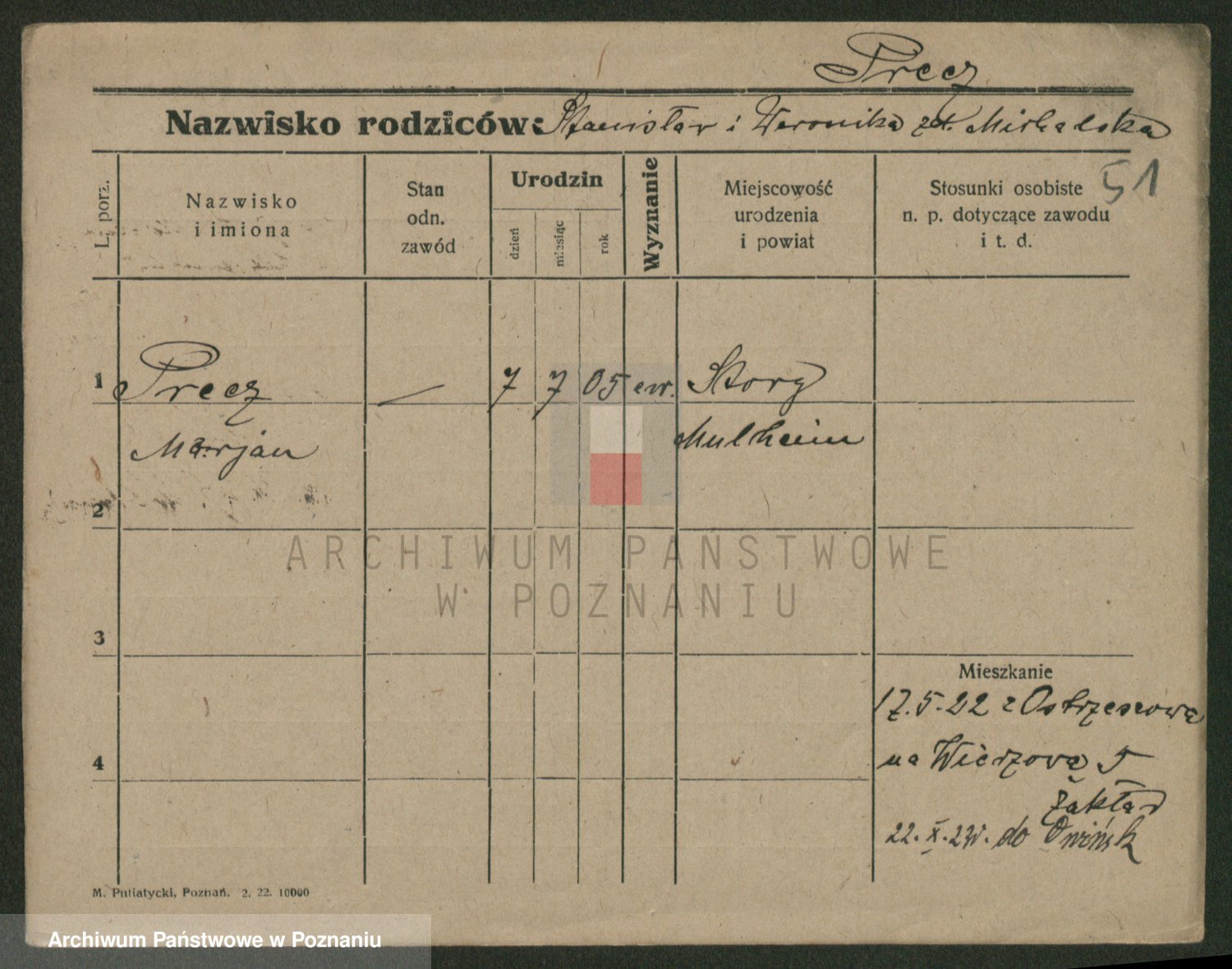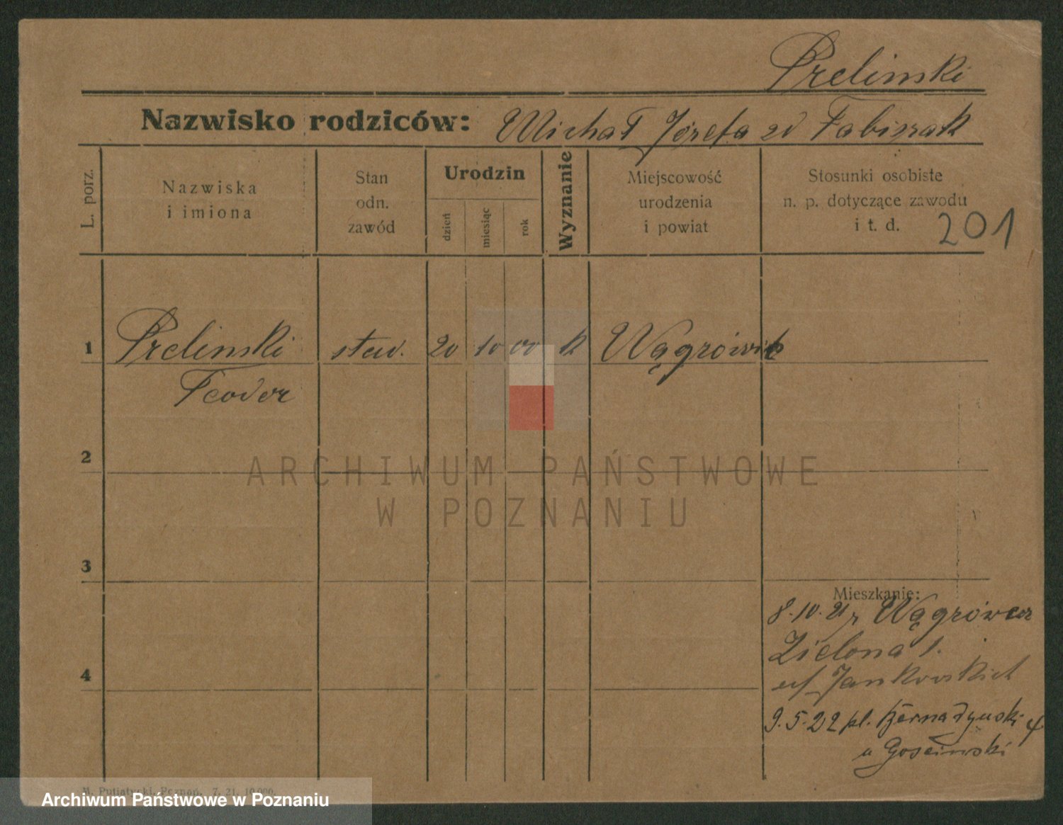 Podgląd karty osobowej dostępny jest po kliknięciu na nazwisko lub ikonkę karty. Można dokonywać powiększenia (ikony na górze) lub przechodzić między kolejnymi skanami (strzałki po bokach).