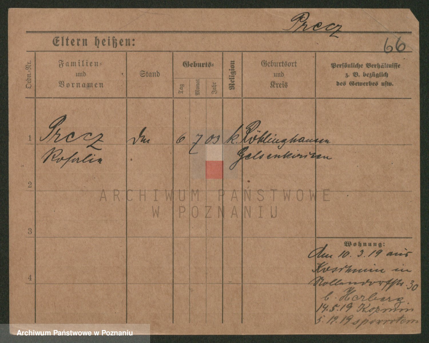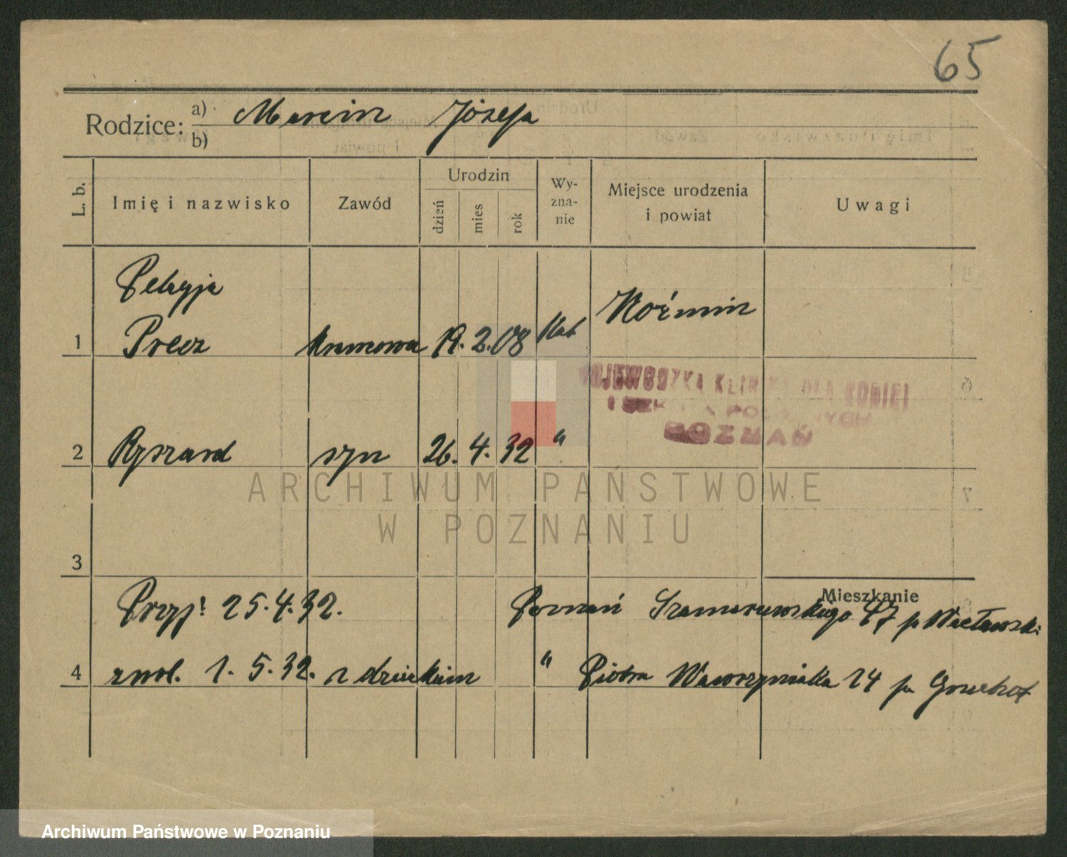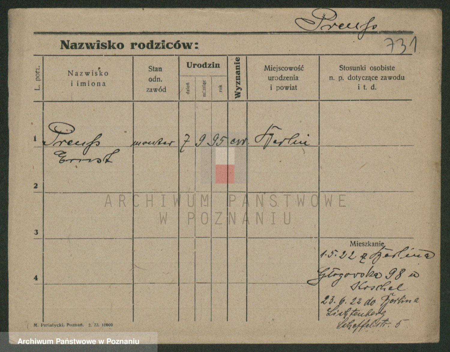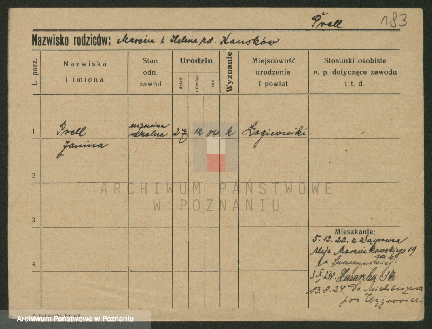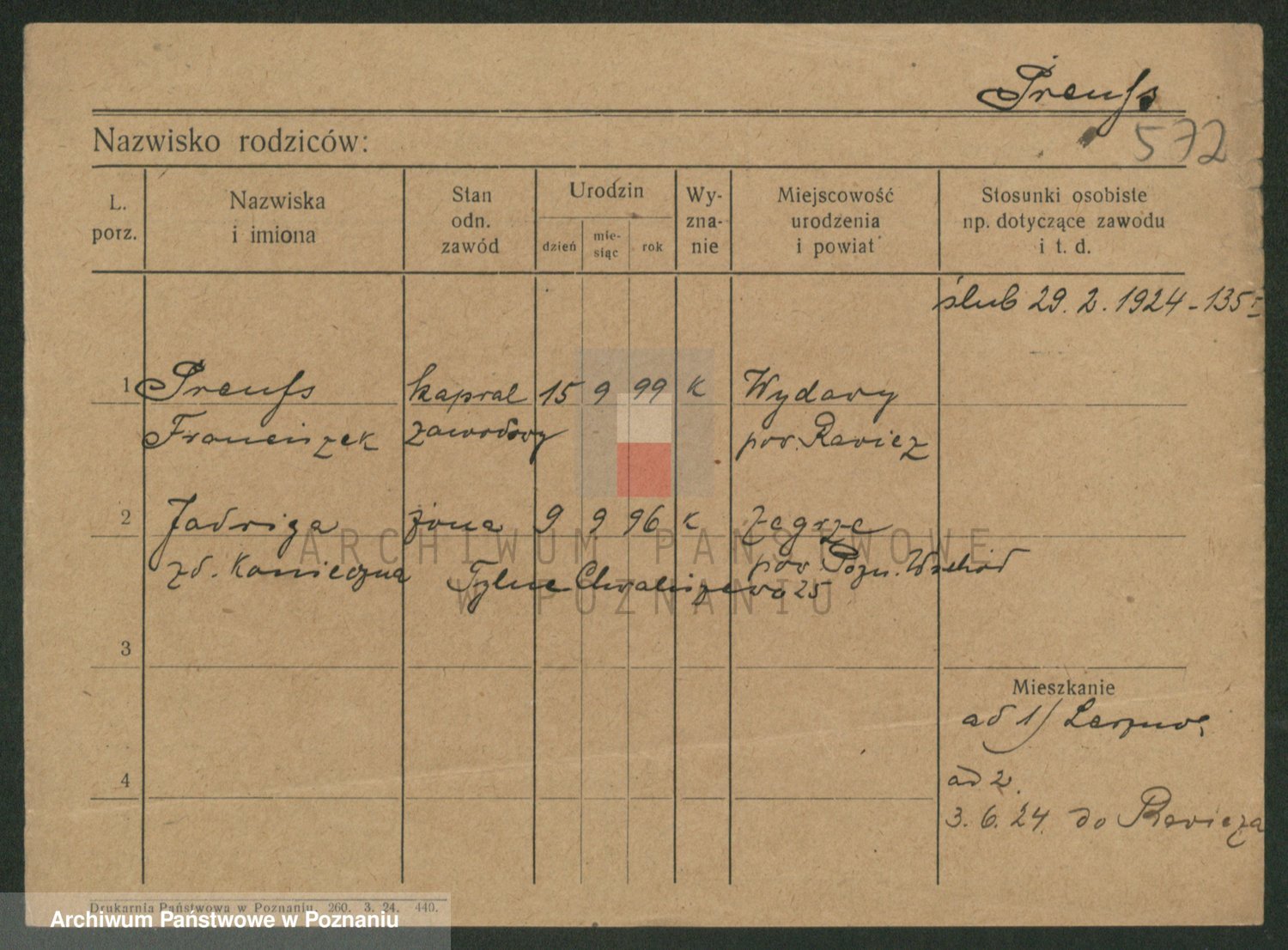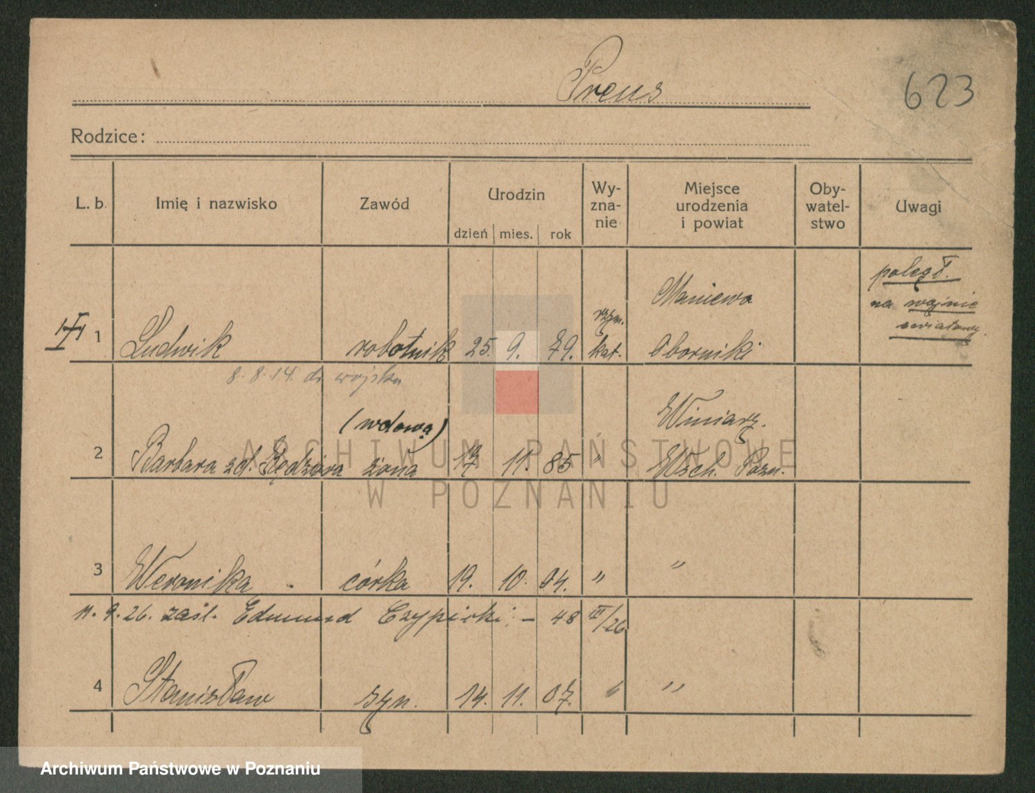 Podgląd karty osobowej dostępny jest po kliknięciu na nazwisko lub ikonkę karty. Można dokonywać powiększenia (ikony na górze) lub przechodzić między kolejnymi skanami (strzałki po bokach).
