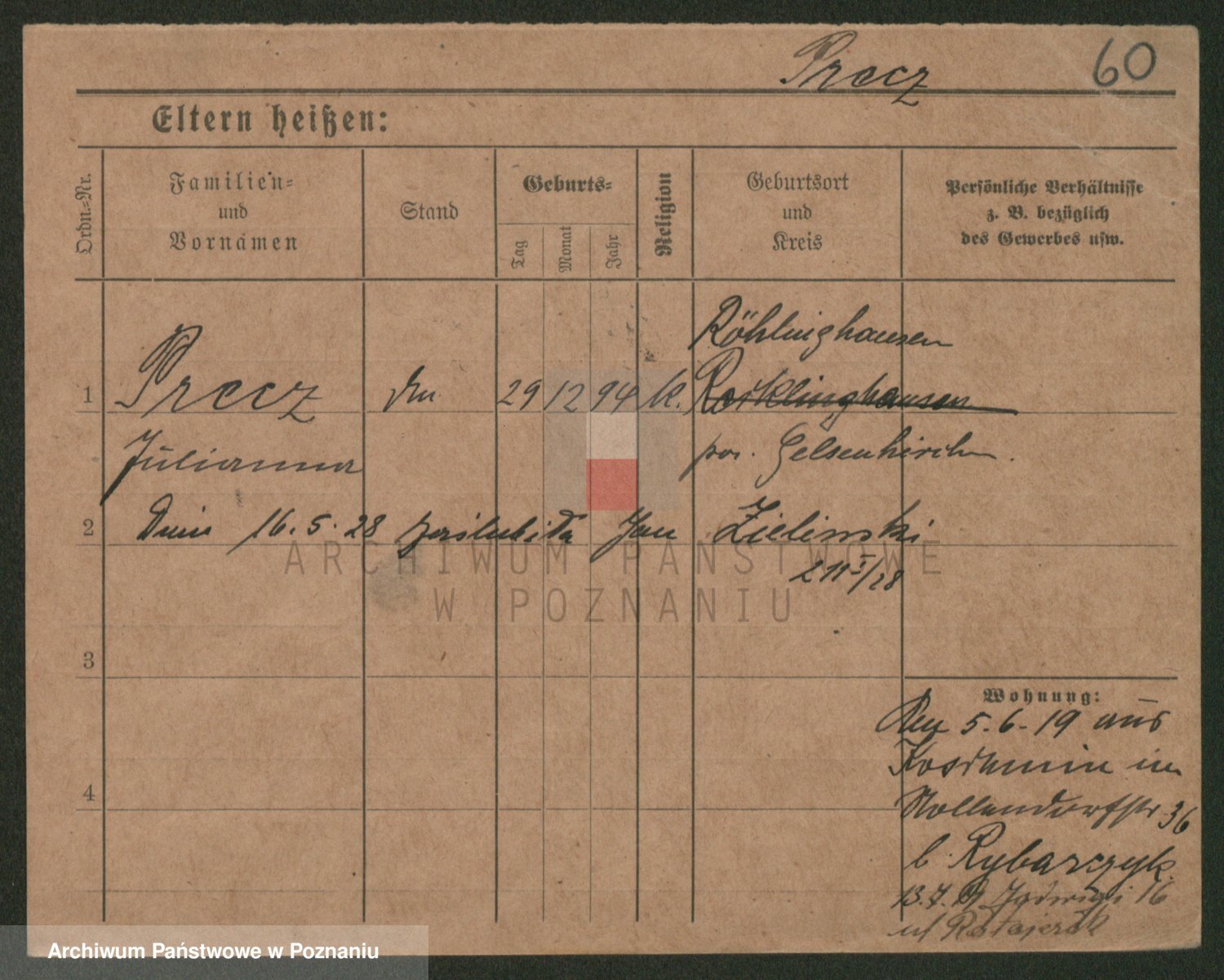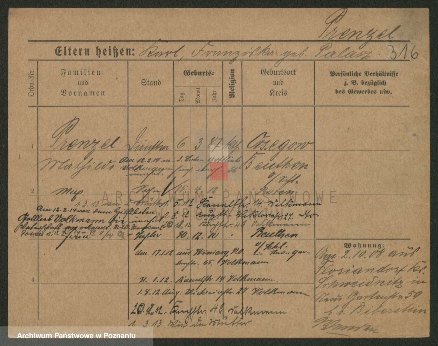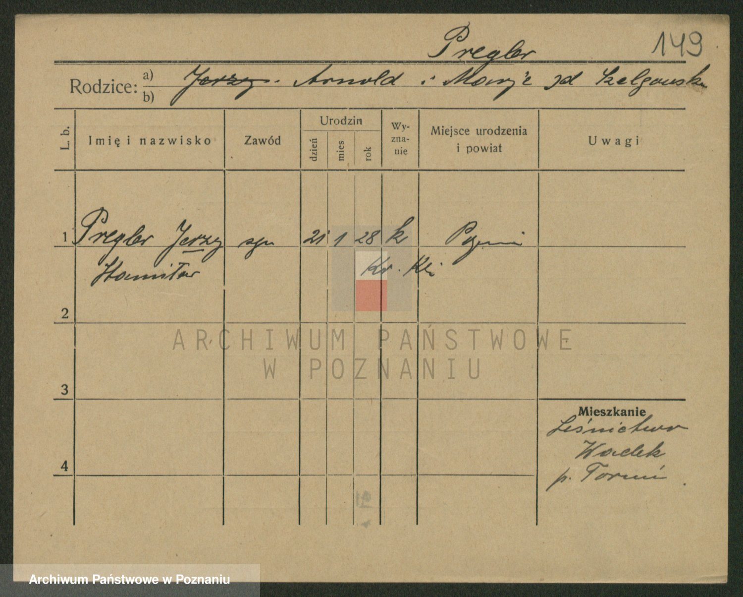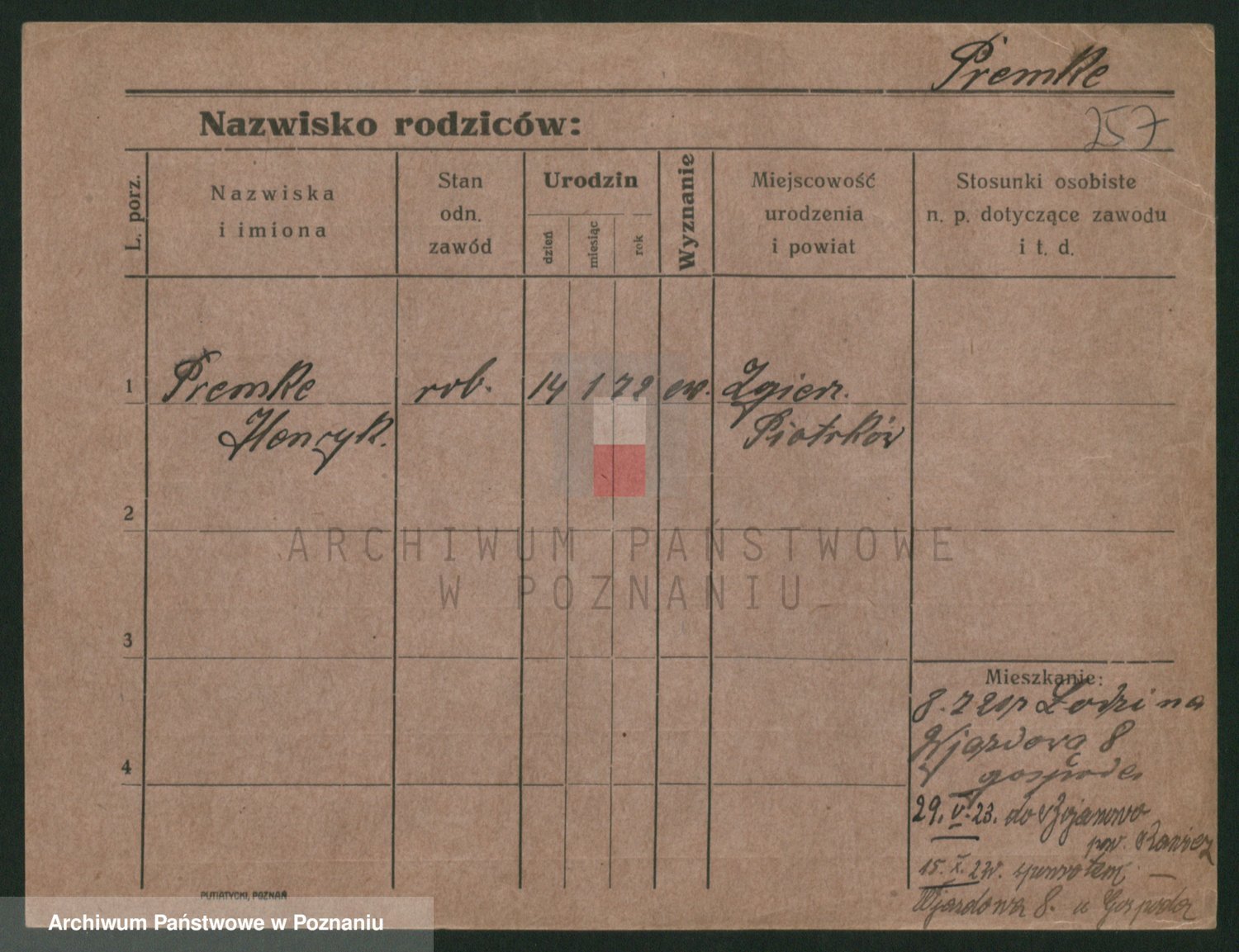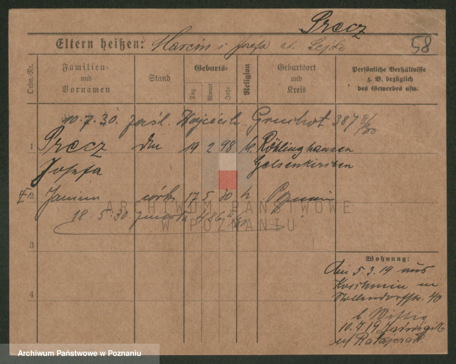 Podgląd karty osobowej dostępny jest po kliknięciu na nazwisko lub ikonkę karty. Można dokonywać powiększenia (ikony na górze) lub przechodzić między kolejnymi skanami (strzałki po bokach).