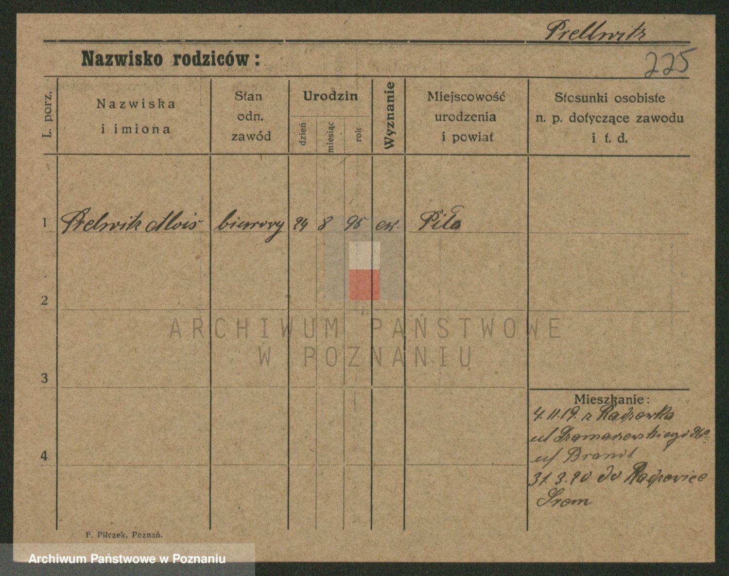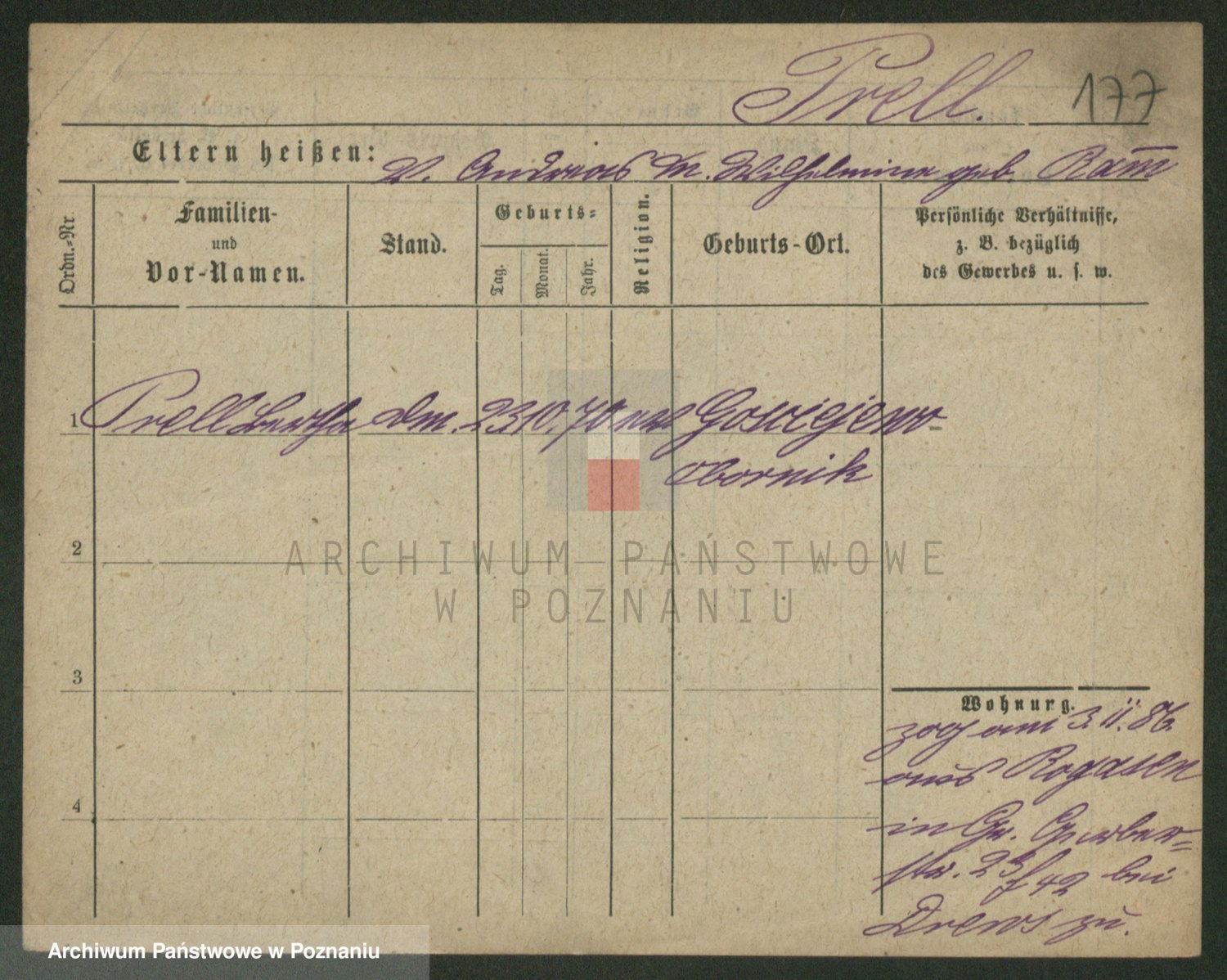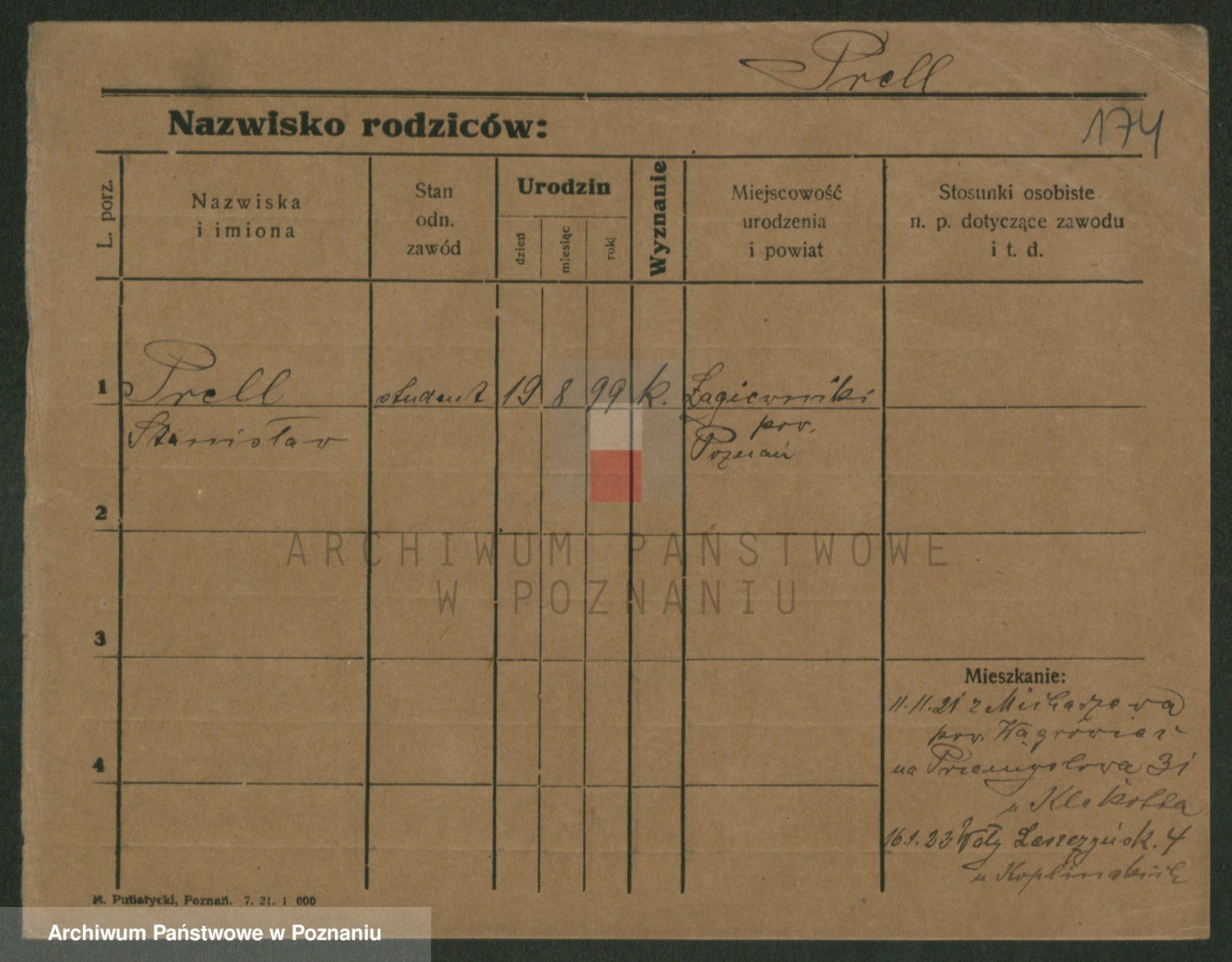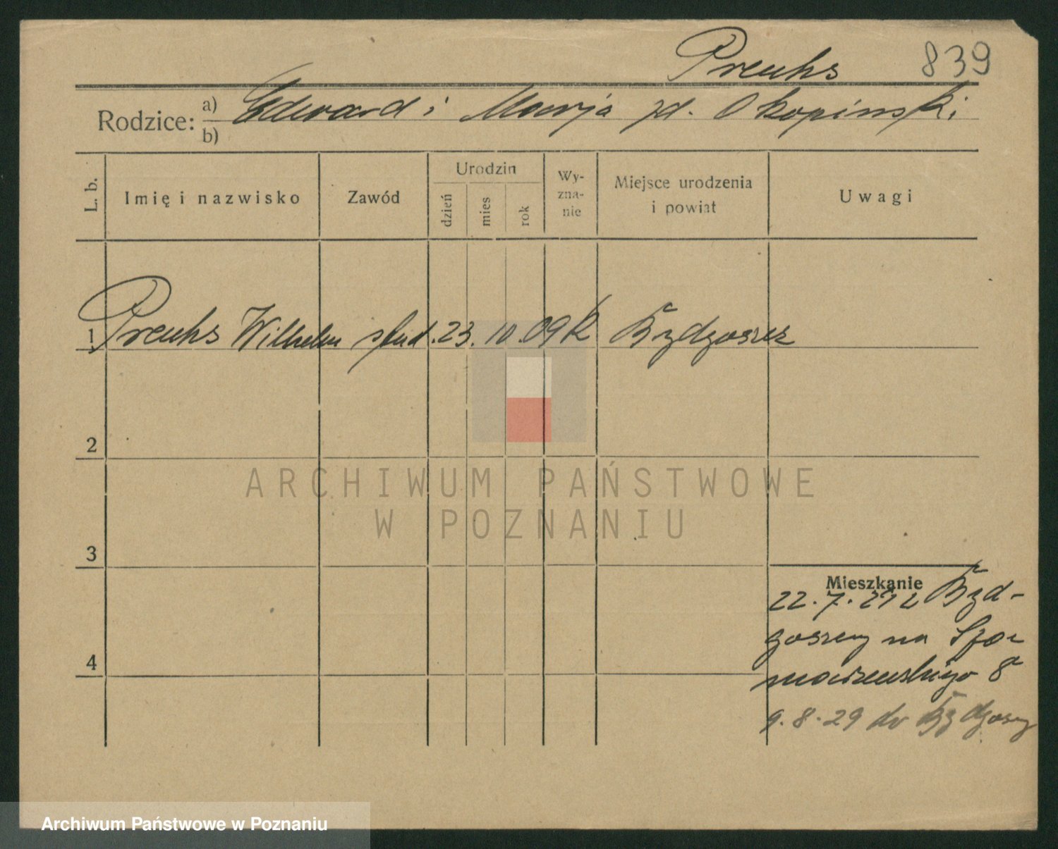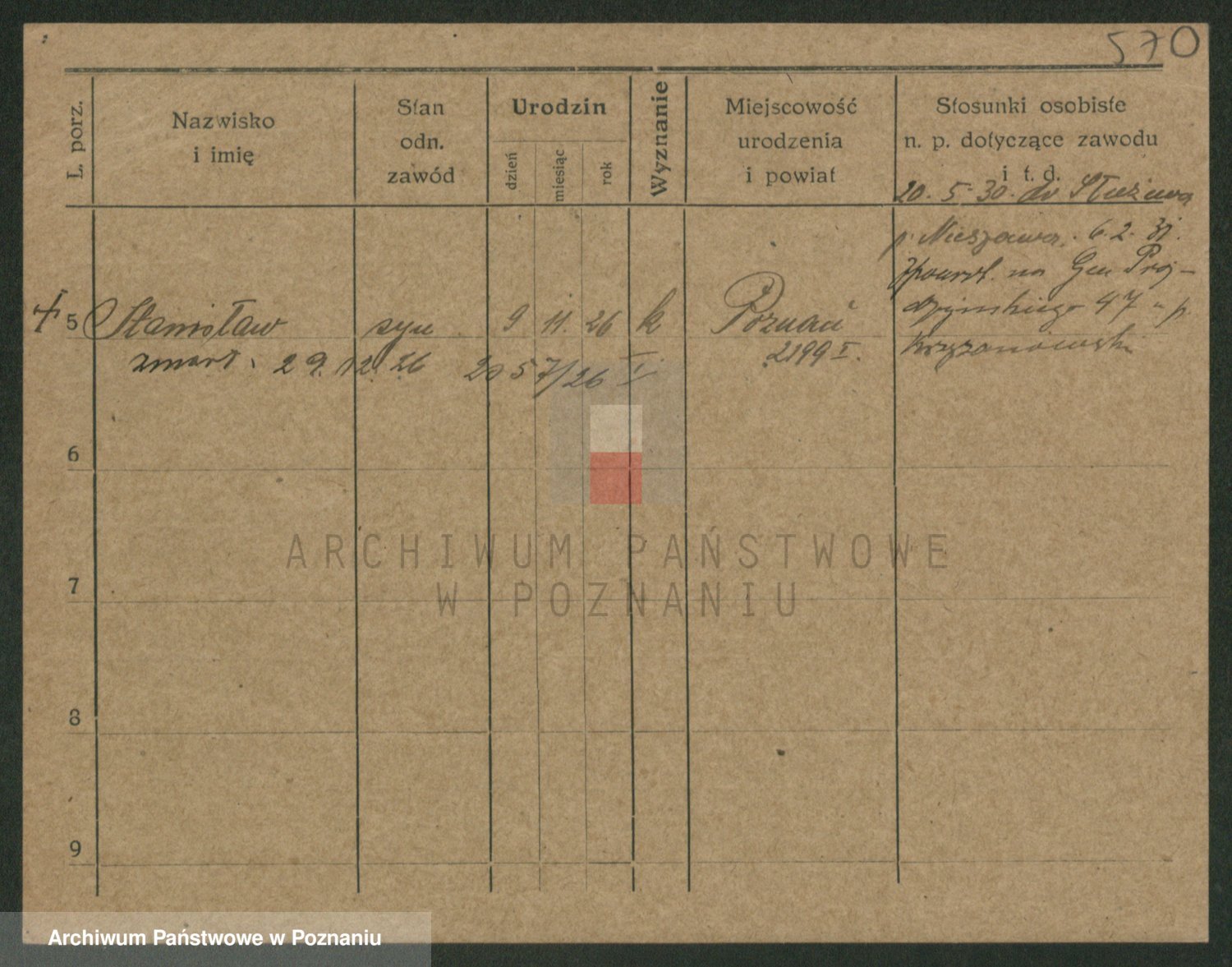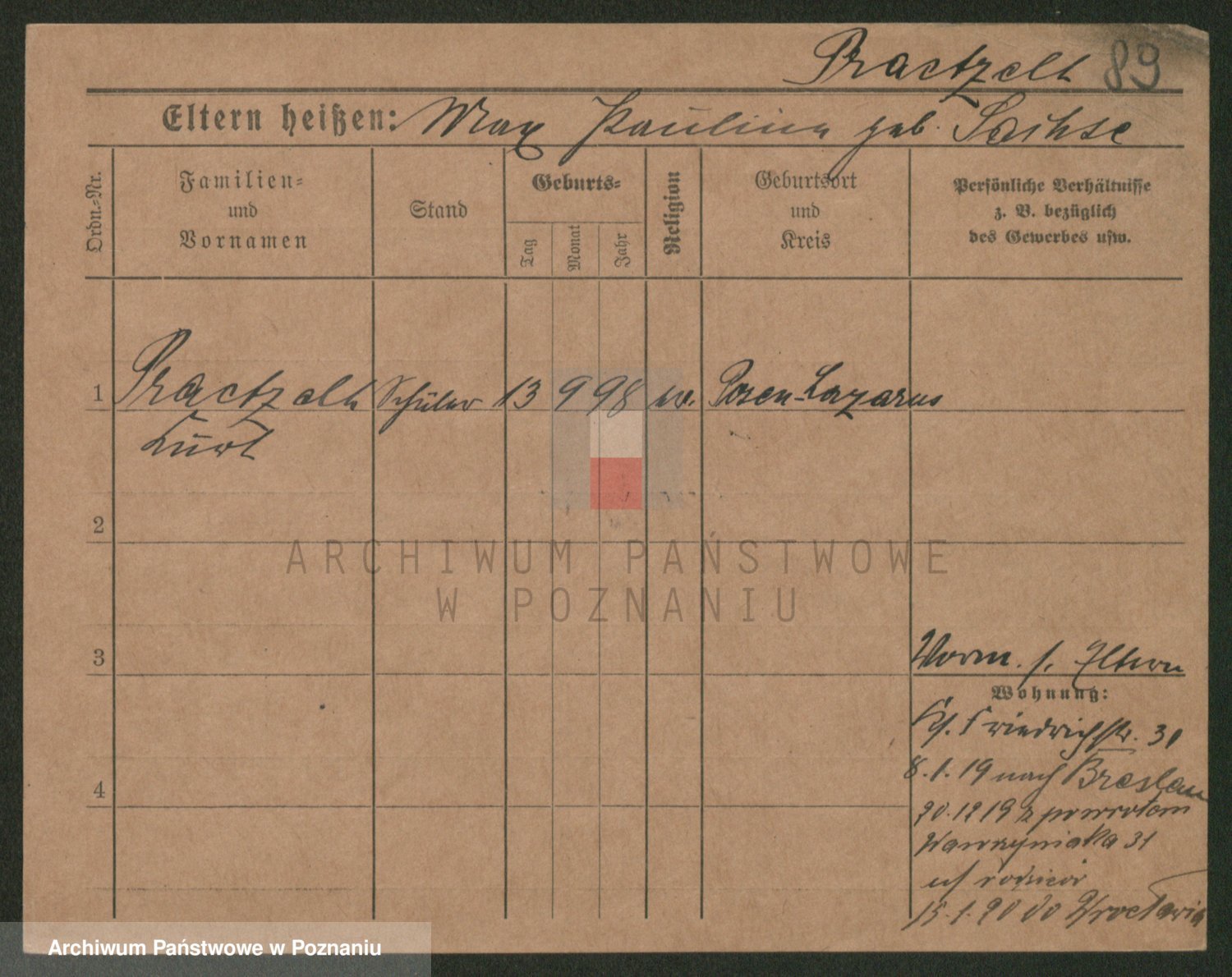 Podgląd karty osobowej dostępny jest po kliknięciu na nazwisko lub ikonkę karty. Można dokonywać powiększenia (ikony na górze) lub przechodzić między kolejnymi skanami (strzałki po bokach).