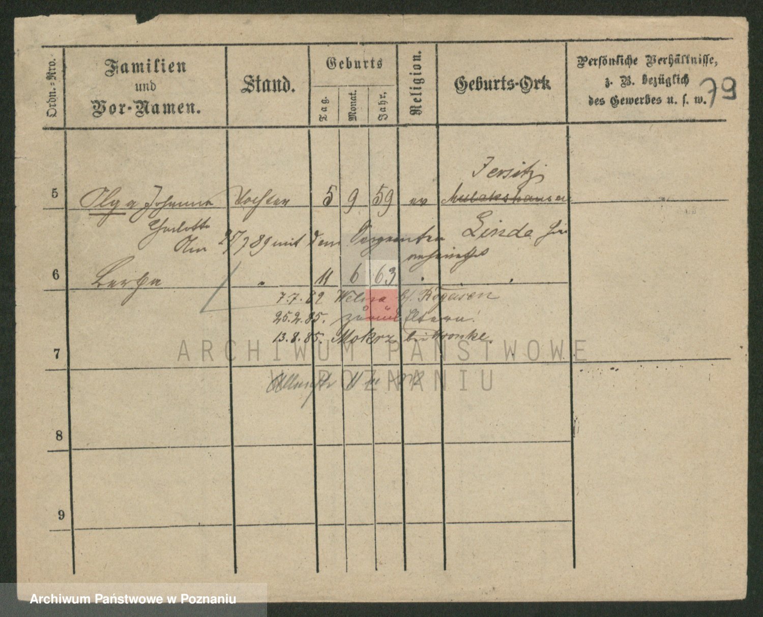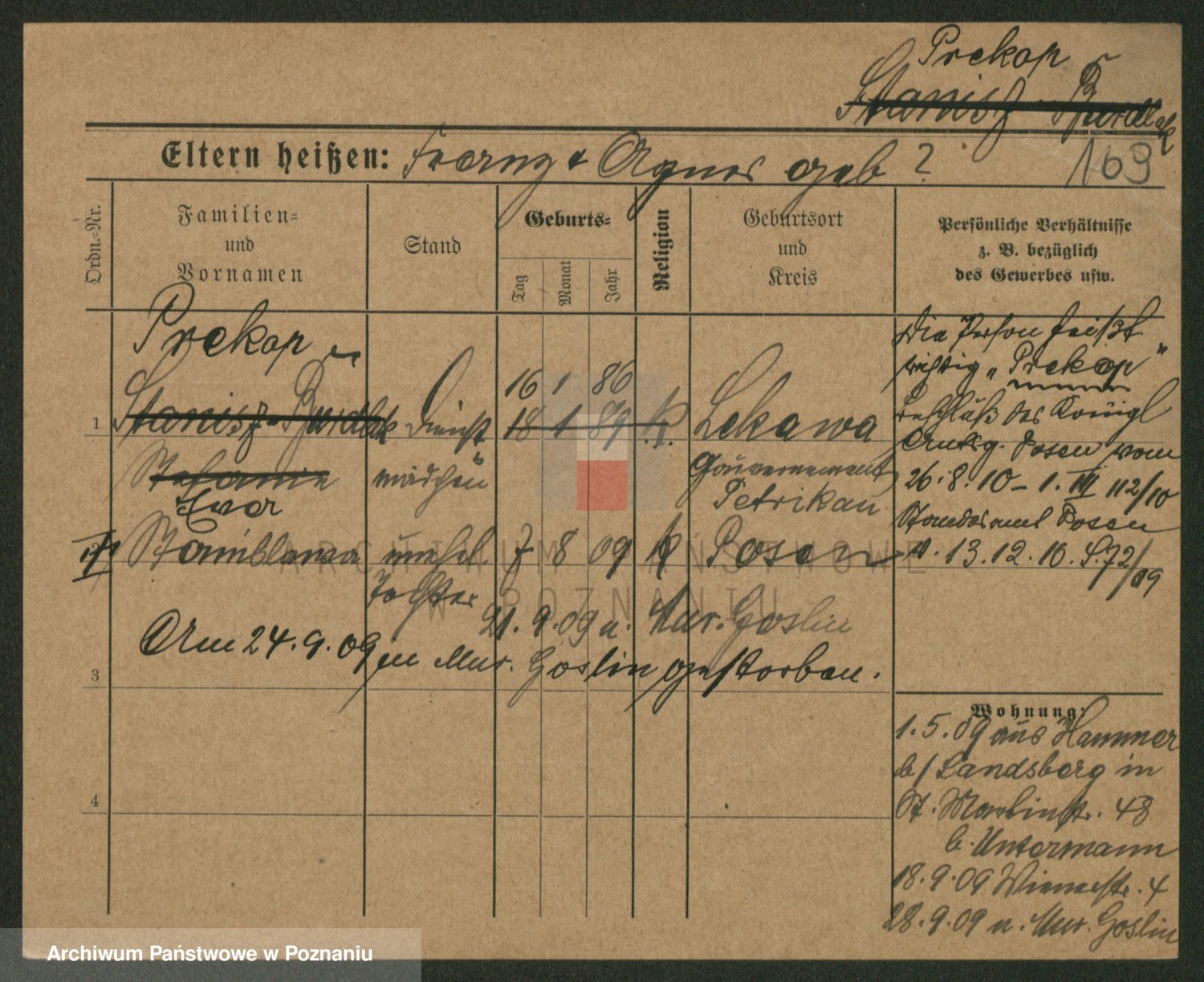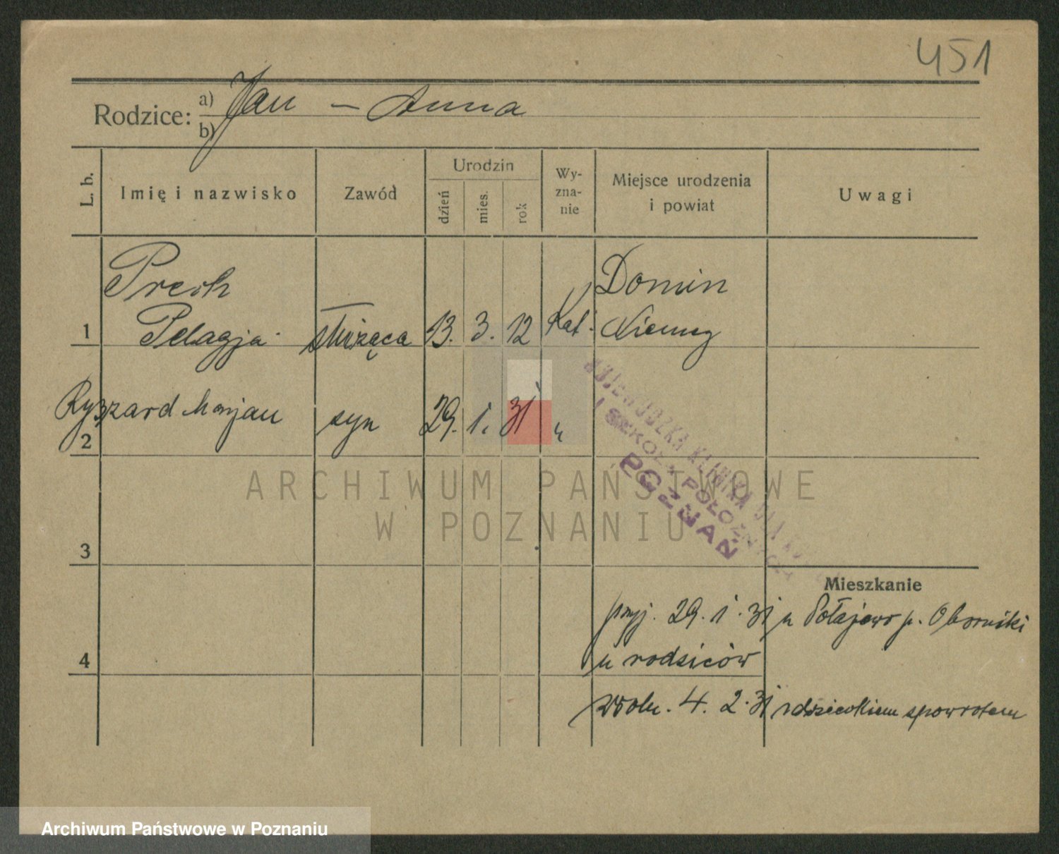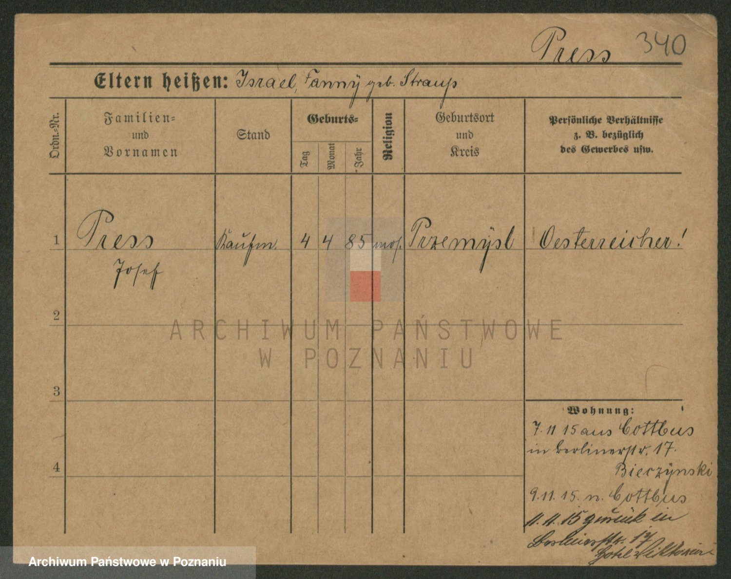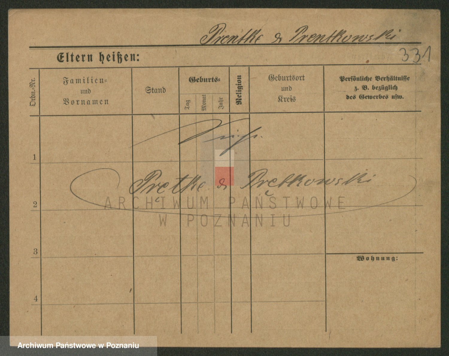 Podgląd karty osobowej dostępny jest po kliknięciu na nazwisko lub ikonkę karty. Można dokonywać powiększenia (ikony na górze) lub przechodzić między kolejnymi skanami (strzałki po bokach).