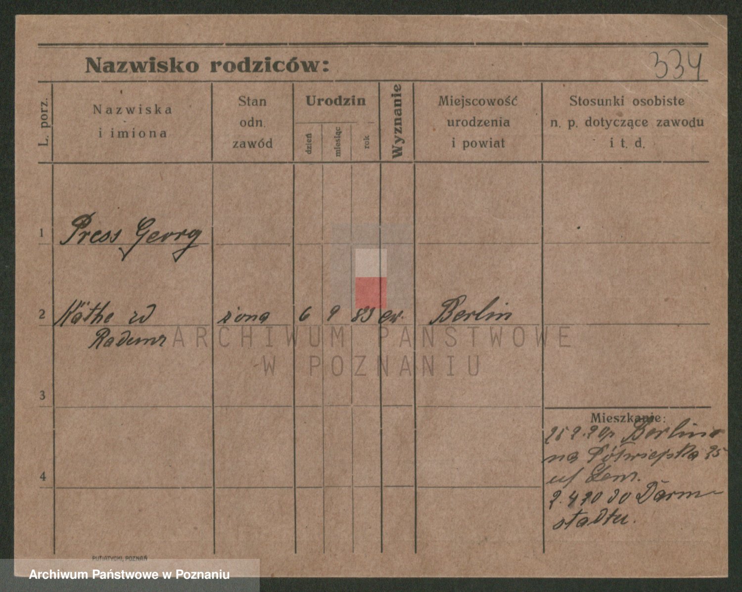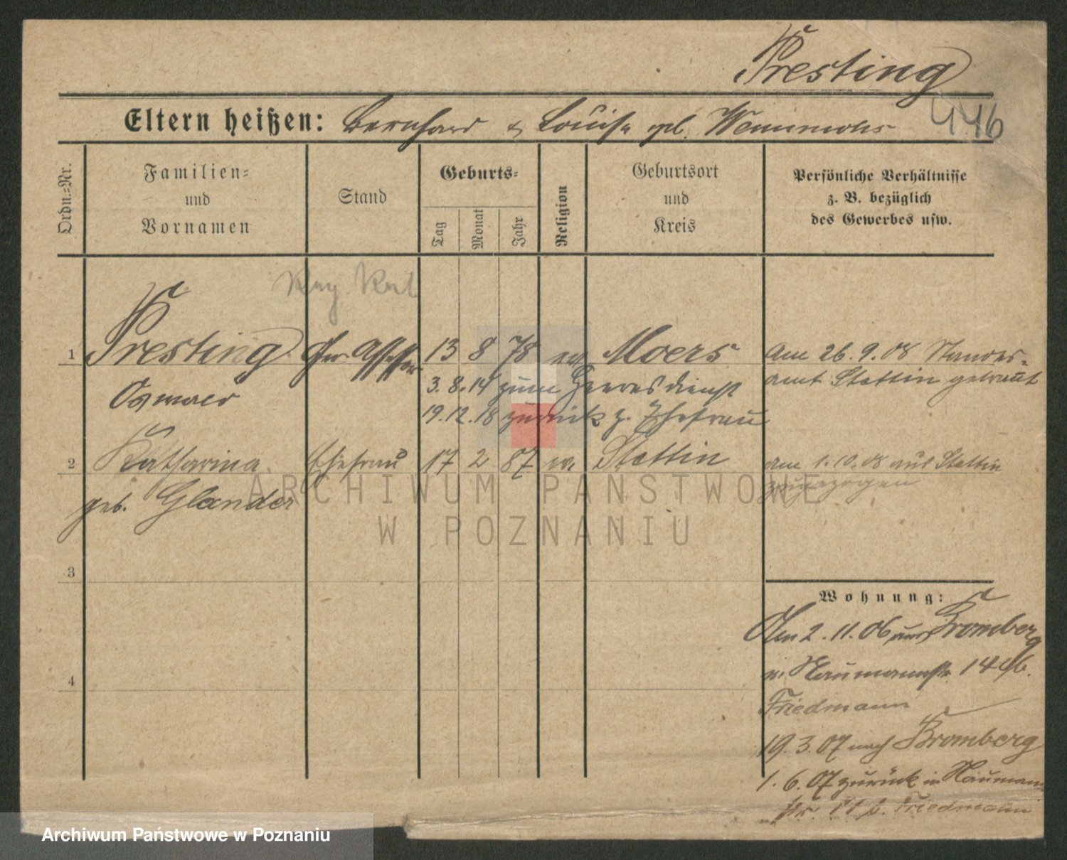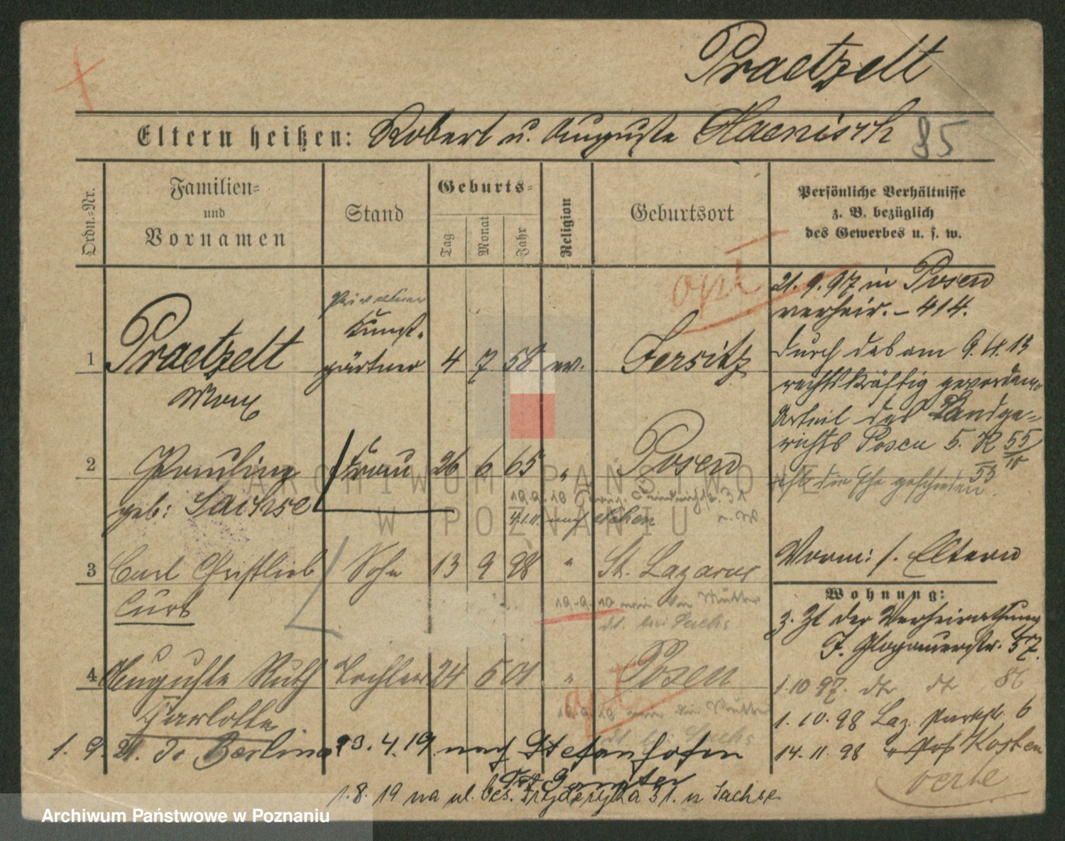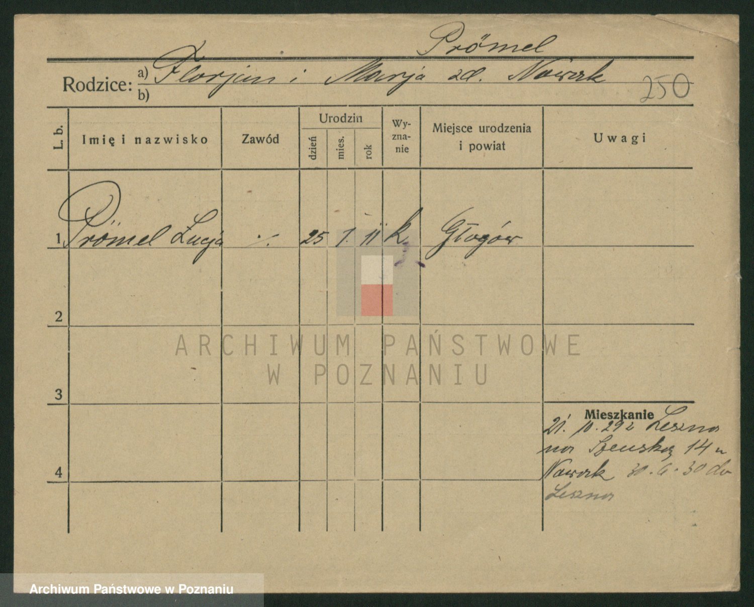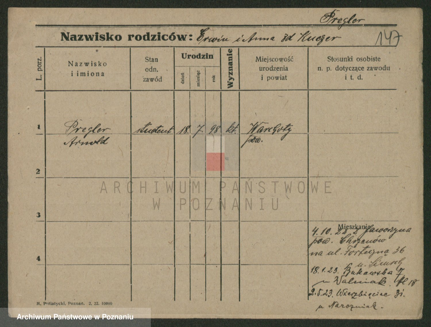 Podgląd karty osobowej dostępny jest po kliknięciu na nazwisko lub ikonkę karty. Można dokonywać powiększenia (ikony na górze) lub przechodzić między kolejnymi skanami (strzałki po bokach).
