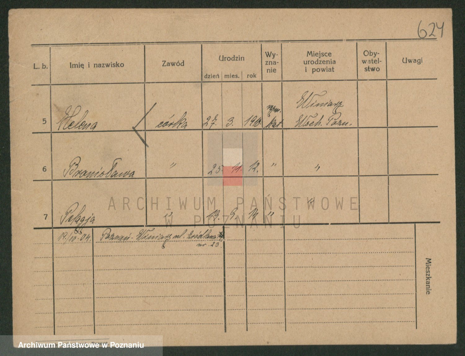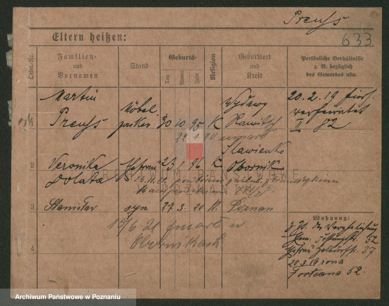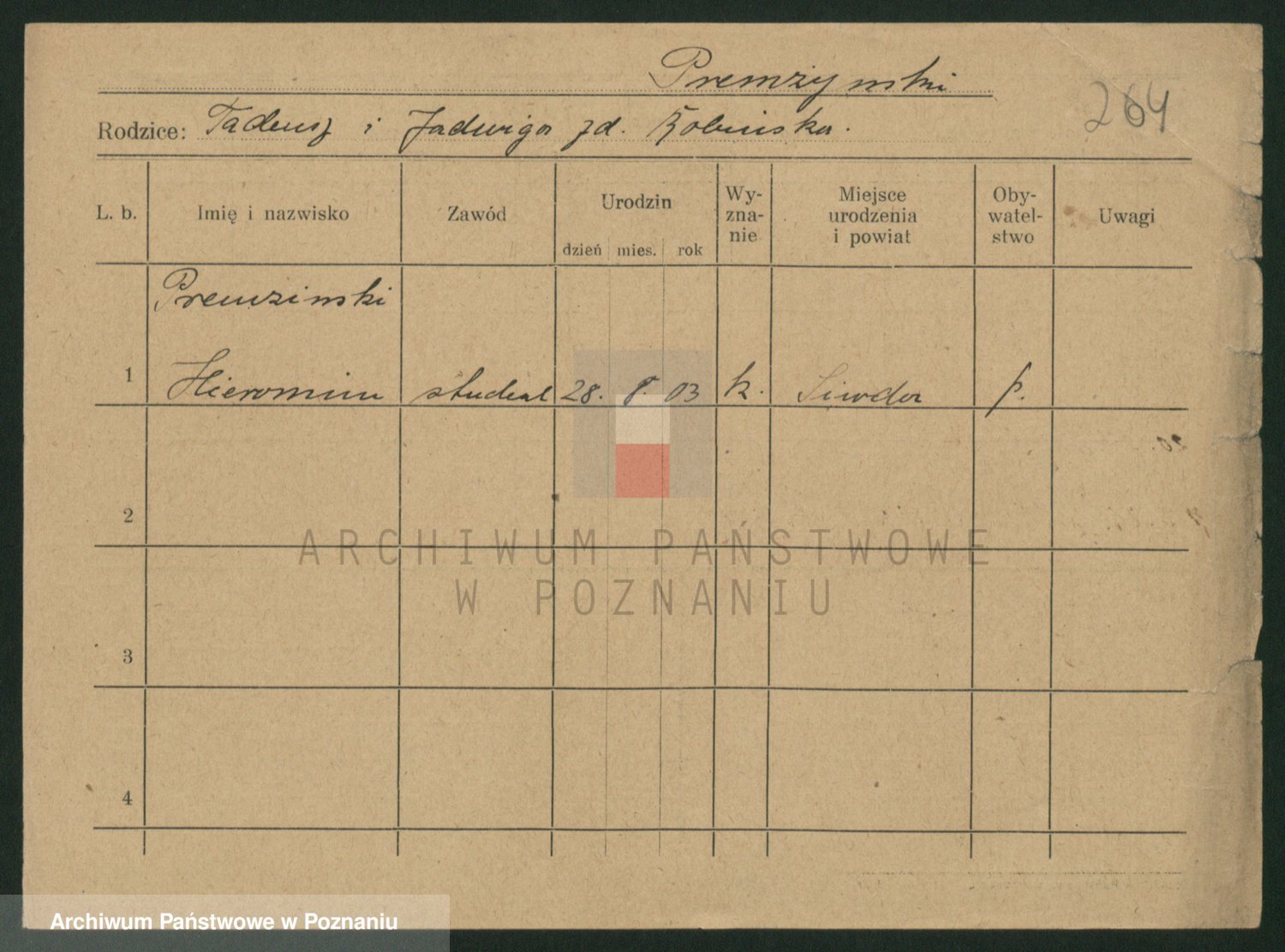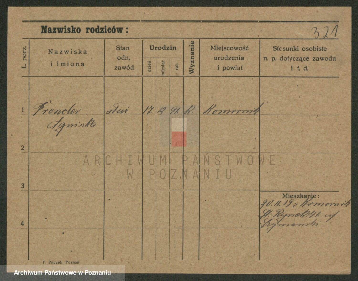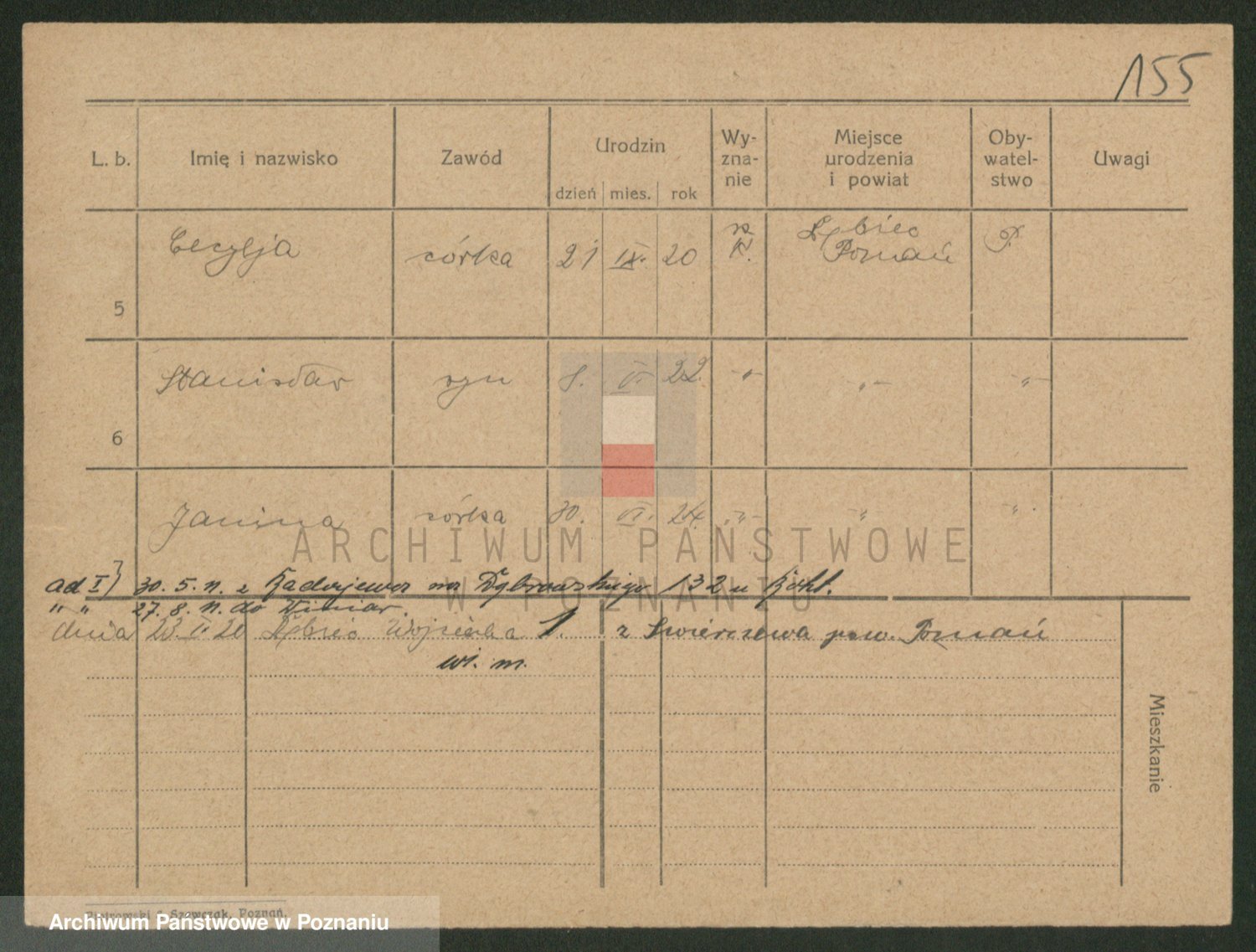 Podgląd karty osobowej dostępny jest po kliknięciu na nazwisko lub ikonkę karty. Można dokonywać powiększenia (ikony na górze) lub przechodzić między kolejnymi skanami (strzałki po bokach).
