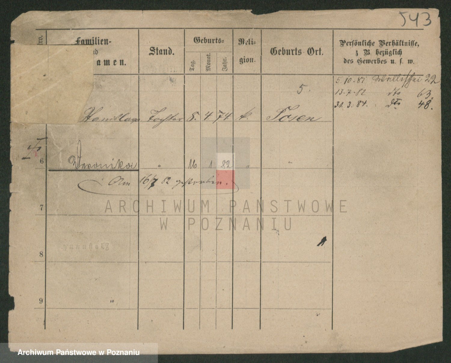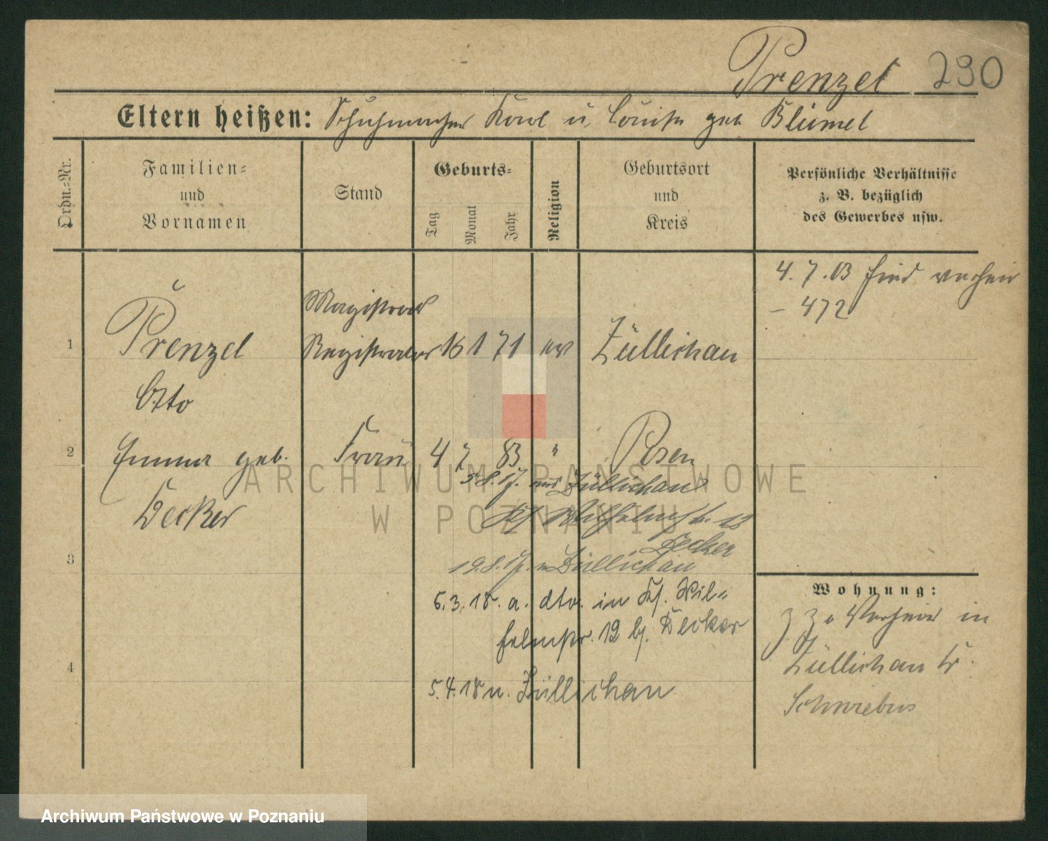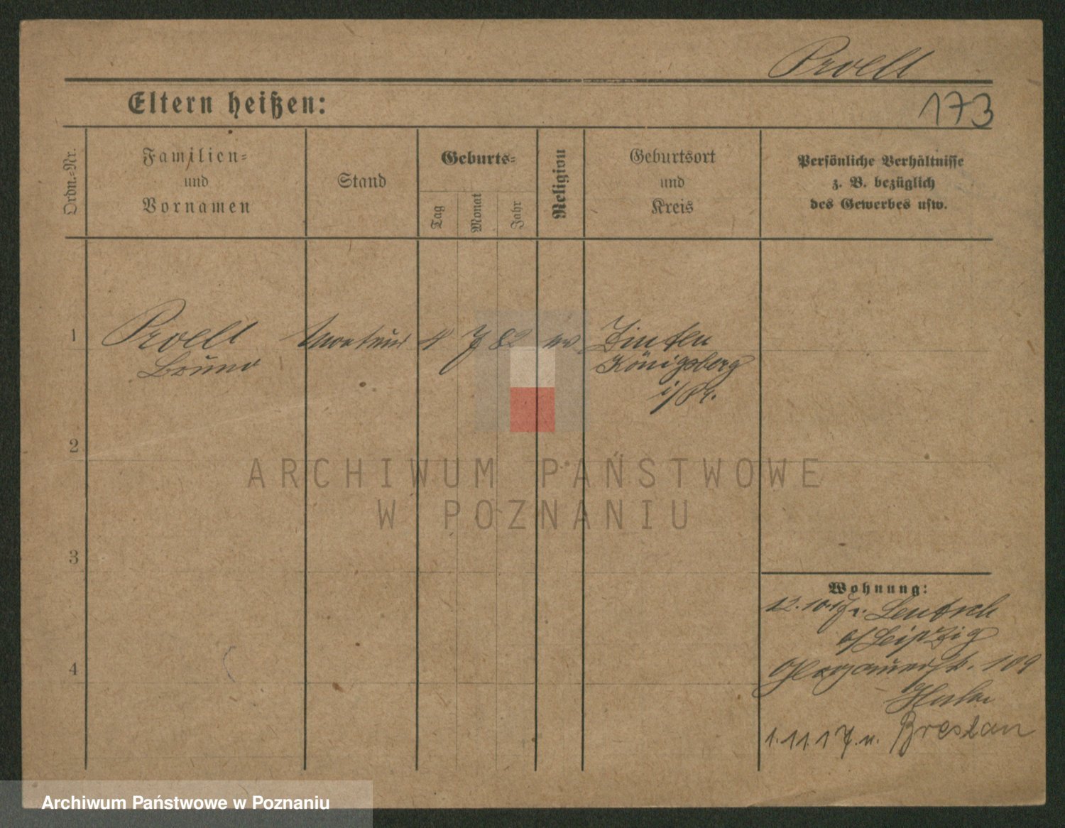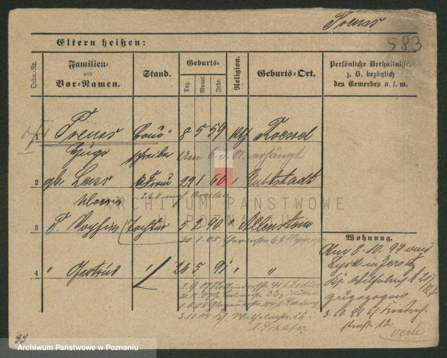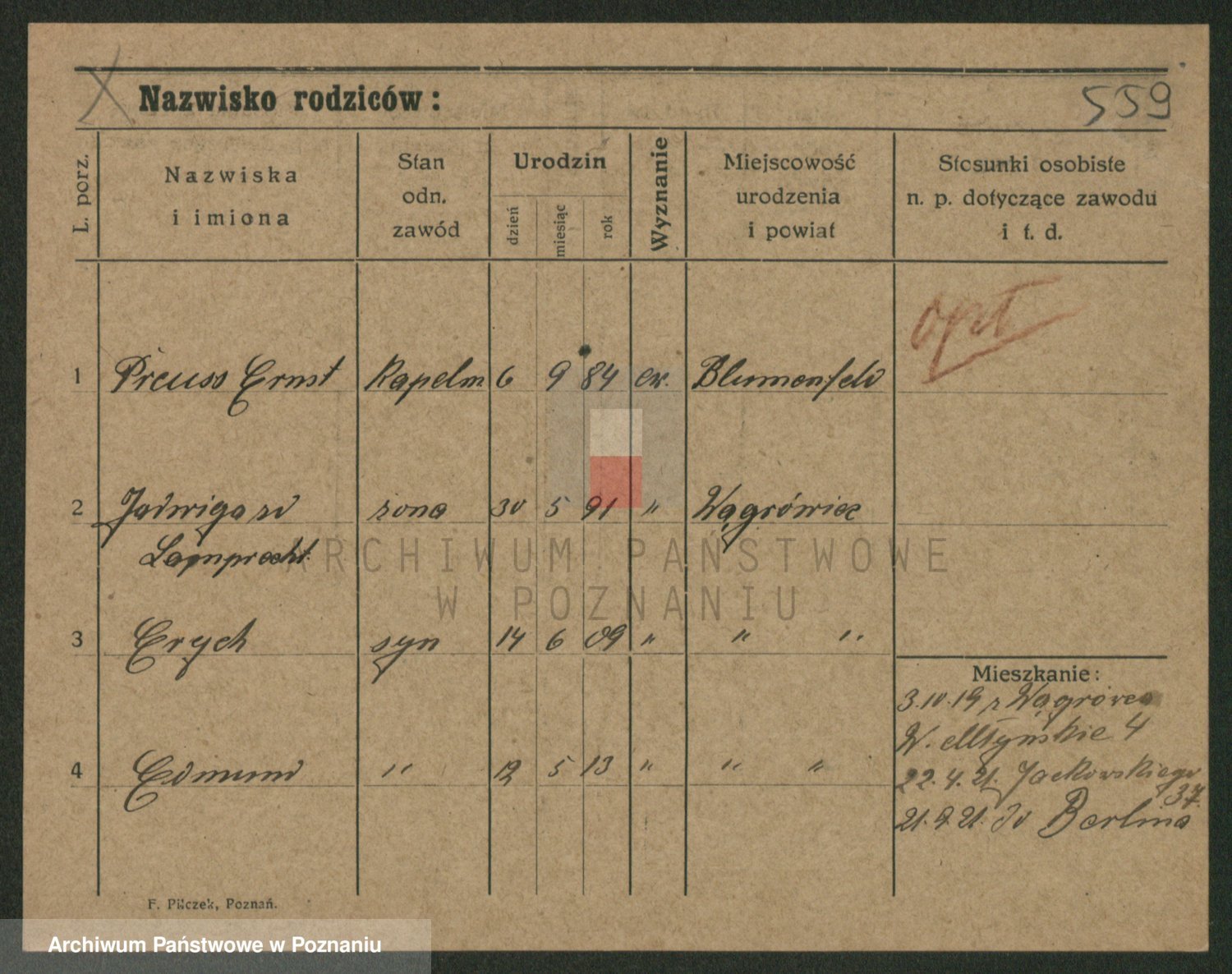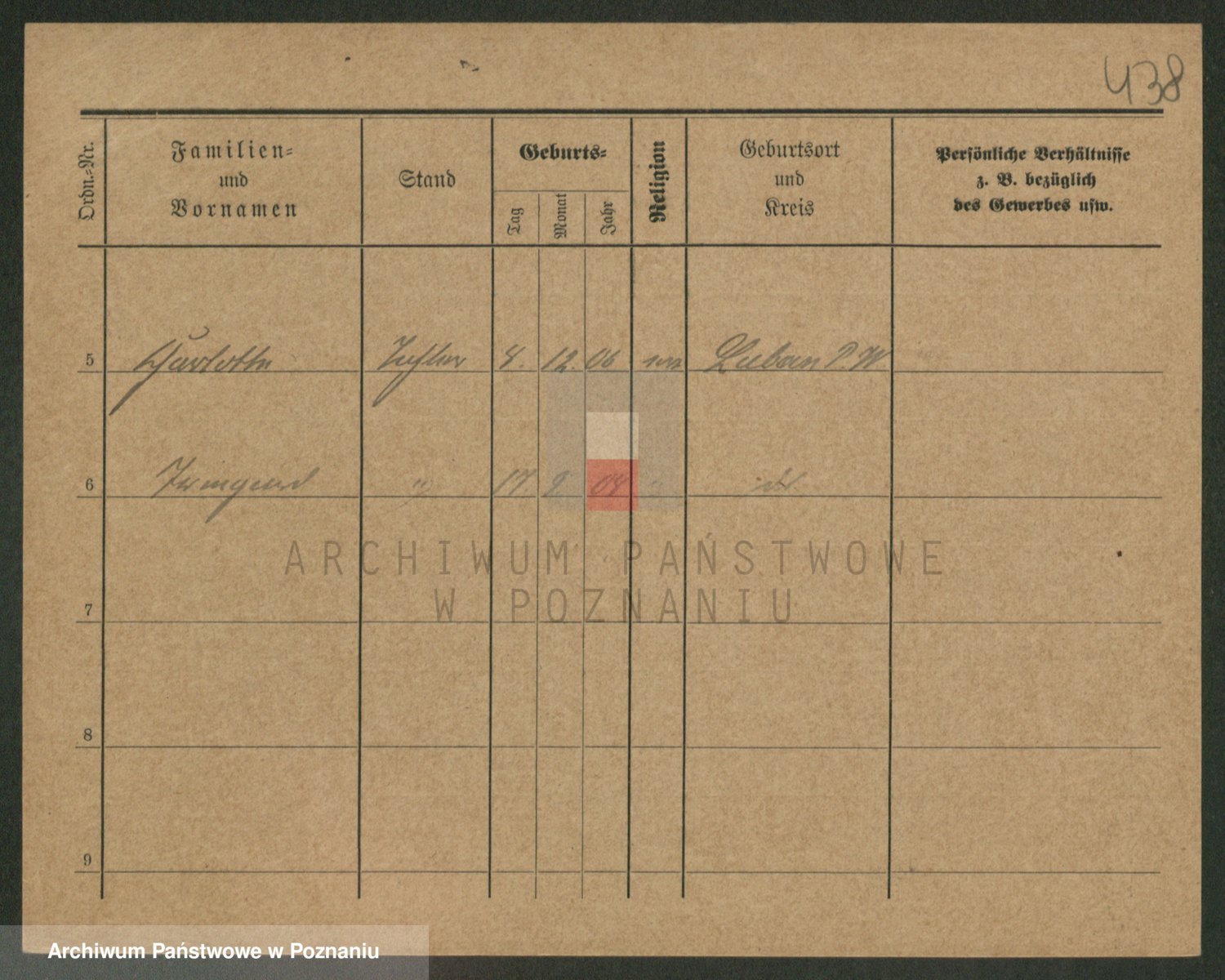 Podgląd karty osobowej dostępny jest po kliknięciu na nazwisko lub ikonkę karty. Można dokonywać powiększenia (ikony na górze) lub przechodzić między kolejnymi skanami (strzałki po bokach).