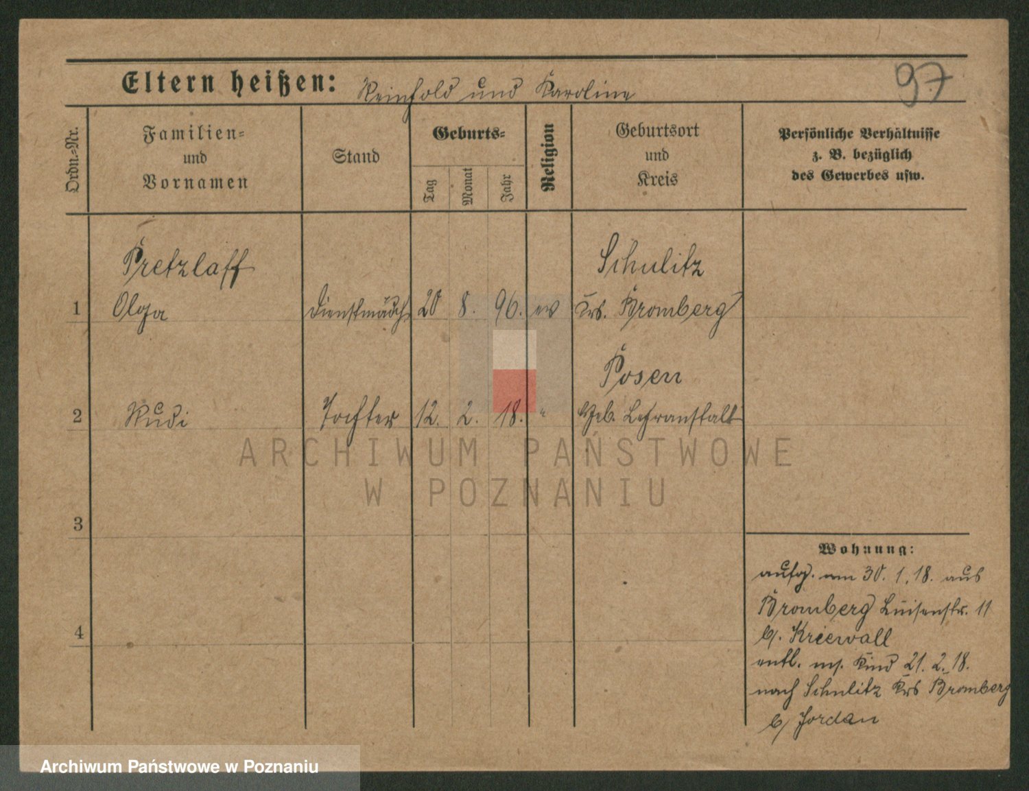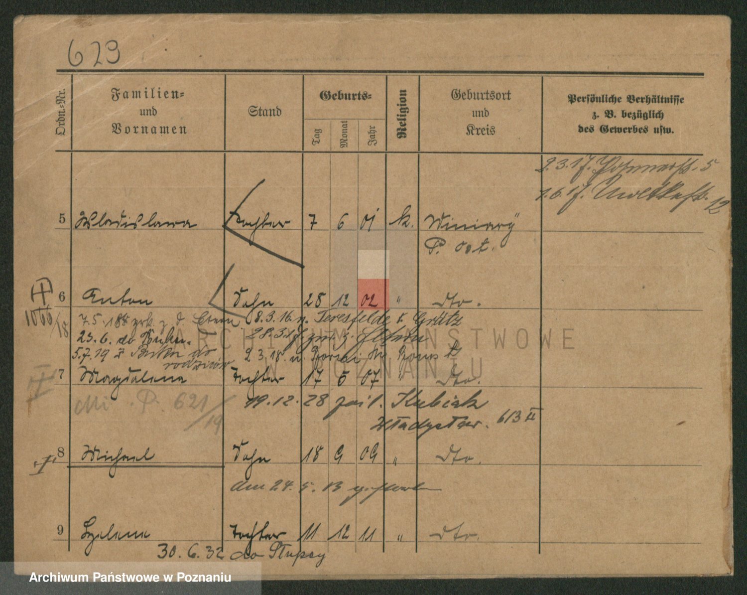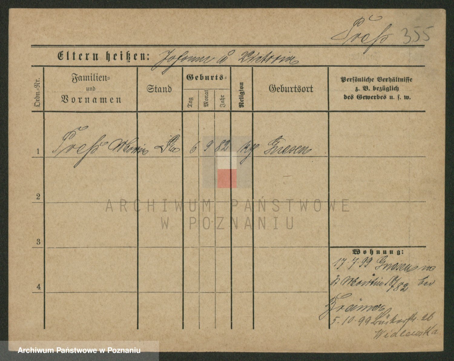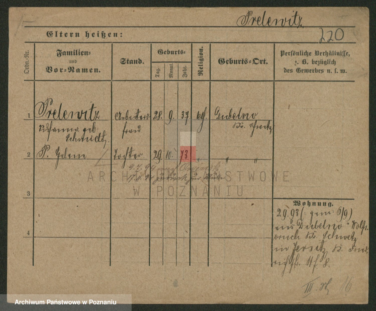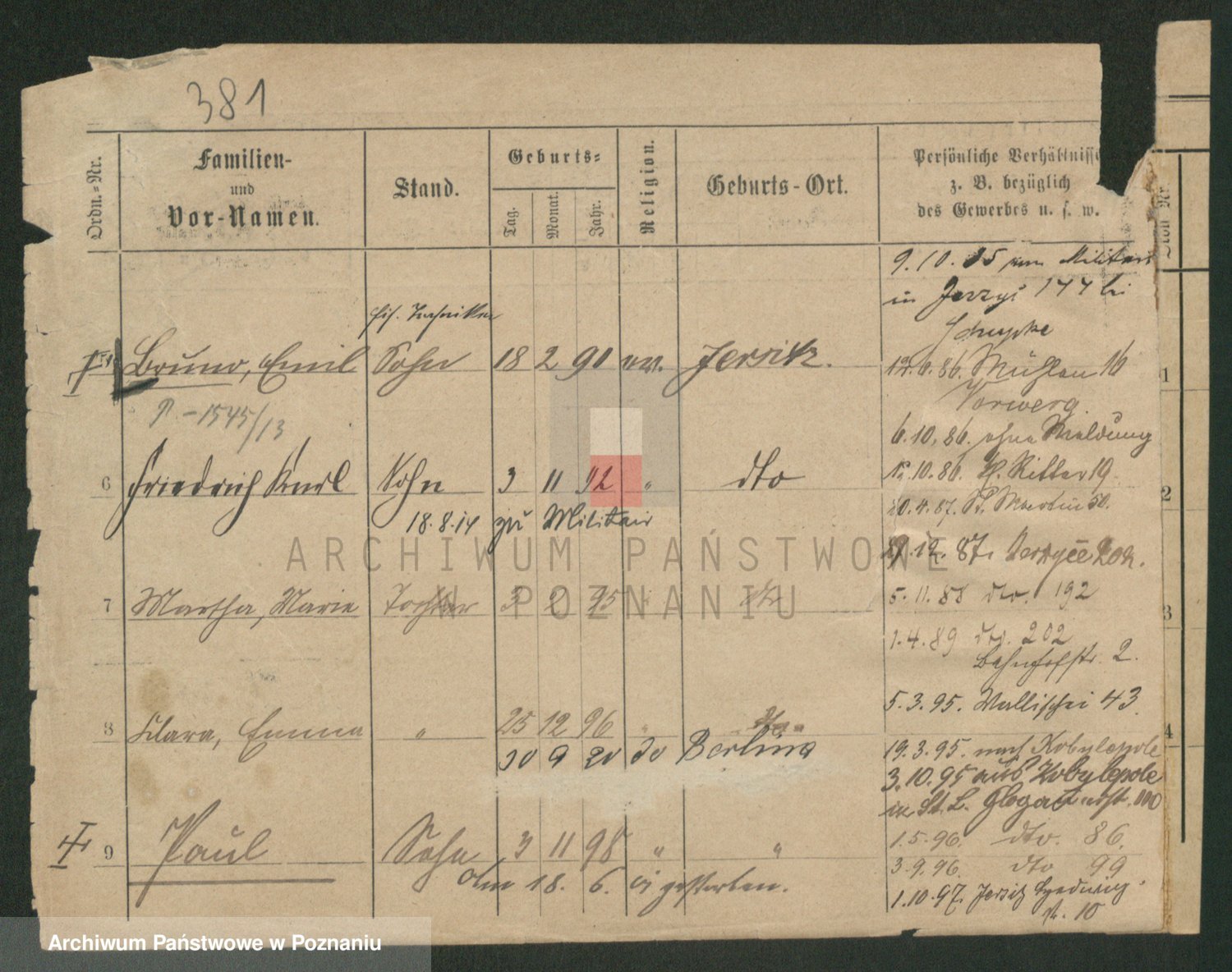 Podgląd karty osobowej dostępny jest po kliknięciu na nazwisko lub ikonkę karty. Można dokonywać powiększenia (ikony na górze) lub przechodzić między kolejnymi skanami (strzałki po bokach).
