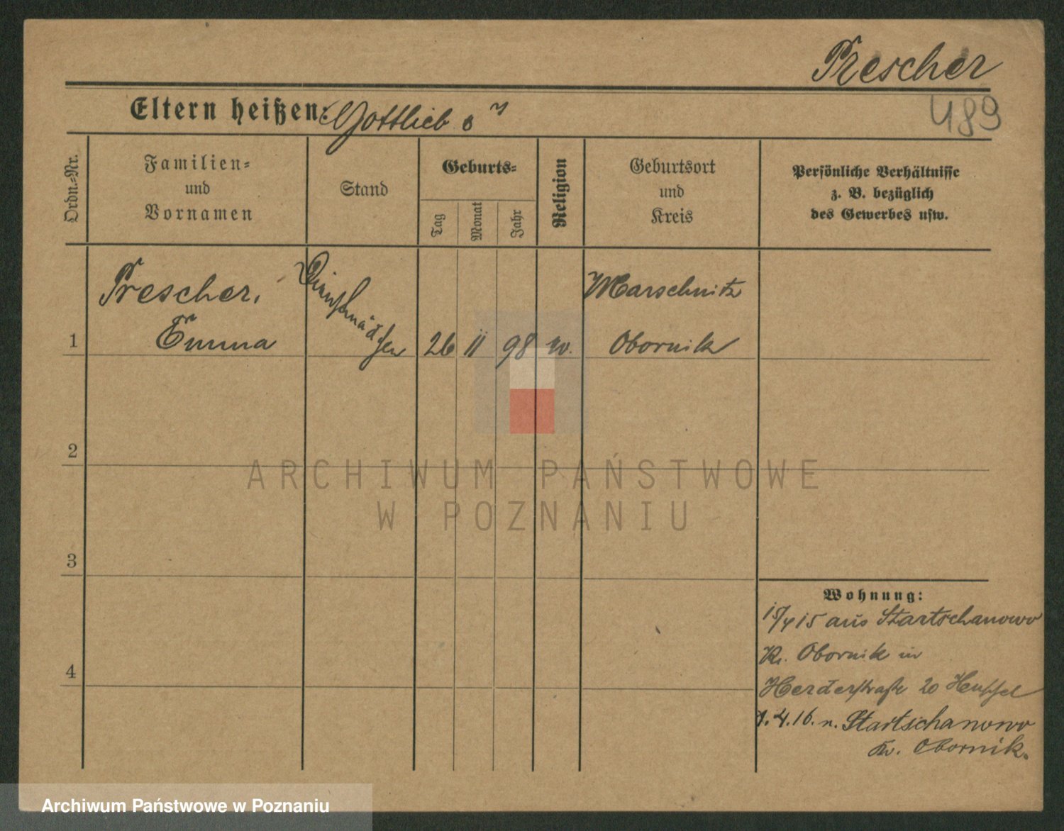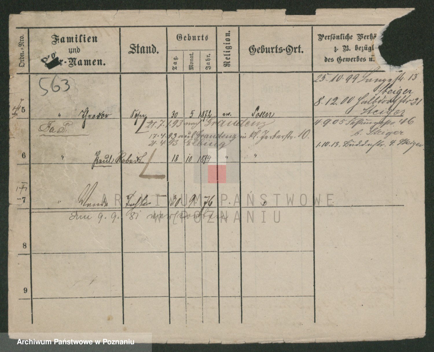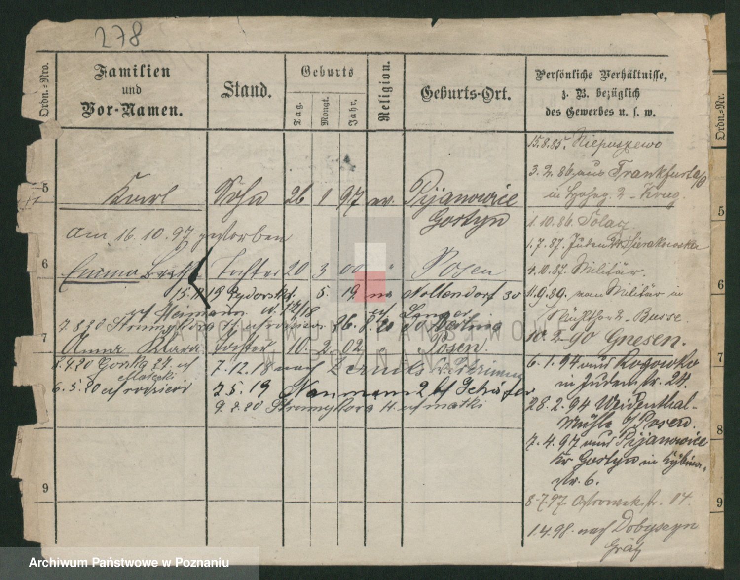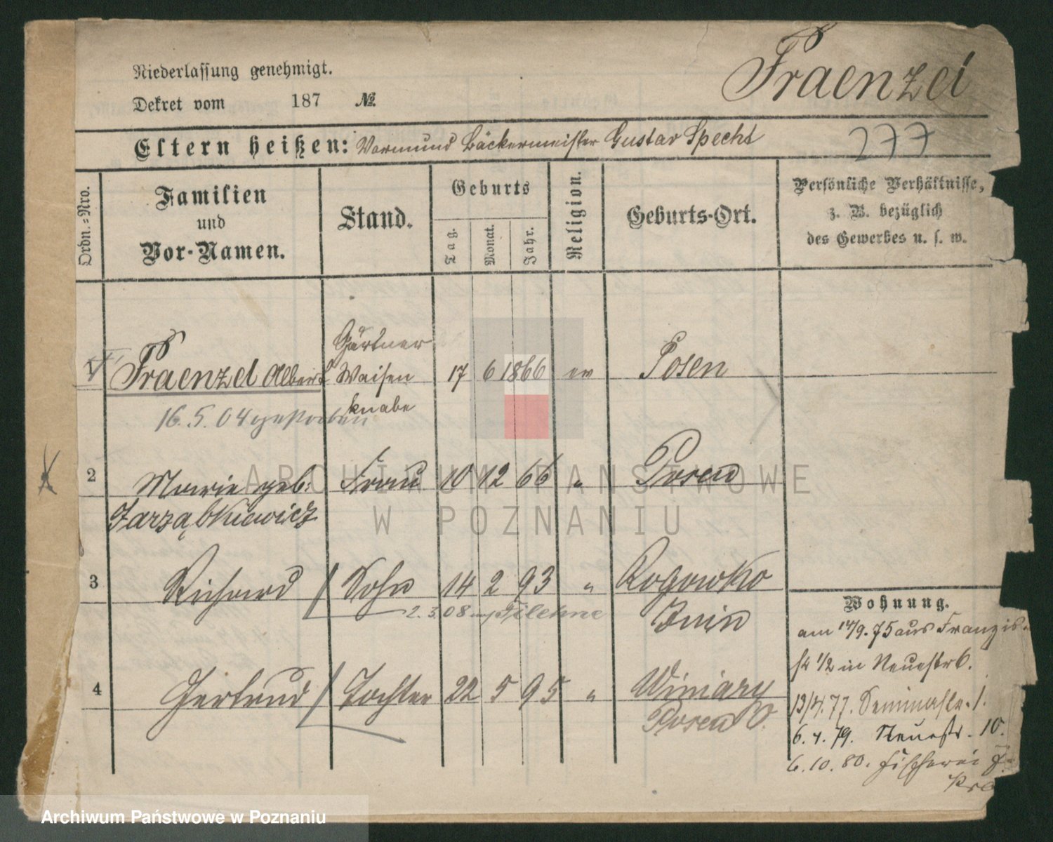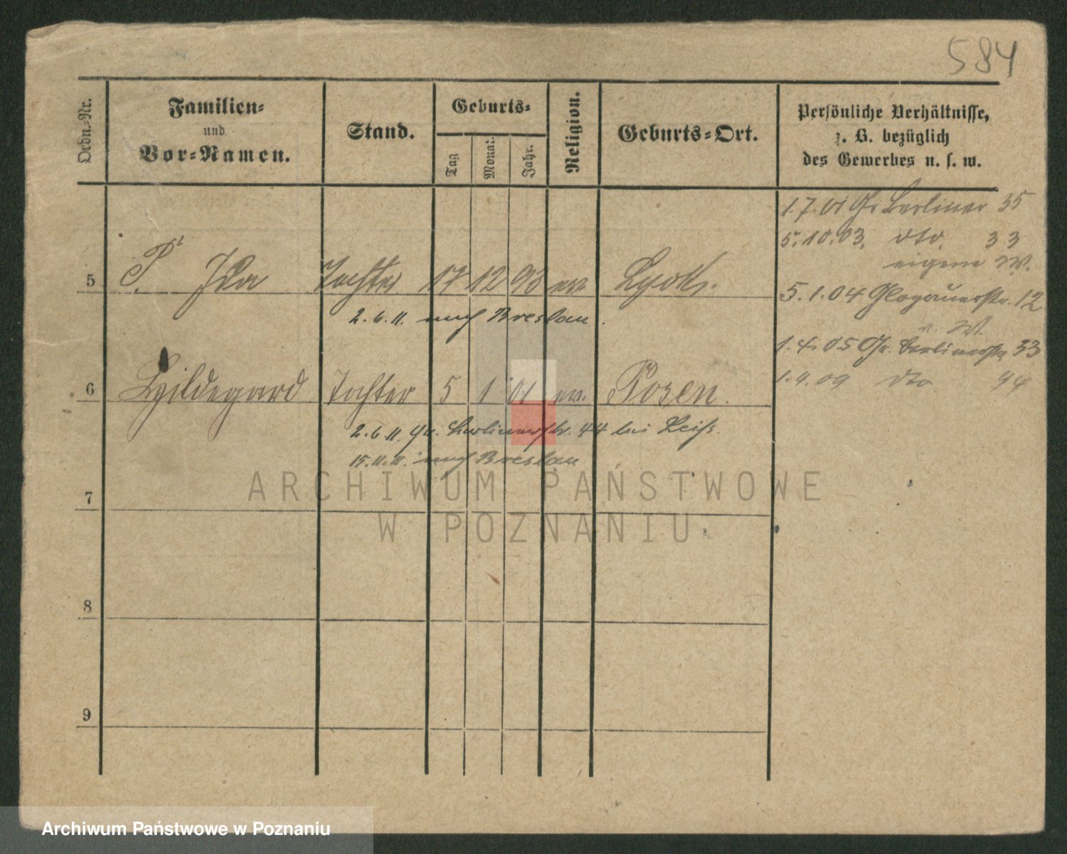Podgląd karty osobowej dostępny jest po kliknięciu na nazwisko lub ikonkę karty. Można dokonywać powiększenia (ikony na górze) lub przechodzić między kolejnymi skanami (strzałki po bokach).