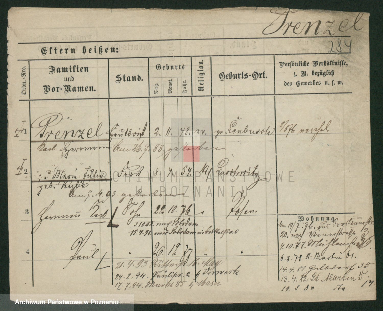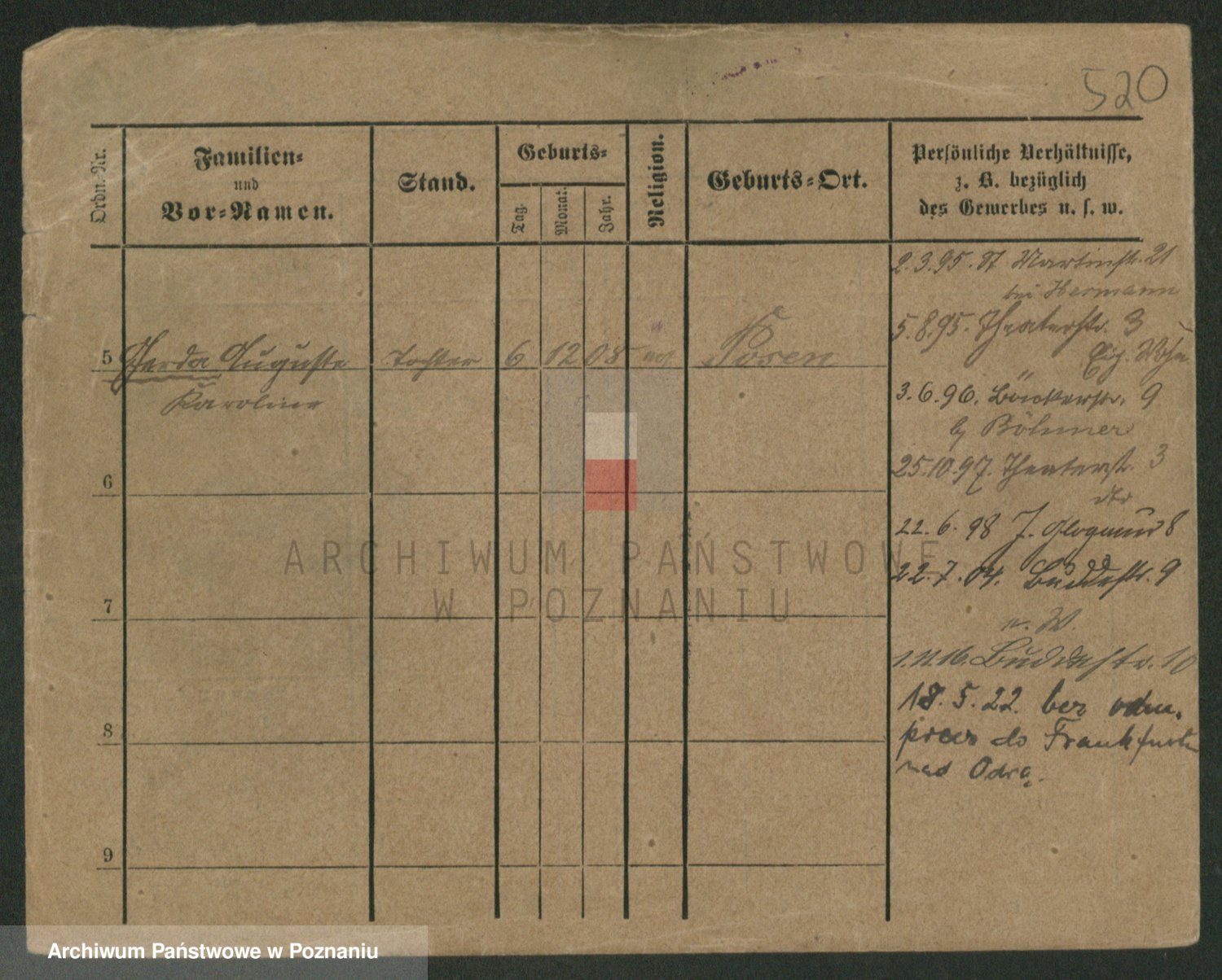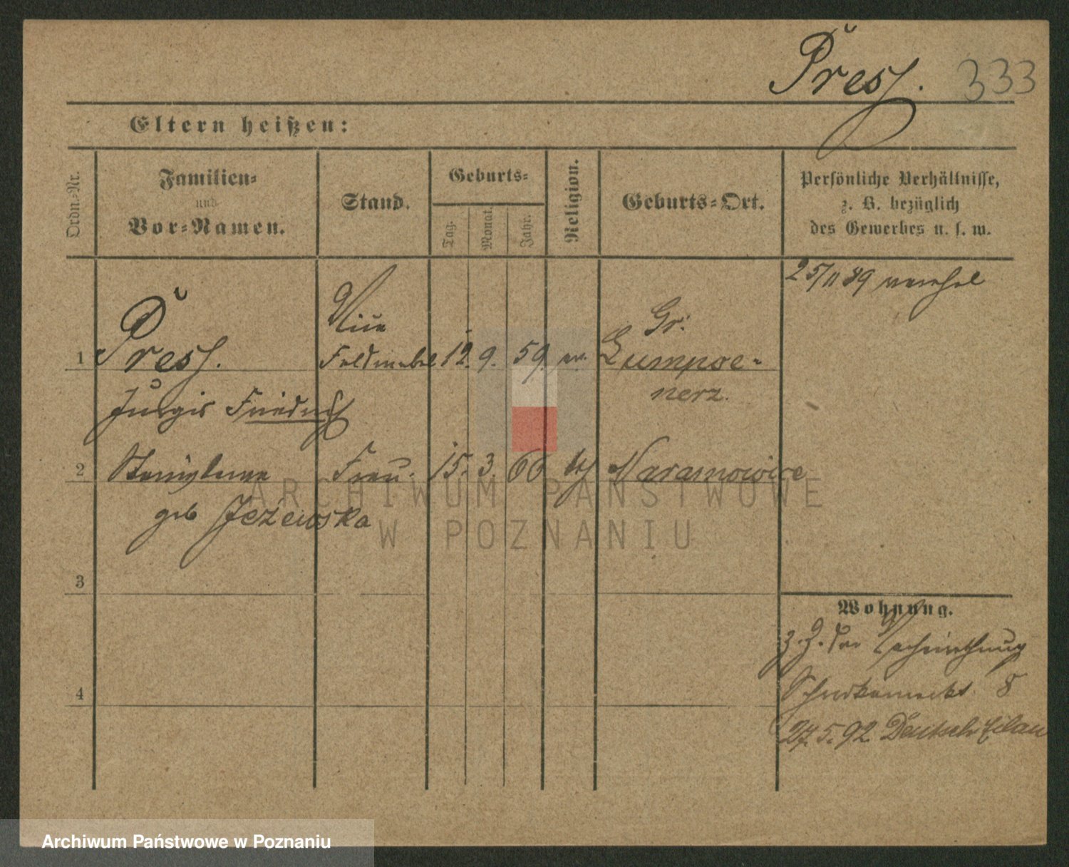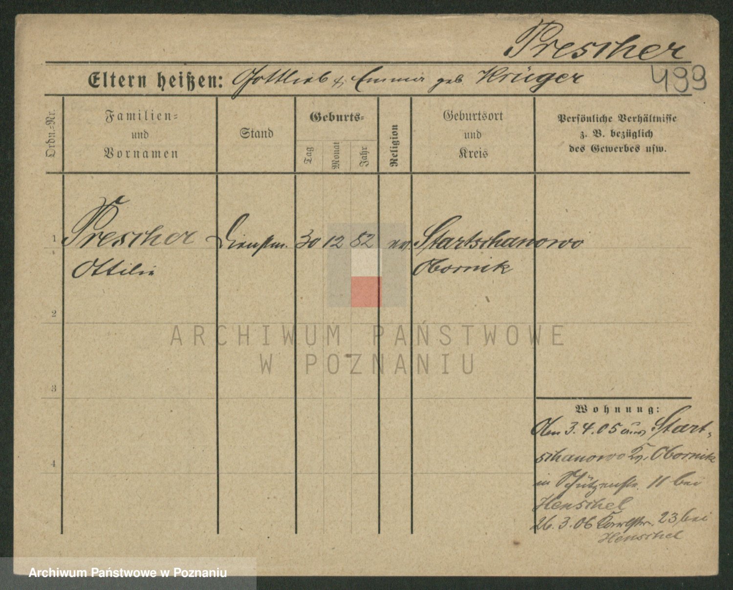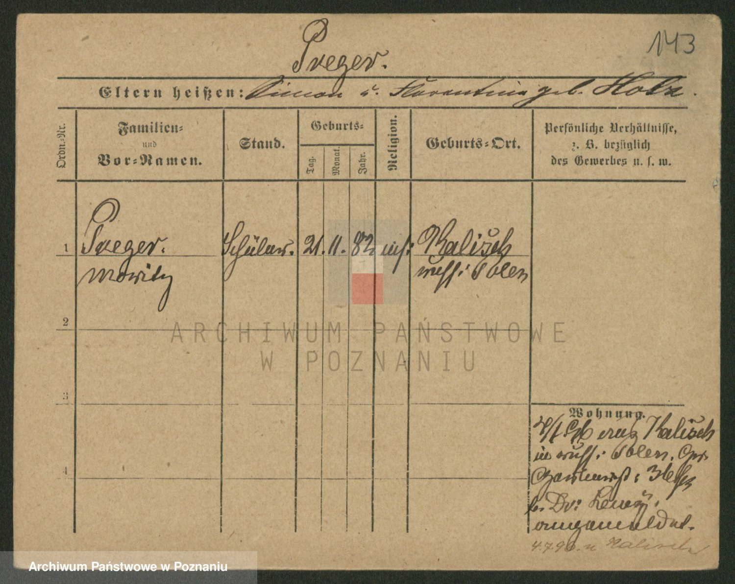 Podgląd karty osobowej dostępny jest po kliknięciu na nazwisko lub ikonkę karty. Można dokonywać powiększenia (ikony na górze) lub przechodzić między kolejnymi skanami (strzałki po bokach).