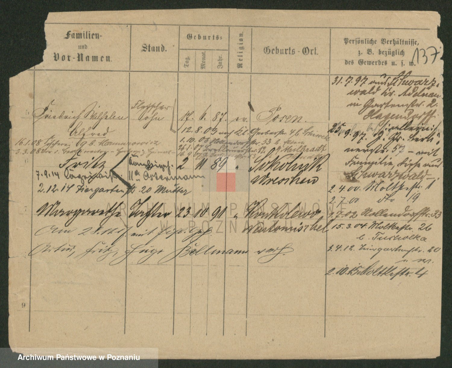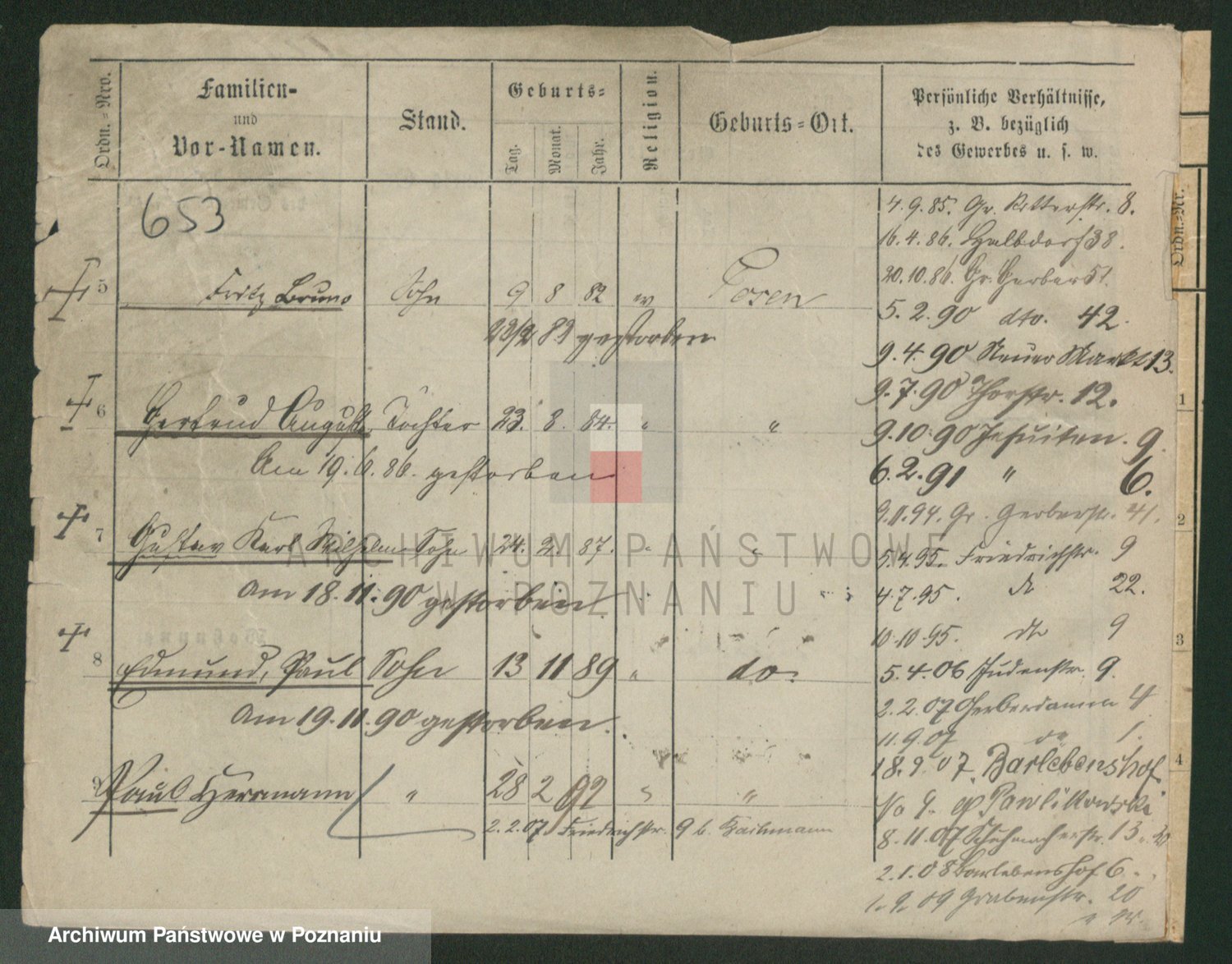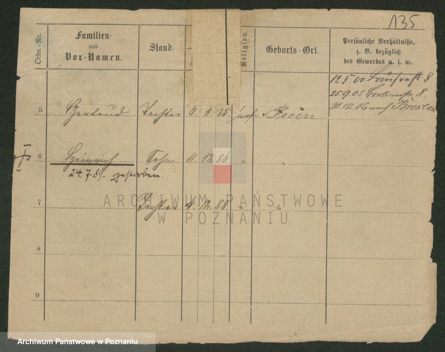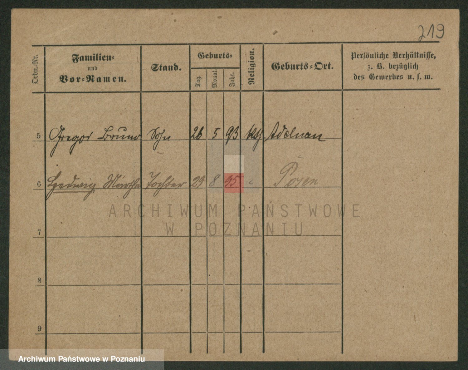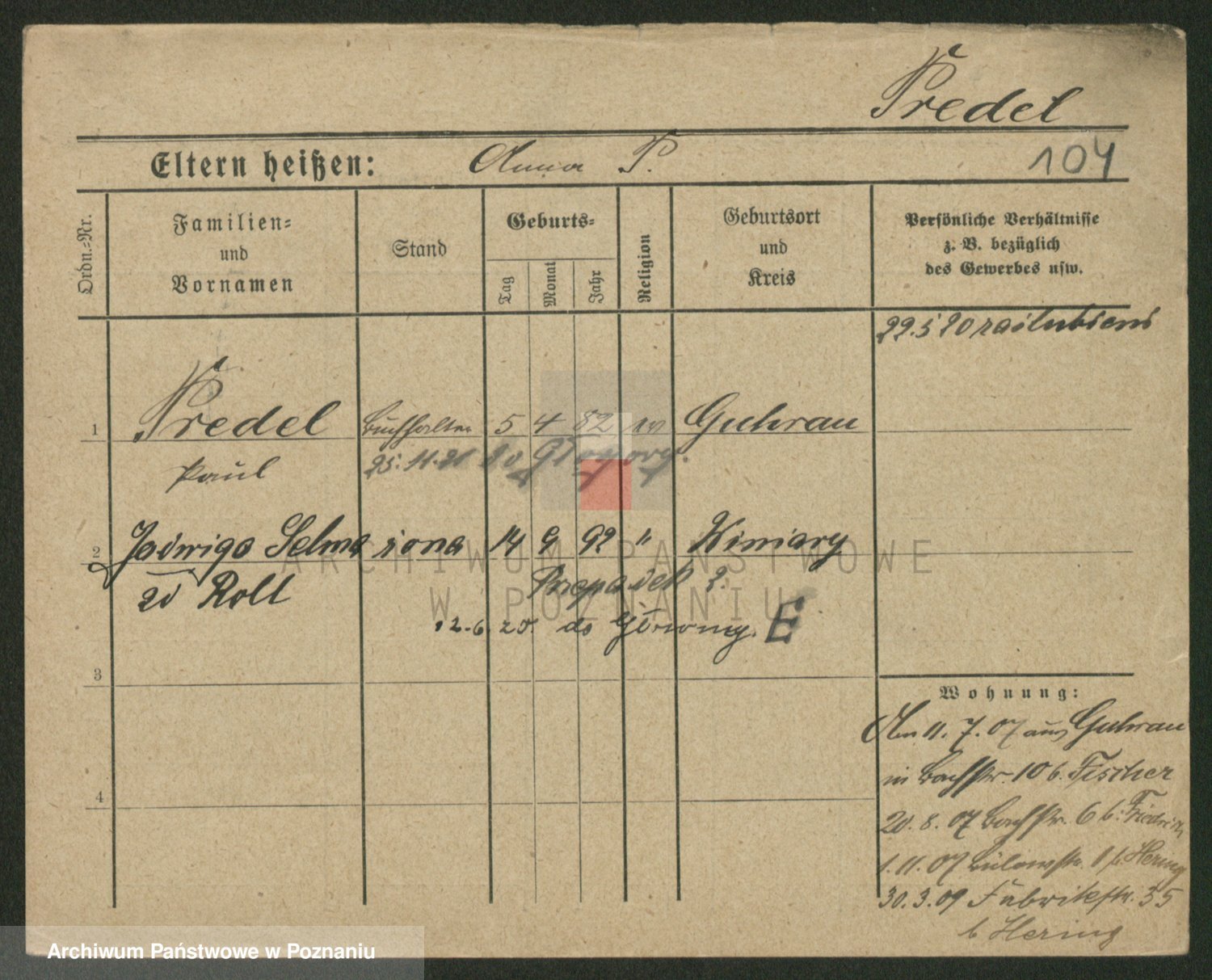 Podgląd karty osobowej dostępny jest po kliknięciu na nazwisko lub ikonkę karty. Można dokonywać powiększenia (ikony na górze) lub przechodzić między kolejnymi skanami (strzałki po bokach).